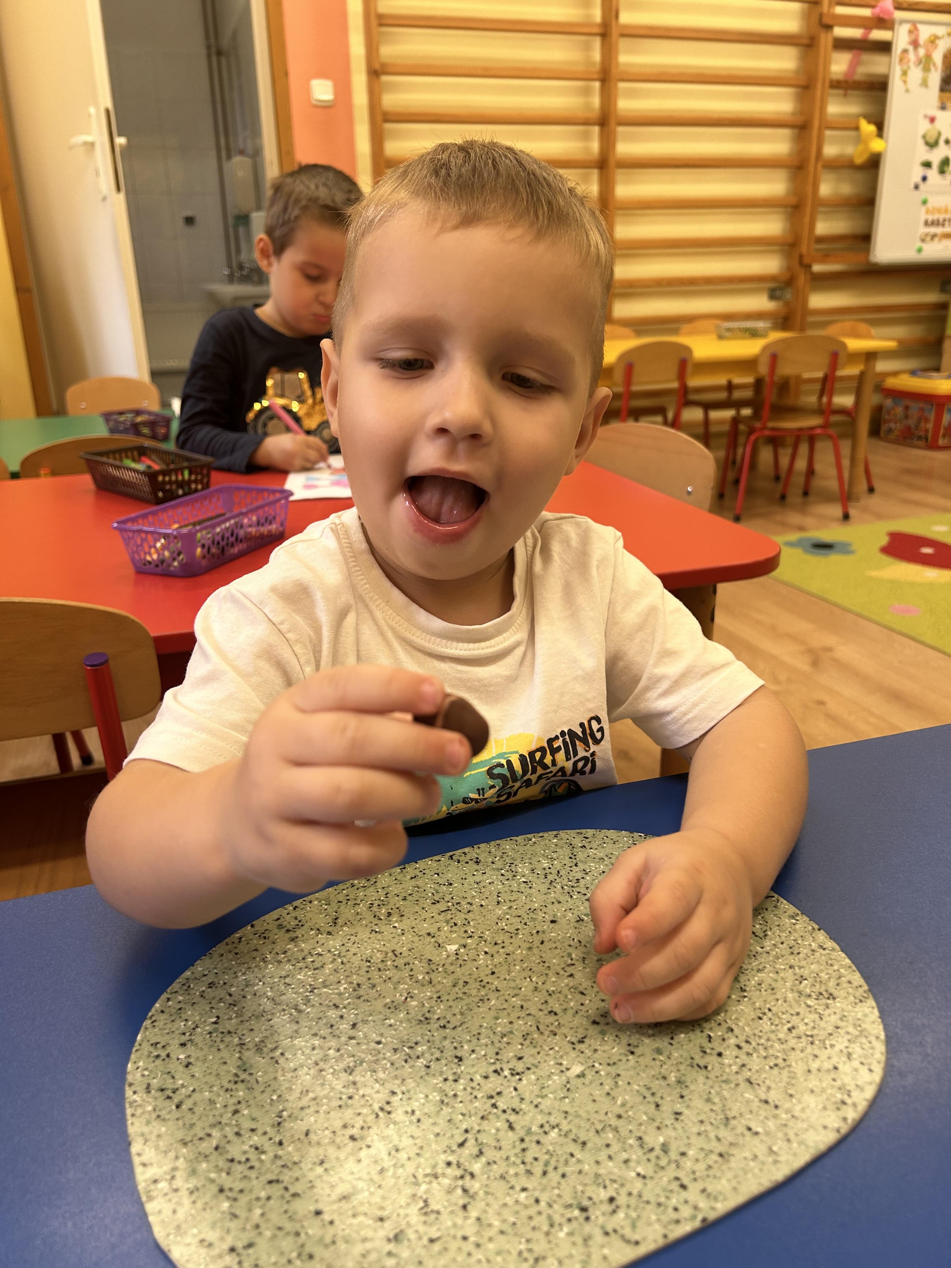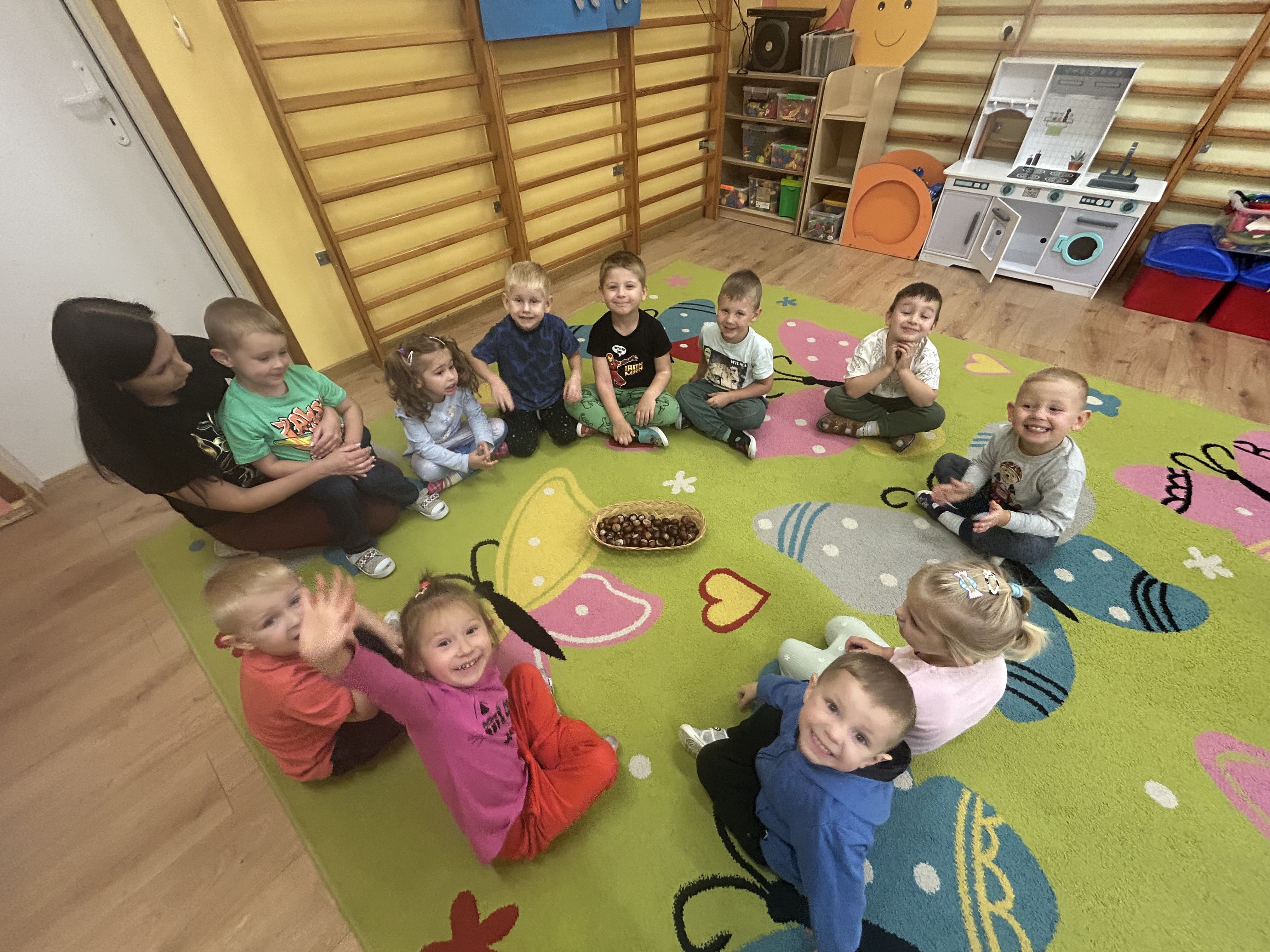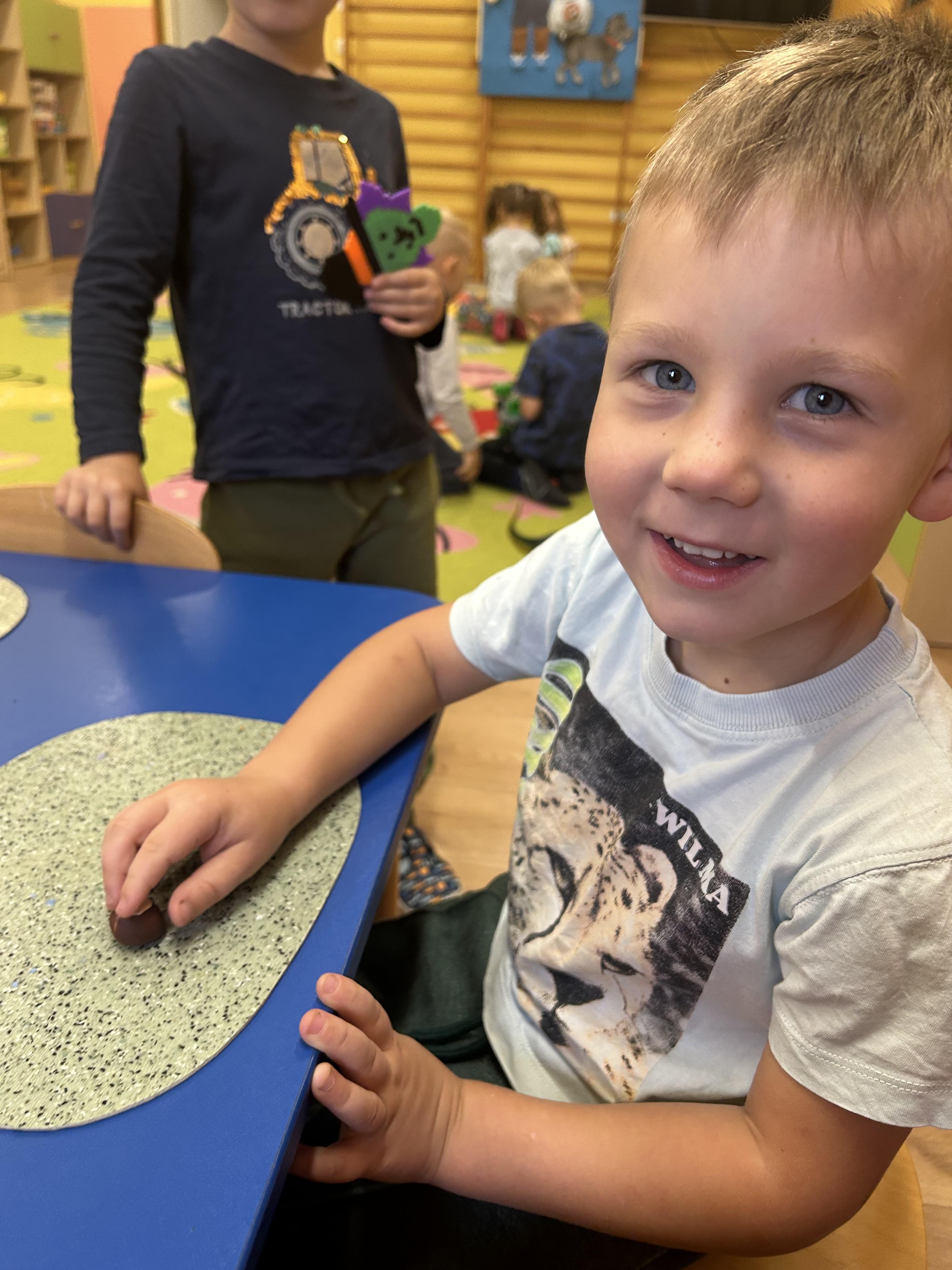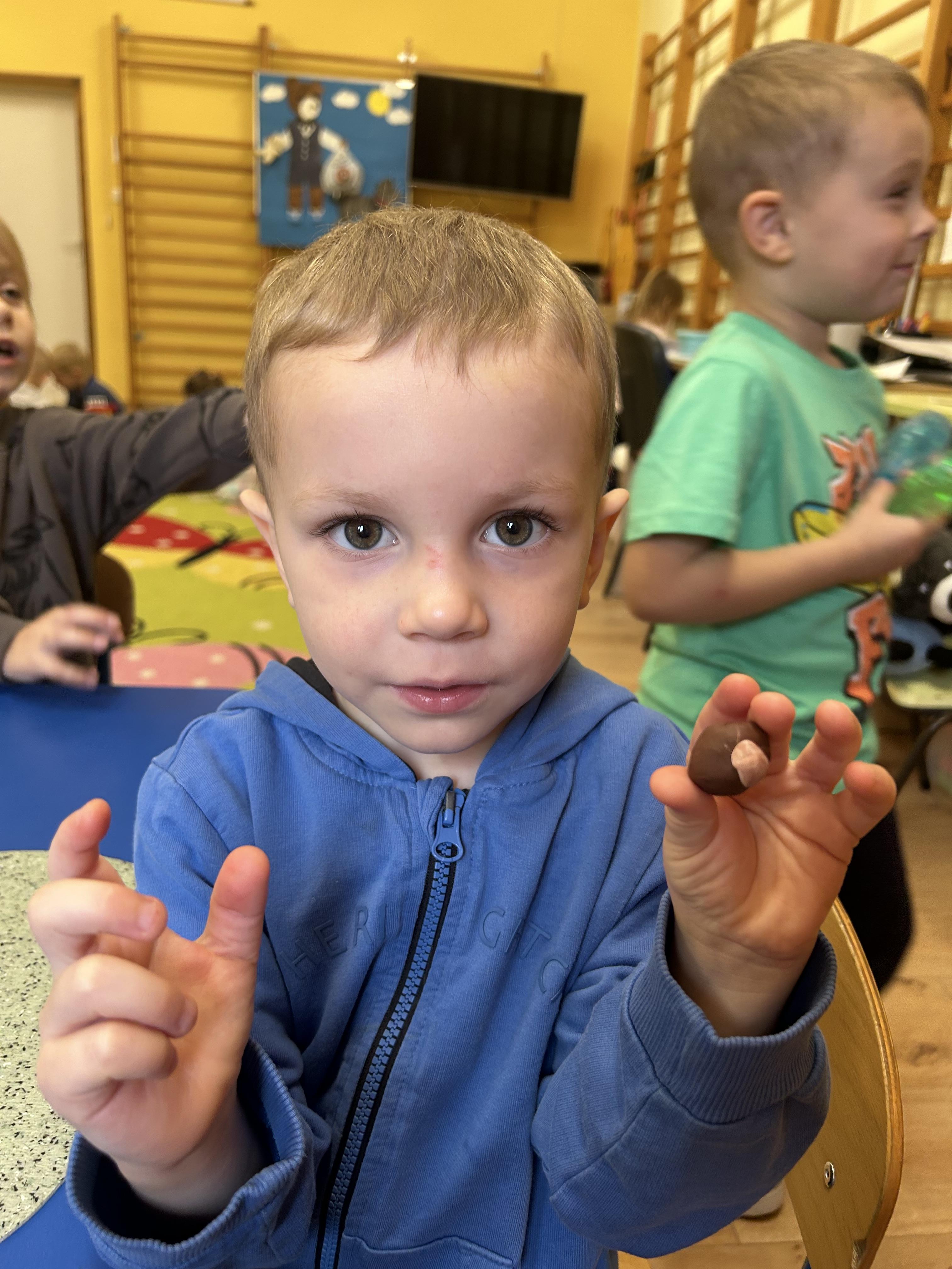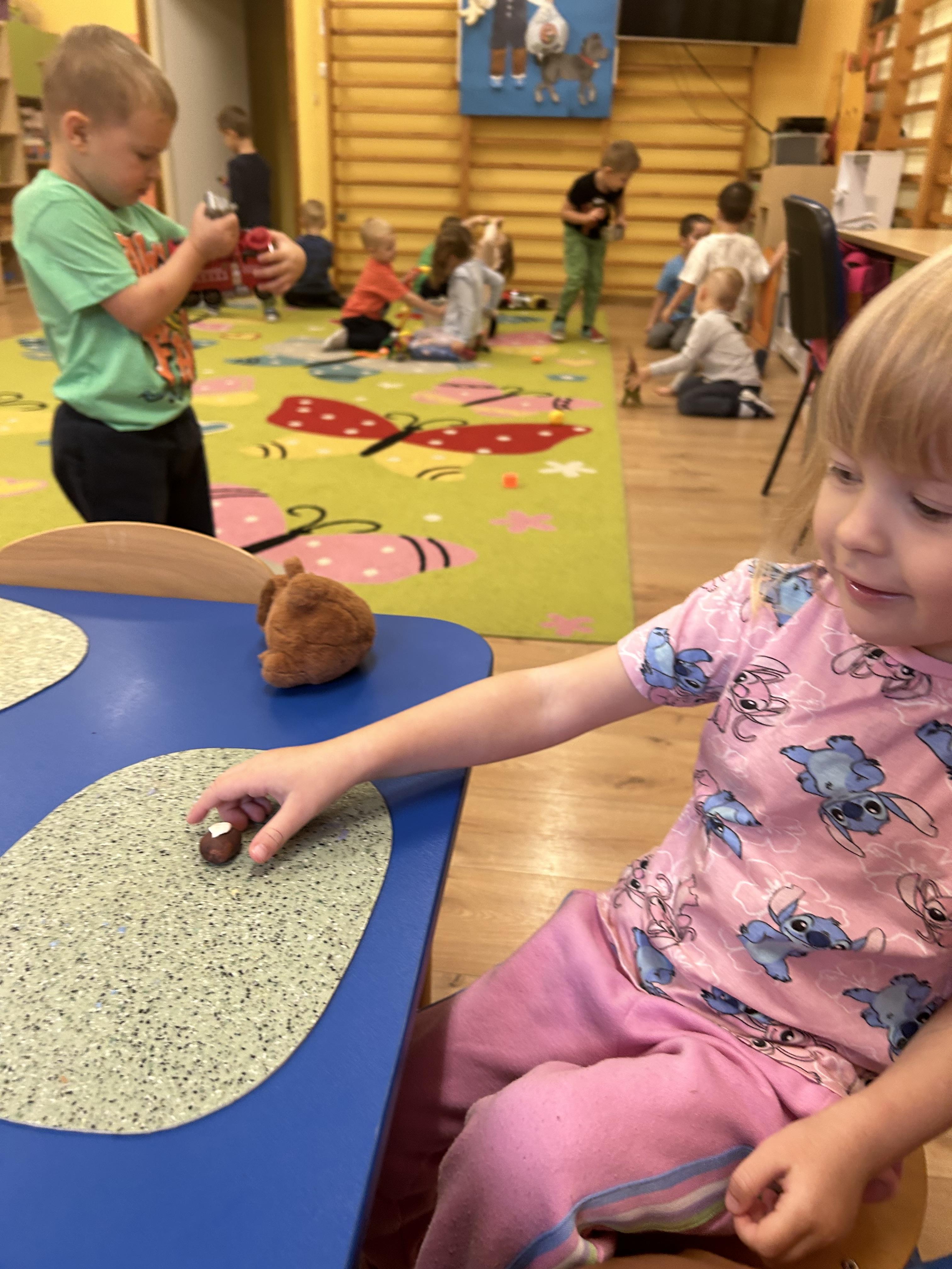 W piątek 3 października obchodziliśmy Dzień Kasztana. Ale co tak naprawdę oznacza to święto? Dzień Kasztana jest świętem obchodzonym w wielu krajach na całym świecie, w tym w Polsce. Jego korzenie sięgają daleko wstecz, a znaczenie kasztanów w kulturze i ekosystemie jest nie do przecenienia. Kasztany były cenione przez wiele starożytnych cywilizacji, w tym przez Rzymian, dla których były ważnym źródłem pożywienia. W średniowieczu, kasztany były często używane jako zamiennik dla chleba. Dzień Kasztana jest więc świętem, które celebruje to bogate dziedzictwo. Elfy kasztany poznawały niemal wszystkimi zmysłami. Kasztany dotykaliśmy, wąchaliśmy, oglądaliśmy i słuchaliśmy, ale oczywiście nie smakowaliśmy. Dzieci dowiedziały się również, że są kasztany, które możemy zjadać. Stworzyliśmy również kasztanowo szyszkowe obrazy. I plastelinowe kasztany. Zabawy było bez liku.