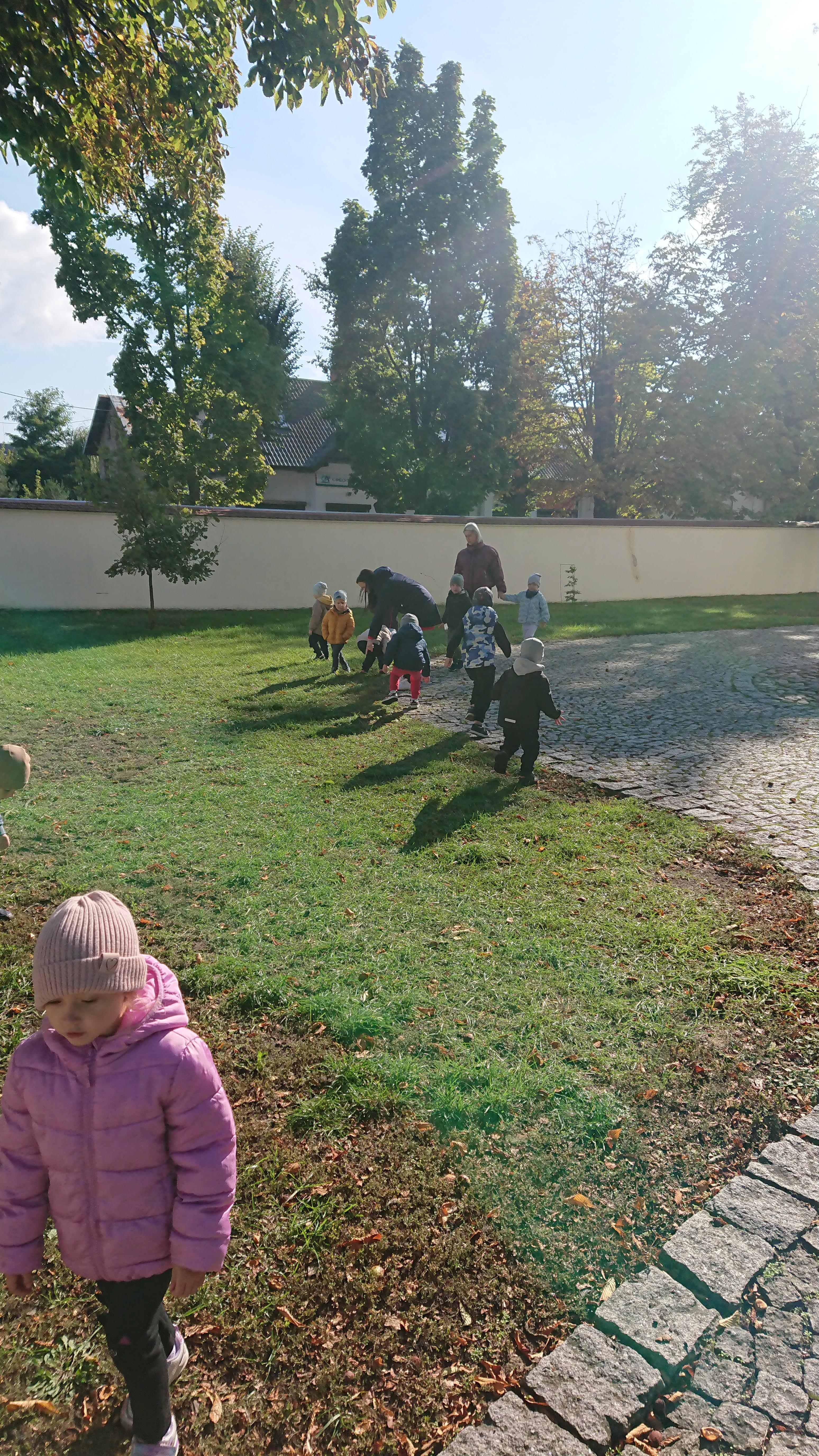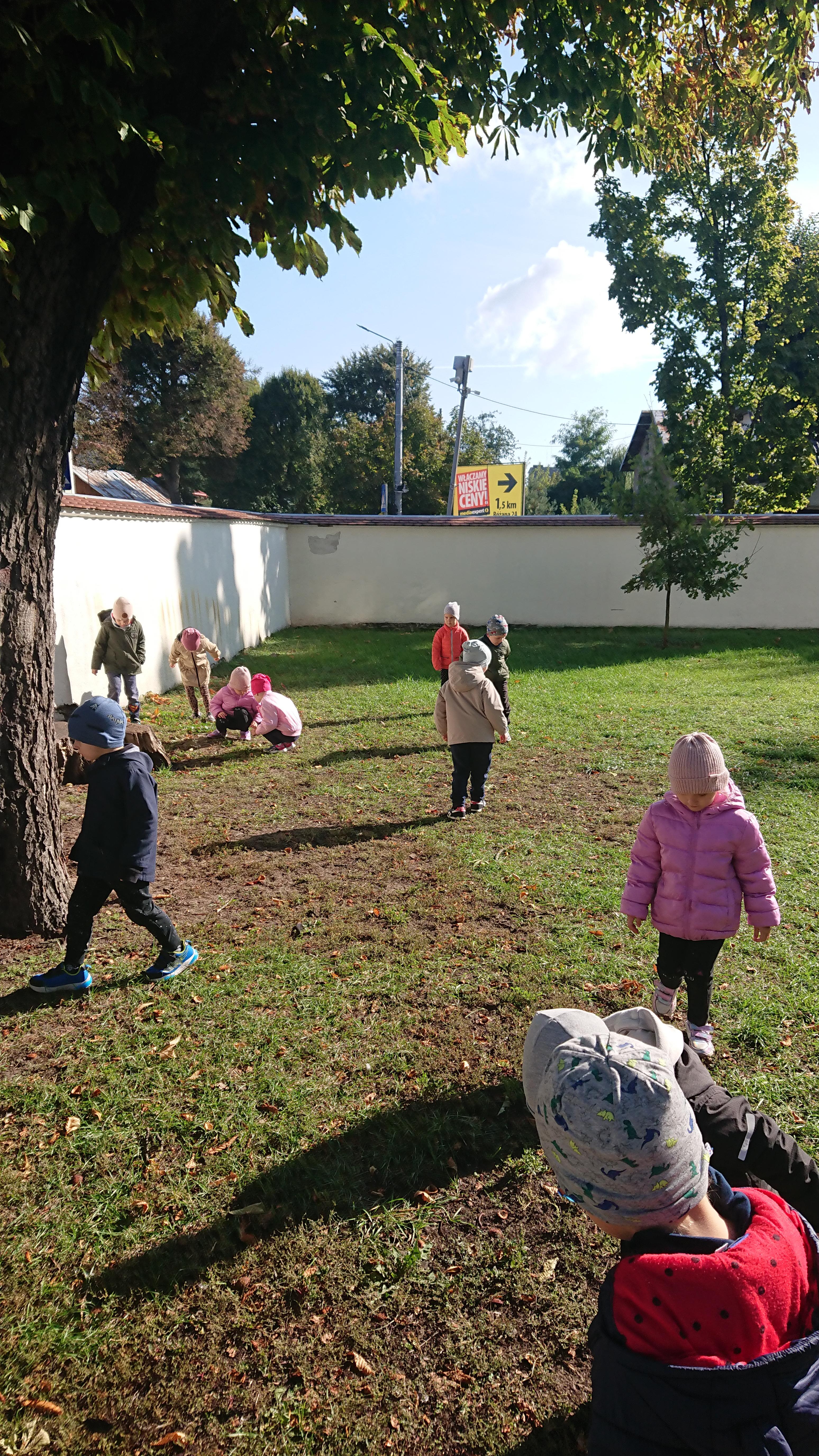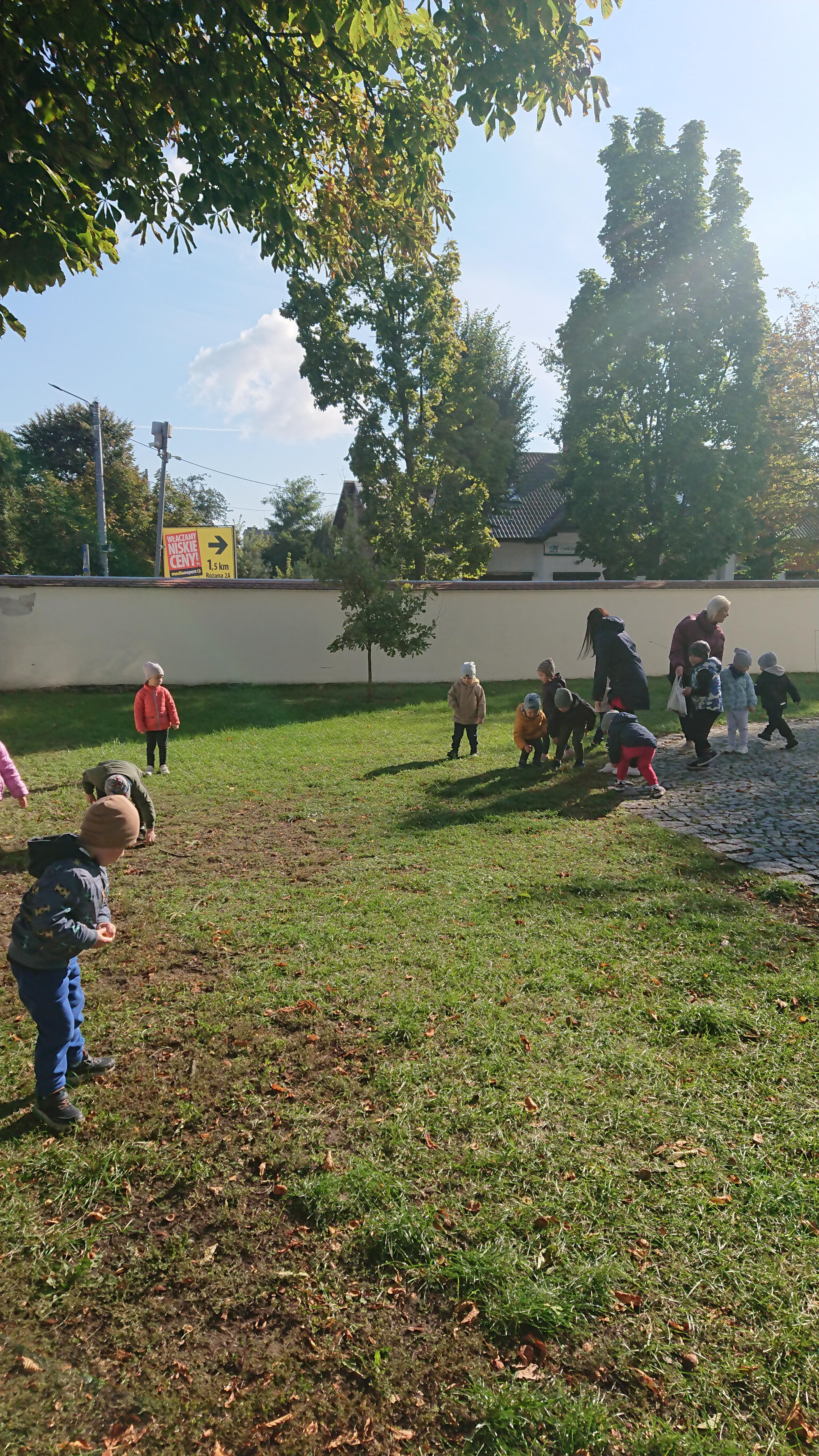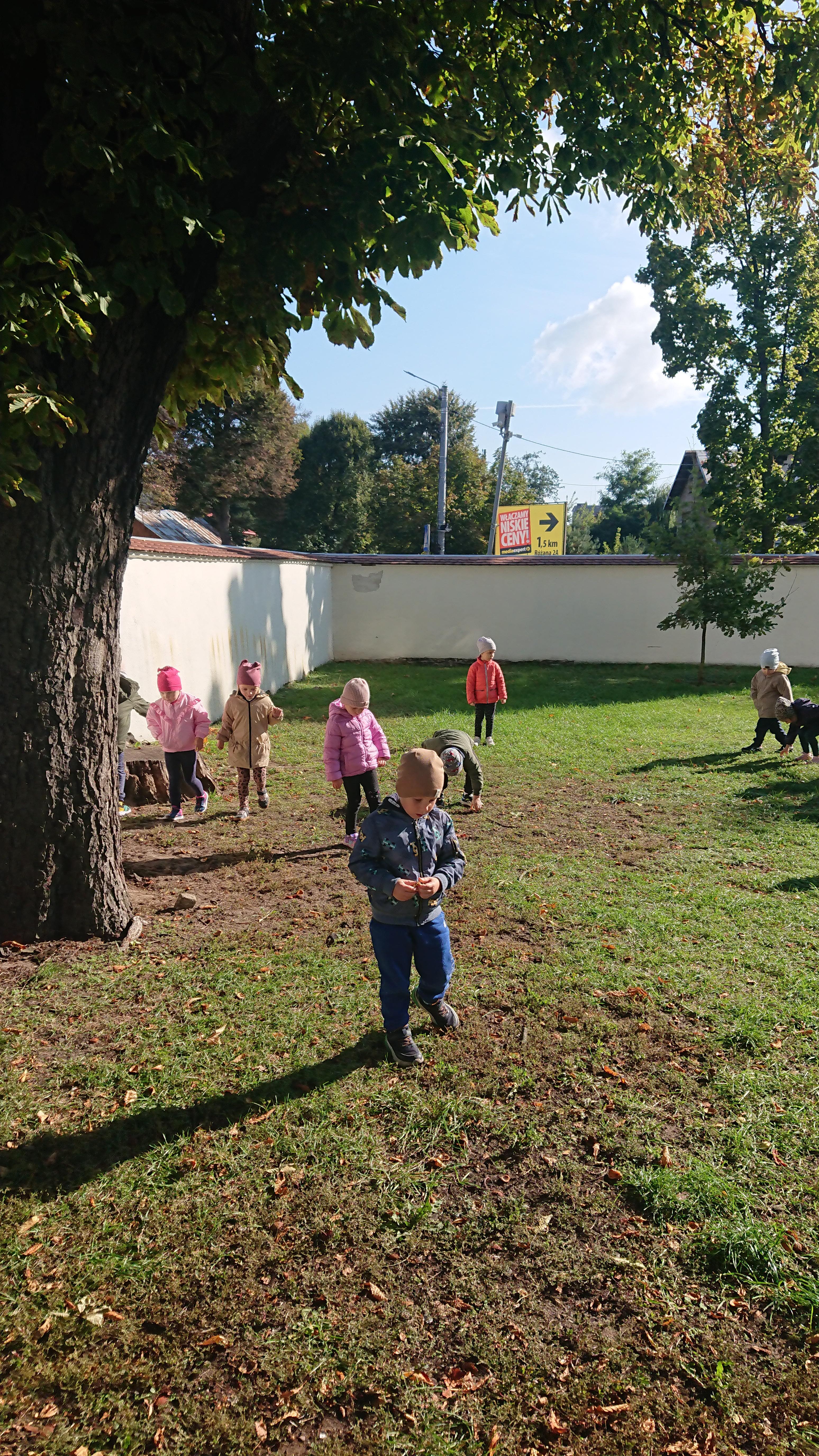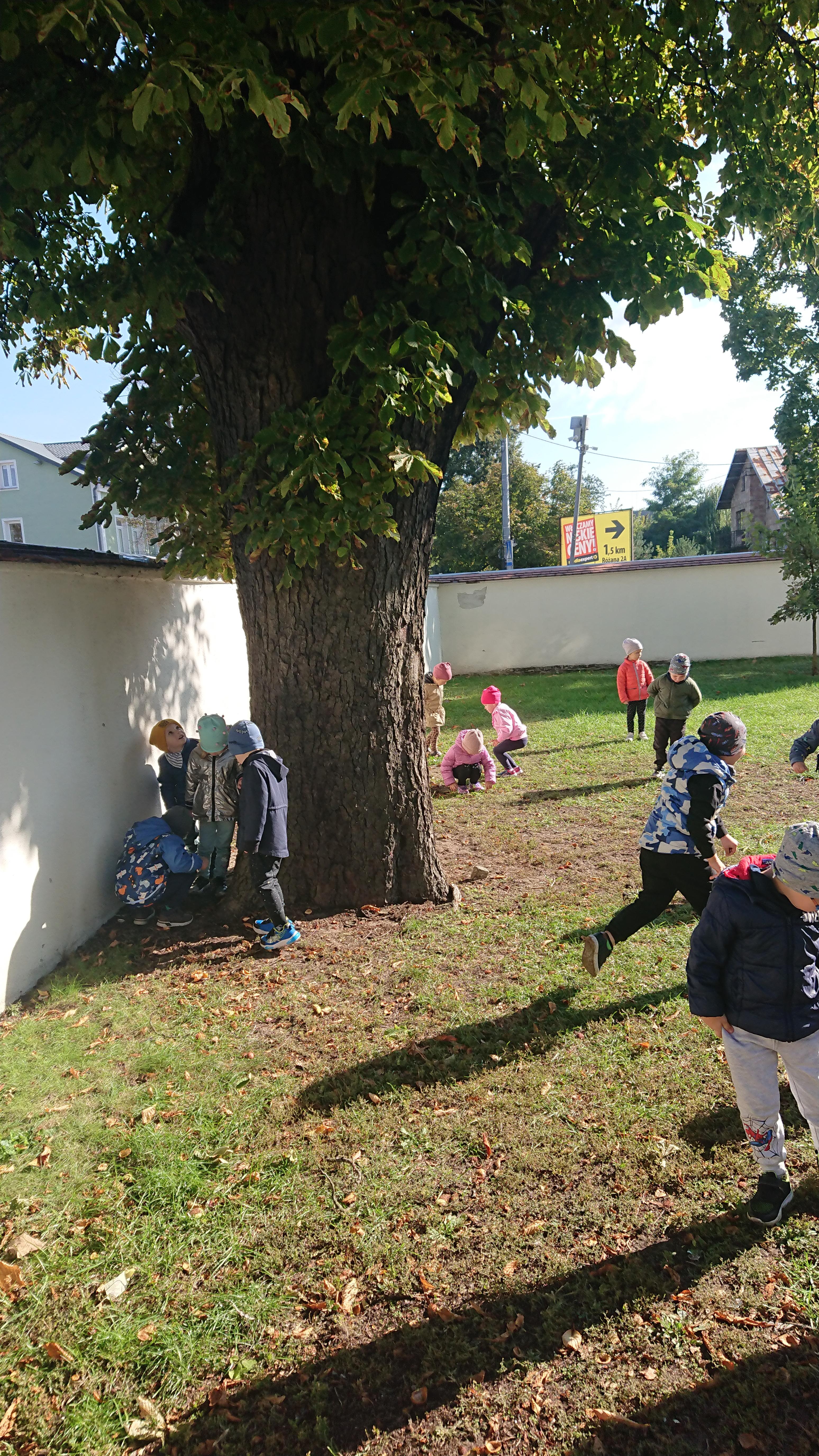 W środę (1 października), Elfy wybrały się na wyprawę w poszukiwaniu kasztanów. To była naprawdę duża wyprawa, gdyż dotarliśmy aż na plac przy Bazylice Mniejszej. Tam znaleźliśmy kasztanowce i ukryty pod nimi nasz skarb. Choć, jak się później okazało, przed nami odwiedzili to miejsce nasi starsi koledzy z grupy Zajączki, jednak kasztanów dla nas nie zabrakło. Zadowoleni z poszukiwań wróciliśmy na obiad do przedszkola.