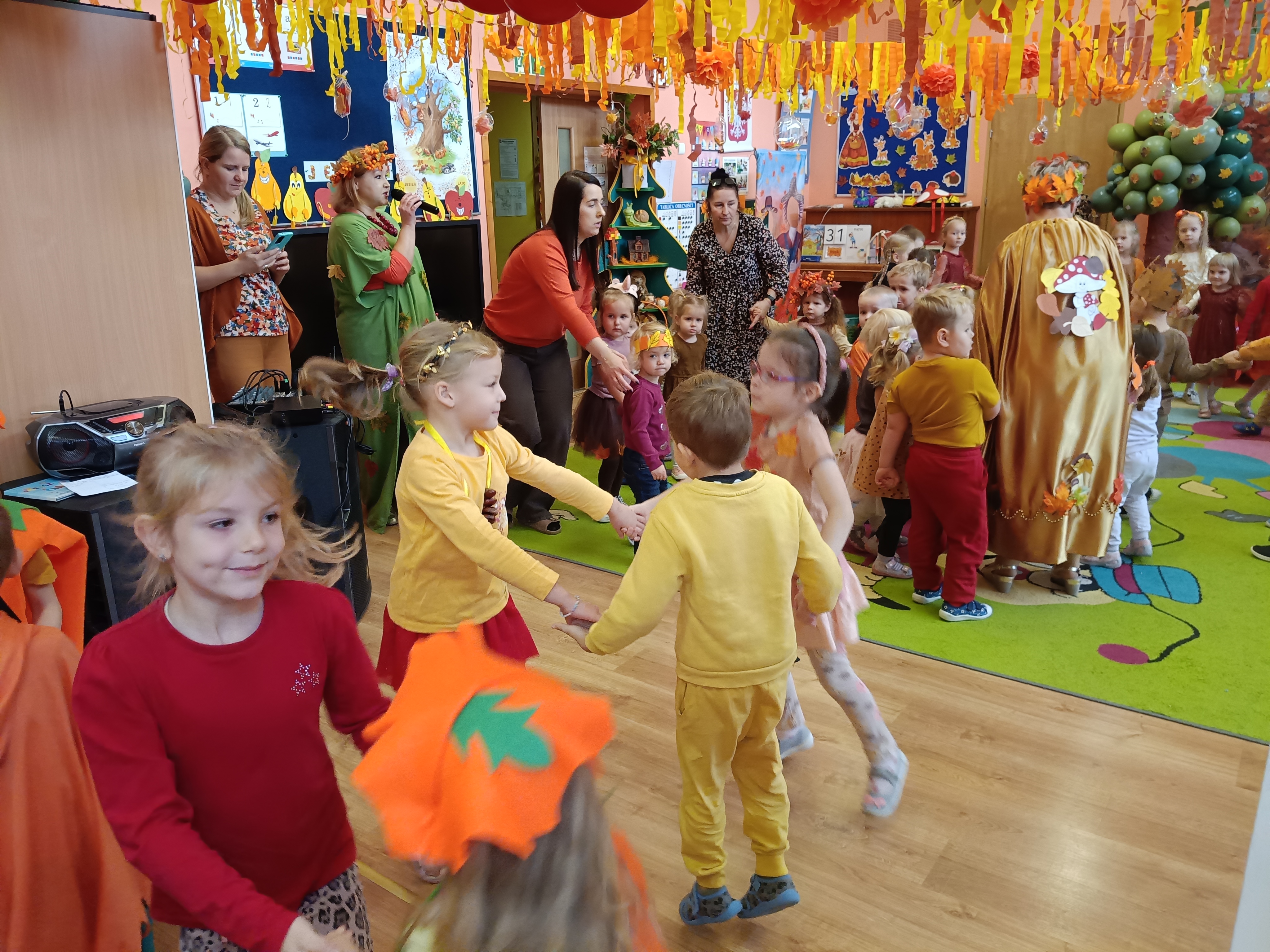 W piątek (31.10) w naszym przedszkolu odbył sie wielki Jesienny bal. W jesiennych strojach, ale z uśmiechami pełnymi słońca, bawiliśmy się doskonale.