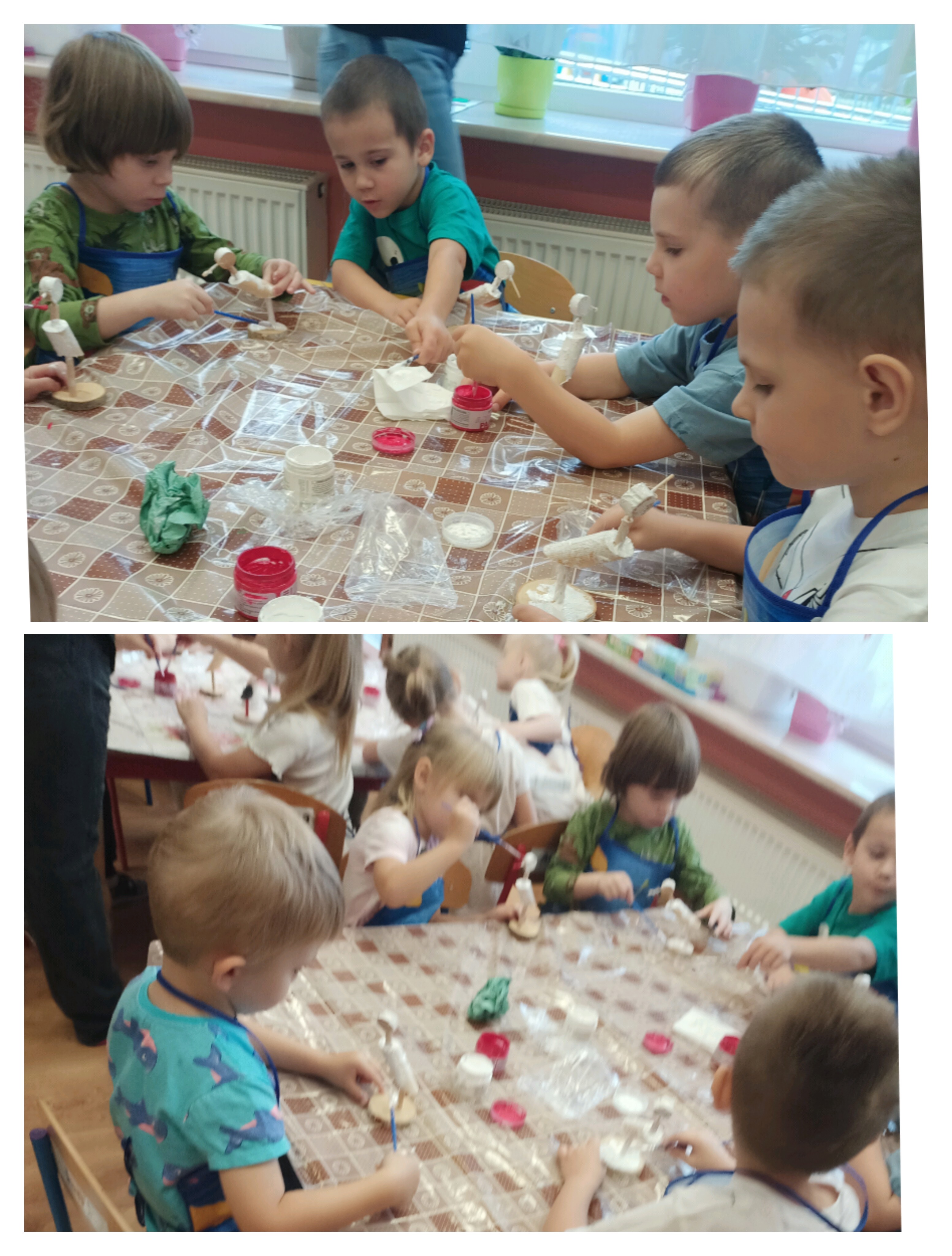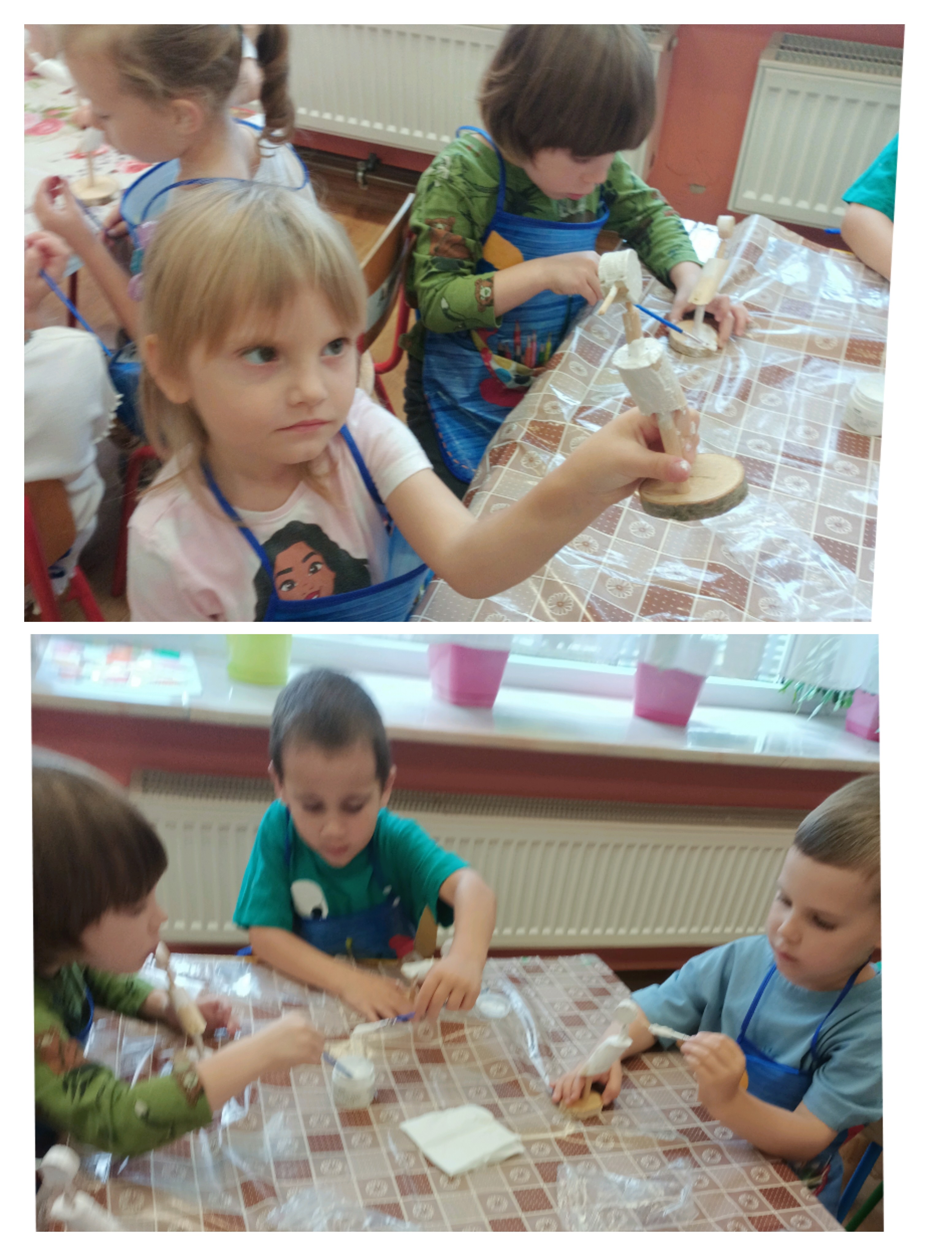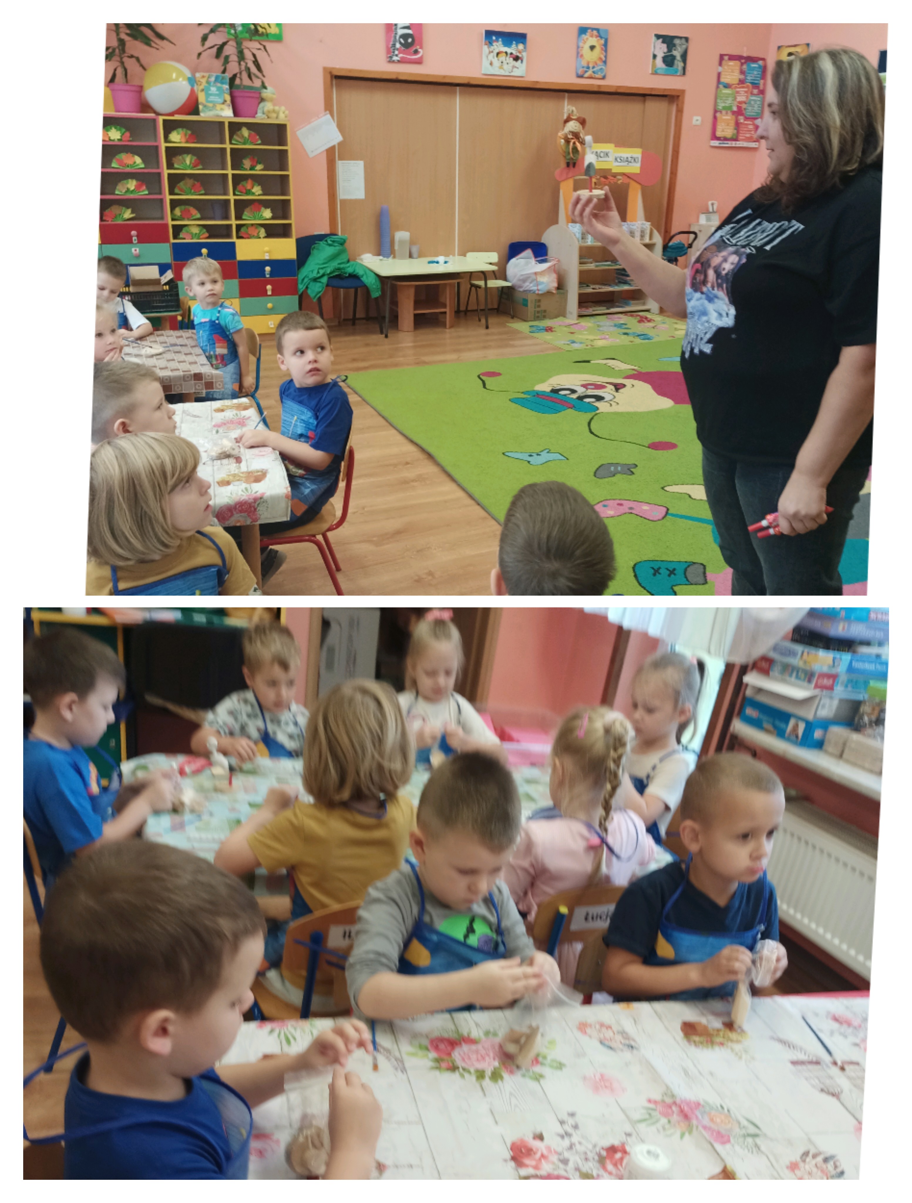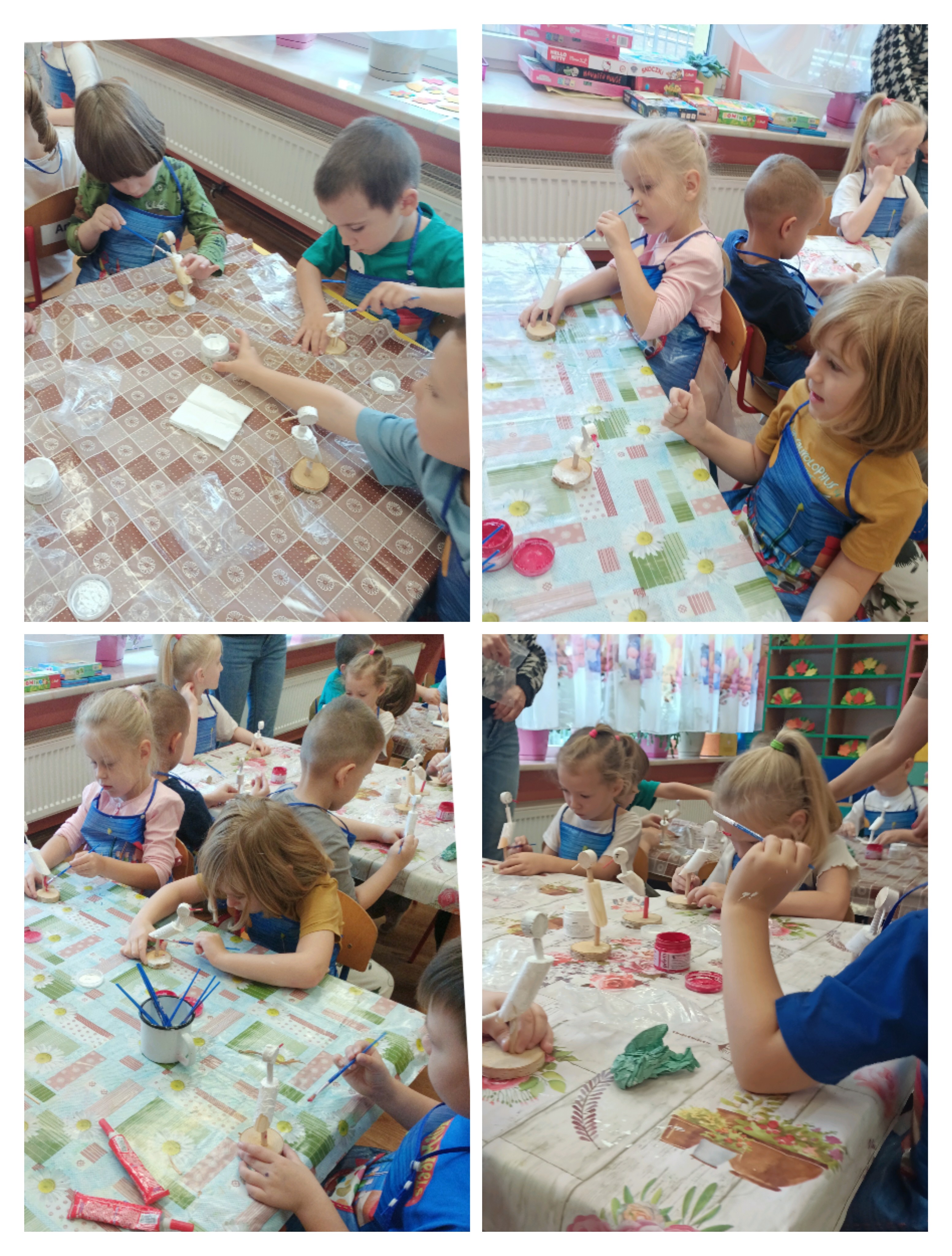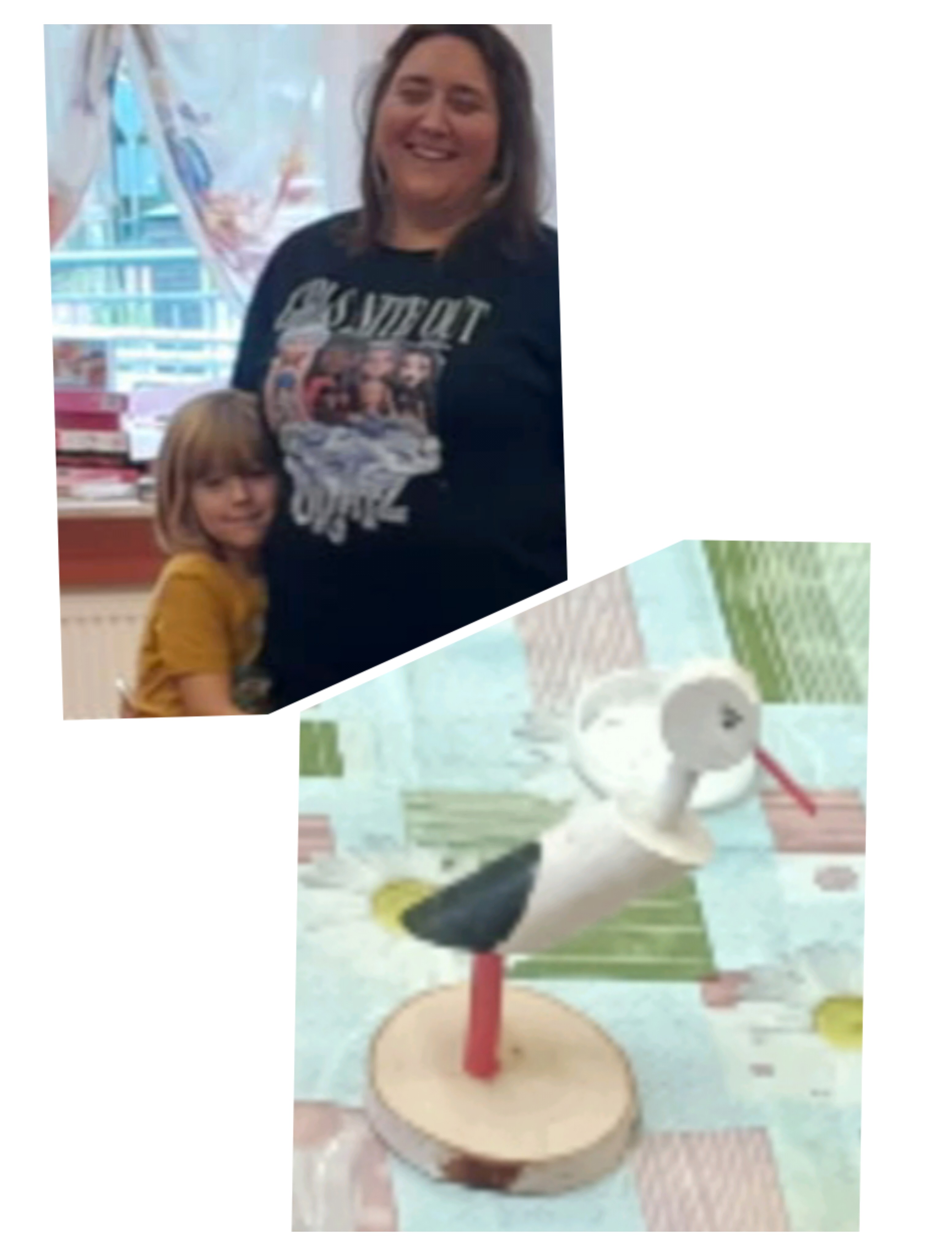 Mama naszego kolegi Illi przygotowała dla nas wyjątkową niespodziankę i zorganizowała warsztaty plastyczno-techniczne, podczas których dzieci, pod czujnym okiem naszego gościa, stworzyły pięknego bociana z drewna.