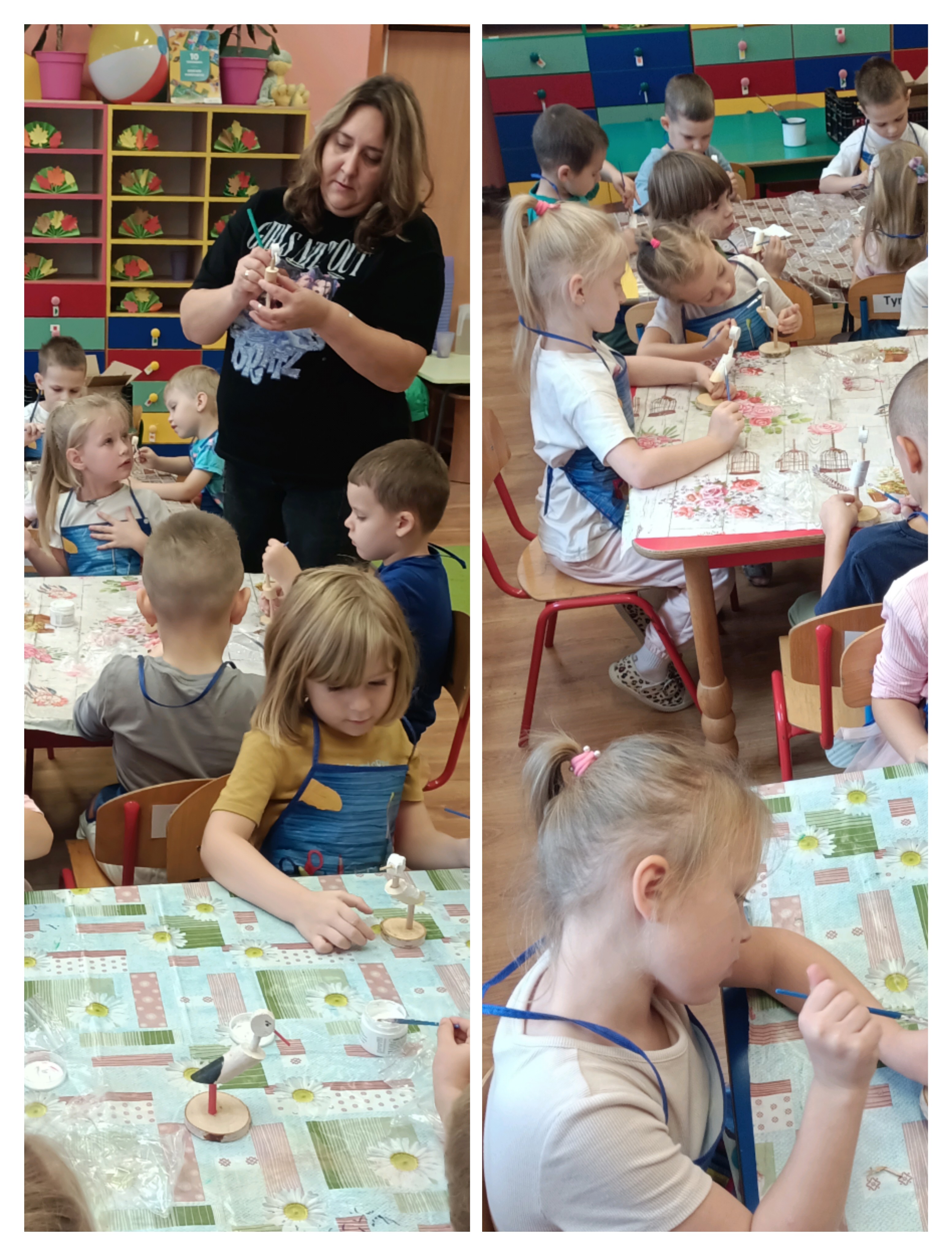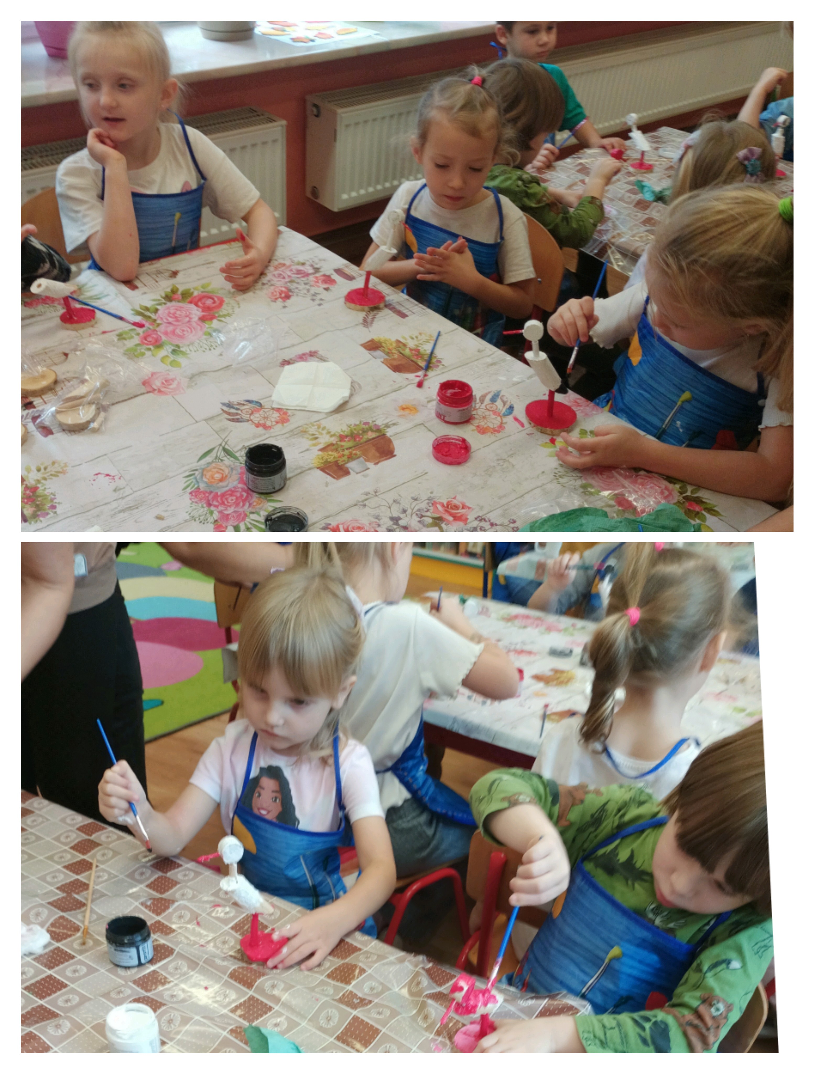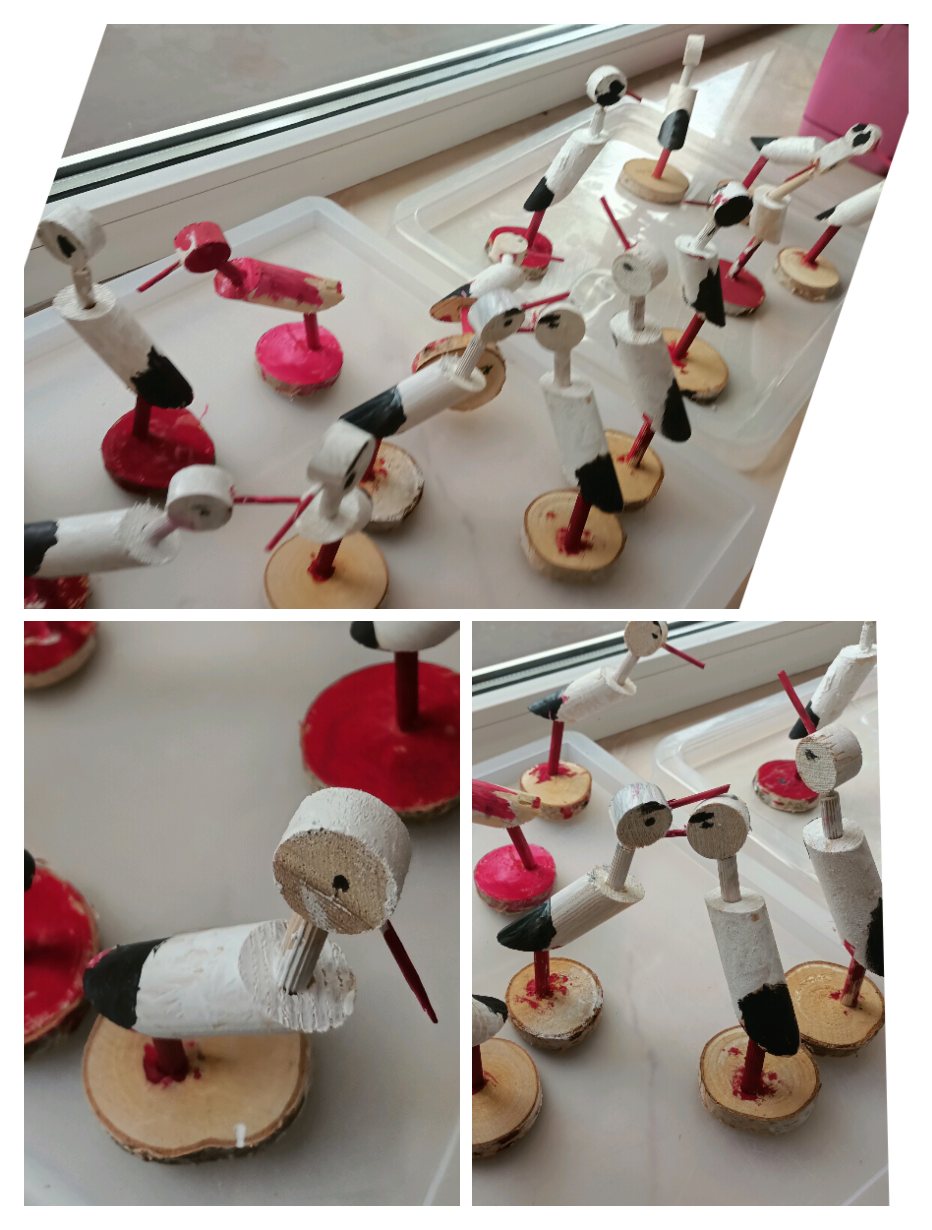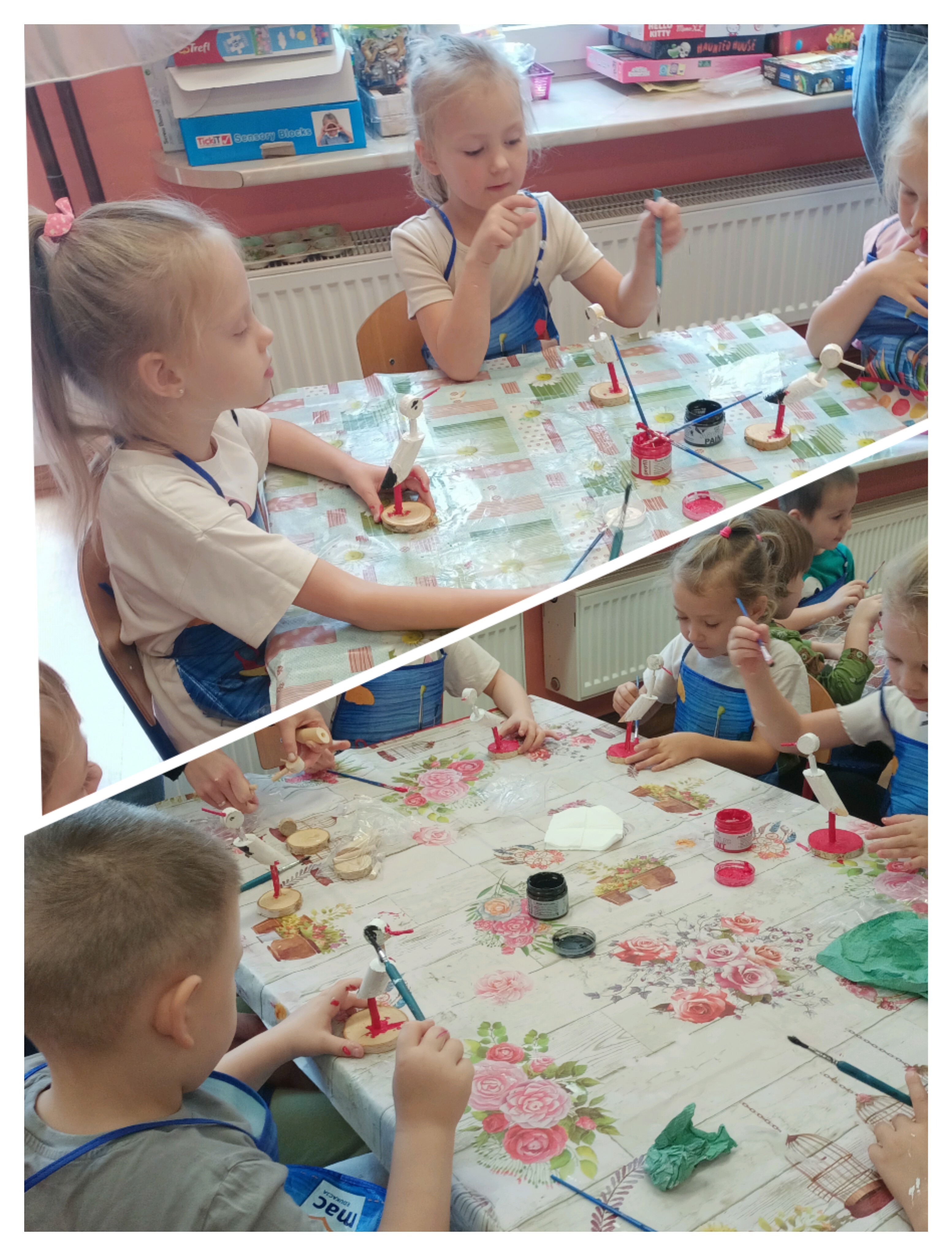 Najpierw wspólnie połączyliśmy wszystkie elementy, a następnie z radością pomalowaliśmy naszego bociana. Efekt? Bocian jak malowany!