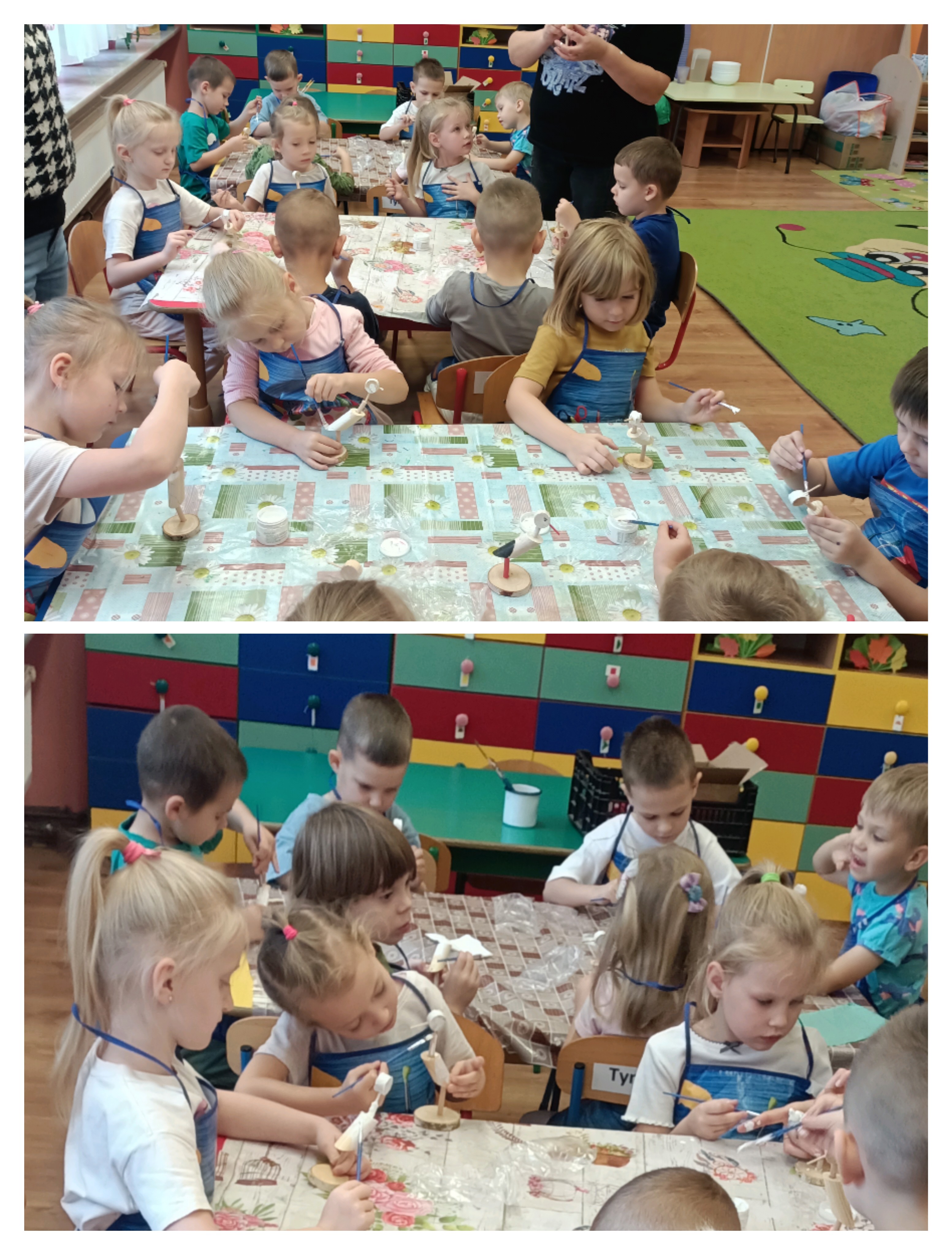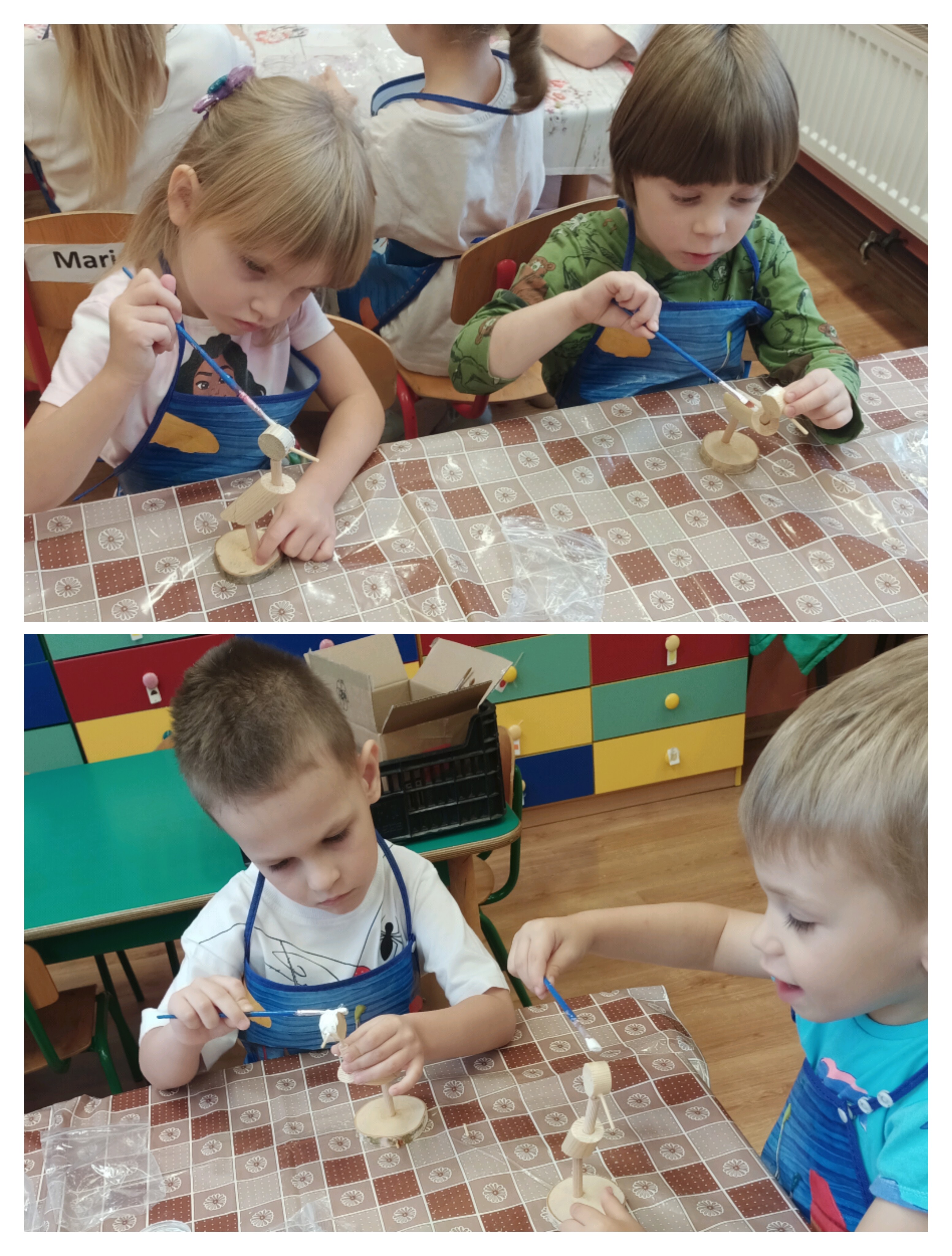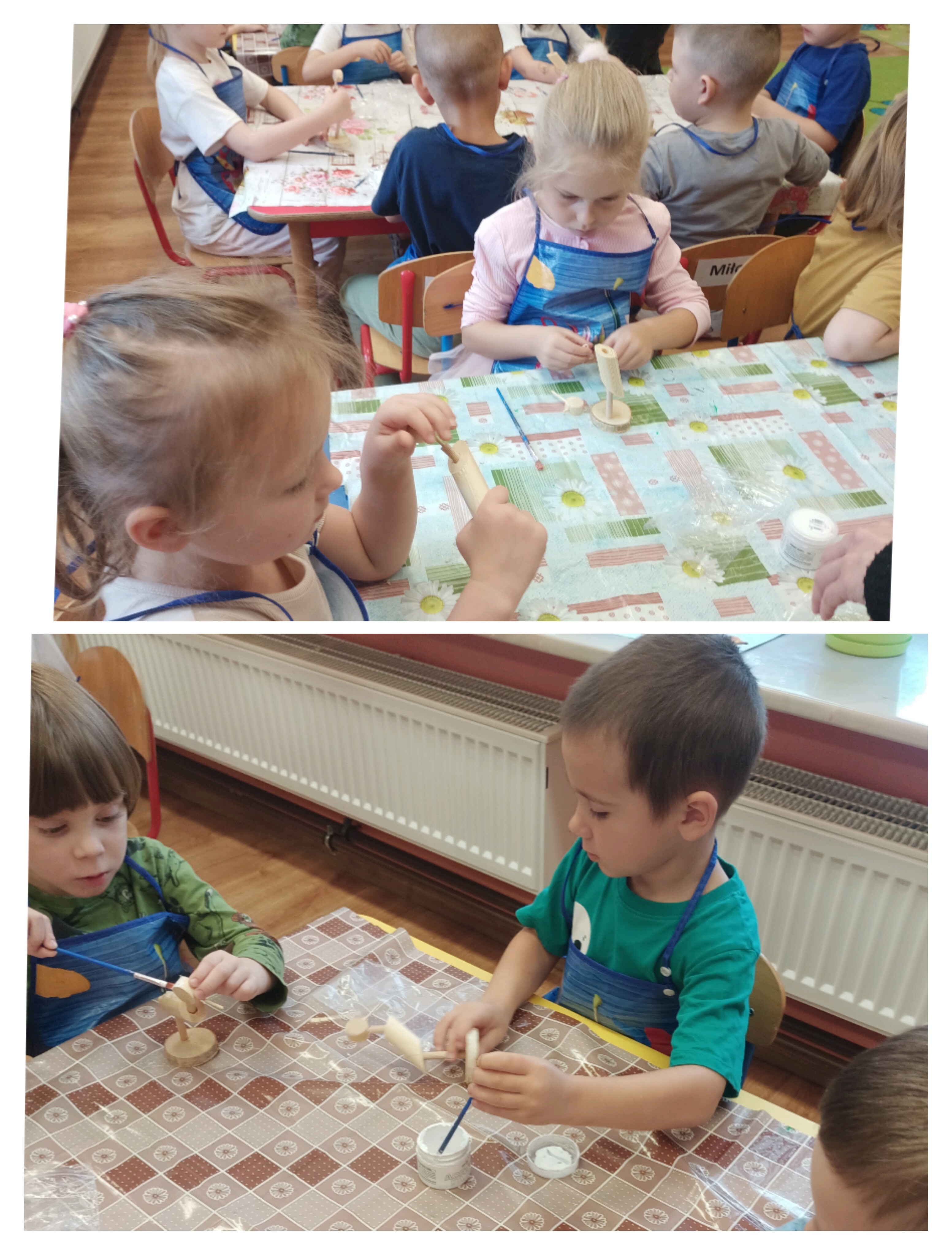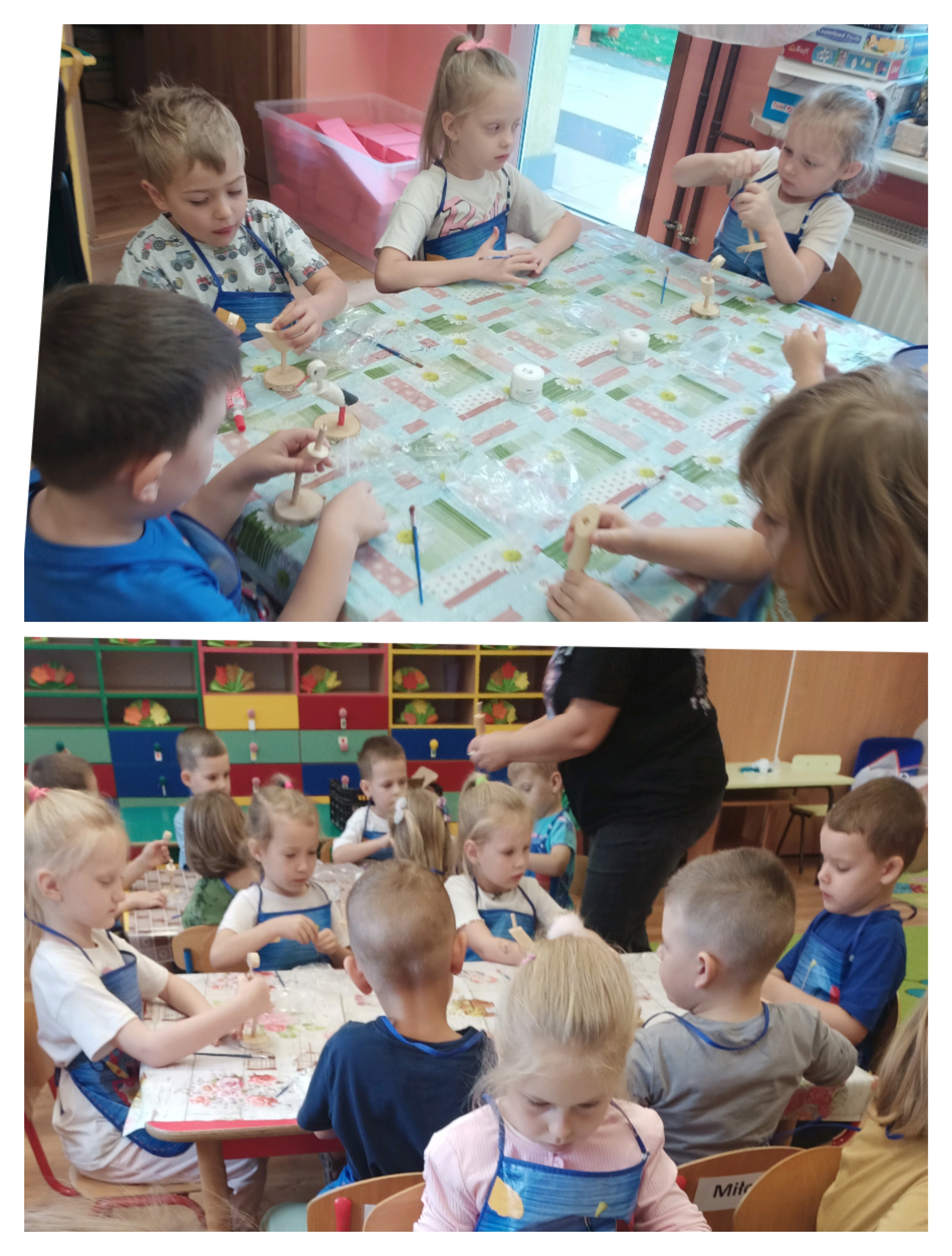Najpierw wspólnie połączyliśmy wszystkie elementy, a następnie z radością pomalowaliśmy naszego bociana. Efekt? Bocian jak malowany!