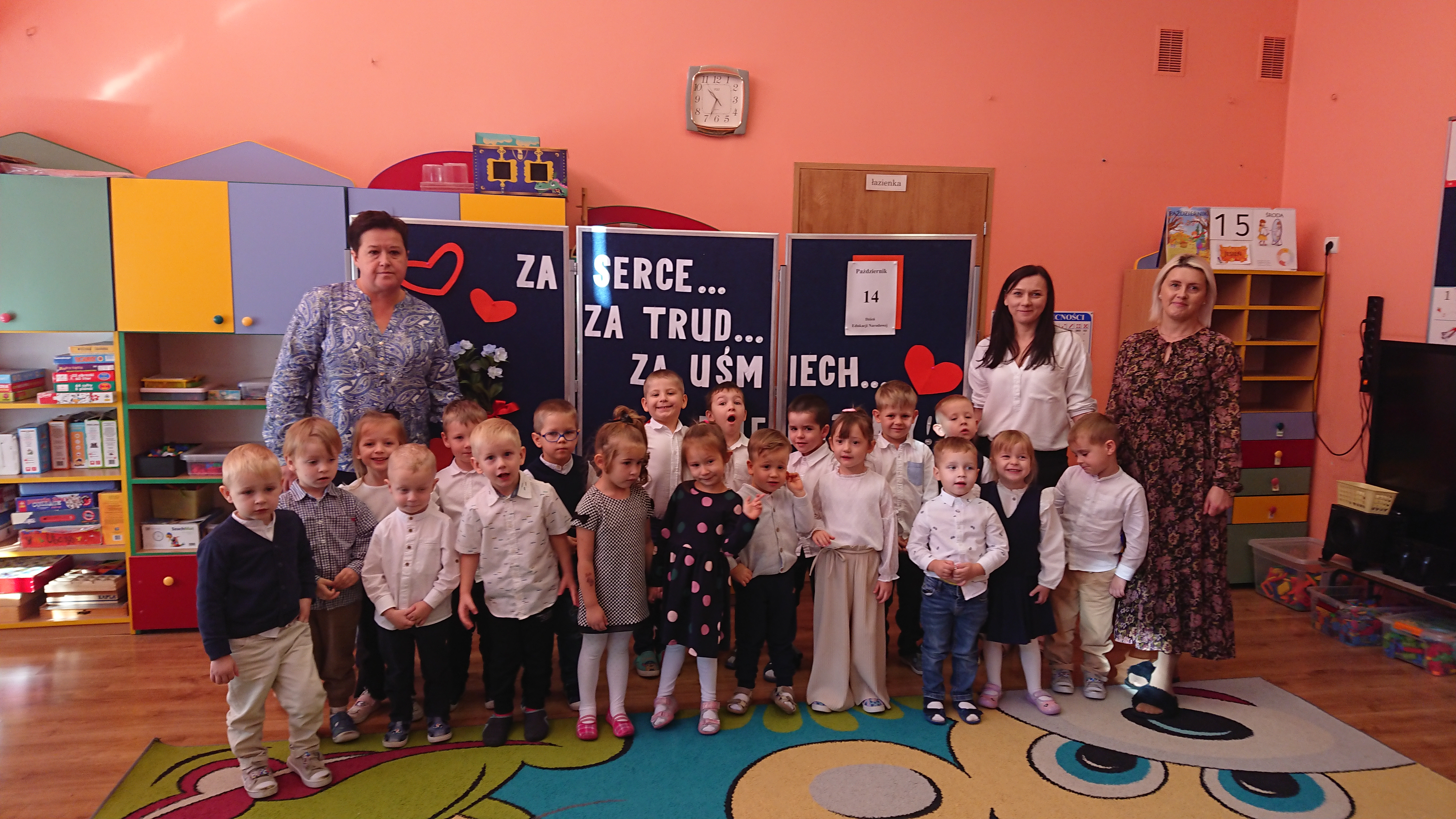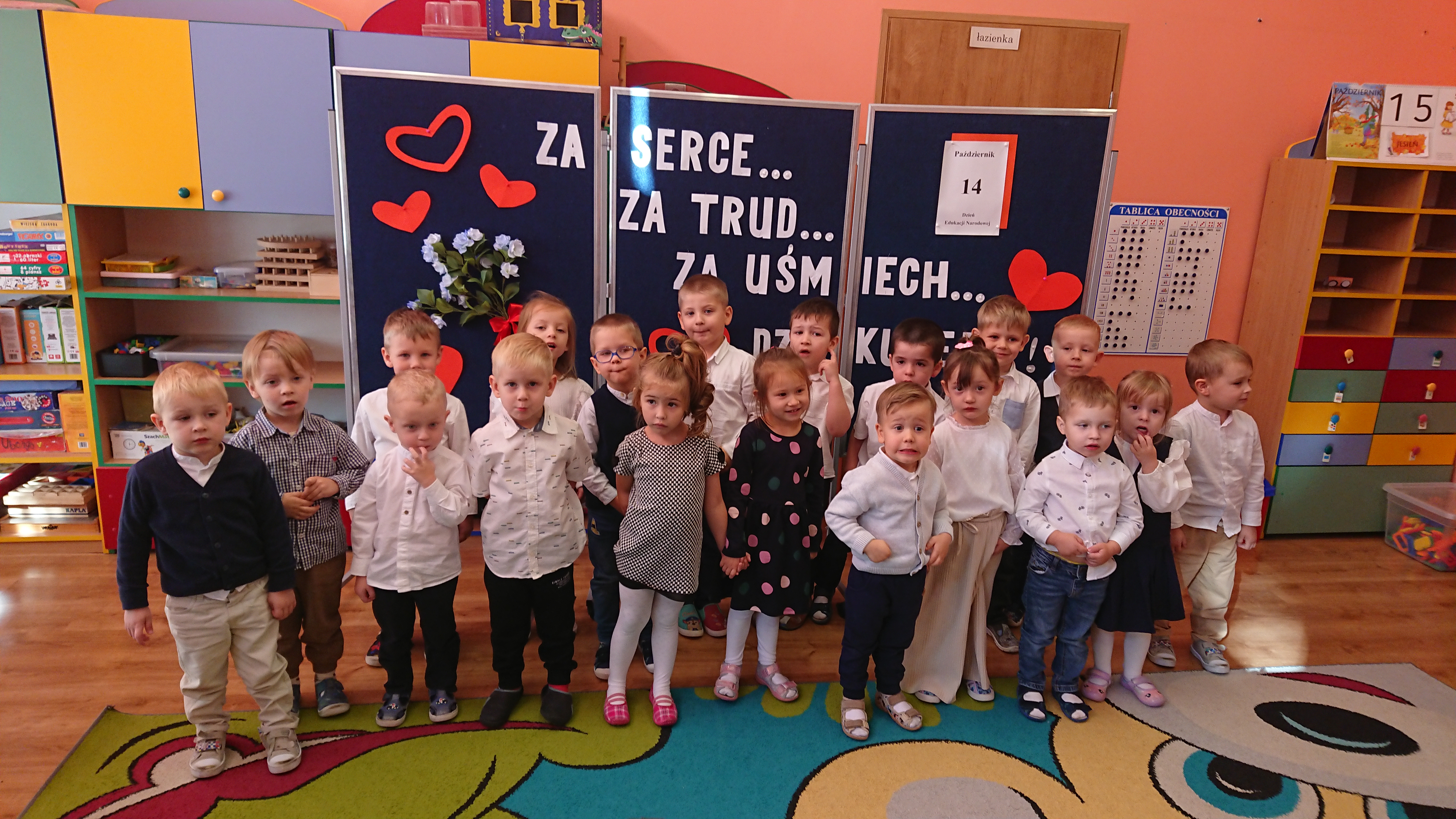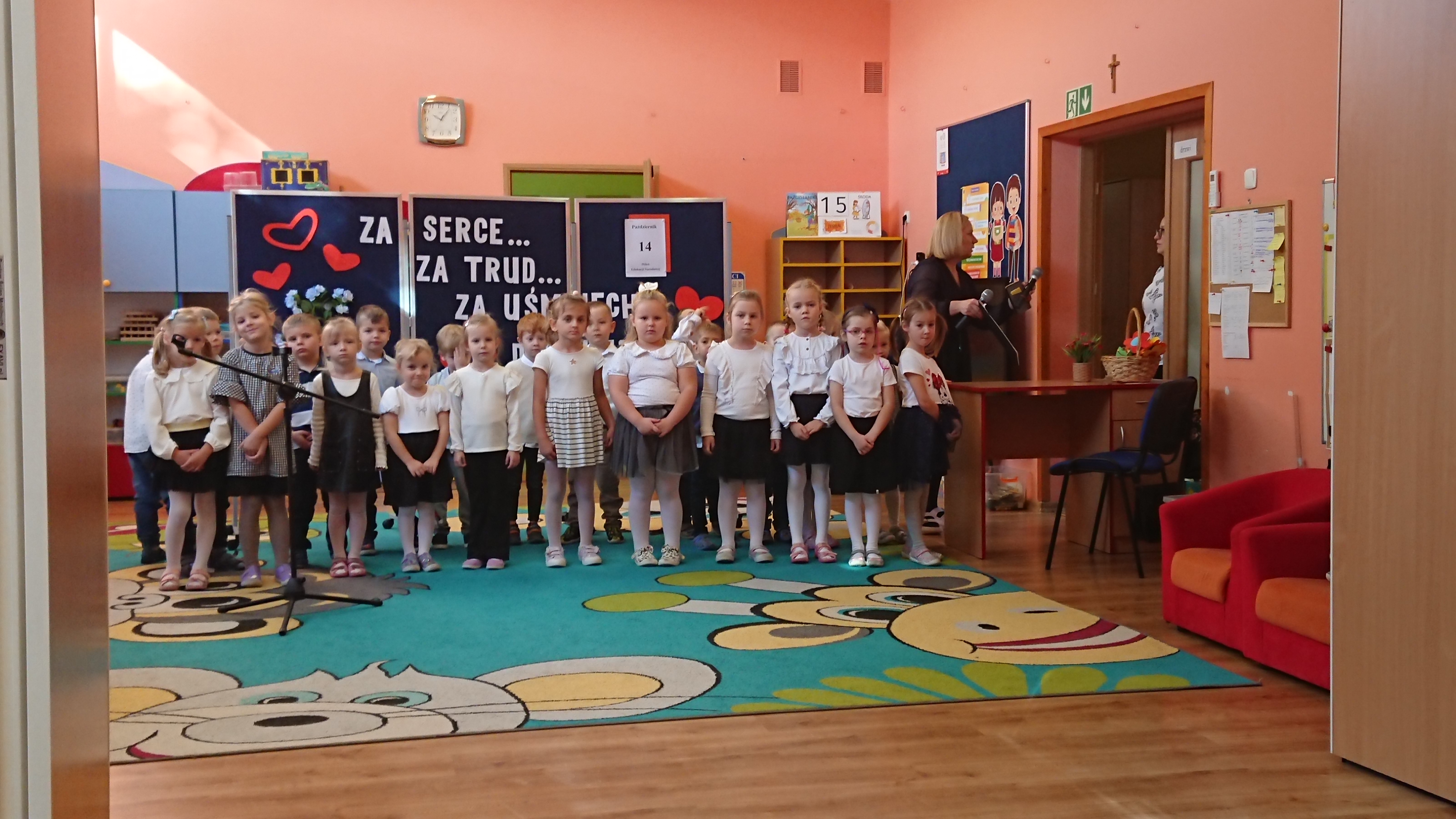 Dnia 15 października (środa), Elfy brały idział w przedszkolnych obchodach Dnia Edukacji Narodowej. Dzieci z grupy Smerfy, pod kierownictwem pani Kasi zaprezentowały humorystyczny program artystyczny przeplatany śpiewem piosenek. Na koniec uroczystości wszystkim pracownikom Przedszkola, Smerfy życzyły dużo zdrowia i uśmiechu a chłopcy zaprosili Panie do wspólnego tańca.