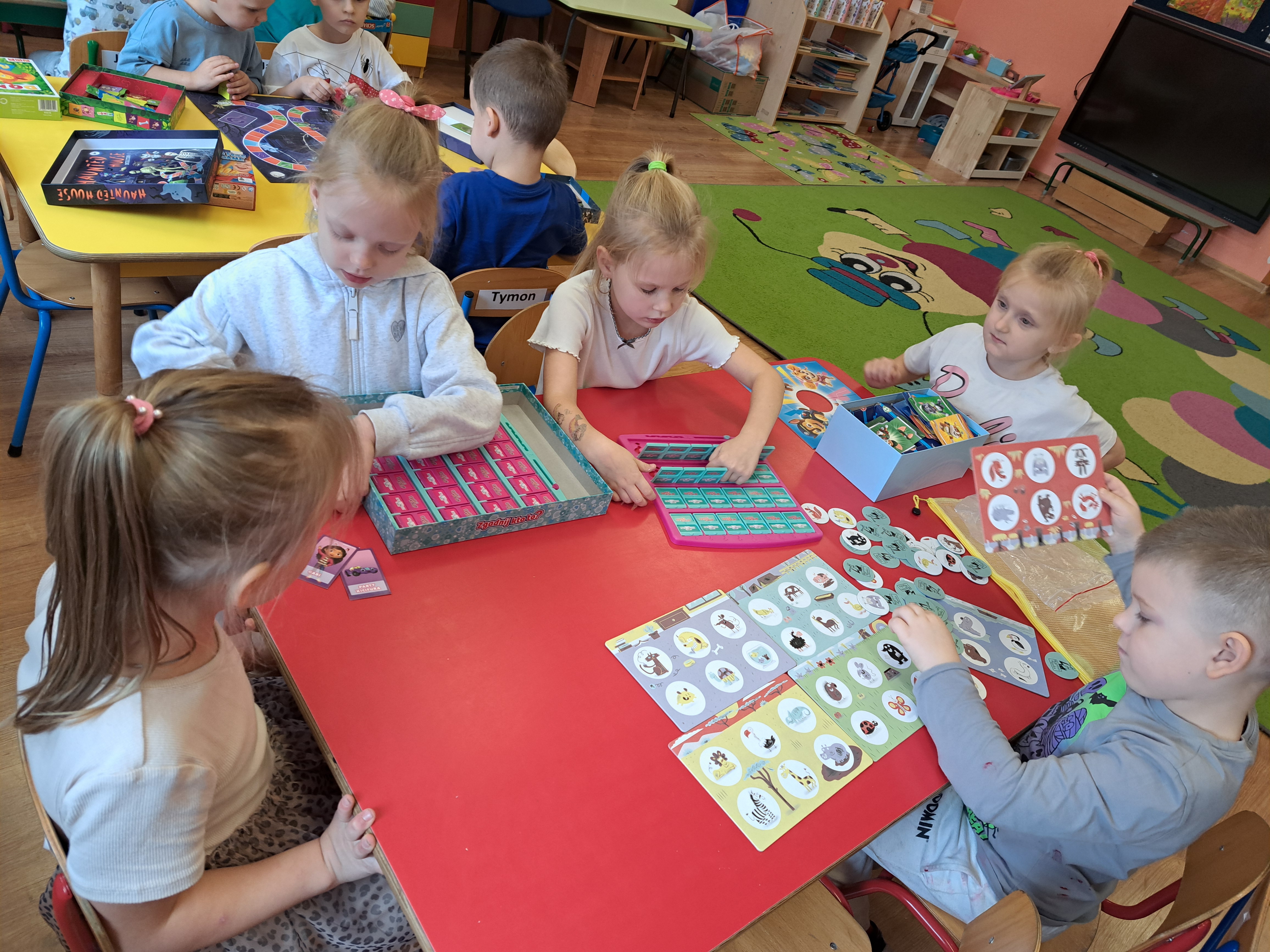W piątek-10 października, w naszej grupie obchodziliśmy DZIEŃ GIER PLANSZOWYCH .Była to wspaniała okazja do świętowania, edukowania, integrowania i przede wszystkim - grania w gry planszowe. Podczas zabawy przedszkolaki uczyły się cierpliwości, zasad fair play, współdziałania w grupie, oraz rozwijały logiczne myślenie. To był dzień pełen emocji, nauki i dobrej zabawy!