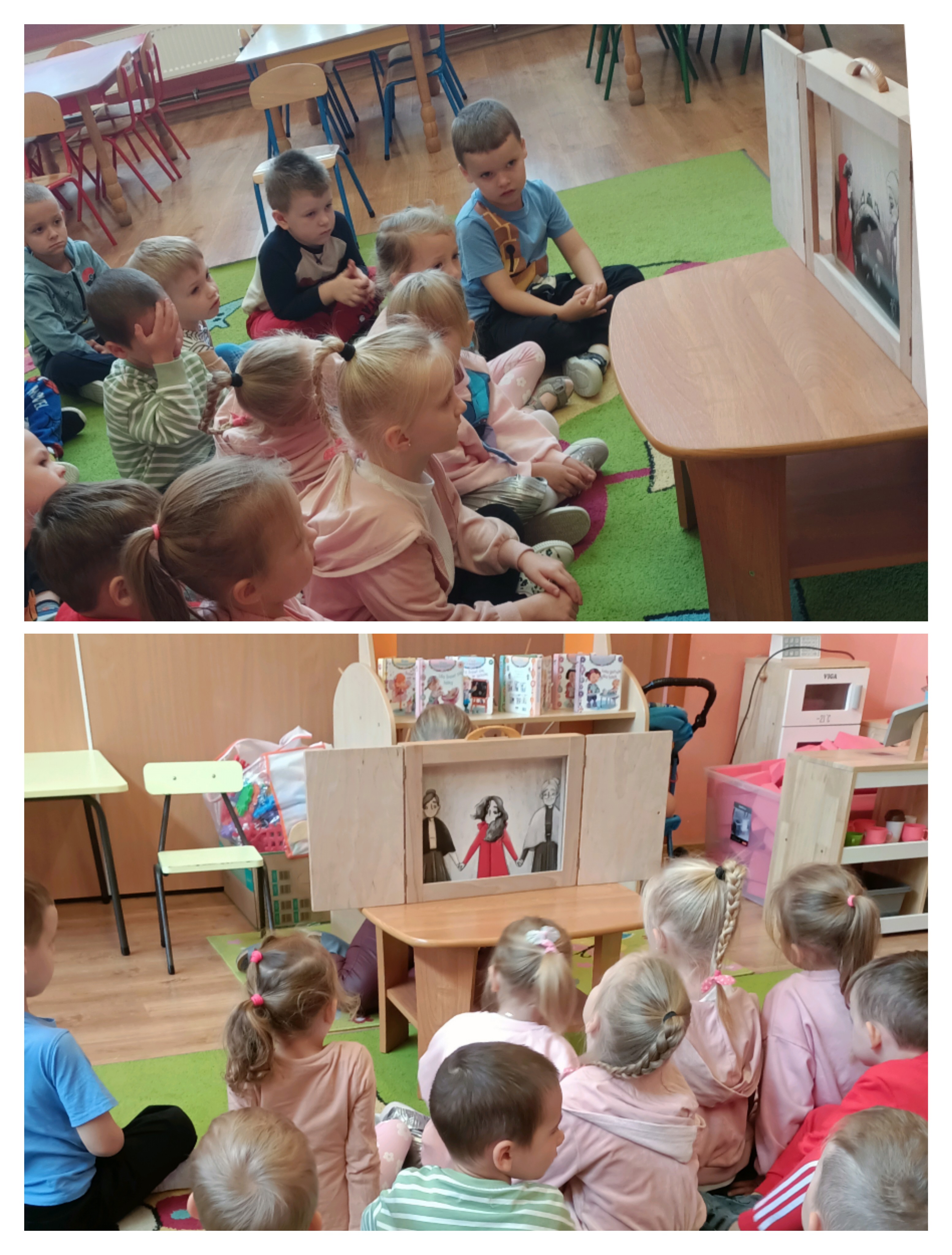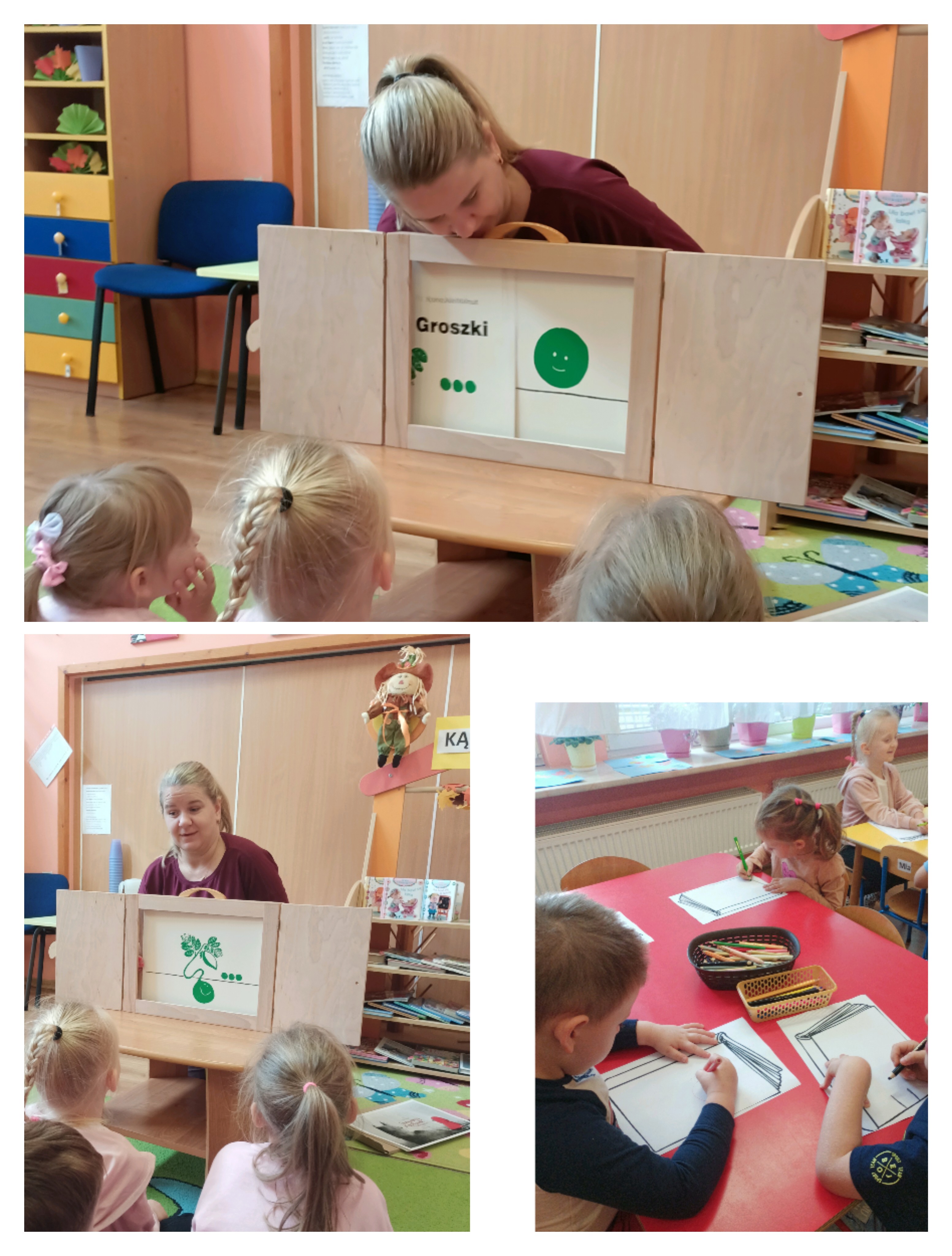 Dzieci wysłuchały bajki o Czerwonym Kapturku oraz opowieści o groszku. Taka forma przedstawienia wzbudziła duże zainteresowanie wśród wychowanków.