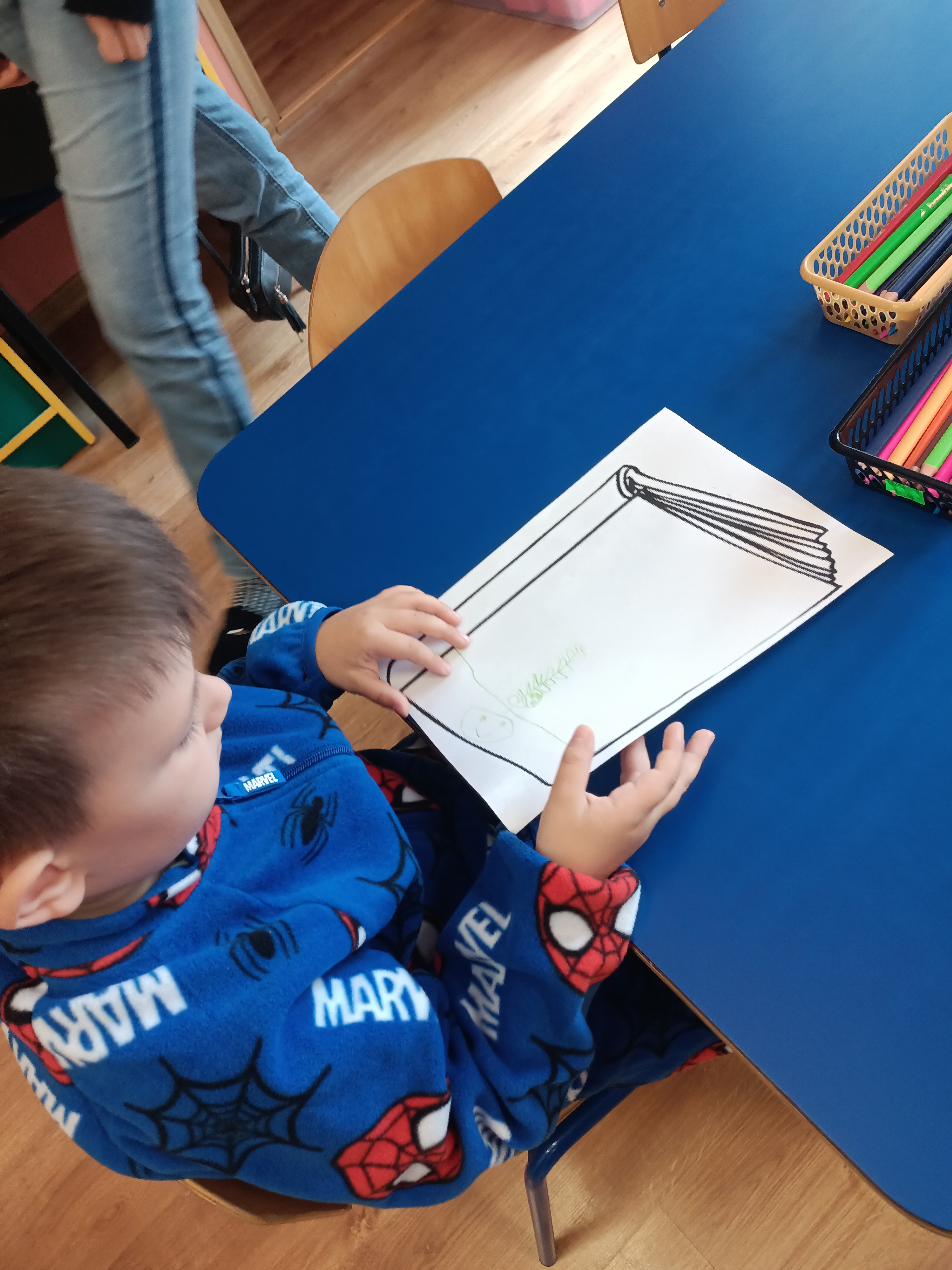 Na zakończenie dzieci z grupy Misie otrzymały zadanie – zilustrowały fragment wysłuchanej bajki, rozwijając swoją kreatywność i wyobraźnię.