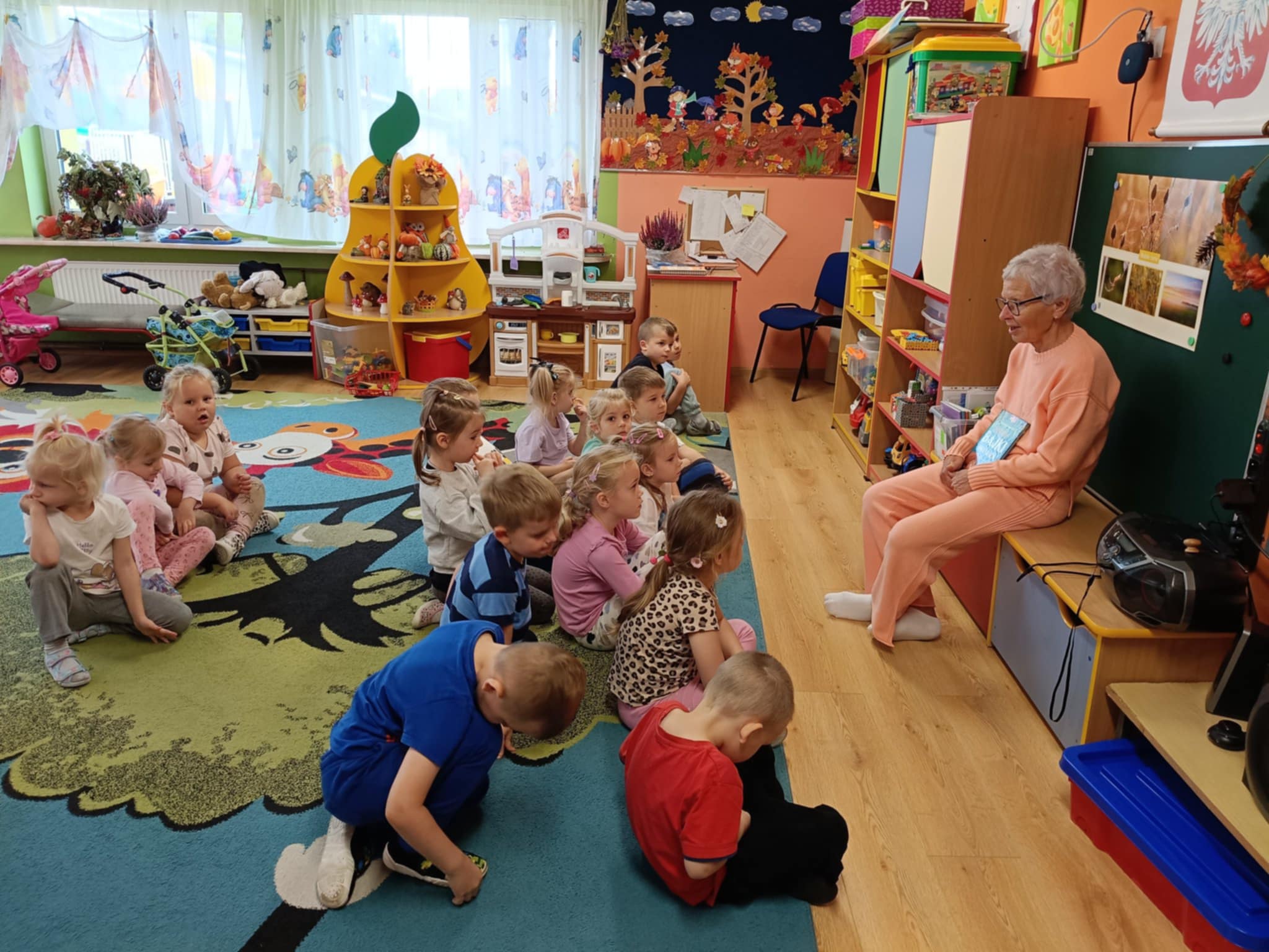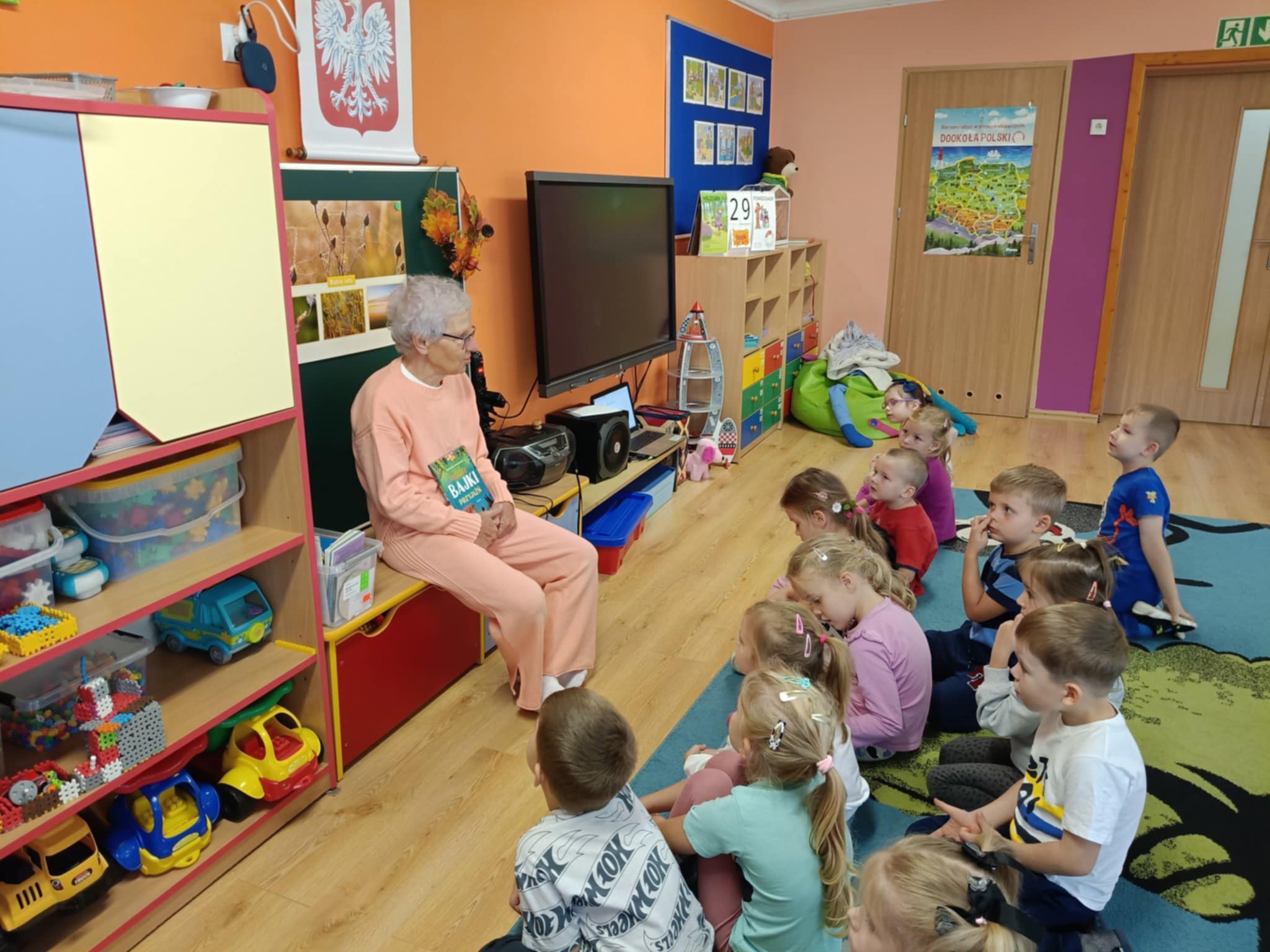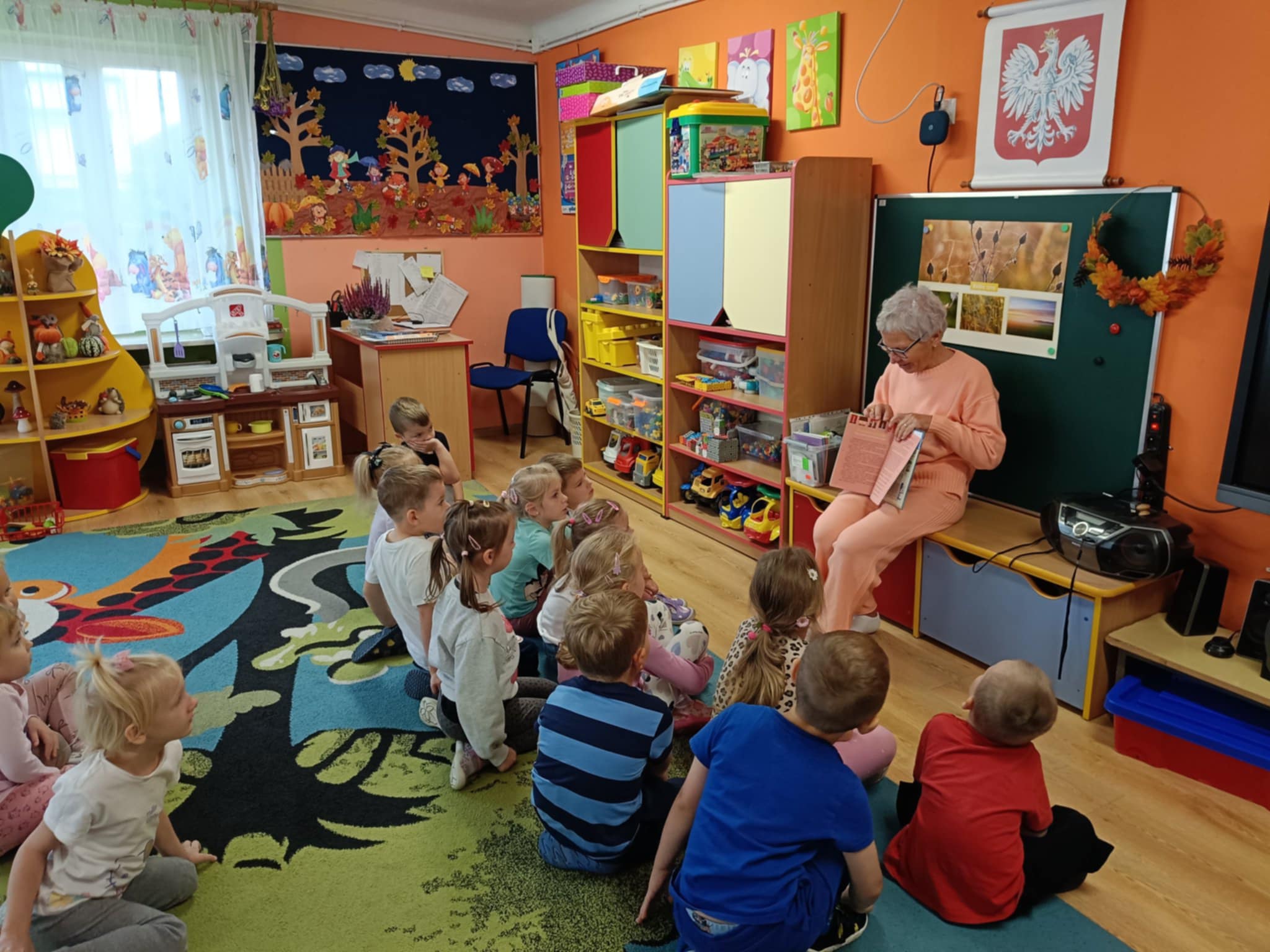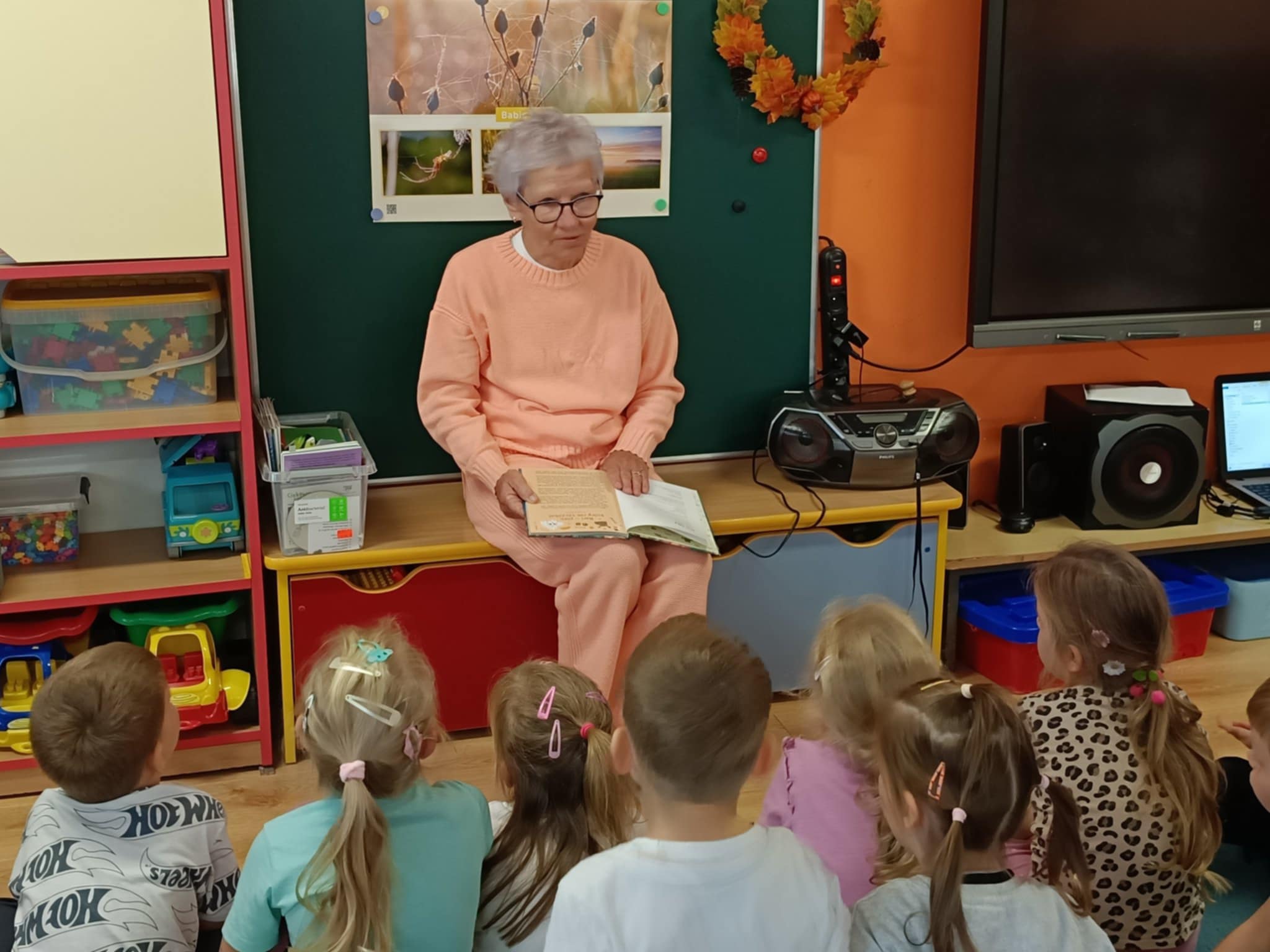 29 wrzesień to w kalendarzu świąt nietypowych Dzień Głośnego Czytania. Naszą grupę, kolejny już raz, odwiedziła pani Jola, emerytowana nauczycielka naszego przedszkola. Pani Jola przeczytała nam piękną i mądrą bajkę pt. „Bari – pies, który nie szczekał” z książki Agnieszki Antosiewicz „Mądre bajki. Przyjaźń”. Pani Jola przyniosła też nam, słodką niespodziankę. Bardzo dziękujemy za miłe spotkanie.