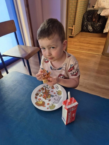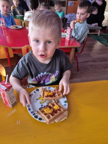 W przedszkolu na podwieczorek były gofry. Każdy mógł wybrać swoje ulubione: