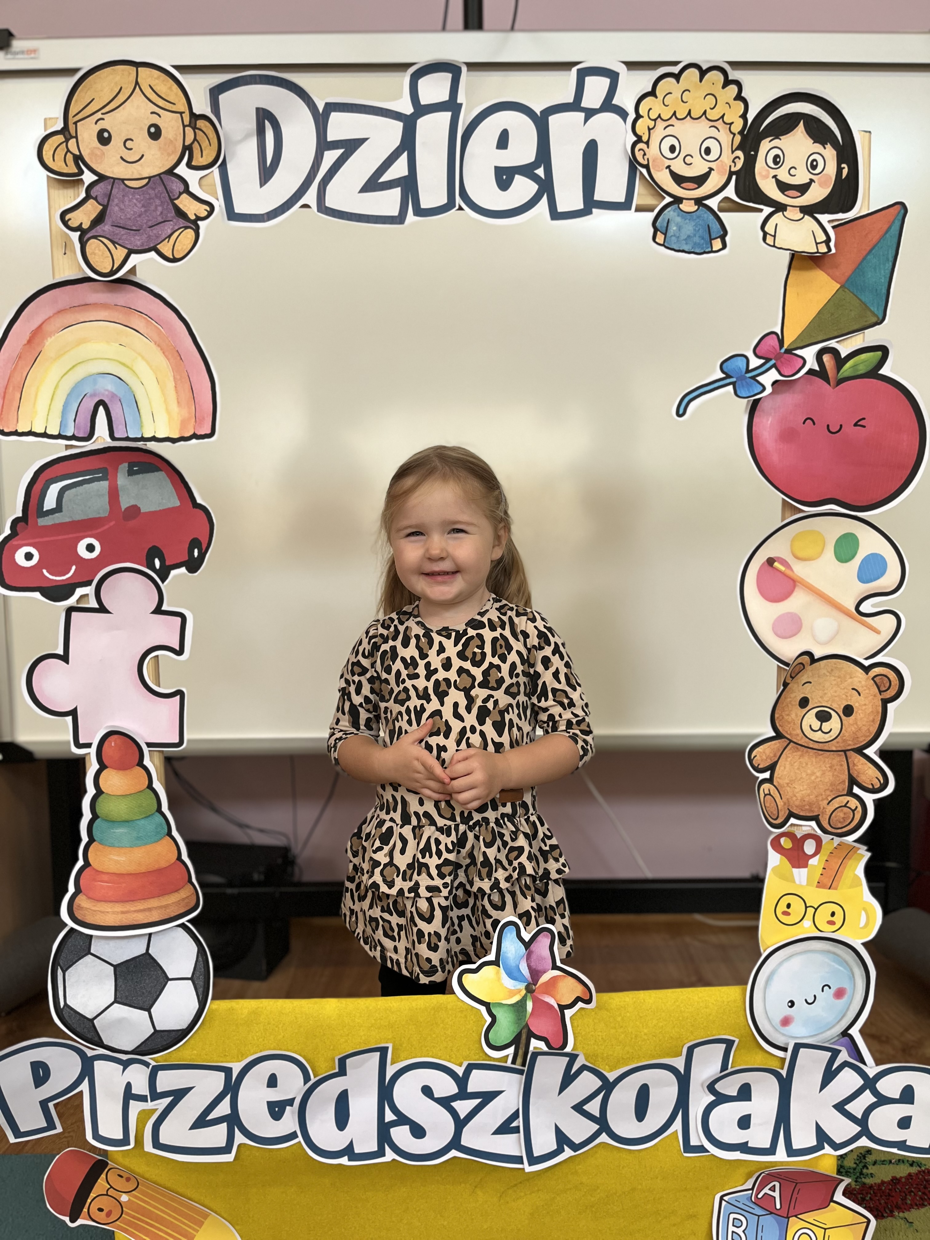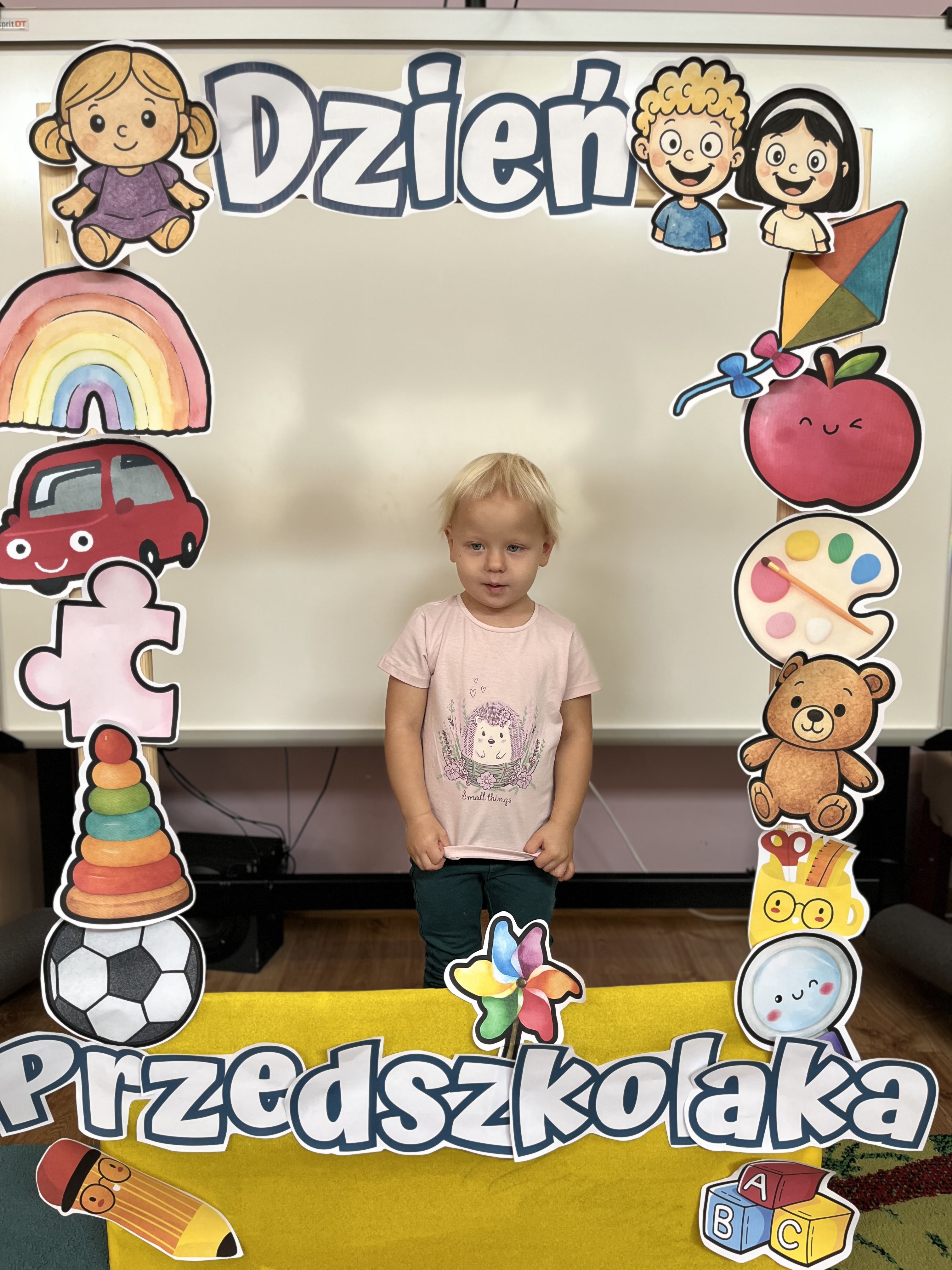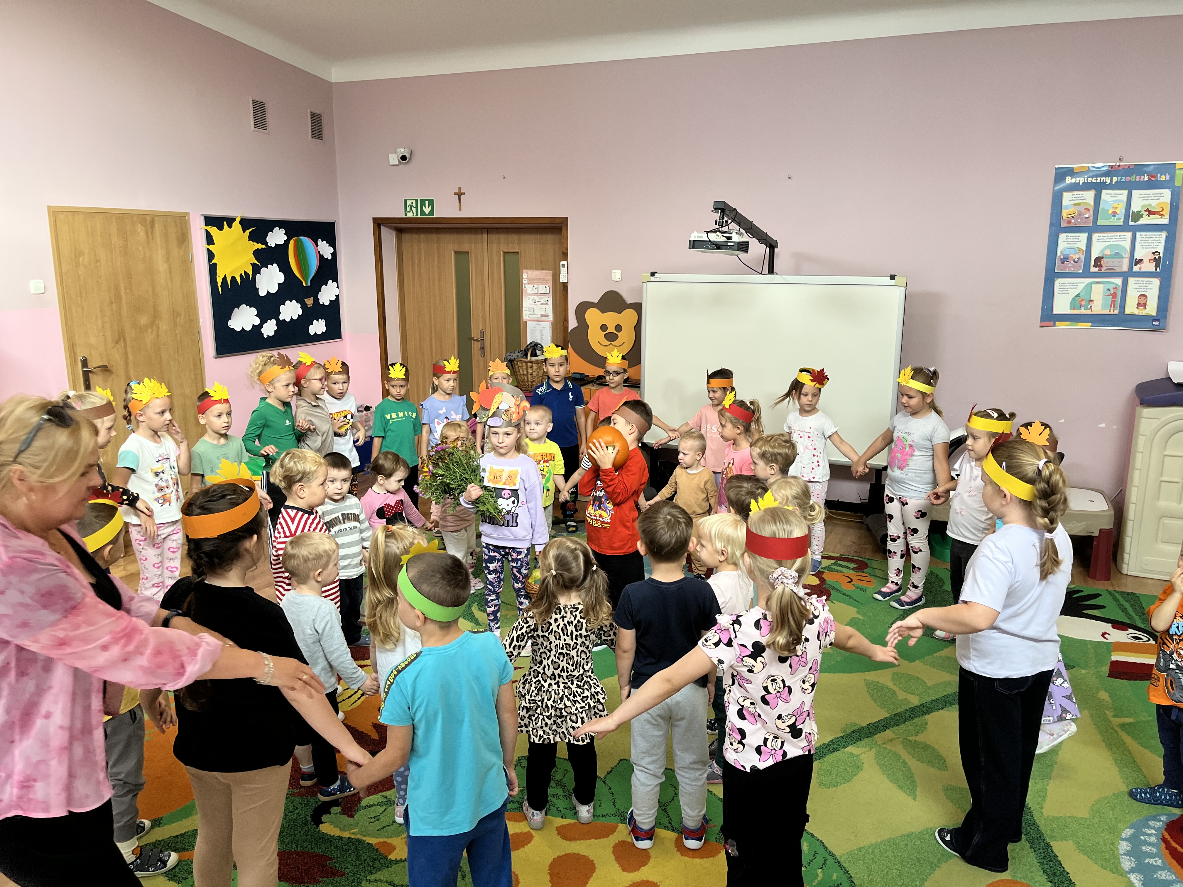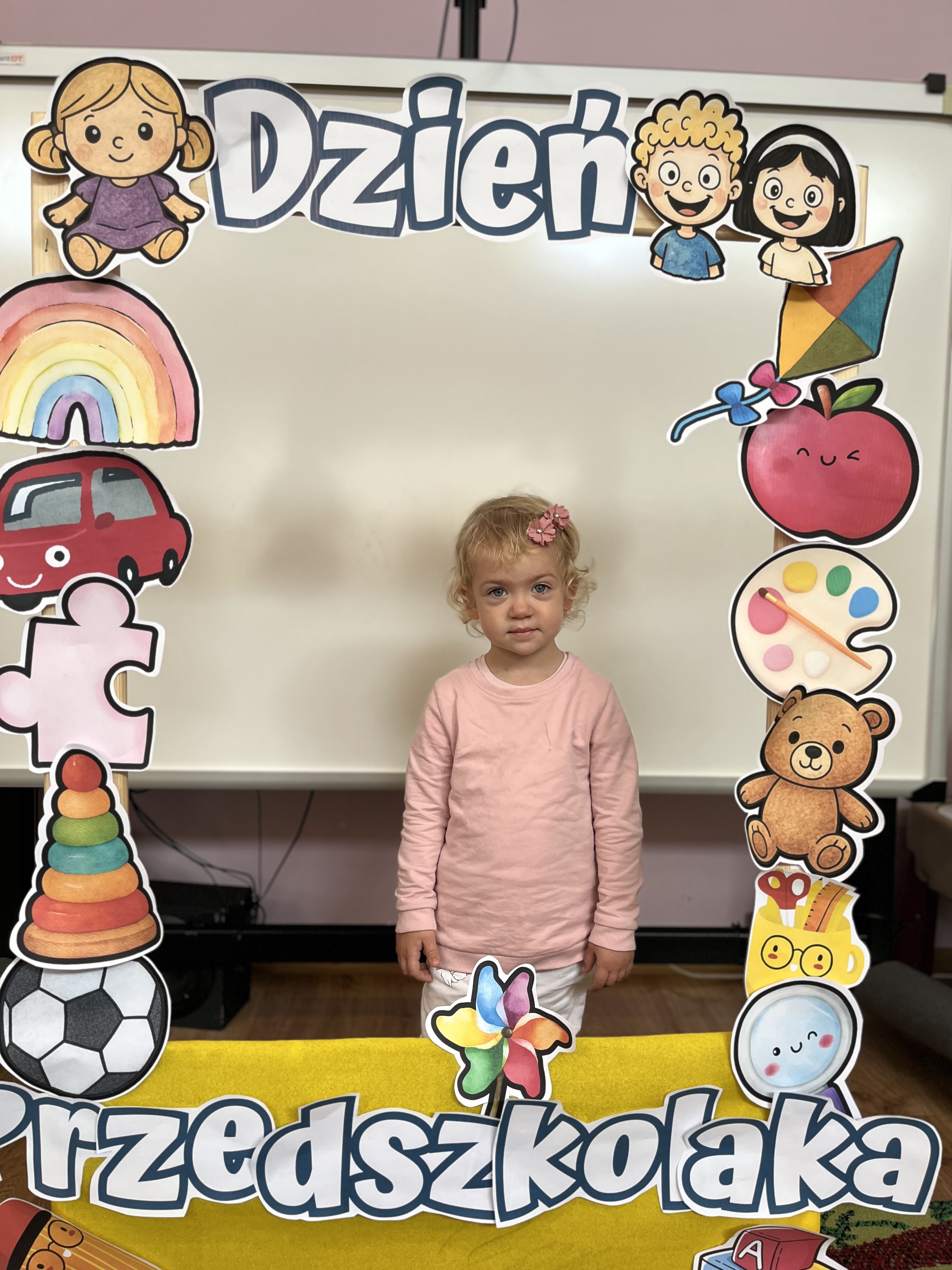 23 września w grupie Pszczółek obchodziliśmy Dzień Przedskolaka. Zaraz po śniadaniu zrobiliśmy sesję zdjeciową w naszej kolorowej "foto budce" a później jak na uroczyste święto przystało był "tort", na którym każdy mógł przykleić swoją świeczuszkę. Dzieci były zachwycone tymi zadaniami. Cały dzień przebiegał nam bardzo radośnie. Dodatkowo, z okazji pierwszego dnia jesieni odwiedziła nas najstarsza grupa, czyli Zajączki, które zaprezentowały nam piosenkę "Przebojowa jesień". Pszczółki z radością włączyły się w improwizację ruchową piosenki obserwując starsze kolażanki i kolegów.
