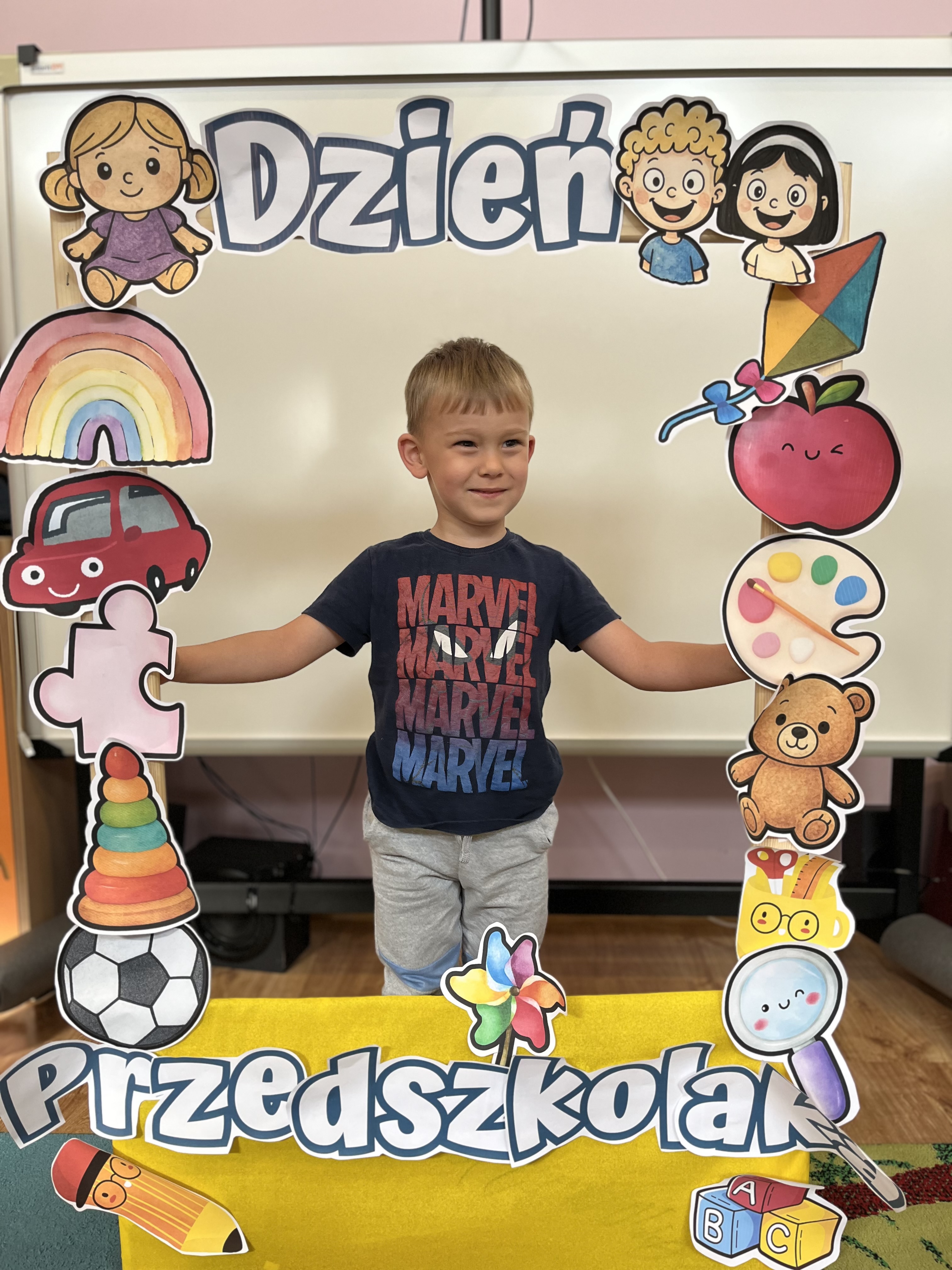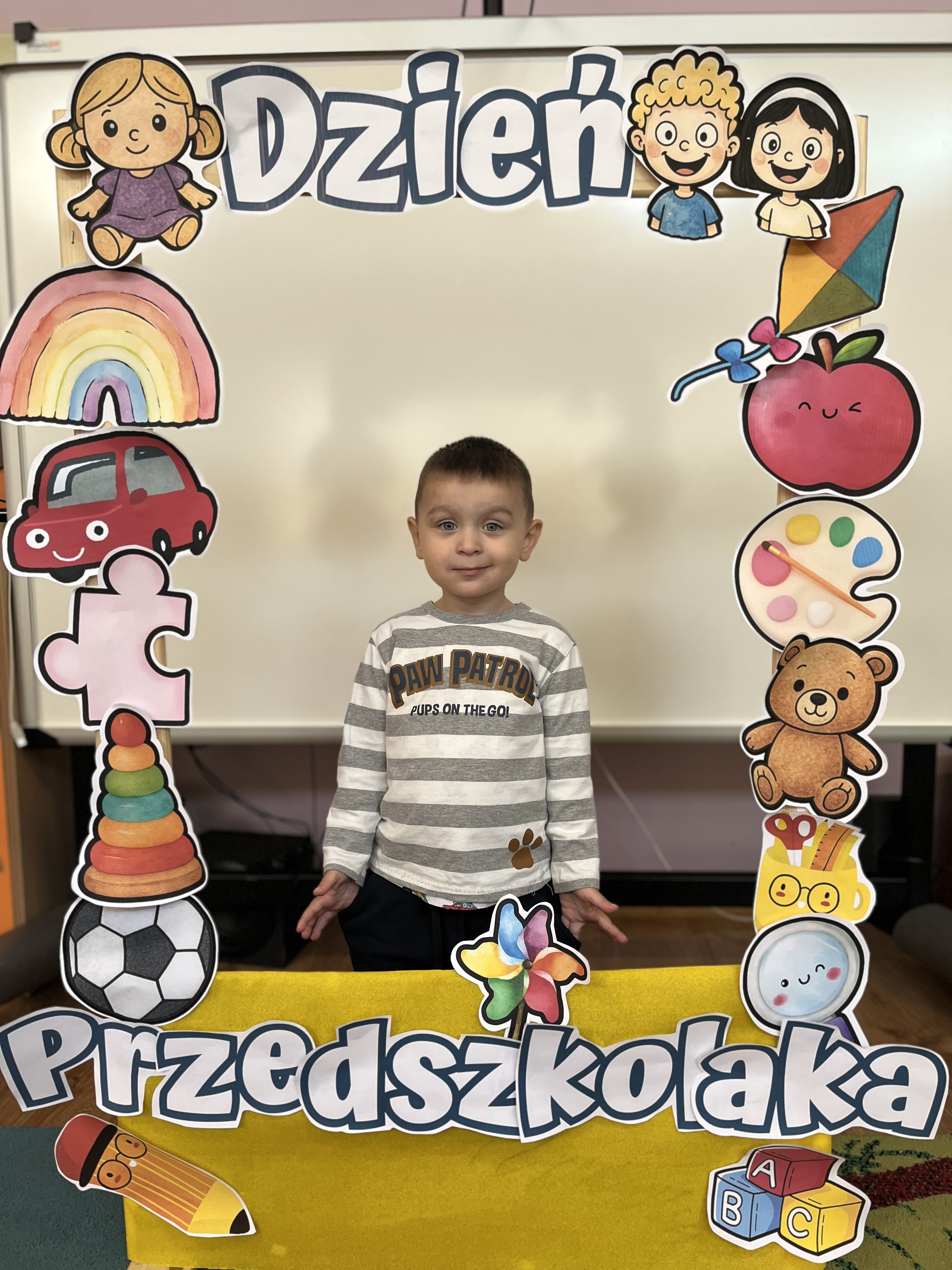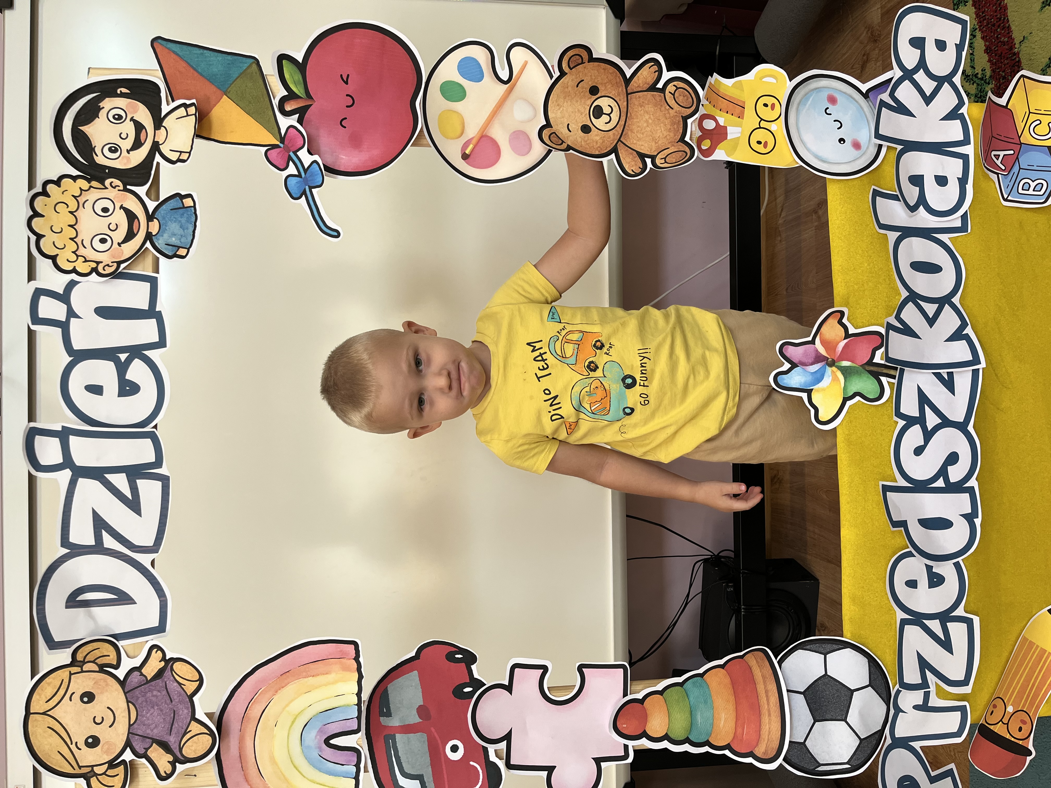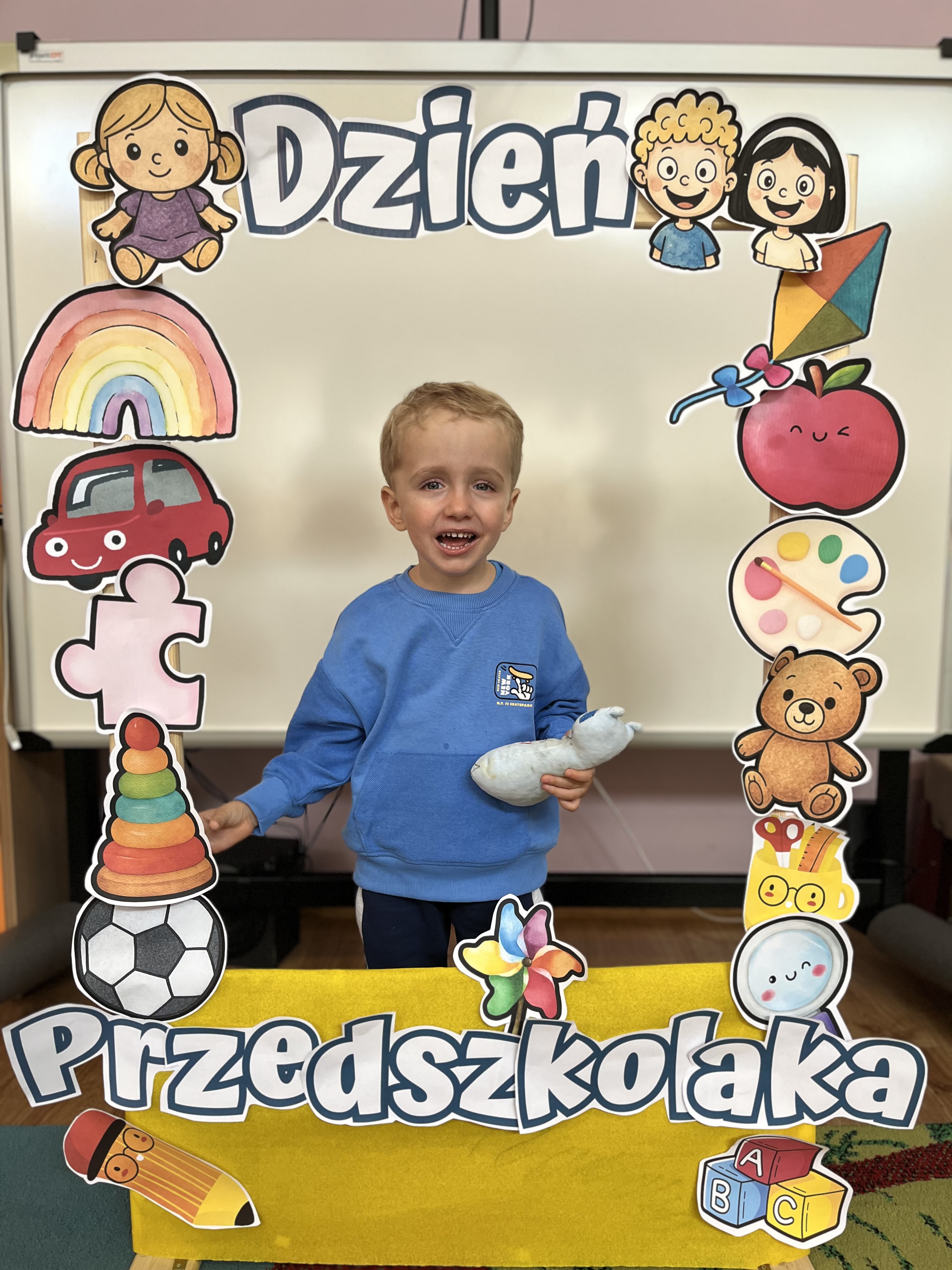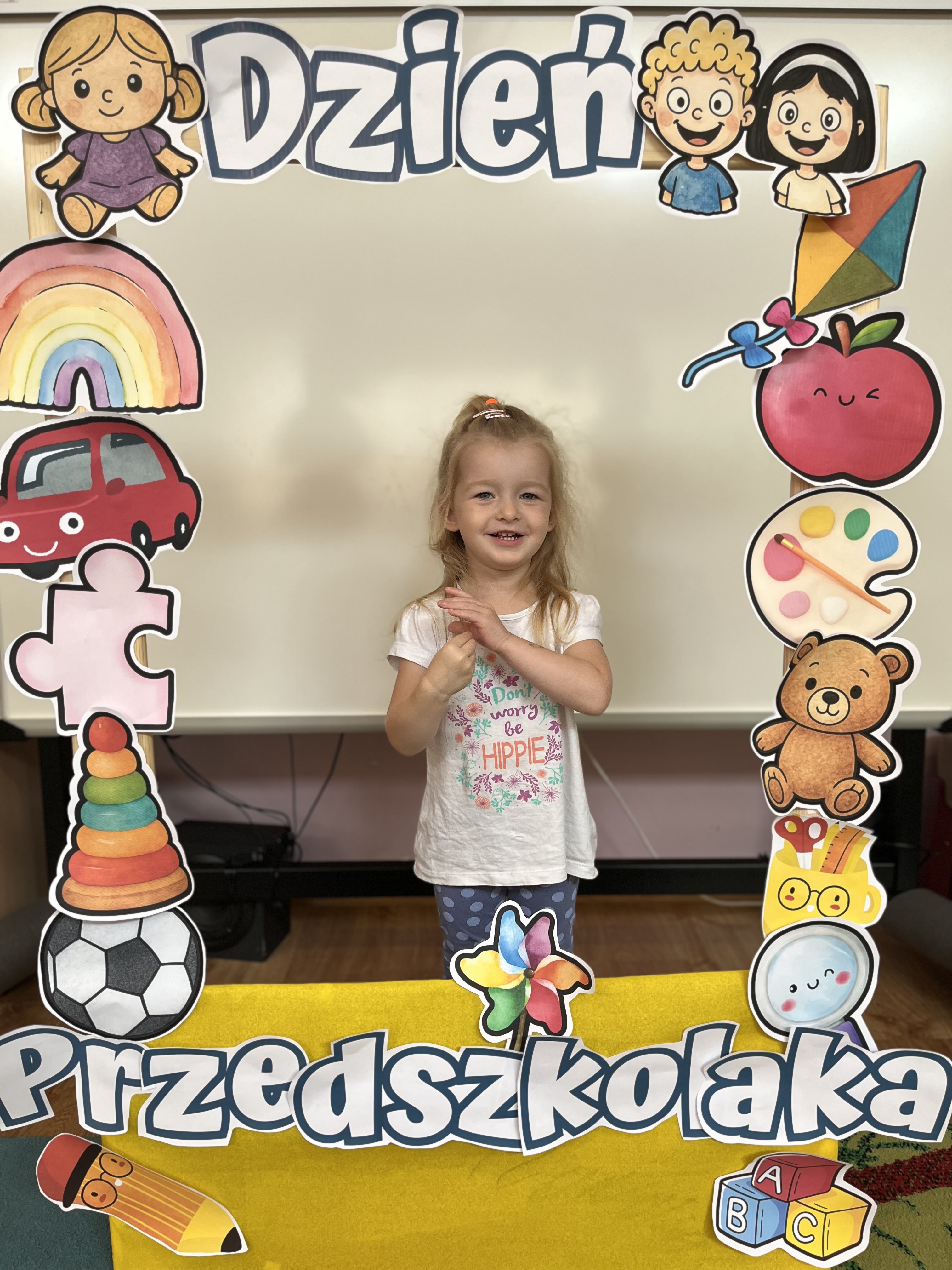 23 września w grupie Pszczółek obchodziliśmy Dzień Przedskolaka. Zaraz po śniadaniu zrobiliśmy sesję zdjeciową w naszej kolorowej "foto budce" a później jak na uroczyste święto przystało był "tort", na którym każdy mógł przykleić swoją świeczuszkę. Dzieci były zachwycone tymi zadaniami. Cały dzień przebiegał nam bardzo radośnie. Dodatkowo, z okazji pierwszego dnia jesieni odwiedziła nas najstarsza grupa, czyli Zajączki, które zaprezentowały nam piosenkę "Przebojowa jesień". Pszczółki z radością włączyły się w improwizację ruchową piosenki obserwując starsze kolażanki i kolegów.