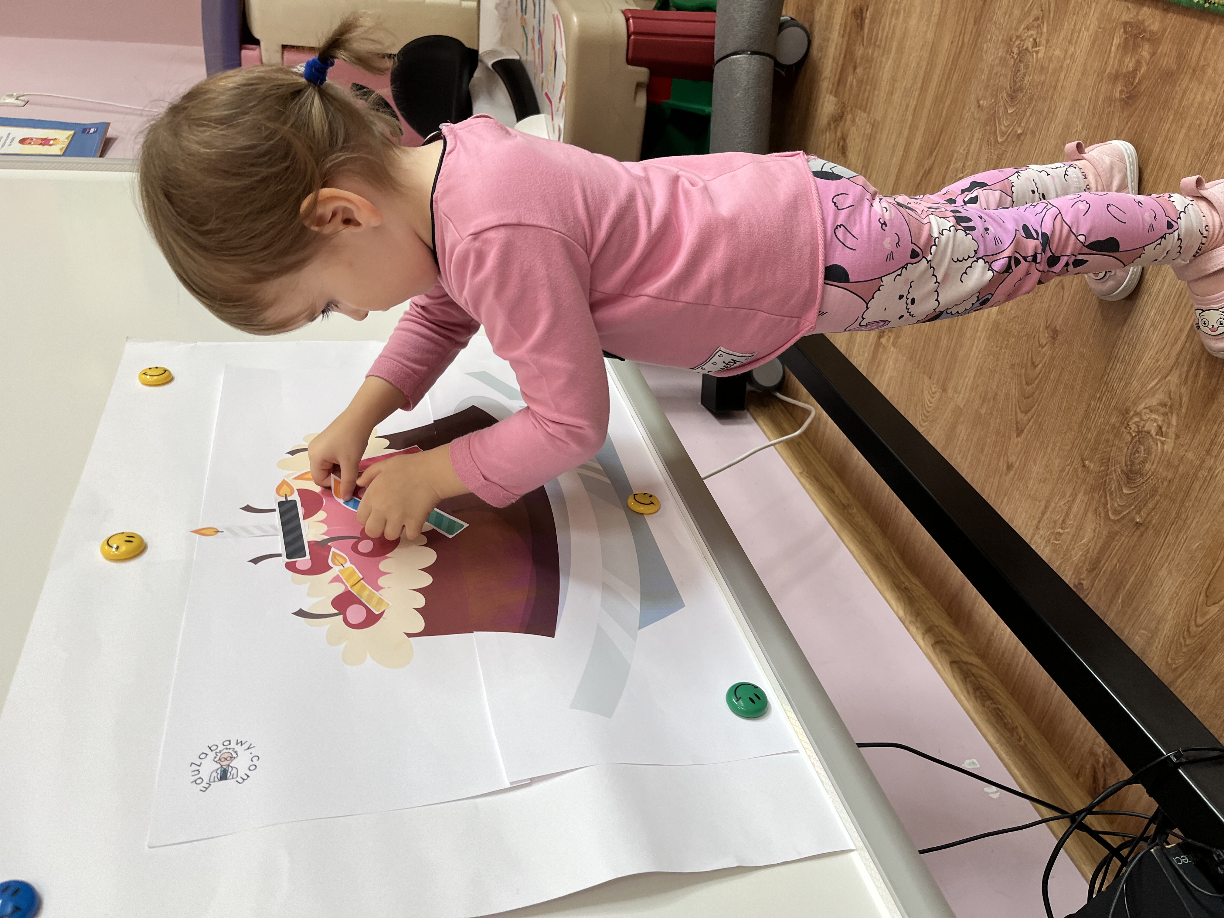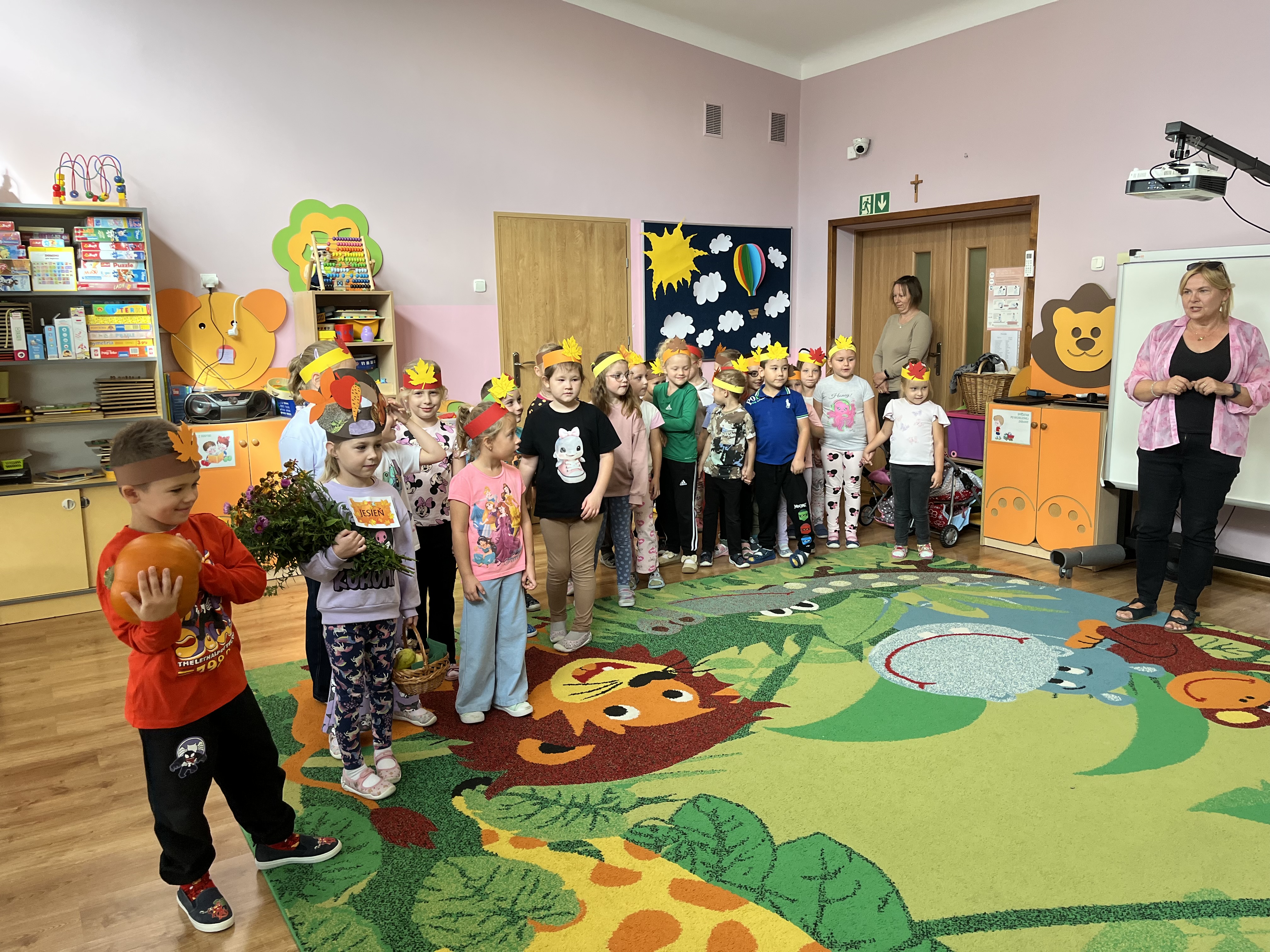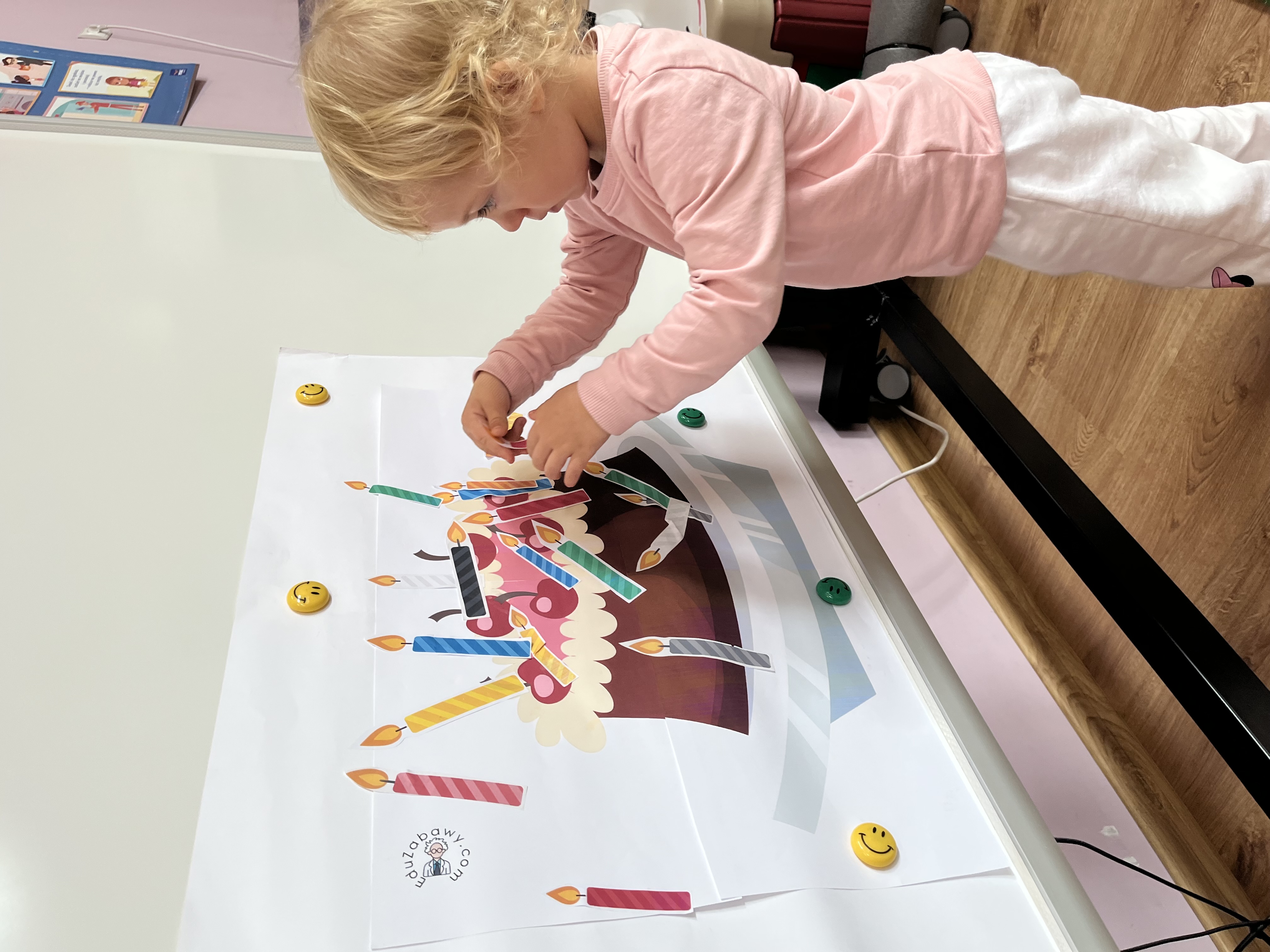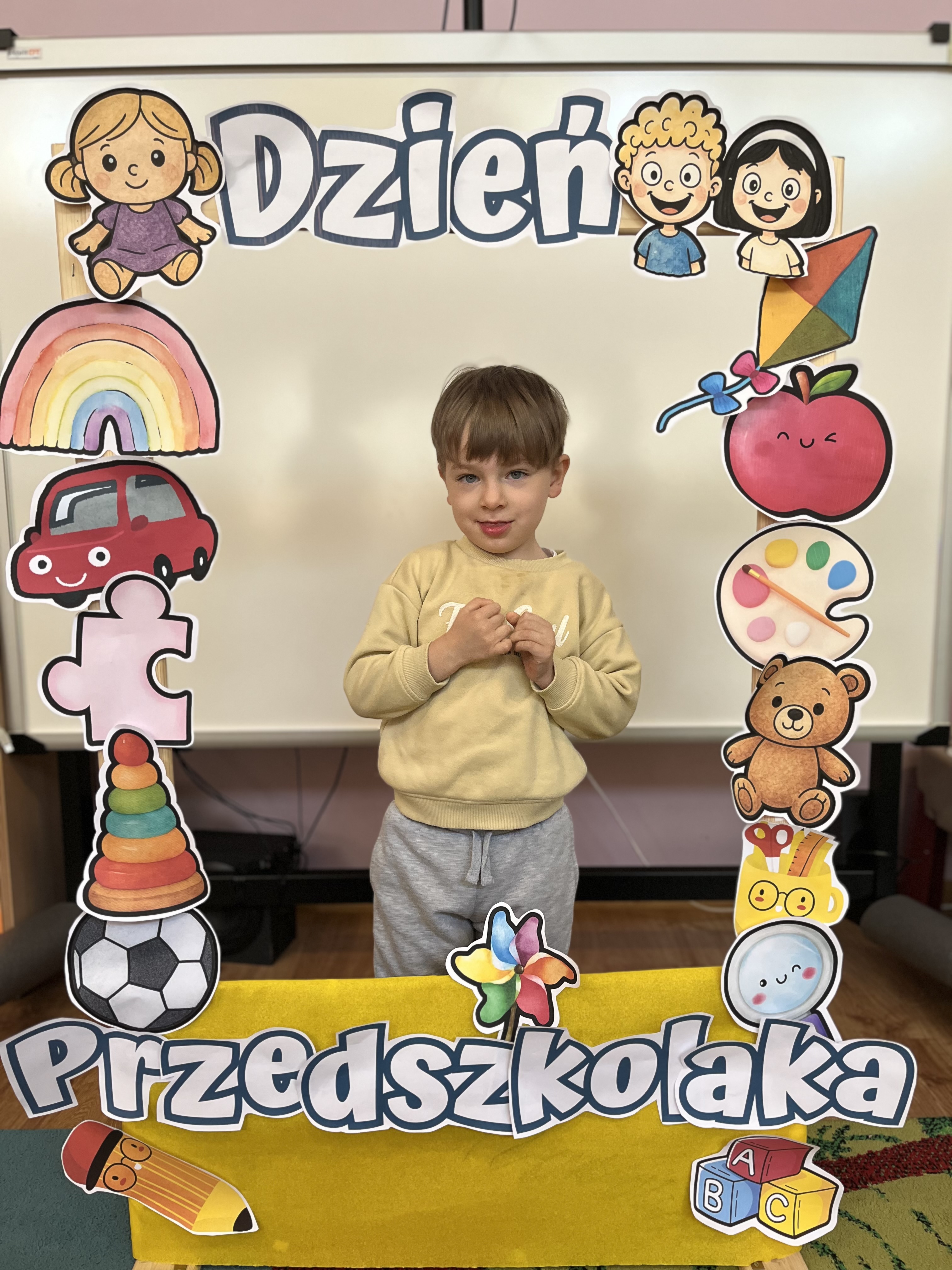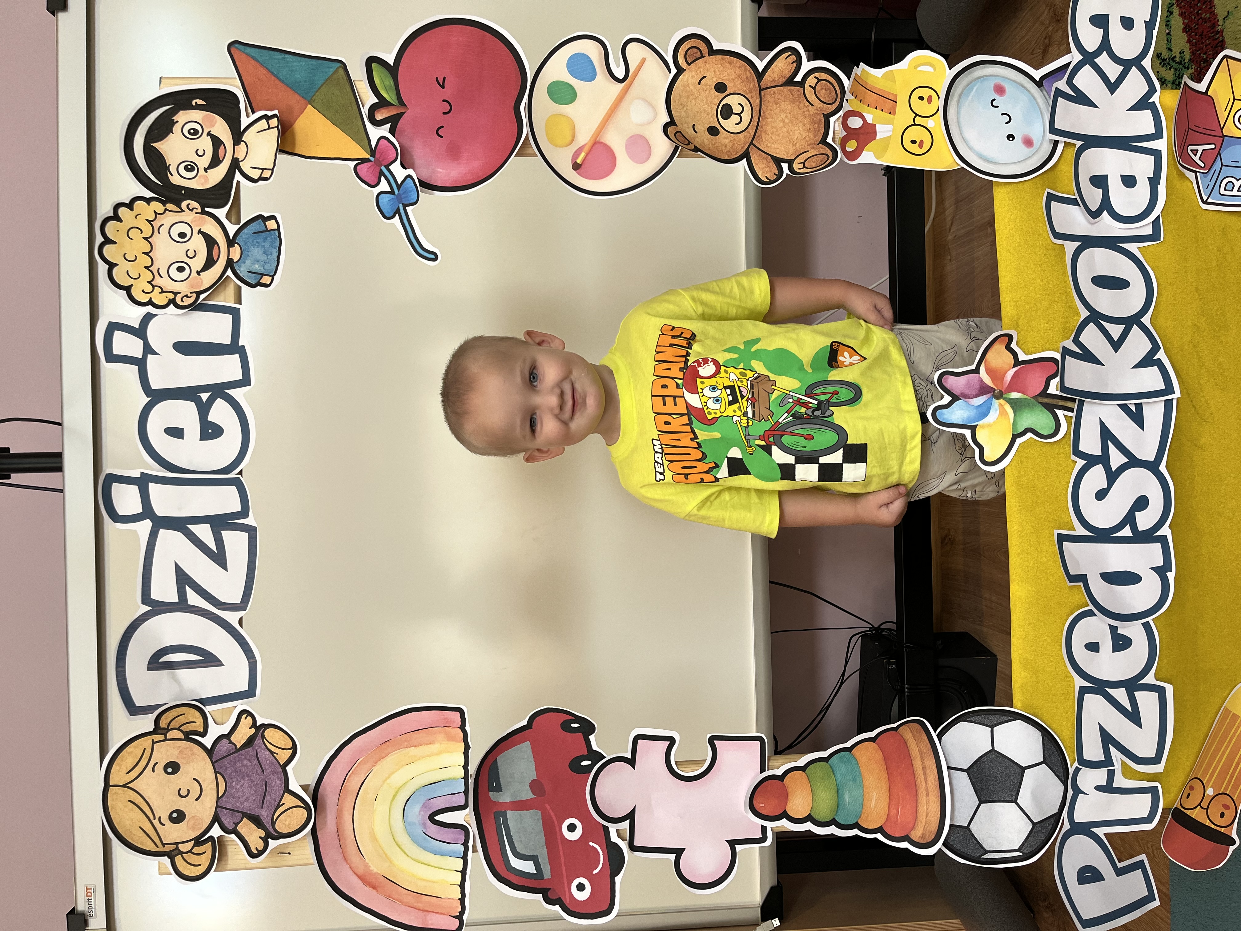 23 września w grupie Pszczółek obchodziliśmy Dzień Przedskolaka. Zaraz po śniadaniu zrobiliśmy sesję zdjeciową w naszej kolorowej "foto budce" a później jak na uroczyste święto przystało był "tort", na którym każdy mógł przykleić swoją świeczuszkę. Dzieci były zachwycone tymi zadaniami. Cały dzień przebiegał nam bardzo radośnie. Dodatkowo, z okazji pierwszego dnia jesieni odwiedziła nas najstarsza grupa, czyli Zajączki, które zaprezentowały nam piosenkę "Przebojowa jesień". Pszczółki z radością włączyły się w improwizację ruchową piosenki obserwując starsze kolażanki i kolegów.