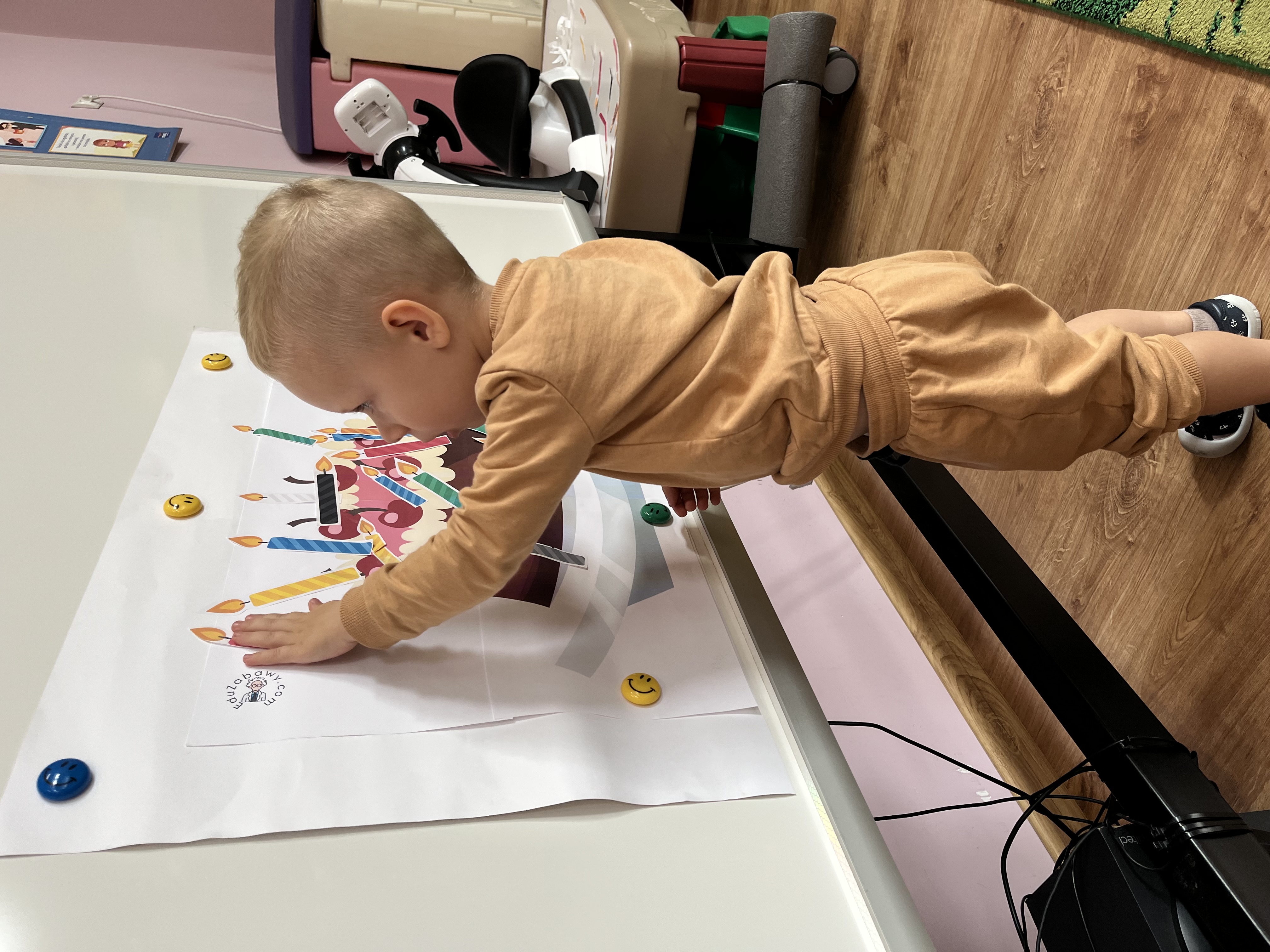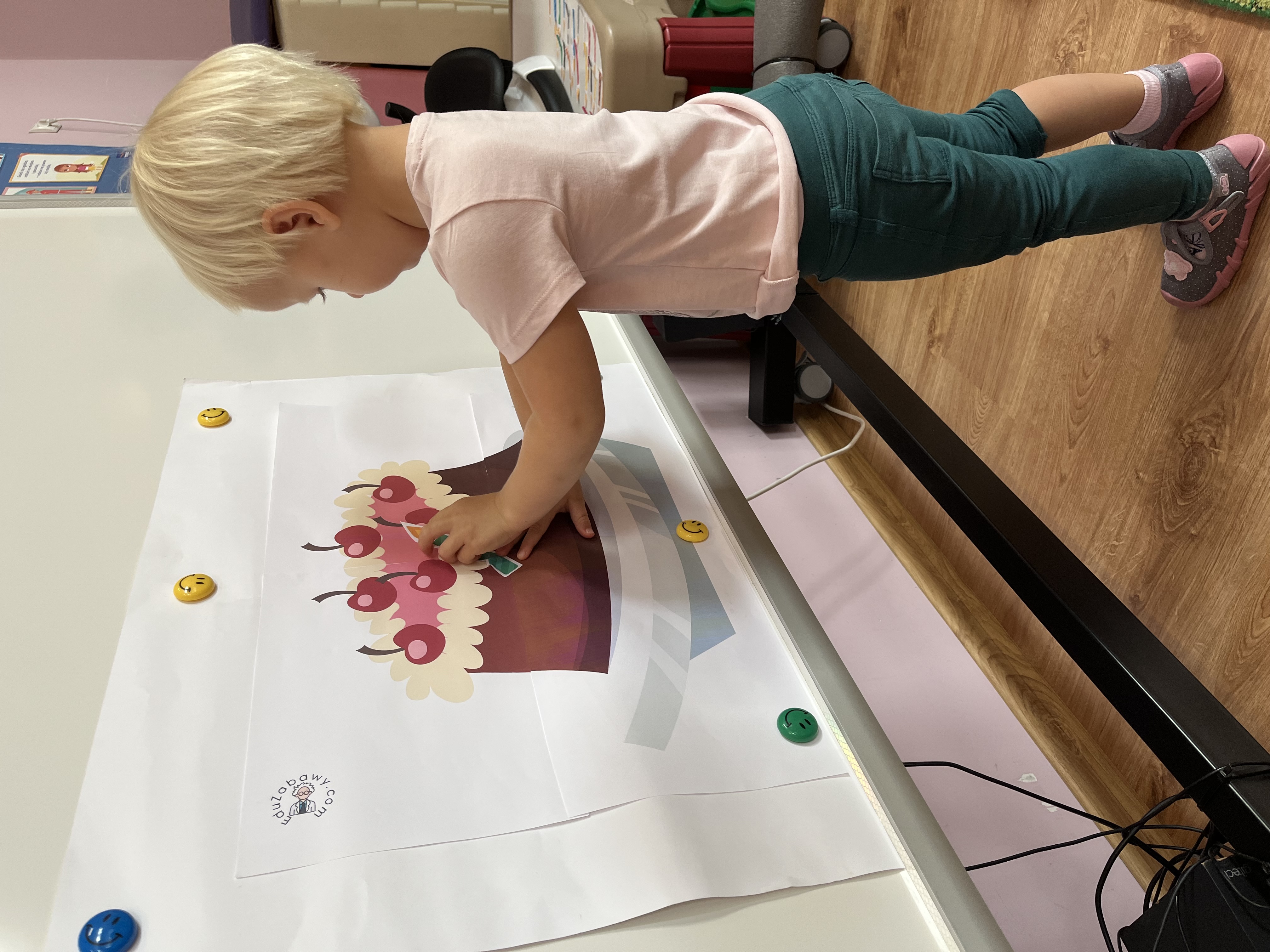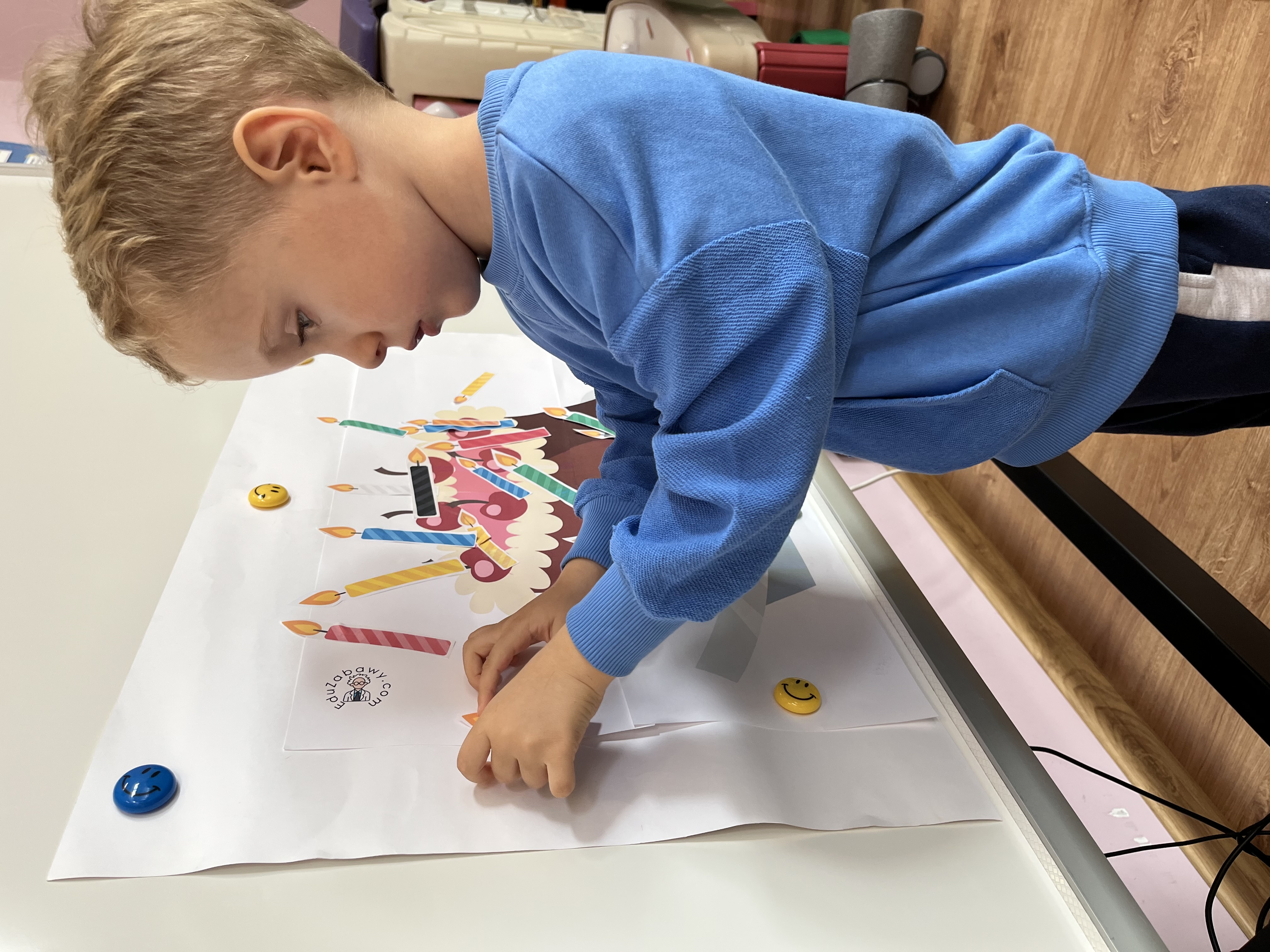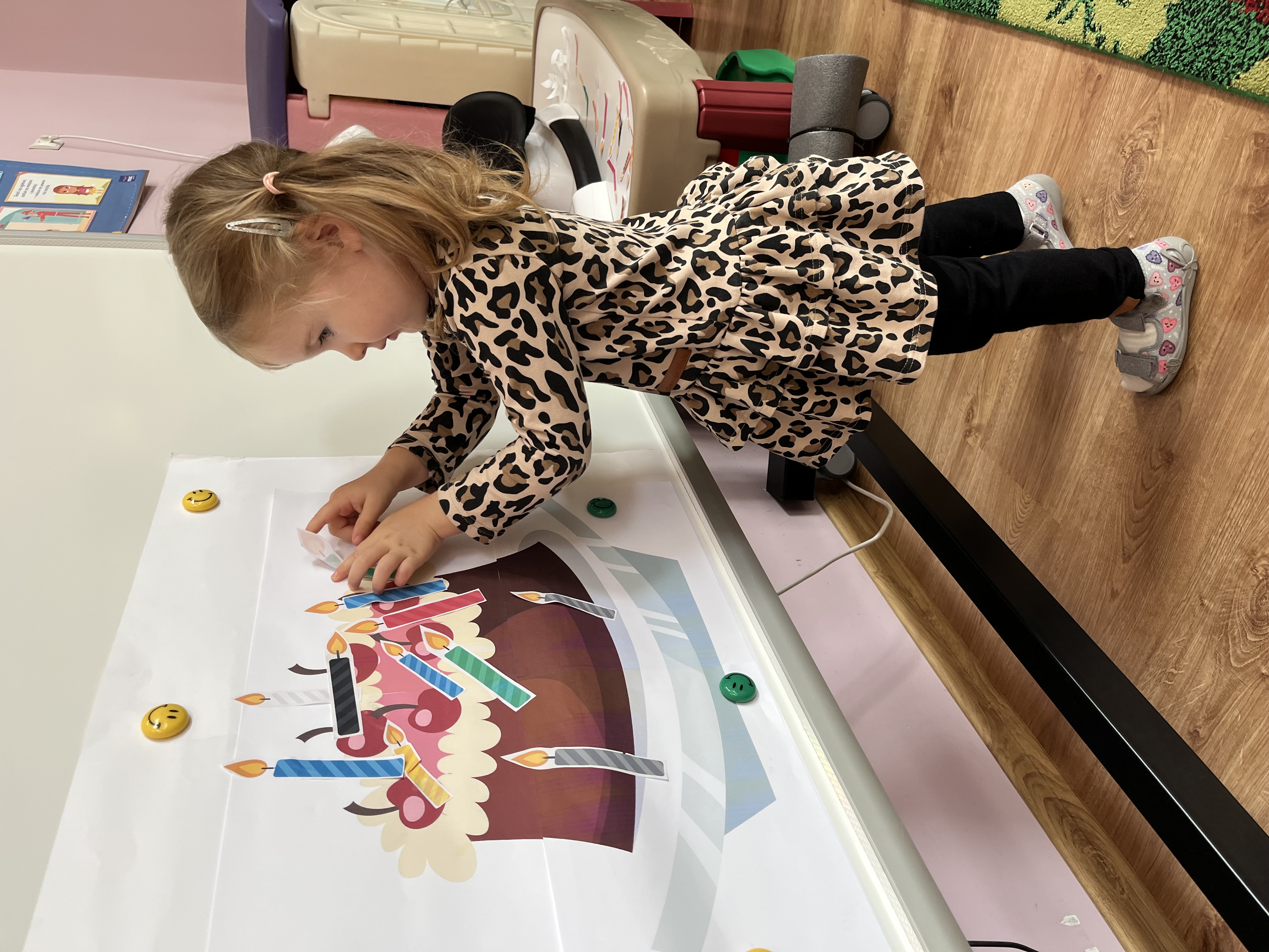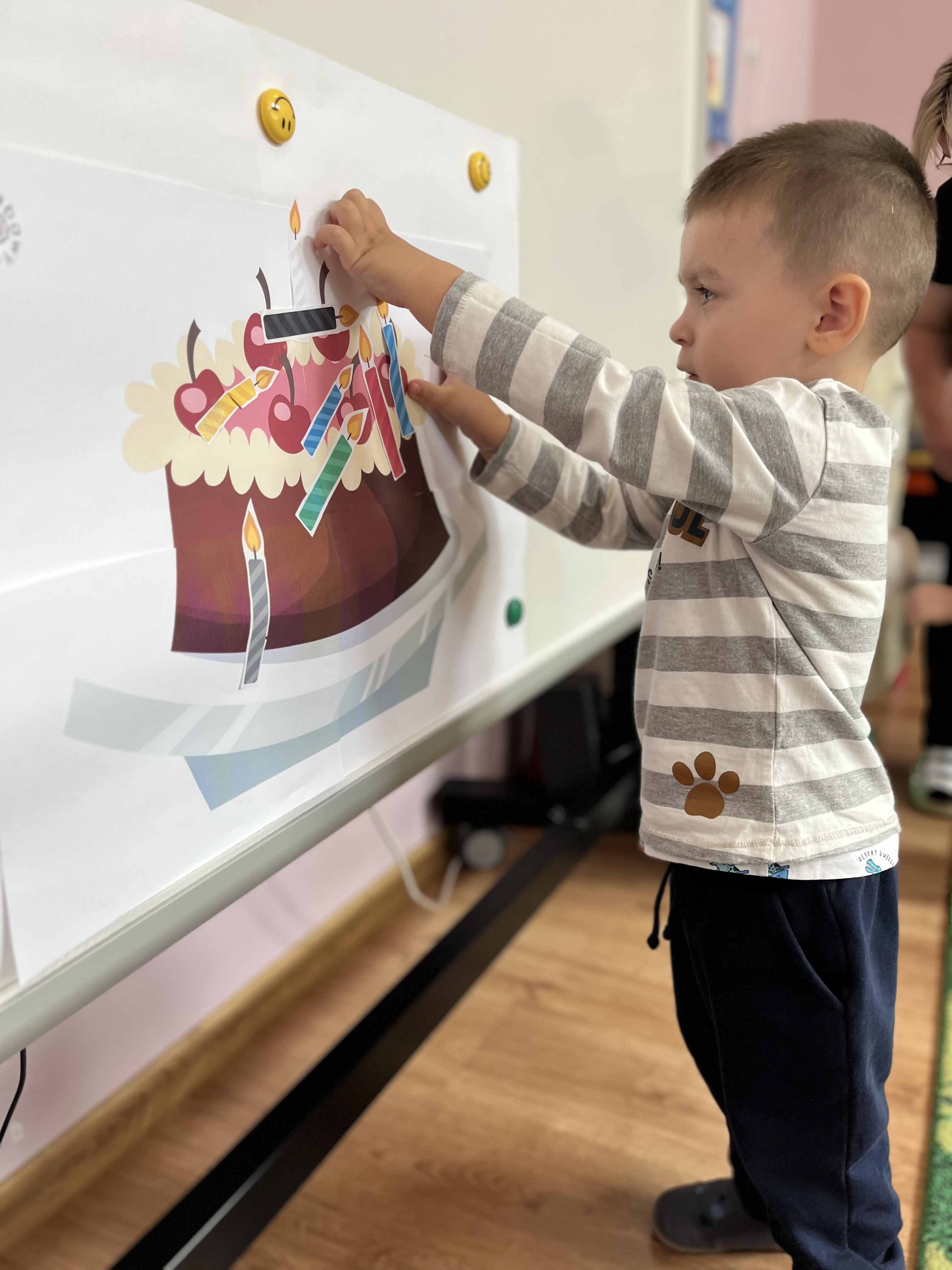 23 września w grupie Pszczółek obchodziliśmy Dzień Przedskolaka. Zaraz po śniadaniu zrobiliśmy sesję zdjeciową w naszej kolorowej "foto budce" a później jak na uroczyste święto przystało był "tort", na którym każdy mógł przykleić swoją świeczuszkę. Dzieci były zachwycone tymi zadaniami. Cały dzień przebiegał nam bardzo radośnie. Dodatkowo, z okazji pierwszego dnia jesieni odwiedziła nas najstarsza grupa, czyli Zajączki, które zaprezentowały nam piosenkę "Przebojowa jesień". Pszczółki z radością włączyły się w improwizację ruchową piosenki obserwując starsze kolażanki i kolegów.