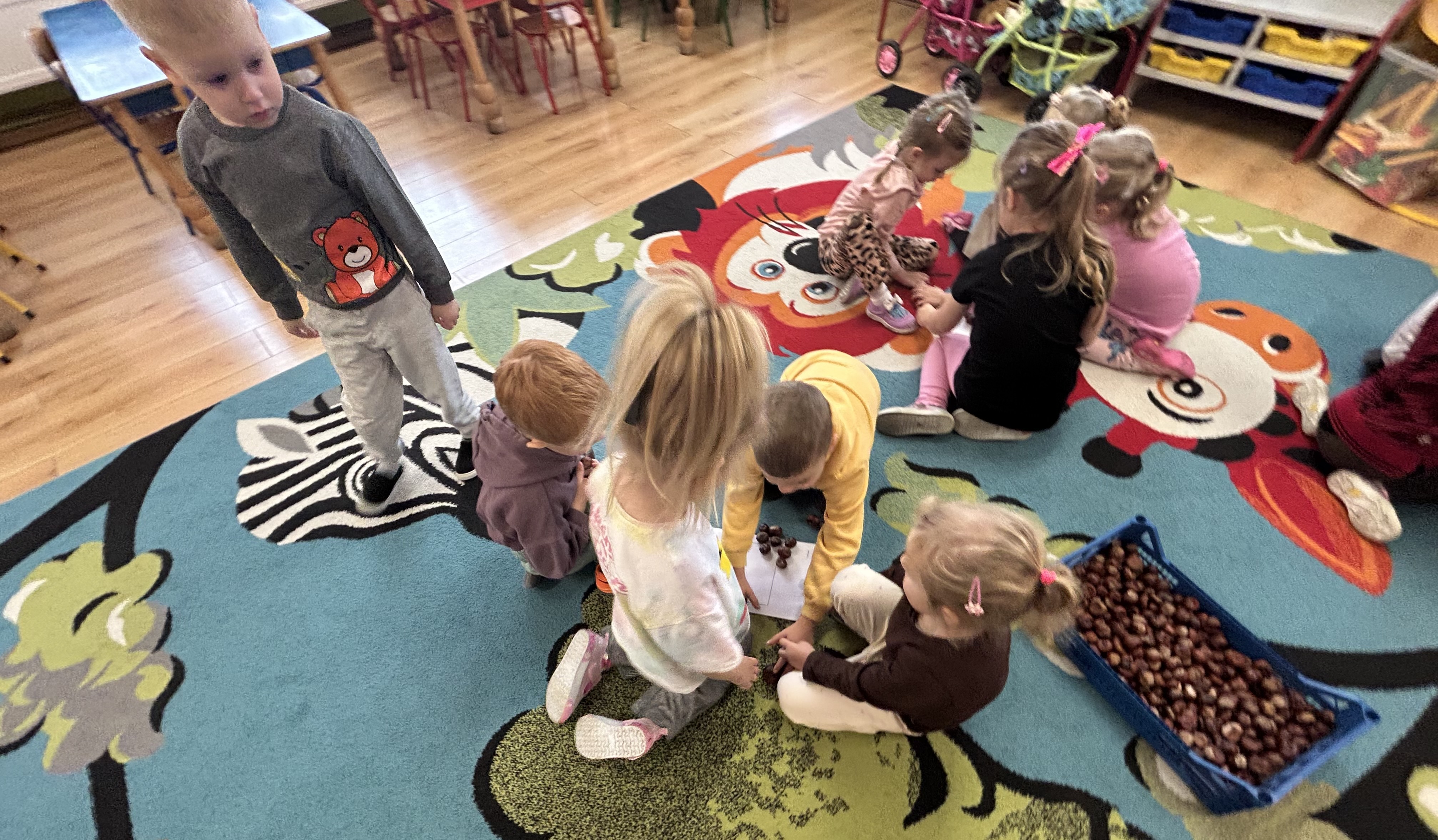 Smerfy dołączyły do projektu edukacyjnego „Matematyka w darach natury ukryta”. Projekt ma na celu rozwijanie dziecięcego myślenia matematycznego poprzez bezpośredni kontakt z naturą, działanie, doświadczanie i zabawę. „Matematyka w darach natury ukryta” to zaproszenie do świata pełnego liczb, kształtów i rytmów, ukrytych w szyszkach, liściach, patykach, kasztanach i innych darach przyrody. Ten projekt to nie tylko nauka liczenia – to również: