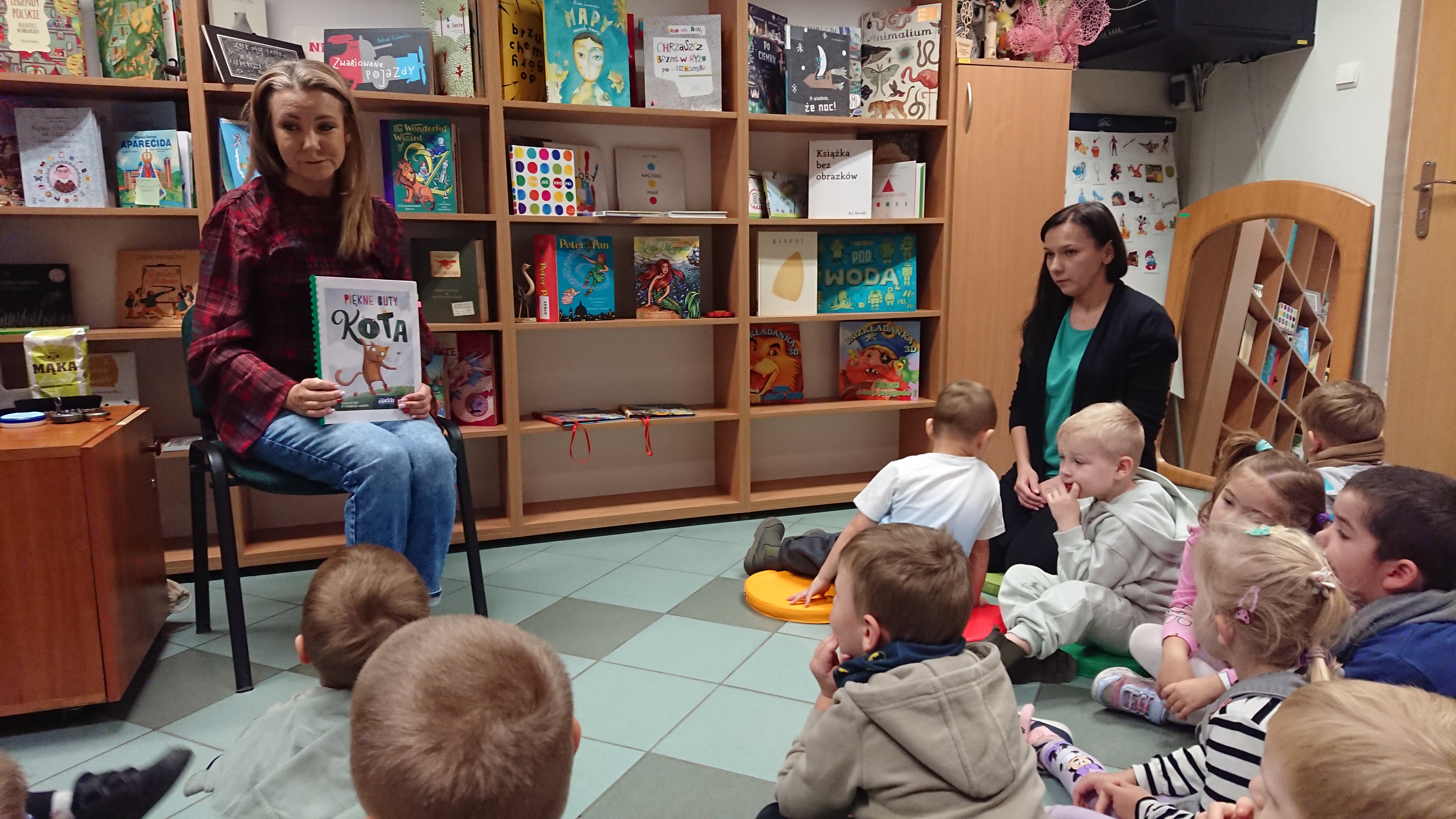 14 października (środa), Elfy udały się do Biblioteki Pedagogicznej w Węgrowie. Uczestniczyliśmy tam w zajęciach przygotowanych na podstawie książki "PIĘKNE BUTY KOTA". Jest to bardziej współczesna wersja znanej wszystkim bajki "Kot w butach". Ta nowa wersja, bardzo się Elfom podobała i wysłuchały jej z zaciekawieniem a bogactwo rekwizytów wykorzystanych podczas czytania uatrakcyjniło zajęcia. Bardzo dziękujemy p. Marcie z Biblioteki za ciekawe zajęcia i miło spędzony czas.