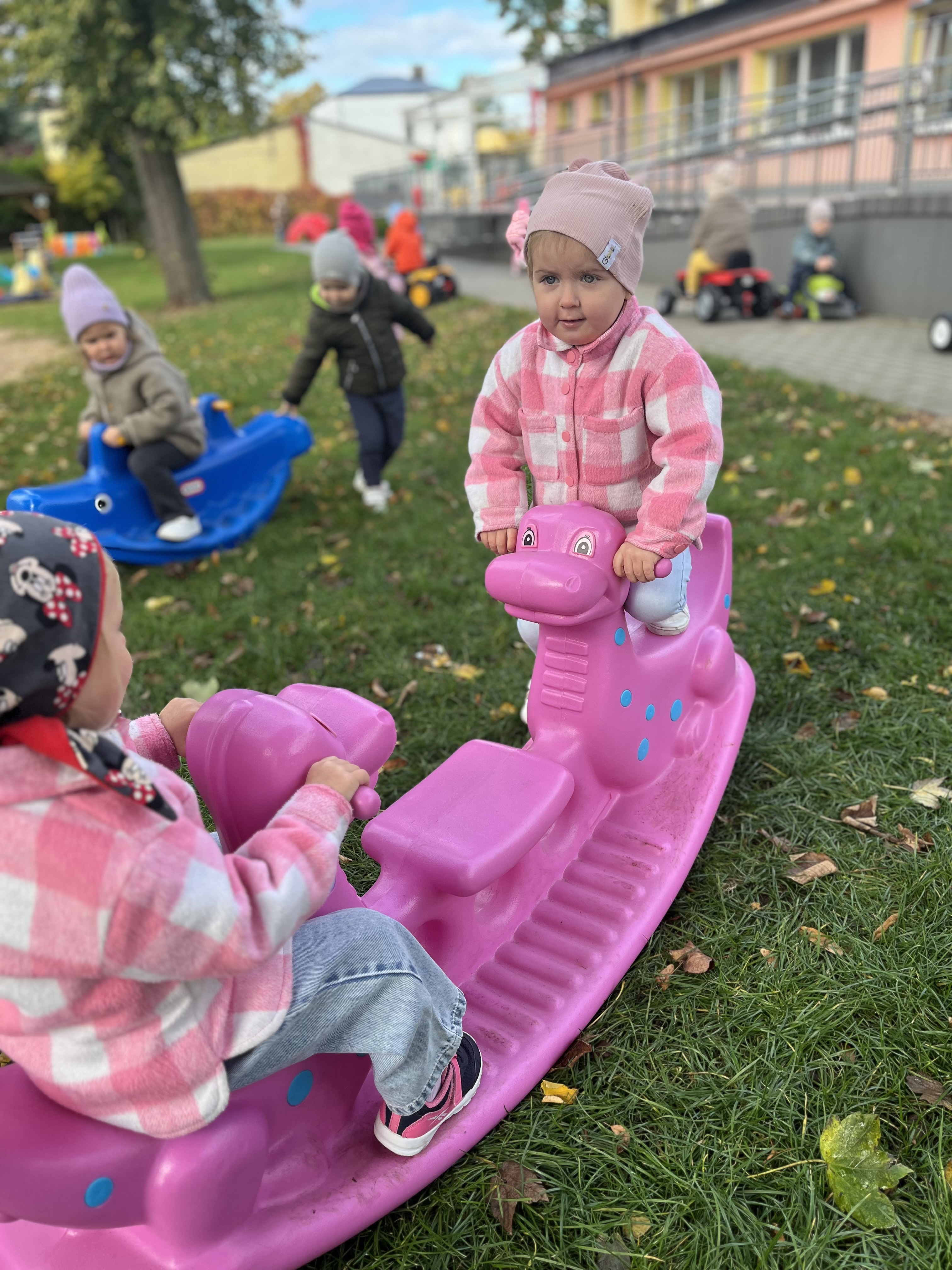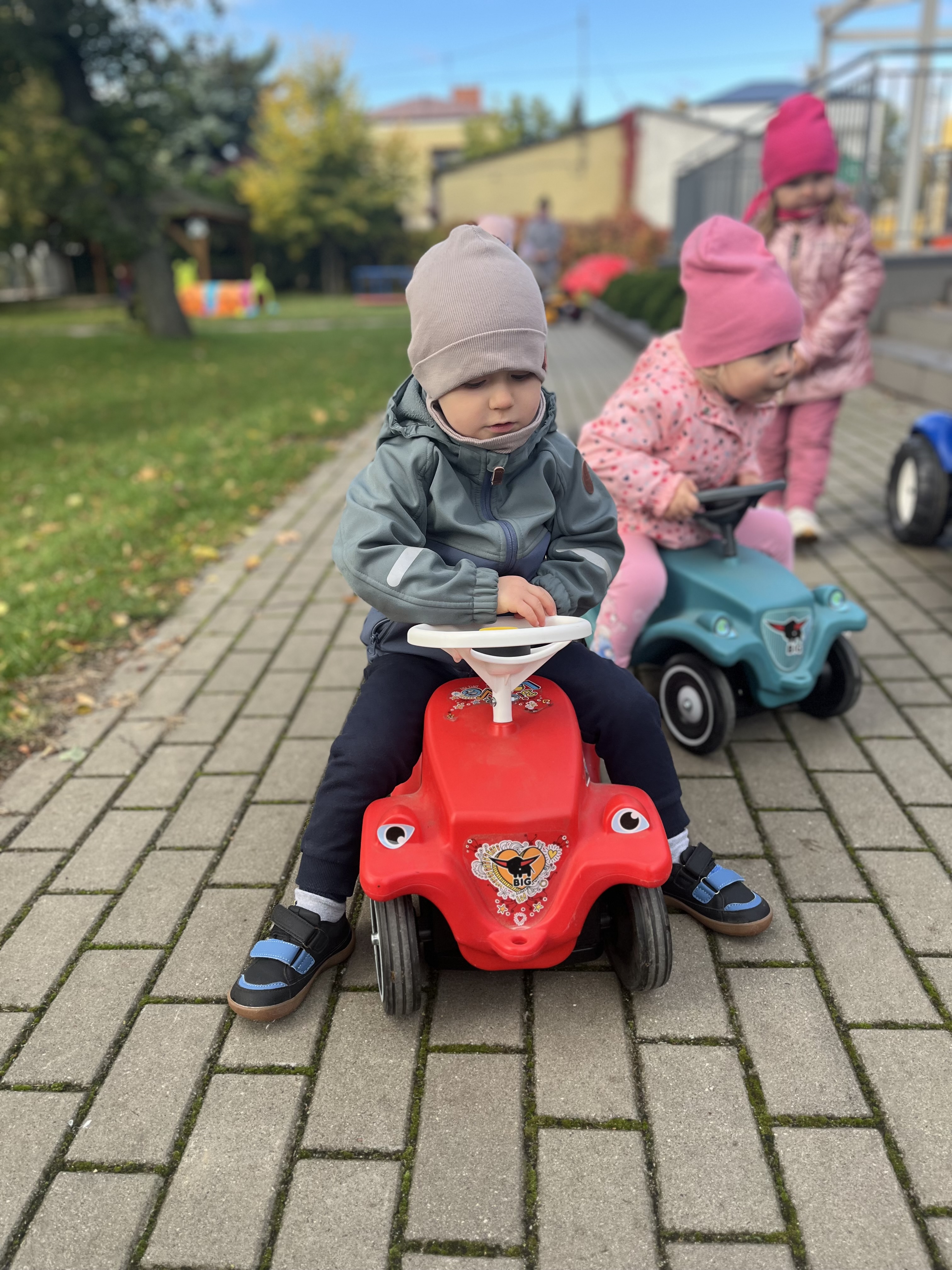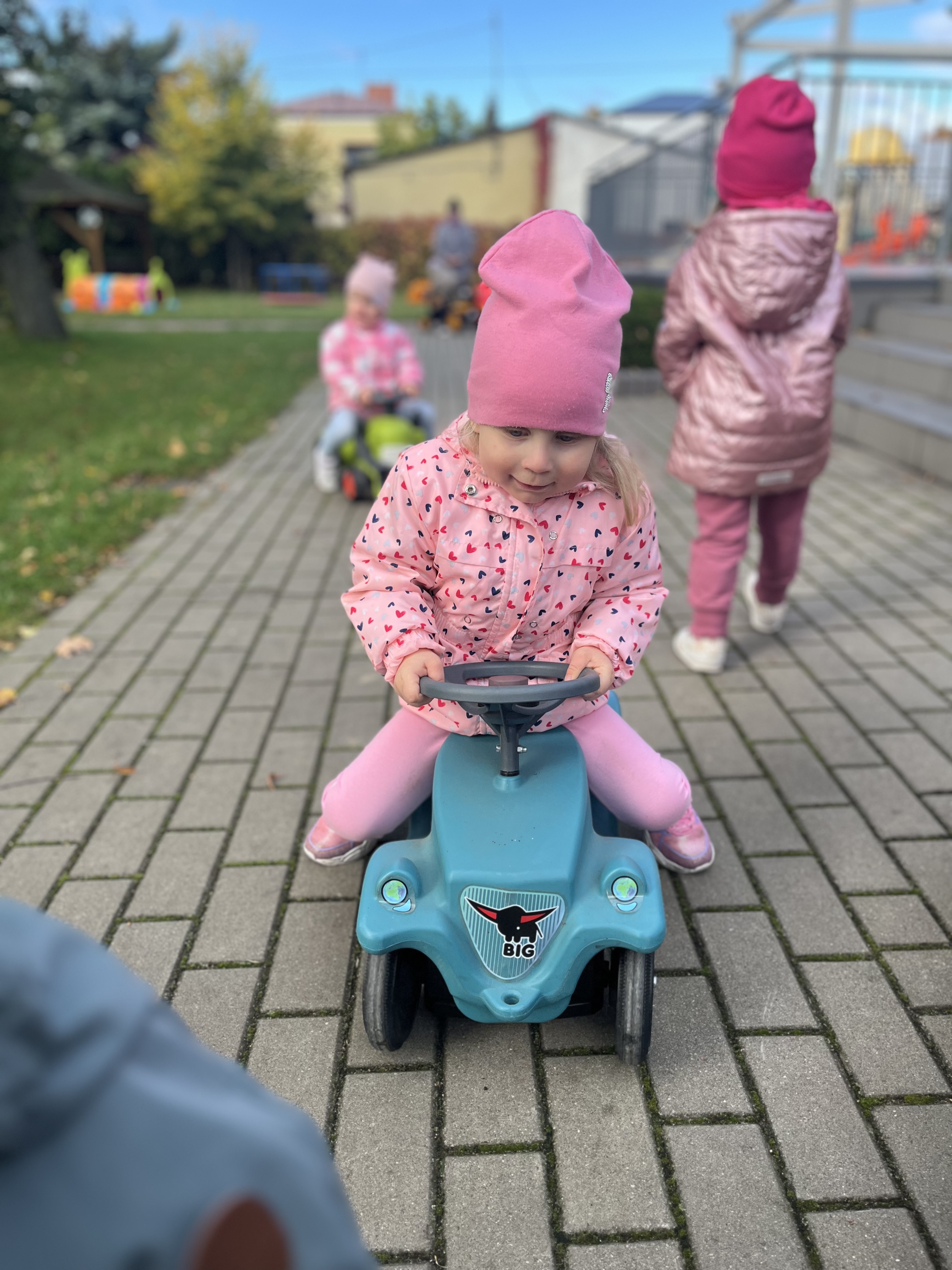 Łapiąc ostatnie promienie słońca, w poniedziałek, grupa Pszczółek wybrała się na przedszkolny plac zabaw aby oddać się różnym zabawom. Przedszkolaki miały okazję stać się małymi kierowcami i skorzystać z jazdy naszymi wspaniałymi samochodzikami. Pszczółki były bardzo zadowolone i radosne.