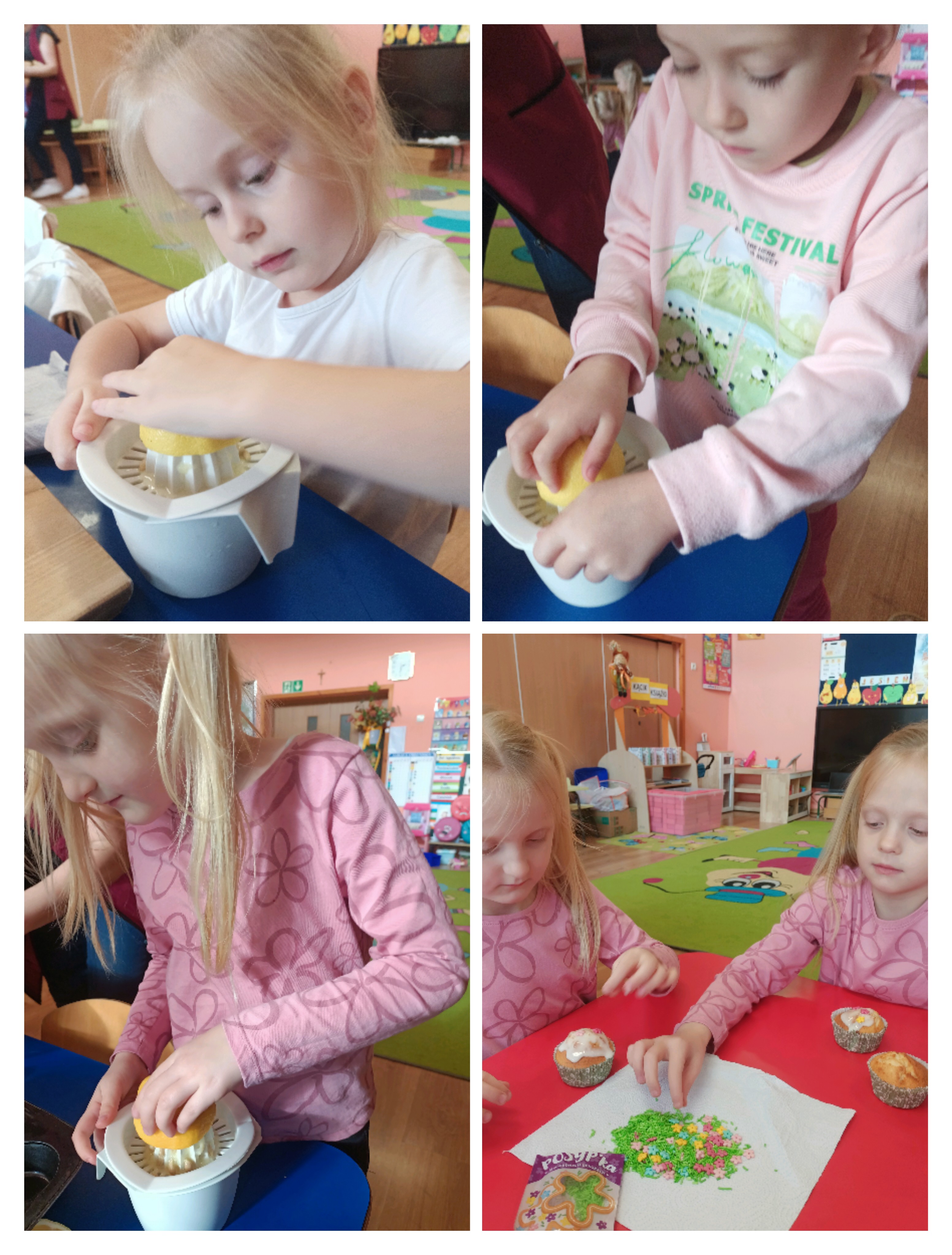 W poniedziałek, 13 października, dzieci z grupy Misie zamieniły się w prawdziwych małych cukierników! Razem piekliśmy pyszne babeczki, które miały stać się słodkim upominkiem dla wszystkich pracowników naszego przedszkola z okazji ich święta. Nie zabrakło oczywiście najprzyjemniejszej części – dekorowania! Kolorowe posypki, polewy i uśmiechy dzieci sprawiły, że każda babeczka była wyjątkowa.