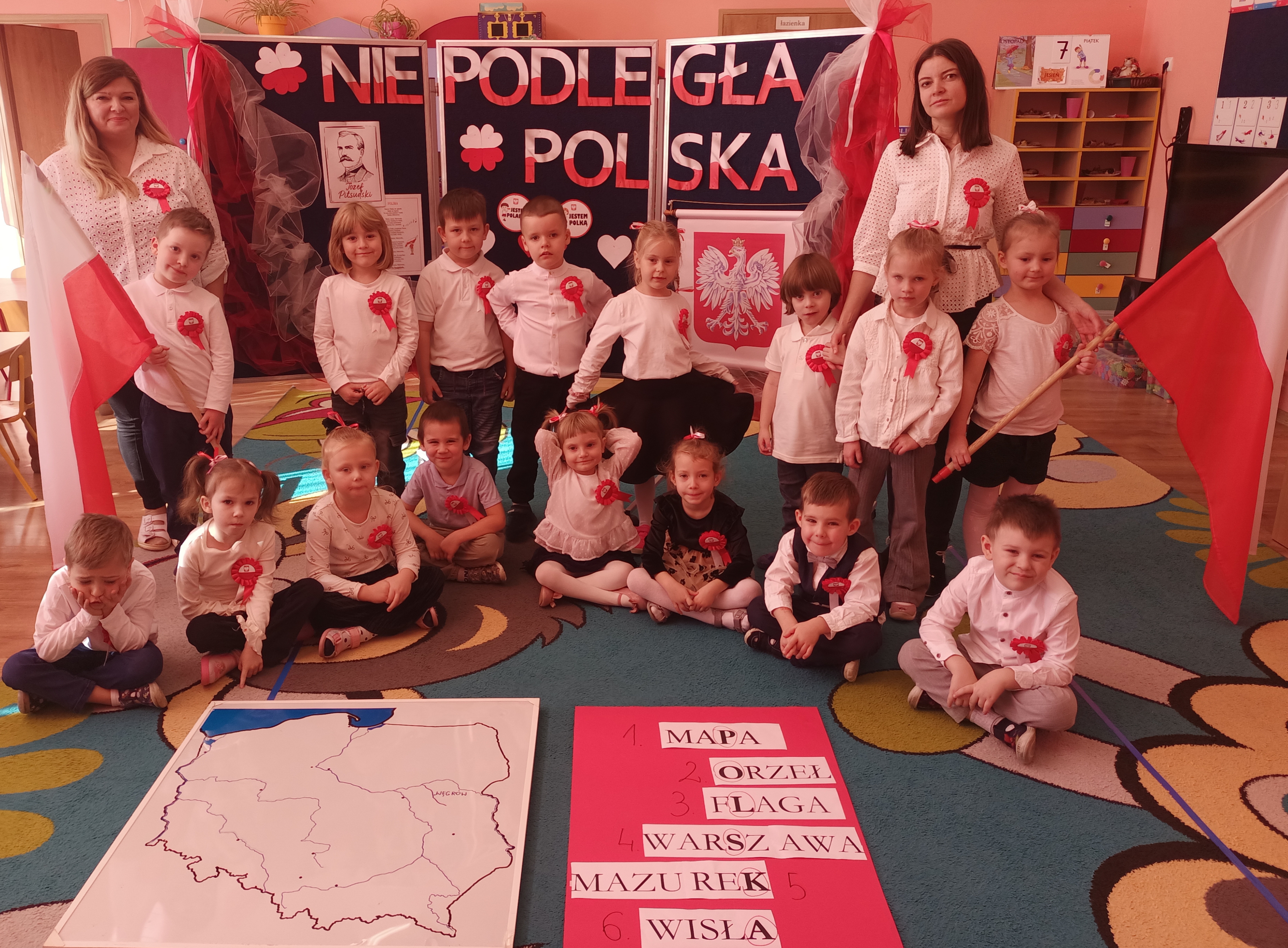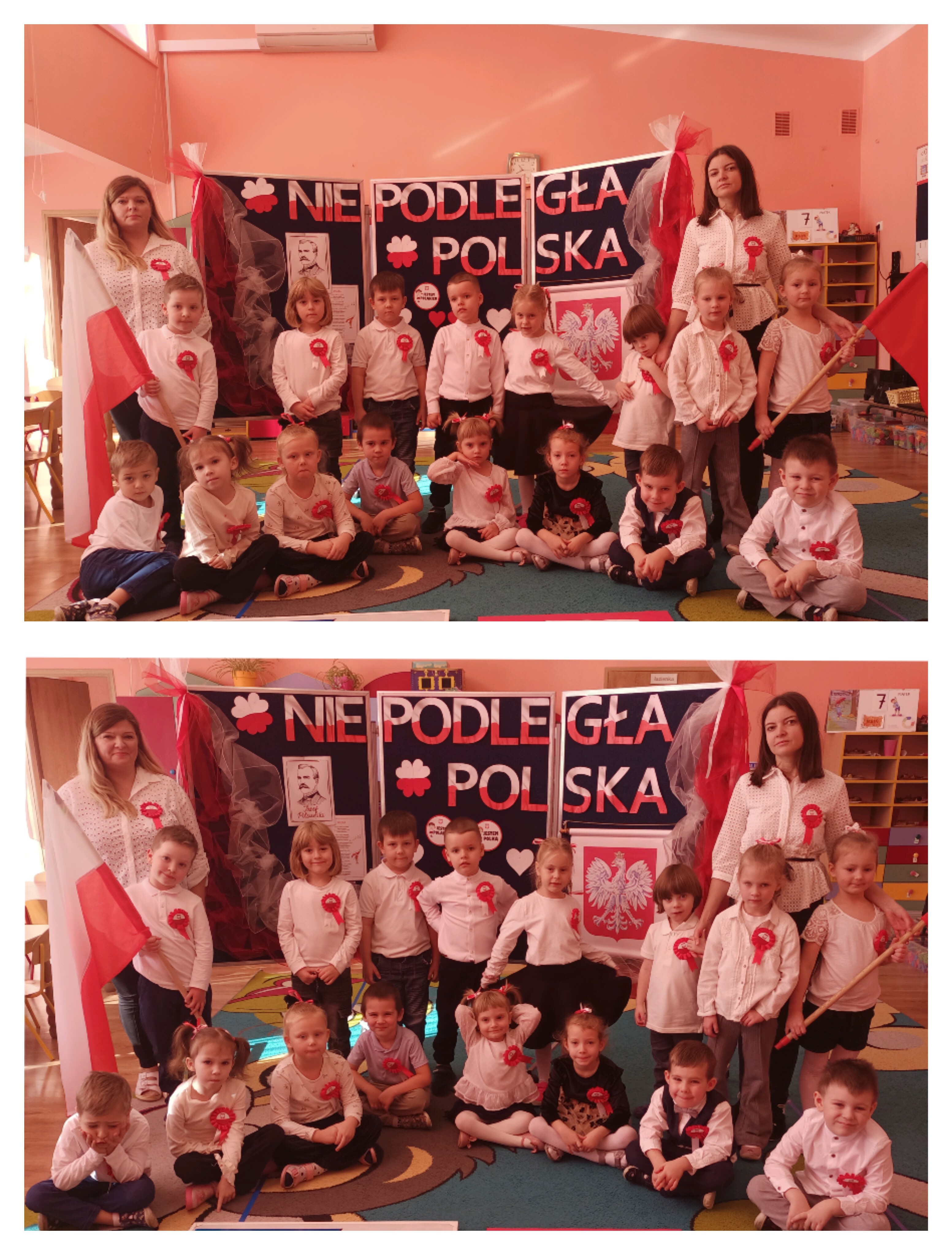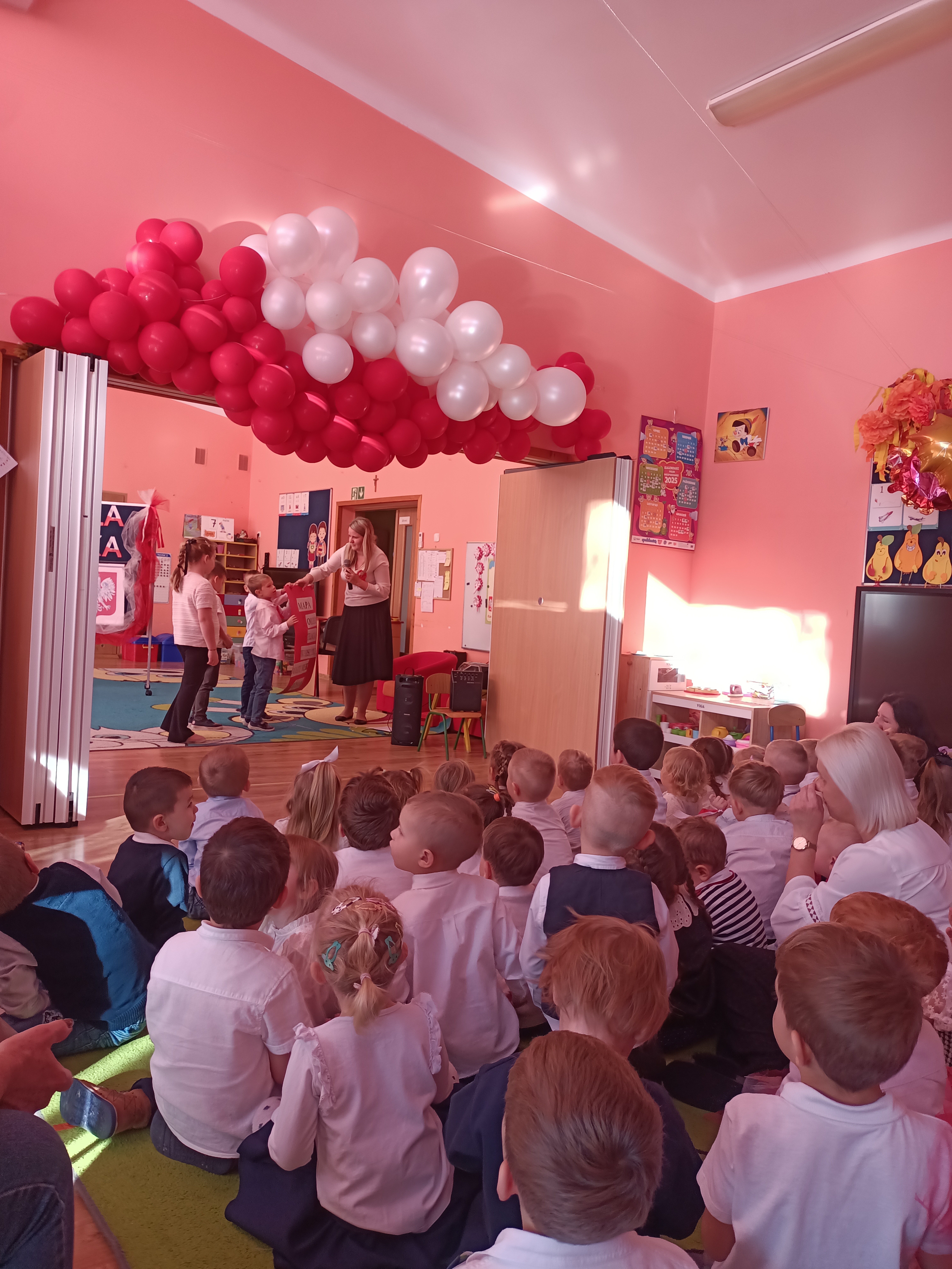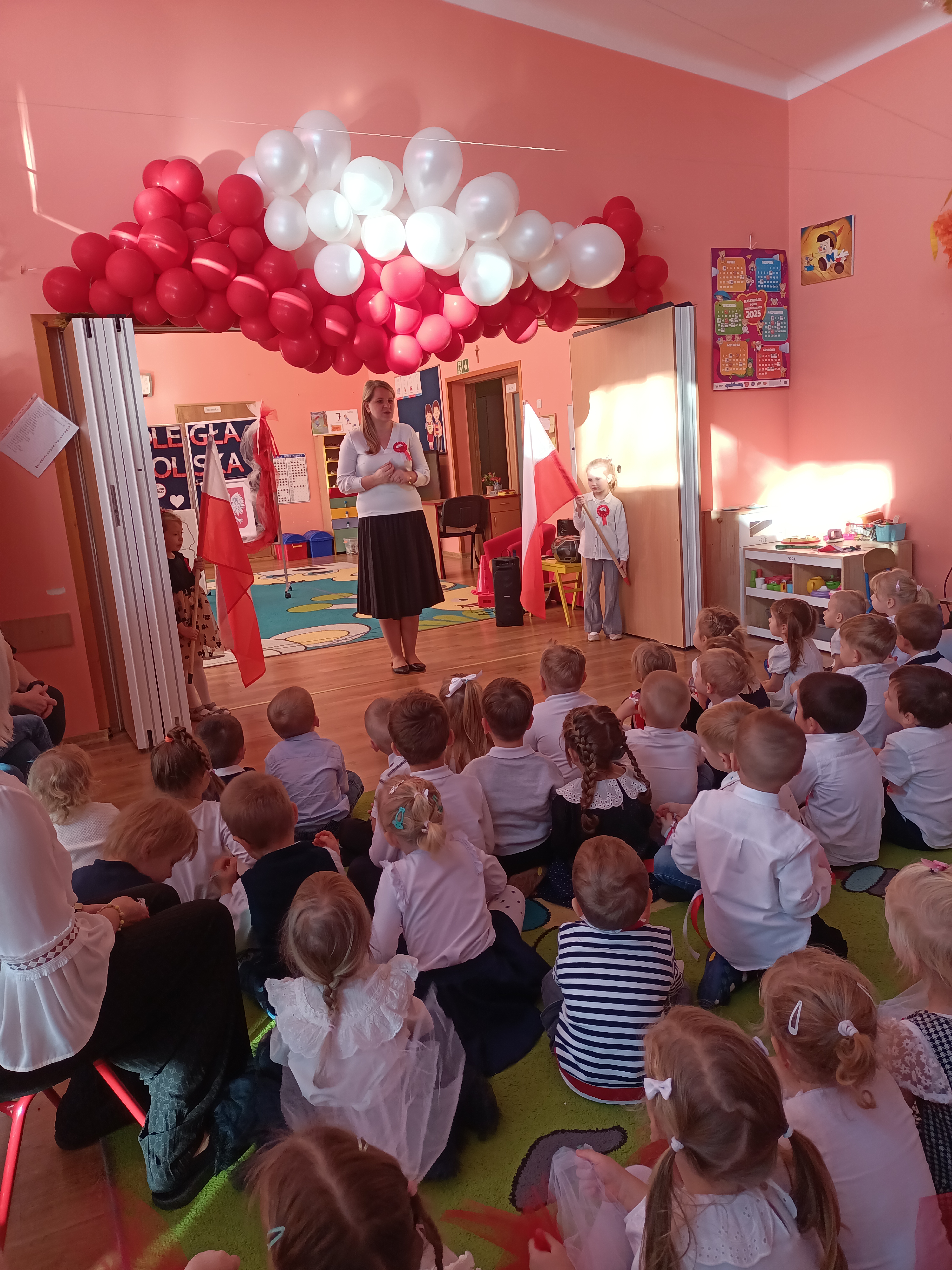 W dniu dzisiejszym (07.11) wszystkie dzieci w naszym przedszkolu wzięły udział w uroczystej akademii z okazji zbliżającego się Święta Niepodległości.