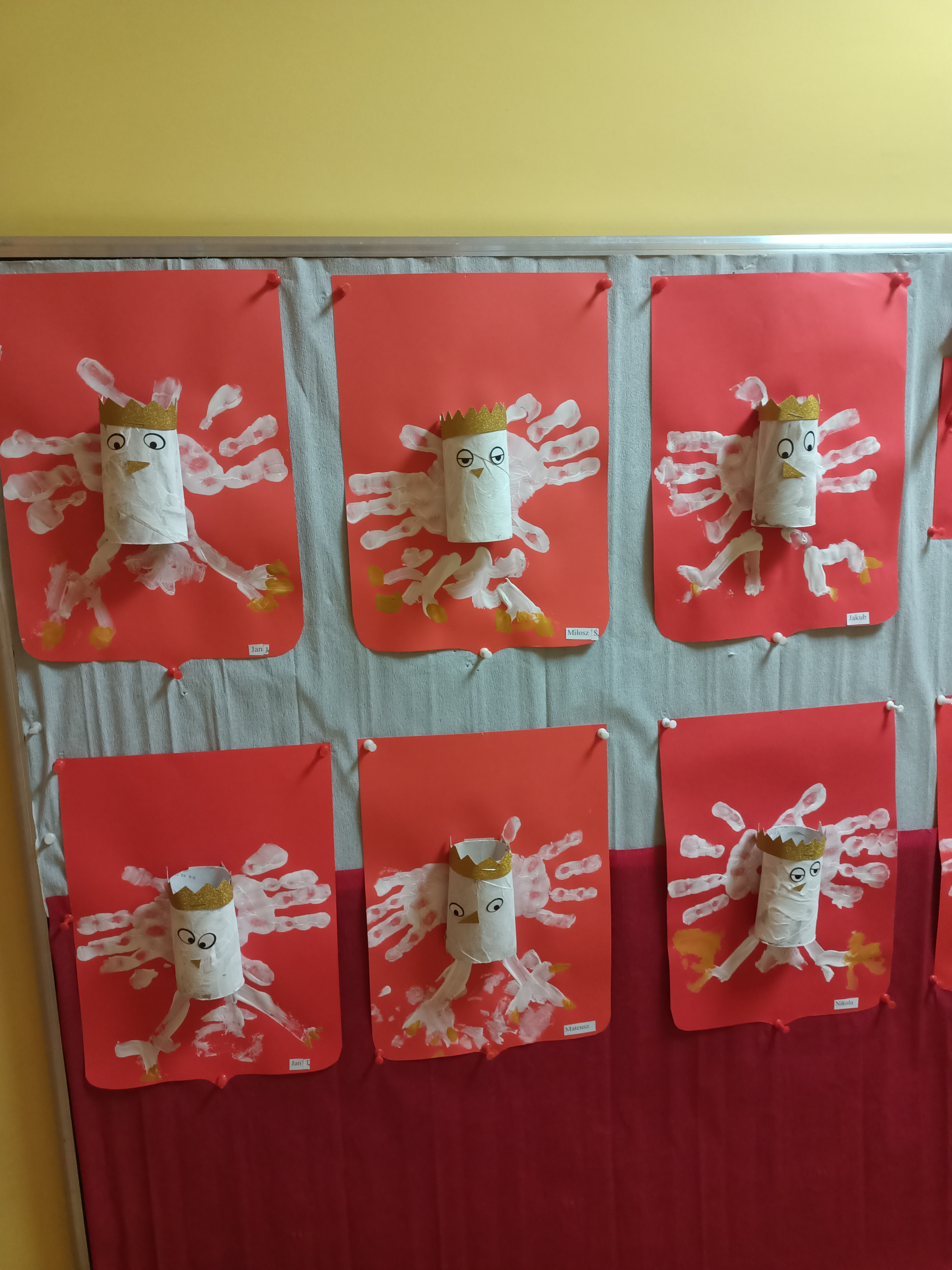 Przedszkolaki zadbały również o wyjątkowy wystrój — korytarz naszego przedszkola został pięknie udekorowany pracami plastycznymi dzieci w barwach narodowych.