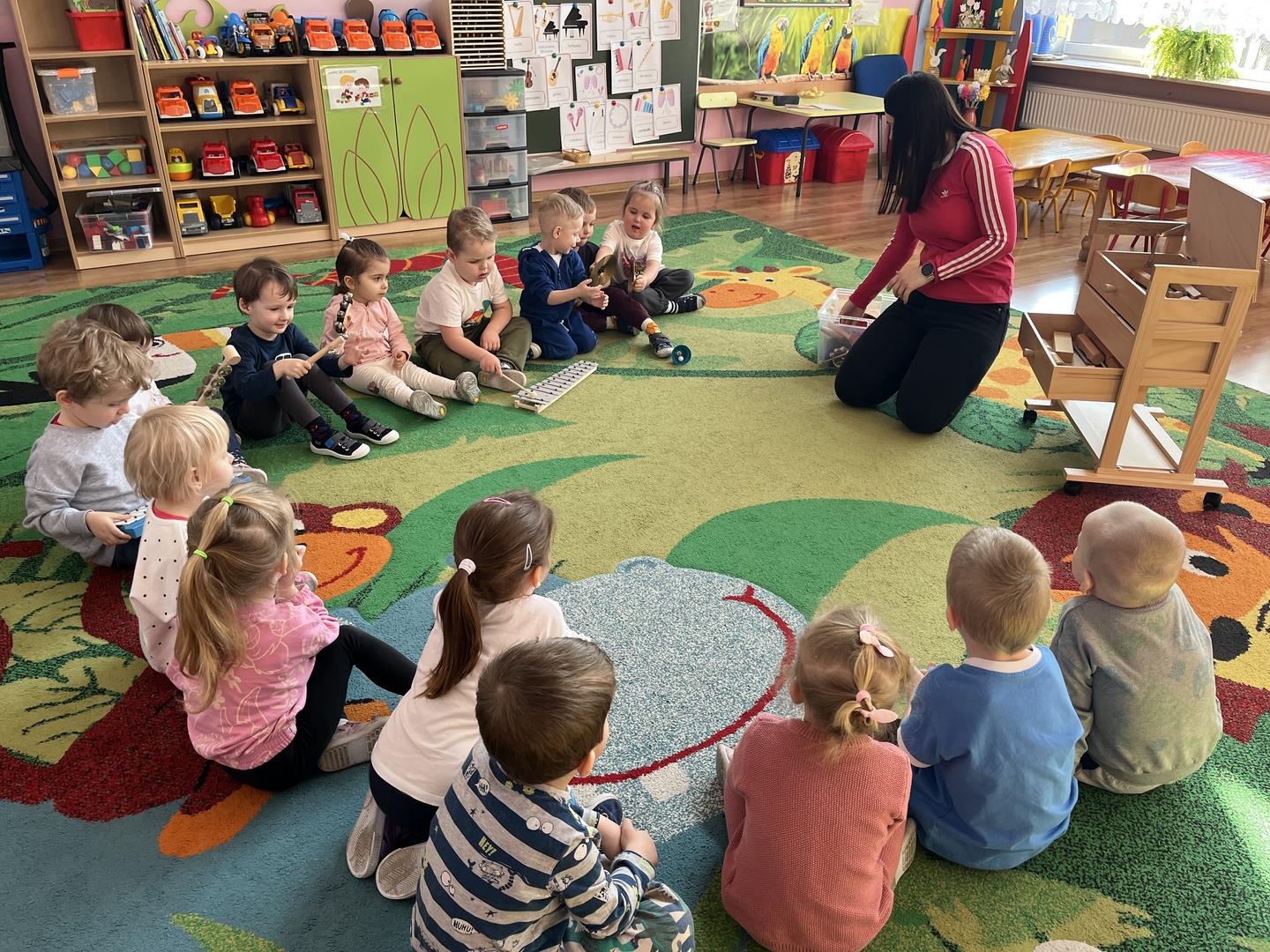 W poprzednim tygodniu dzieci z grupy PszczóÅ‚ek omawiaÅ‚y temat instrumentów muzycznych. PoznaÅ‚y wiele nowych instrumentów oraz uczyÅ‚y siÄ™ rozpoznawać je po dźwiÄ™kach w formie muzycznych zagadek. Dzieci miaÅ‚y również okazjÄ™ wcielić siÄ™ w rolÄ™ muzyków – każdy mógÅ‚ spróbować gry na różnych instrumentach, co sprawiÅ‚o im dużo radoÅ›ci.