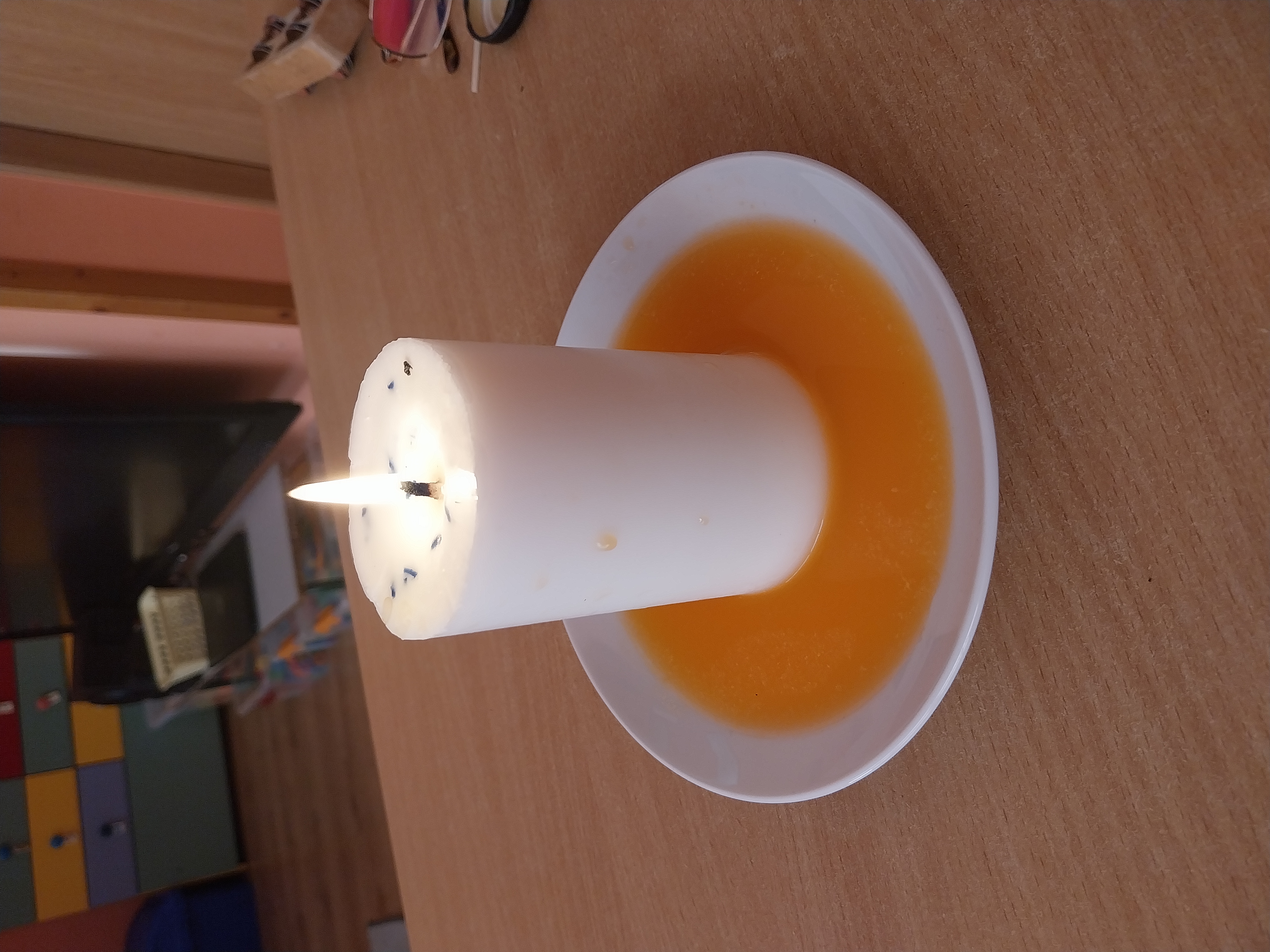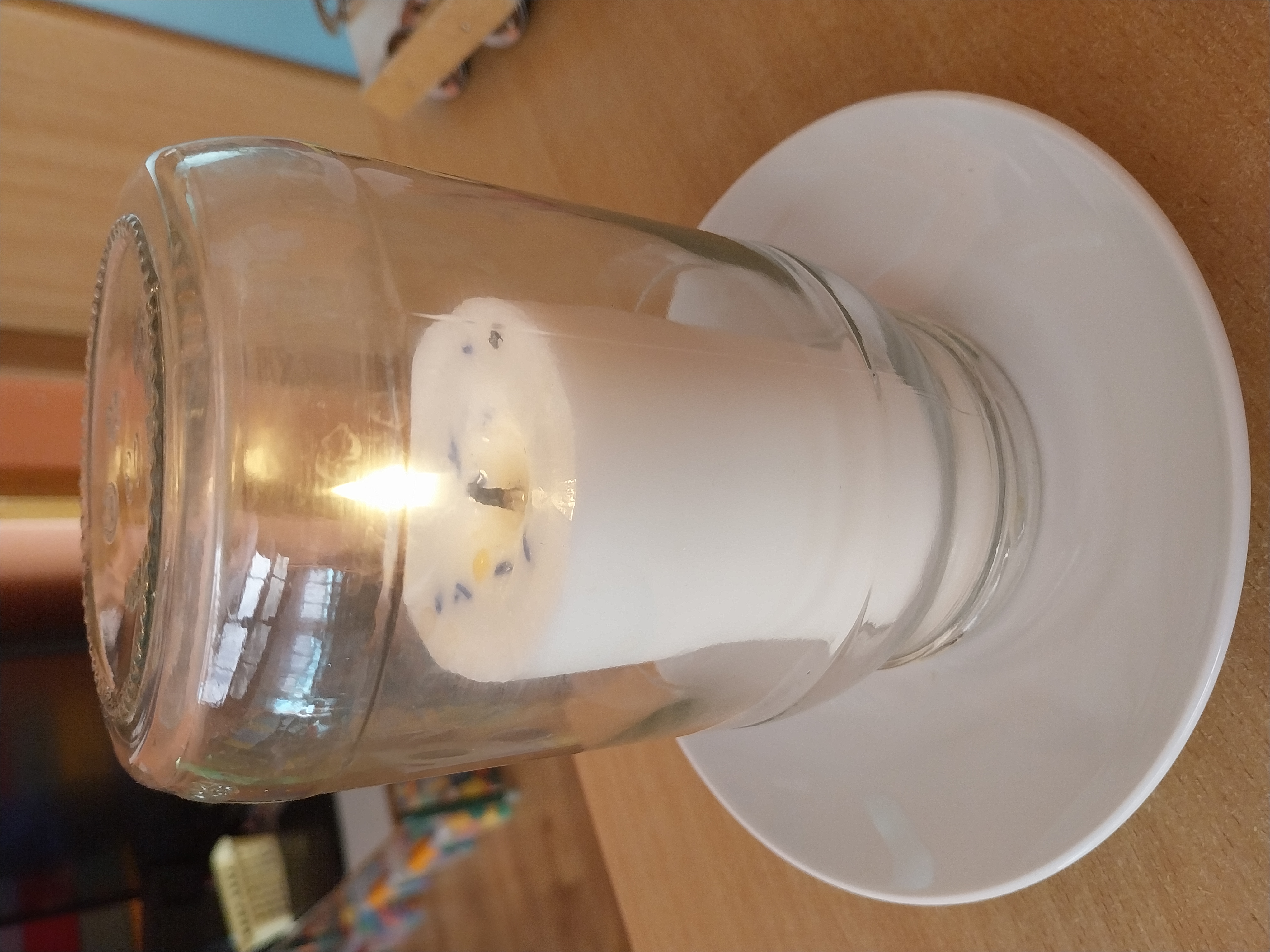 1. Doświadczenie z gaszeniem ognia przez odcięcie dopływu tlenu poprzedzone pytaniem : Co się stanie, gdy zakryję świeczkę słoikiem?