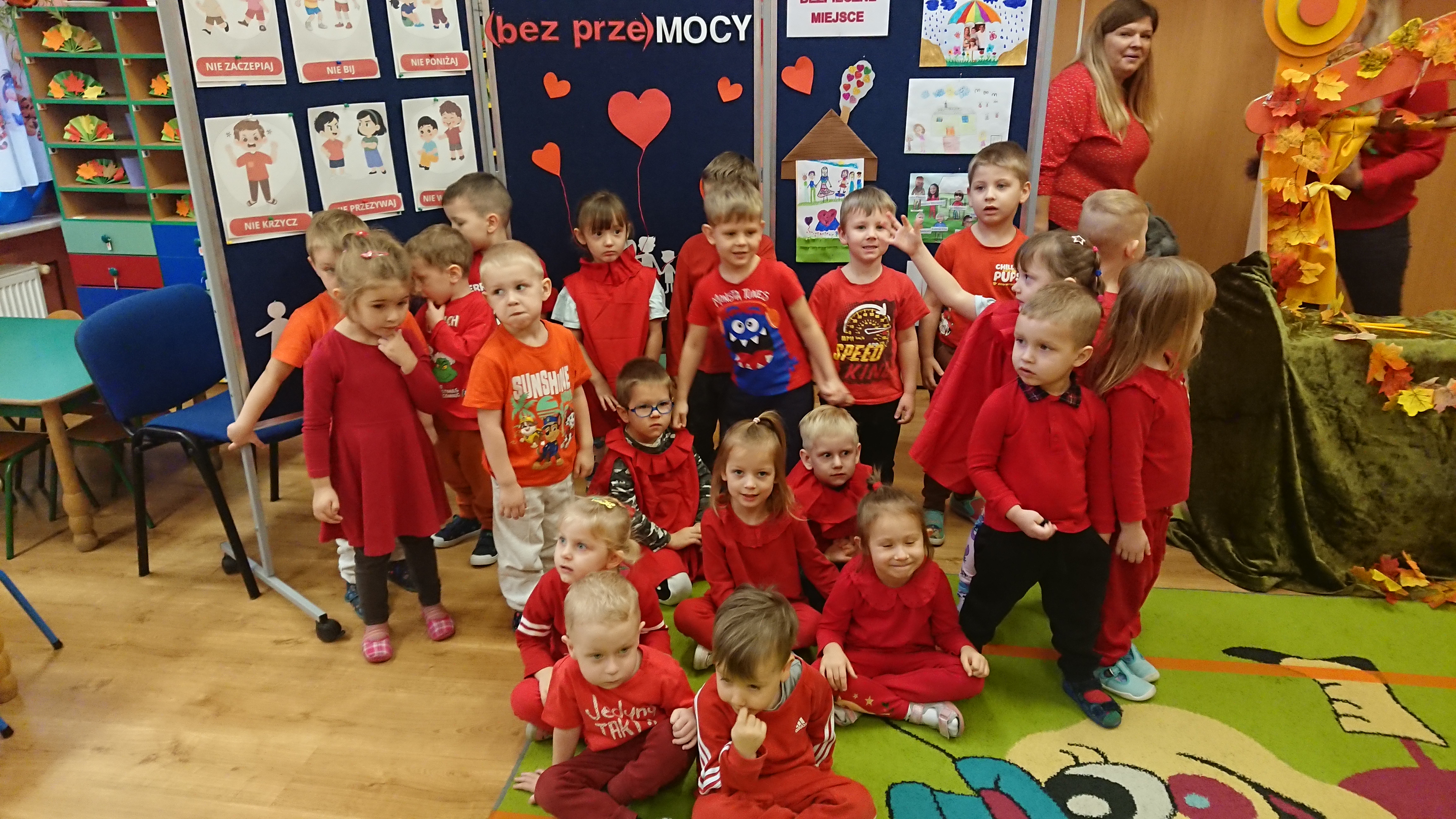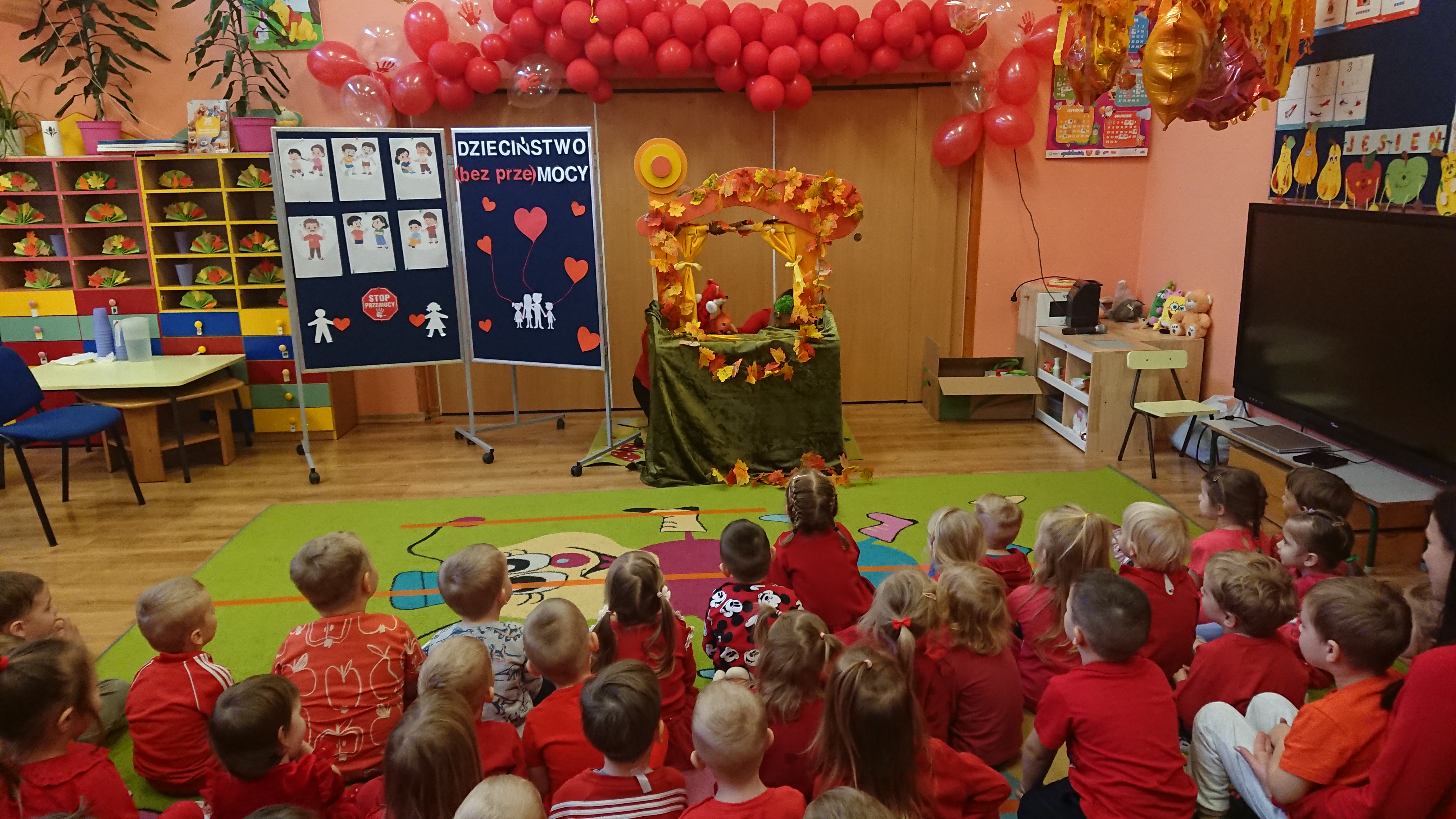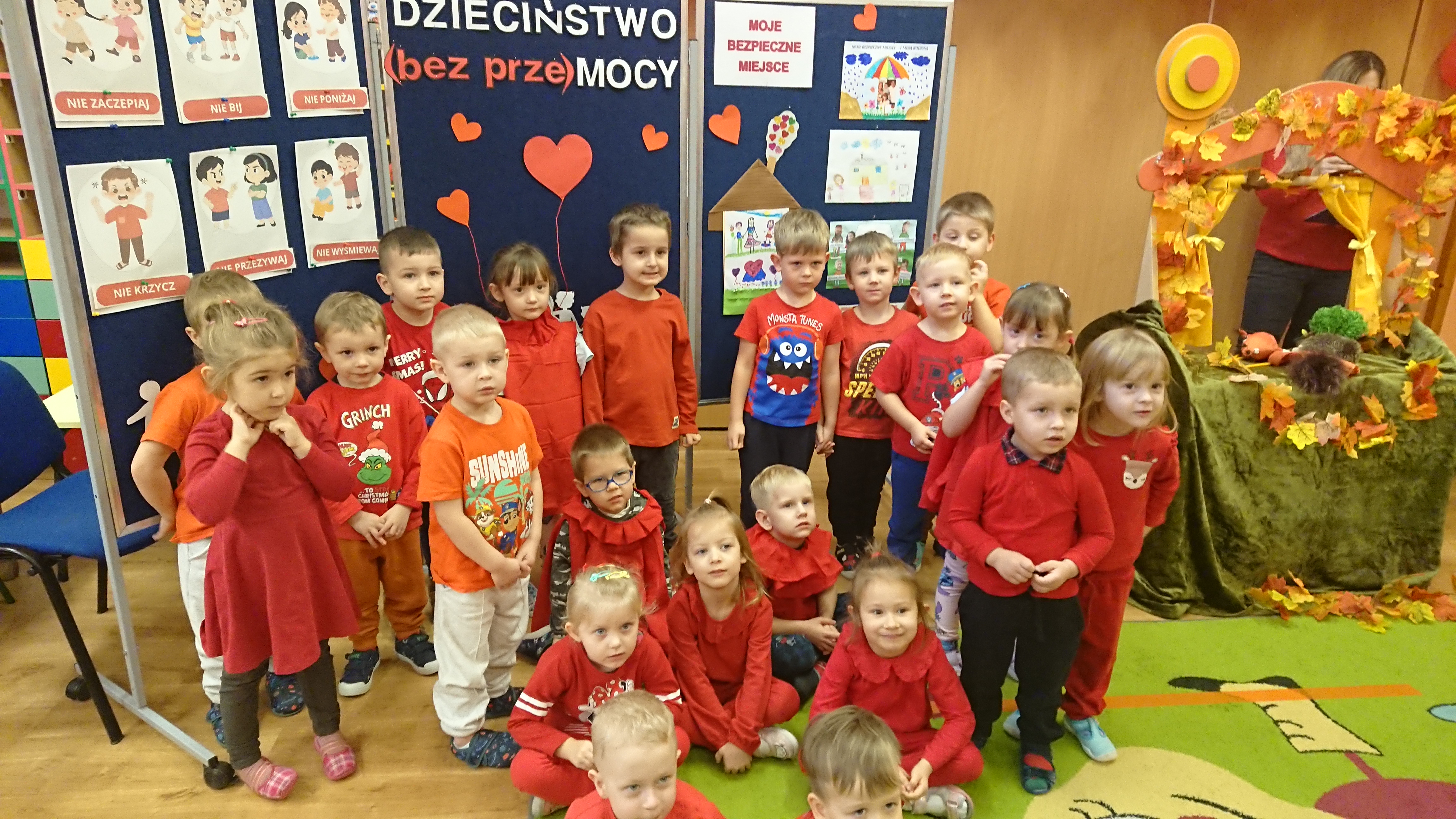 17 listopada (poniedziałek), Elfy brały udział w zajęciach edukacyjnych z racji przyłączenia sie naszego Przedszkola do Ogólnopolskiej Kampanii "Dzieciństwo bez Przemocy". tego dnia wszyscy ubrani byliśmy na czerwono, jako znak sprzeciwu wobec krzywdzenia dzieci.