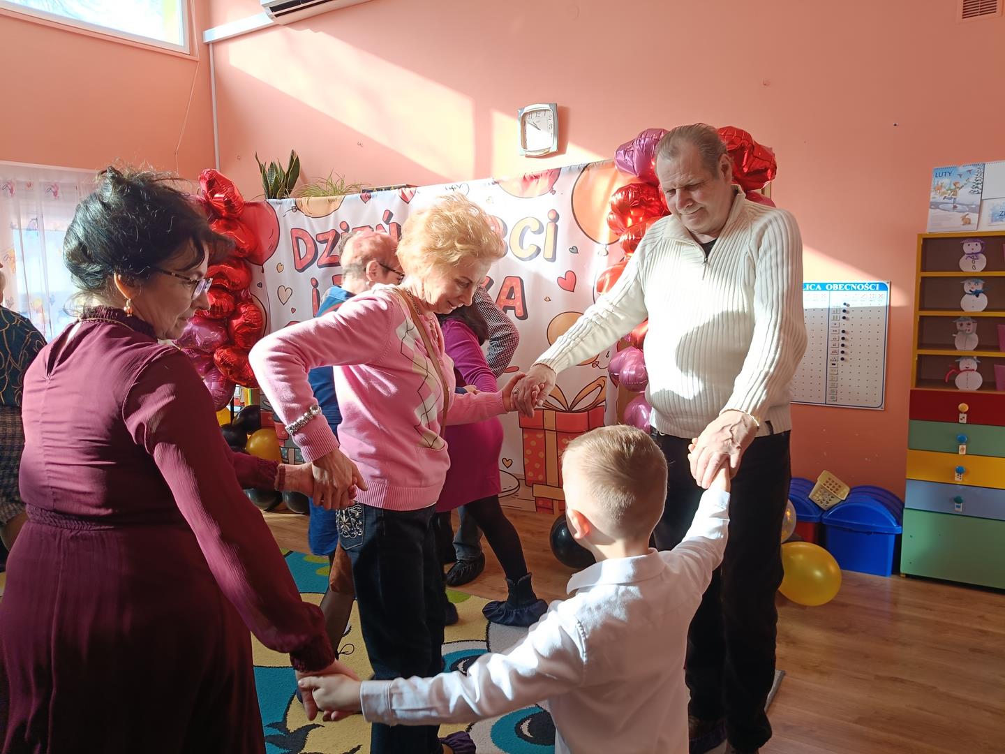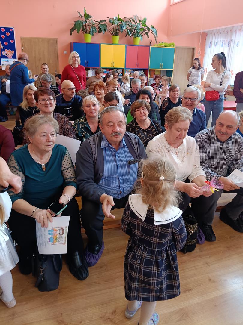 W poniedziałek 9 lutego w grupie Smerfy miało miejsce wielkie święto. W tym dniu obchodziliśmy Dzień Babci i Dziadka, to bardzo ważna tradycja w naszym przedszkolu. Dziadkowie bowiem to wielki skarb. To oni czynią dzieciństwo bardziej pełnym , udanym i szczęśliwym. Przedszkolaki dołożyły starań, aby ten dzień był wyjątkowy. Zaprezentowały montaż słowno – muzyczny oraz zatańczyły do piosenki „Żaglówką świat opłyniemy”. Po części artystycznej wnuczęta obdarowały babcie i dziadków własnoręcznie wykonanymi upominkami oraz zaprosiły na słodki poczęstunek i zabawy z dziadkami. Składamy serdeczne podziękowania wszystkim babciom i dziadkom za obecność w tym szczególnym dniu.