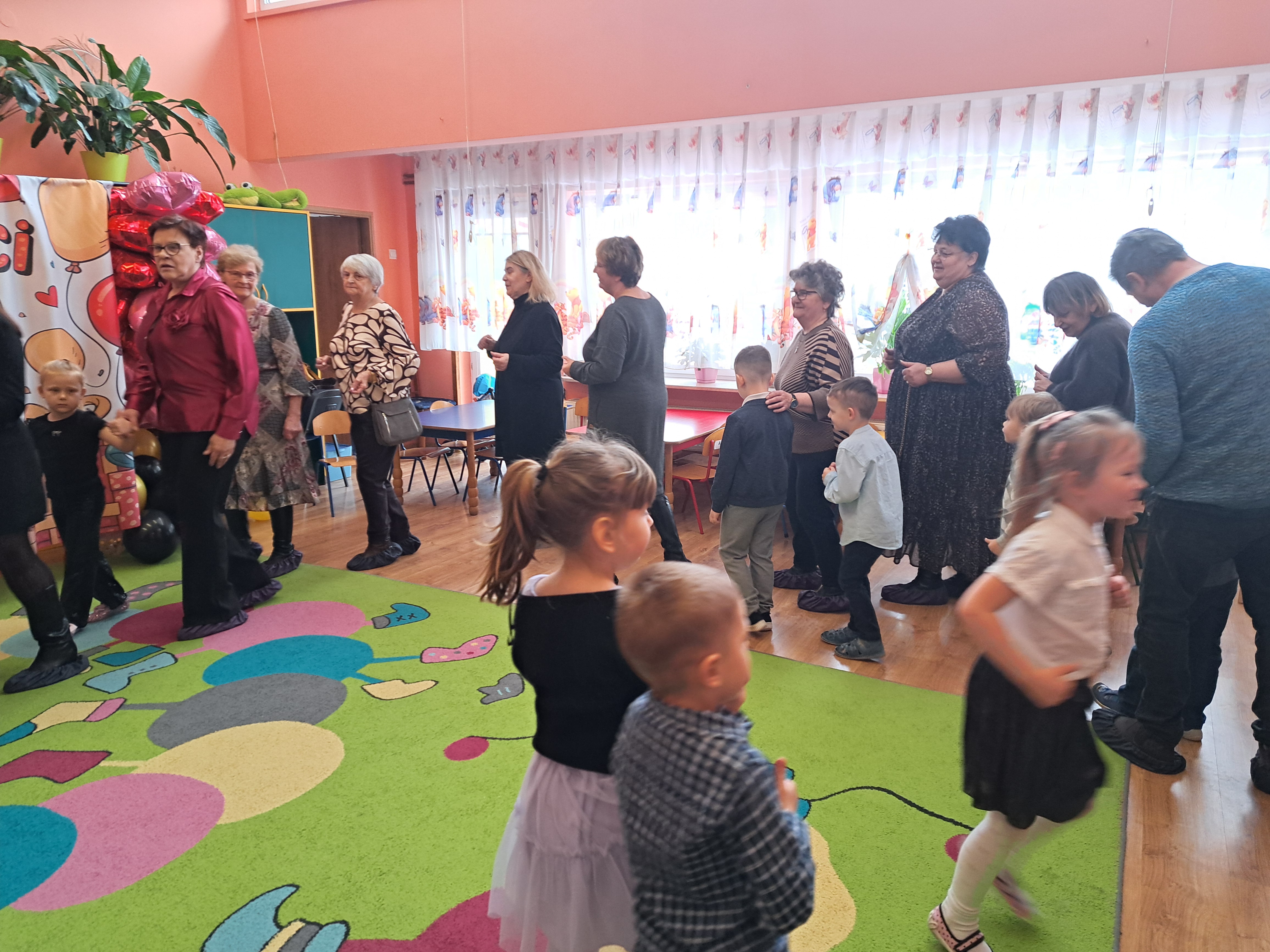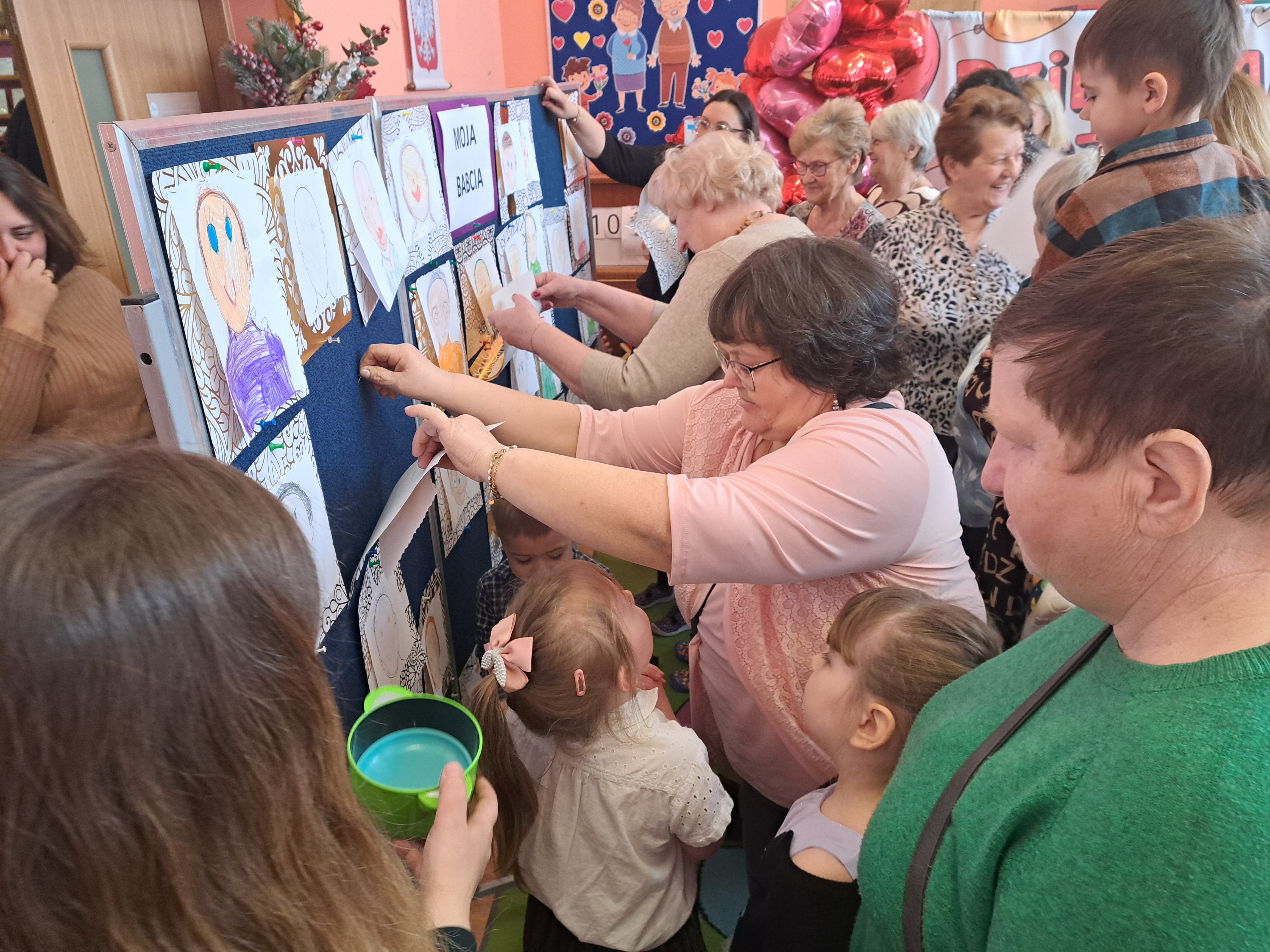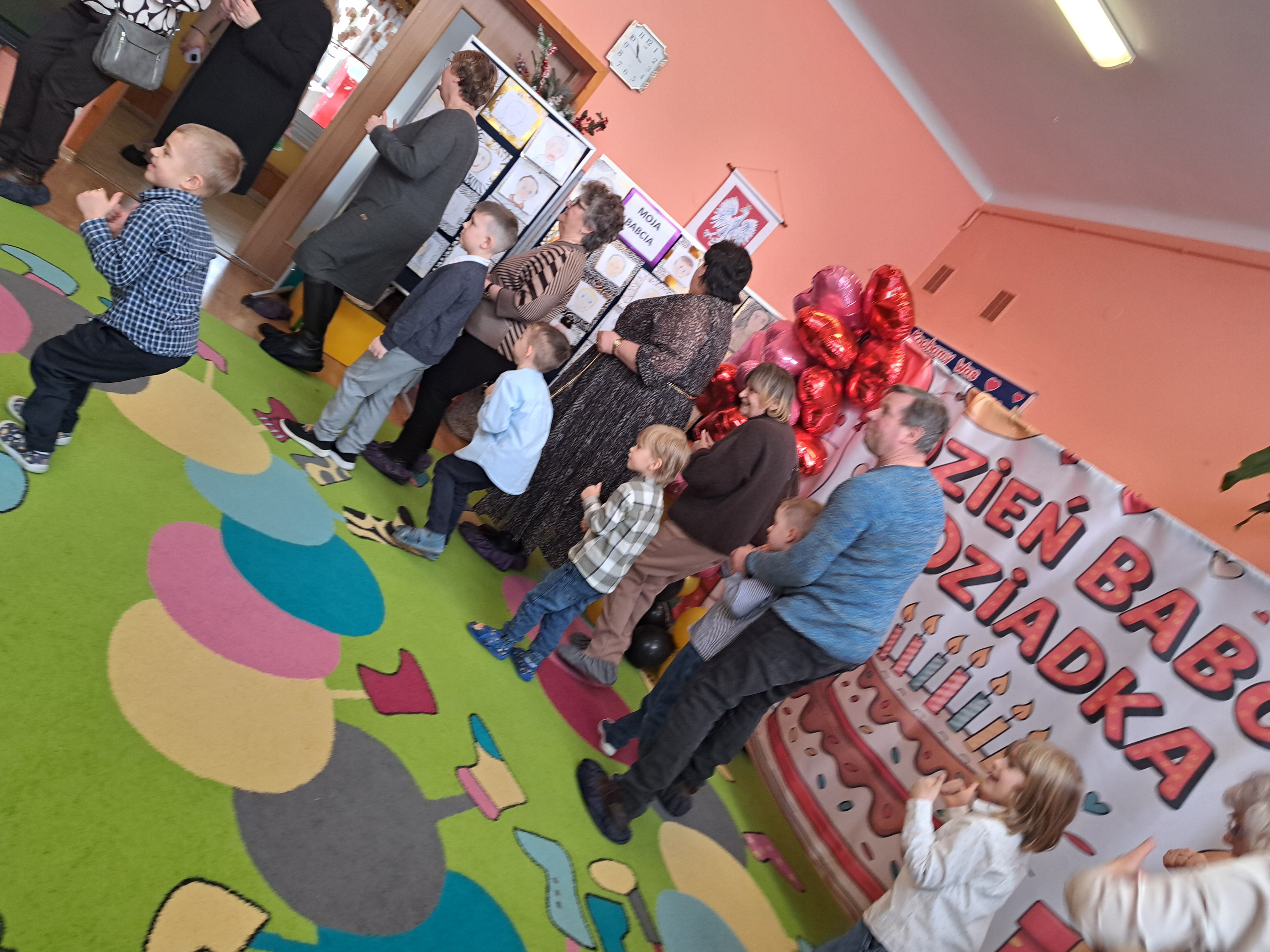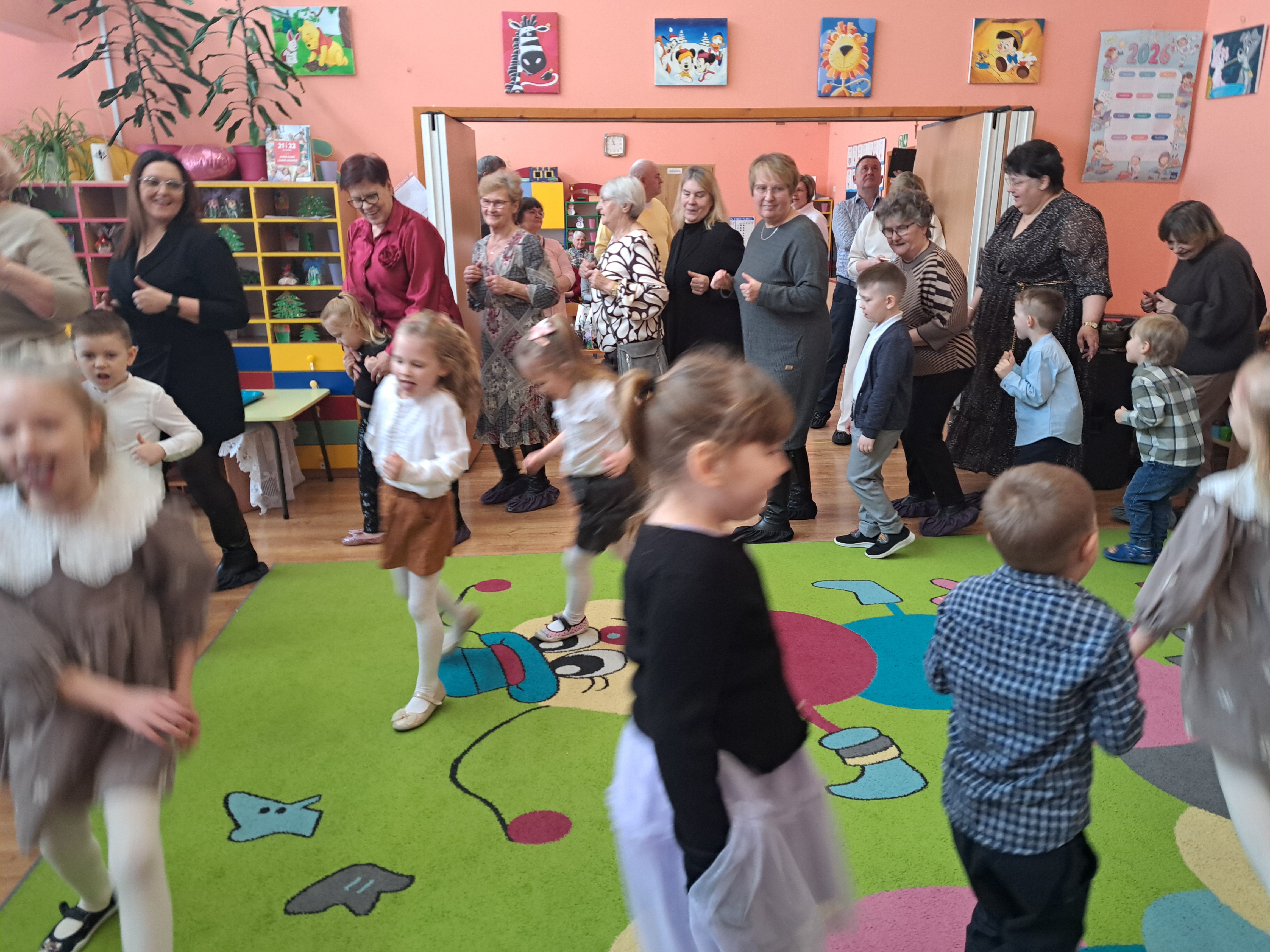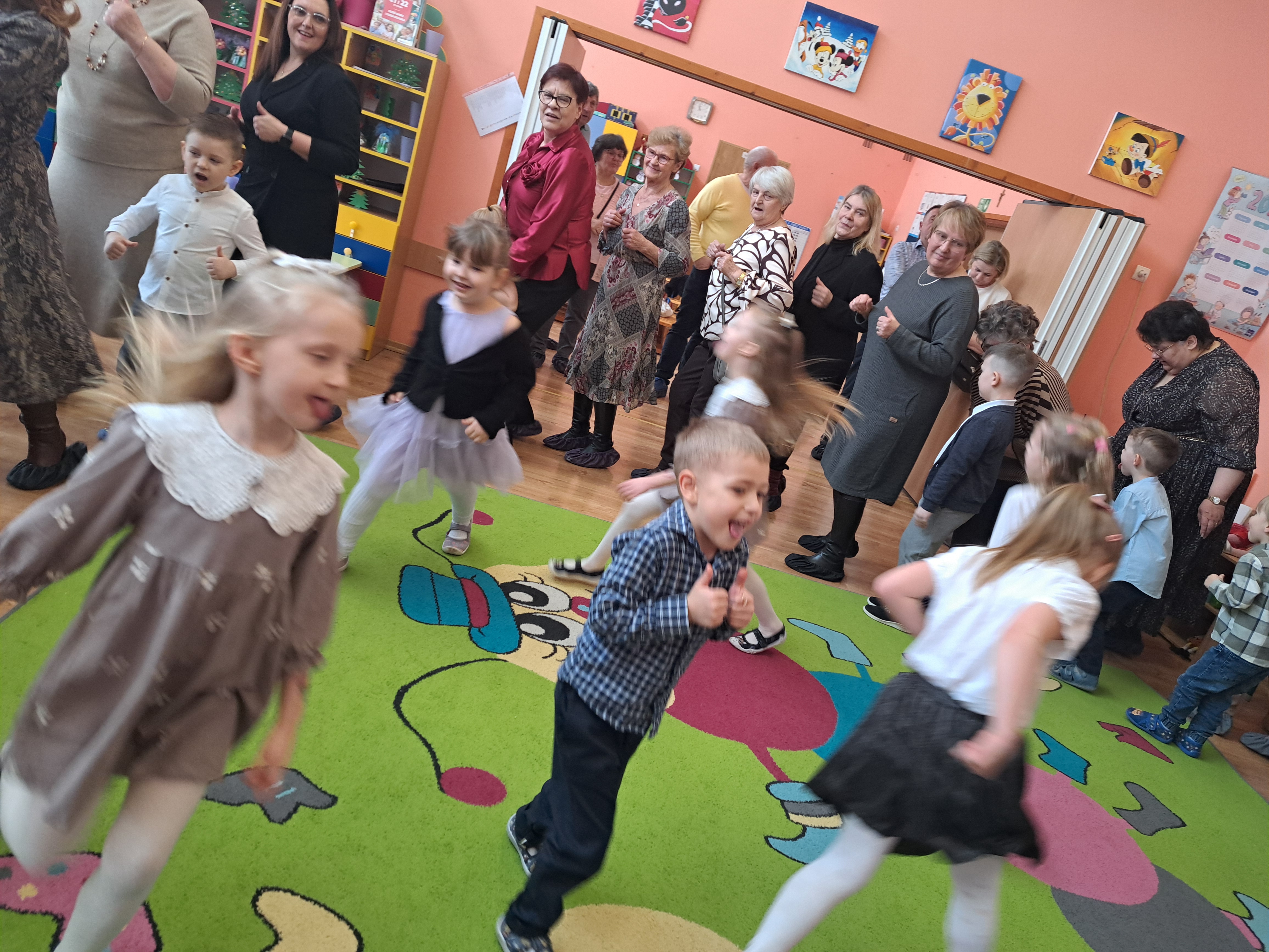 Dnia 10 lutego, w naszej grupie odbyła się uroczystość z okazji Dnia Babci i Dziadka. Misie zaprezentowały wiersze, piosenki, oraz zabawę ruchową przy piosence. Mali artyści z przejęciem prezentowali swoje umiejętności. Ten dzień był wyjątkowy, pełen uśmiechu, radości i niezapomnianych wrażeń. Niesamowitym wyzwaniem dla zaproszonych gości był moment odnalezienia własnego portretu Babci i Dziadka, narysowanego przez wnuczęta, oraz udział w proponowanych zabawach muzyczno-ruchowych. Na zakończenie tego wspaniałego spotkania, dzieci wręczyły swoim ukochanym dziadkom własnoręcznie wykonane upominki (pomalowane kwiatki i udekorowane ciasteczka) i zaprosiły na pyszny tort.