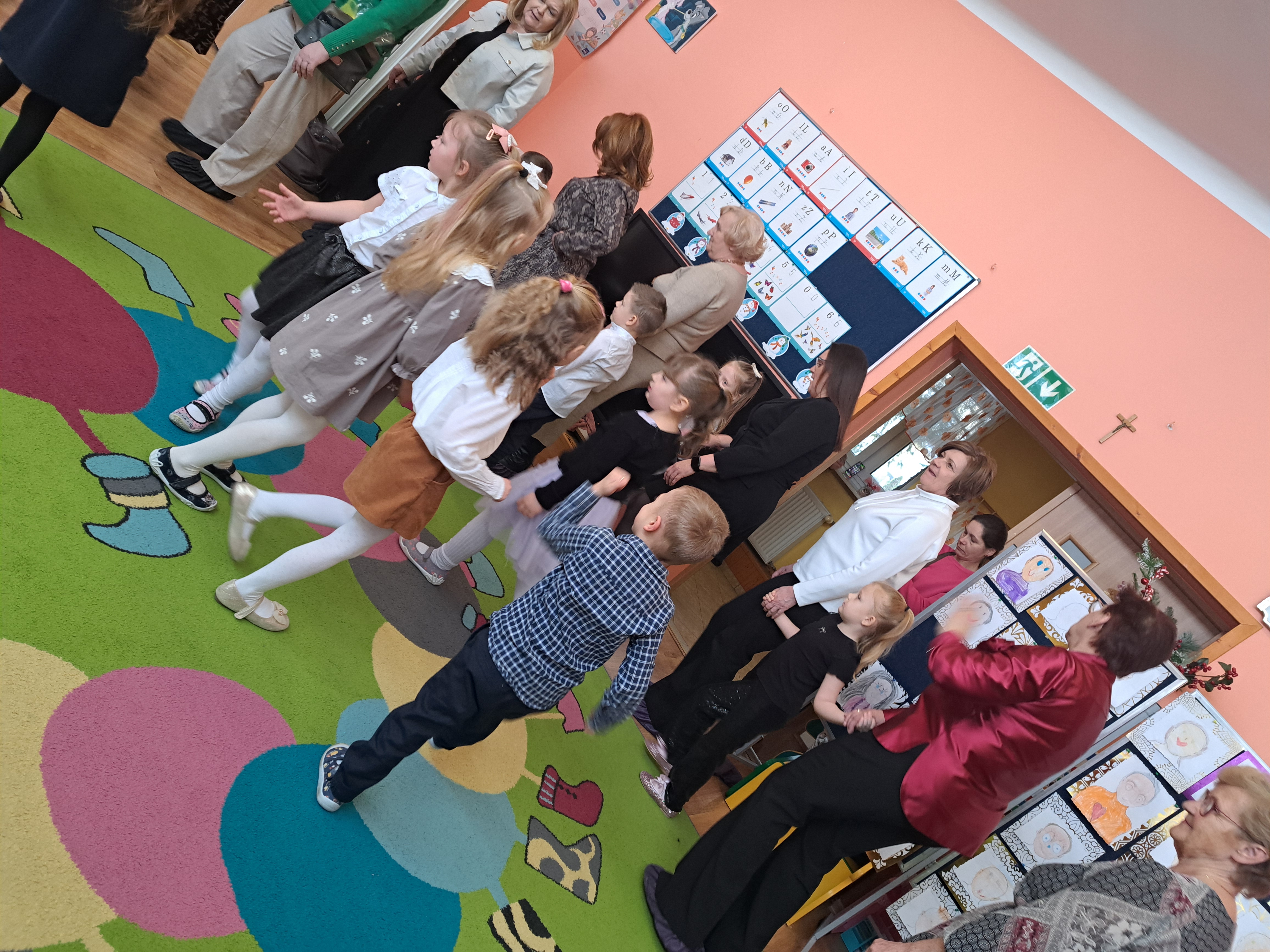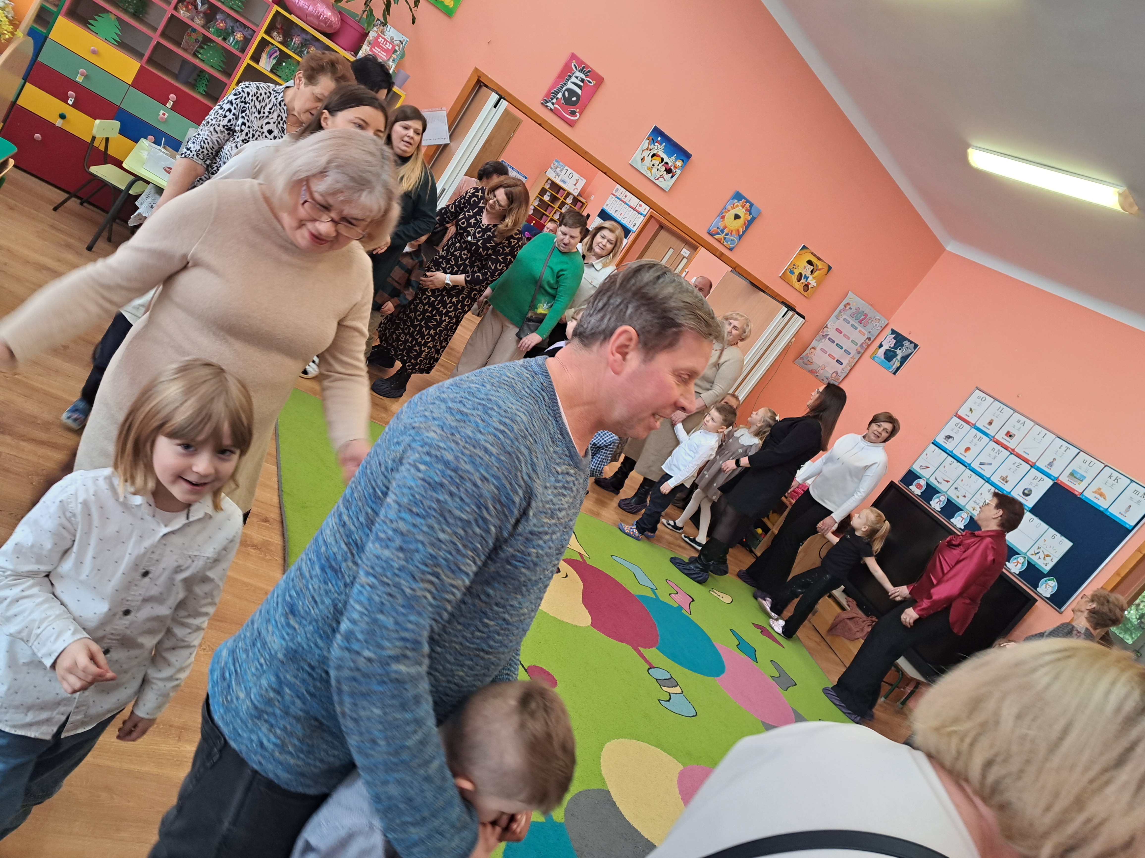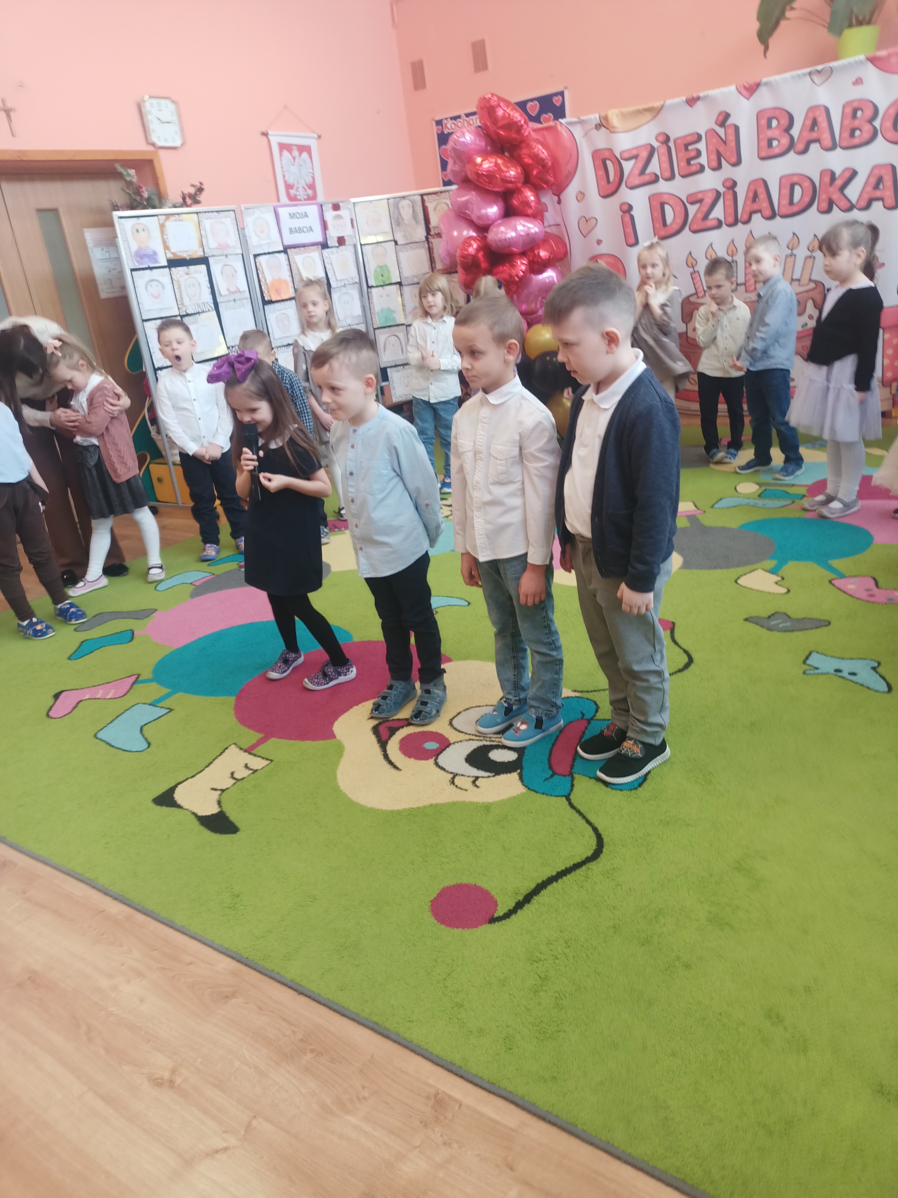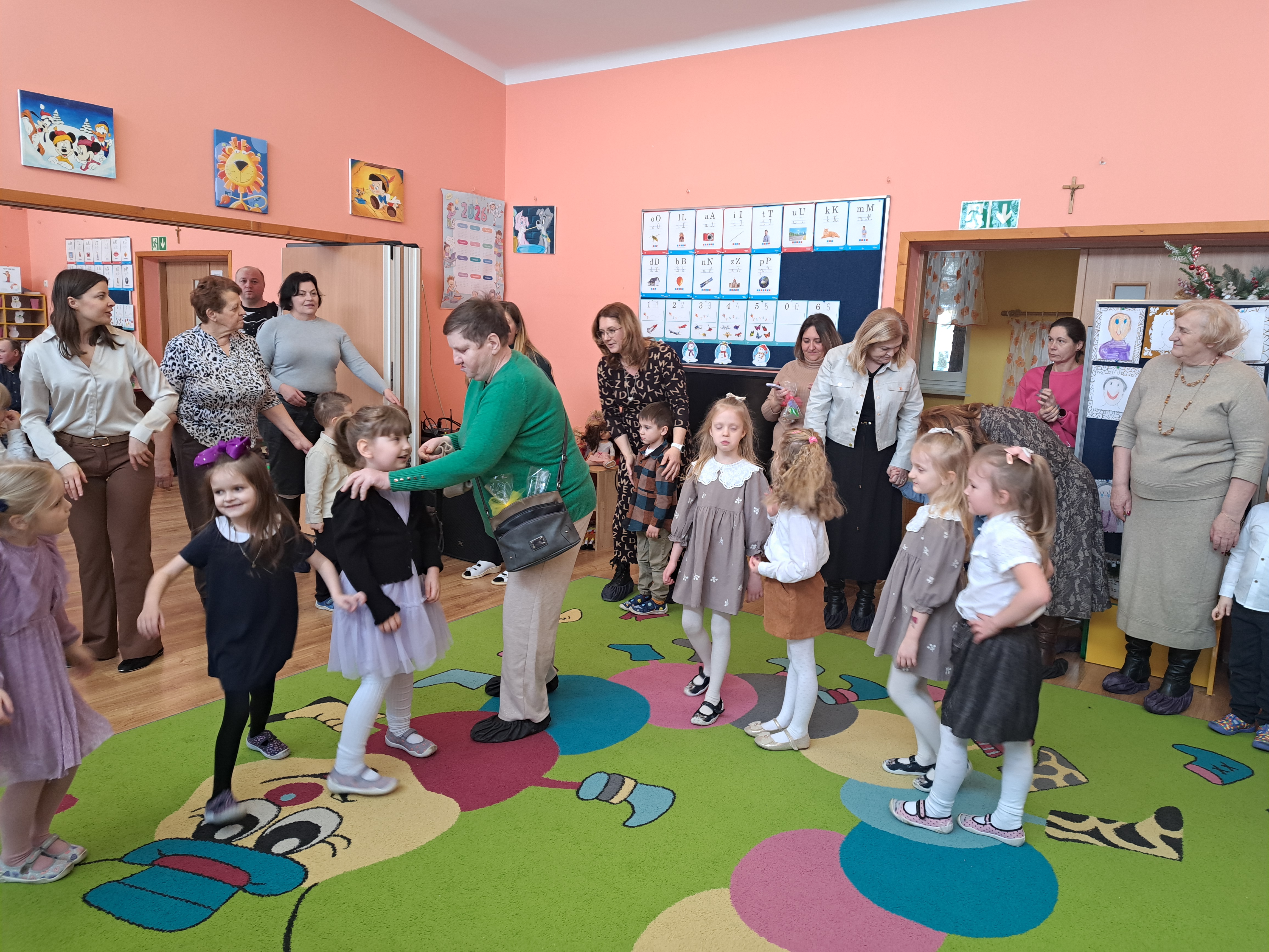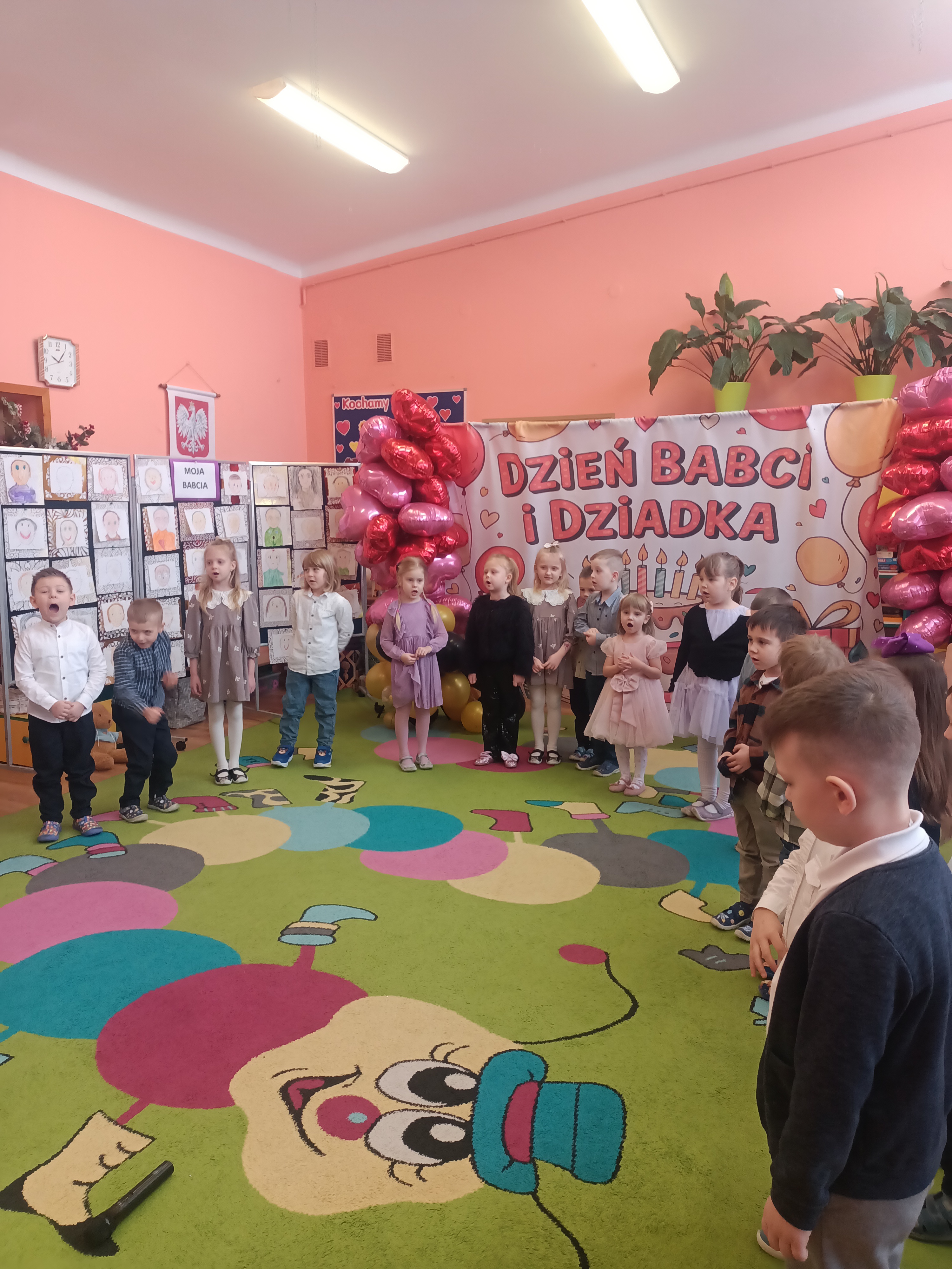 Dnia 10 lutego, w naszej grupie odbyła się uroczystość z okazji Dnia Babci i Dziadka. Misie zaprezentowały wiersze, piosenki, oraz zabawę ruchową przy piosence. Mali artyści z przejęciem prezentowali swoje umiejętności. Ten dzień był wyjątkowy, pełen uśmiechu, radości i niezapomnianych wrażeń. Niesamowitym wyzwaniem dla zaproszonych gości był moment odnalezienia własnego portretu Babci i Dziadka, narysowanego przez wnuczęta, oraz udział w proponowanych zabawach muzyczno-ruchowych. Na zakończenie tego wspaniałego spotkania, dzieci wręczyły swoim ukochanym dziadkom własnoręcznie wykonane upominki (pomalowane kwiatki i udekorowane ciasteczka) i zaprosiły na pyszny tort.