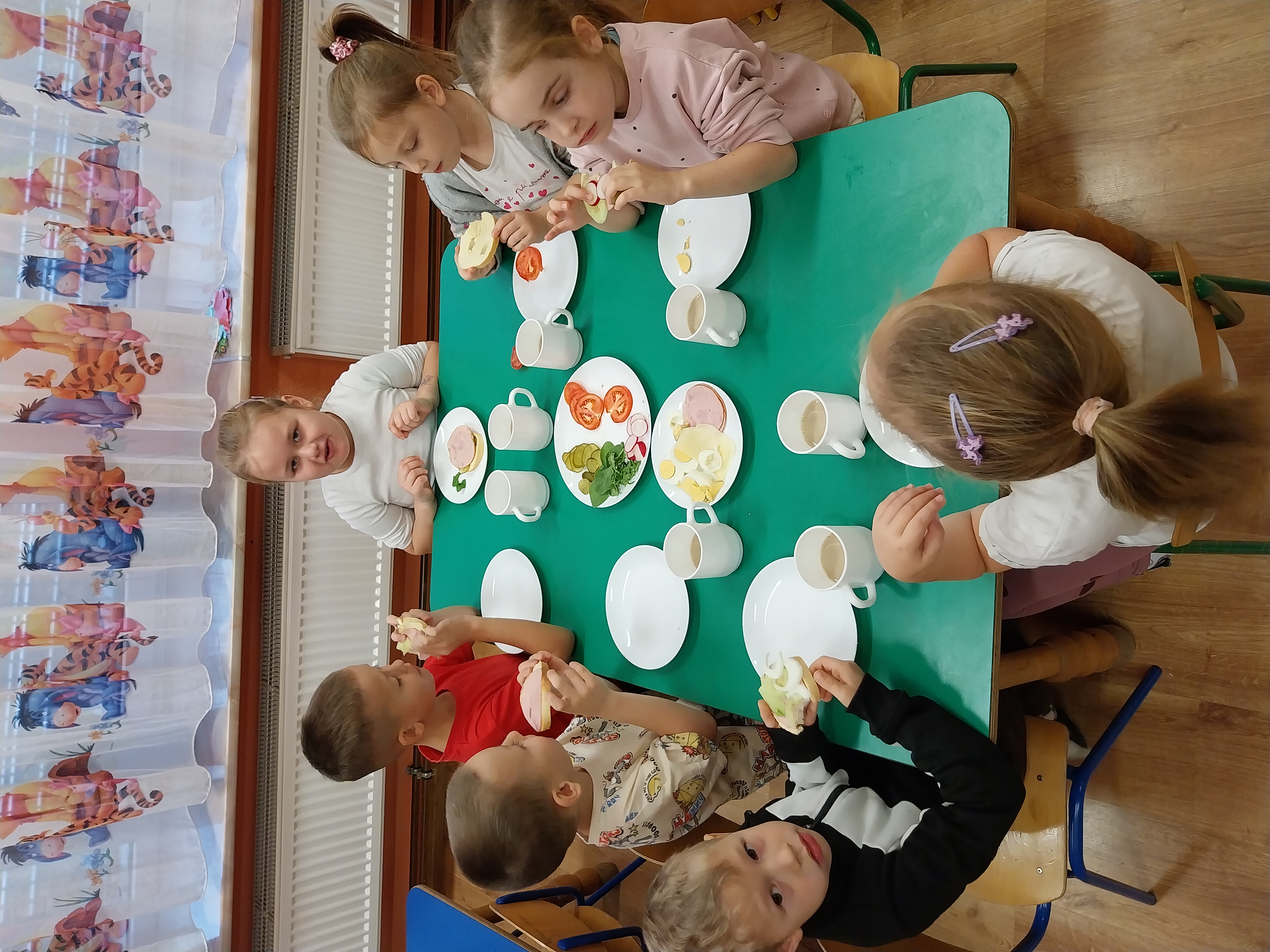 Dnia 3 listopada w grupie Zajączki obchodziliśmy Dzień Kanapki. Na śniadanie wszystkie dzieci przygotowywały sobie kanapki z ulubionych produktów. Samodzielnie smarowały pieczywo masłem oraz wybierały produkty, które lubią. Wybór był duży: wędlina, ser, jajko, ogórek, pomidor, rzodkiewka, rukola i szpinak. Dzień Kanapki stanowił fajną okazję do rozwijania samodzielności, dokonywania wyboru i podejmowania decyzji. Była to też zachęta do promowania zdrowych nawyków żywieniowych. Warto dać dzieciom okazję, aby miały swój udział w przygotowanich oraz zachęcać do spożywania różnorodnych produktów.