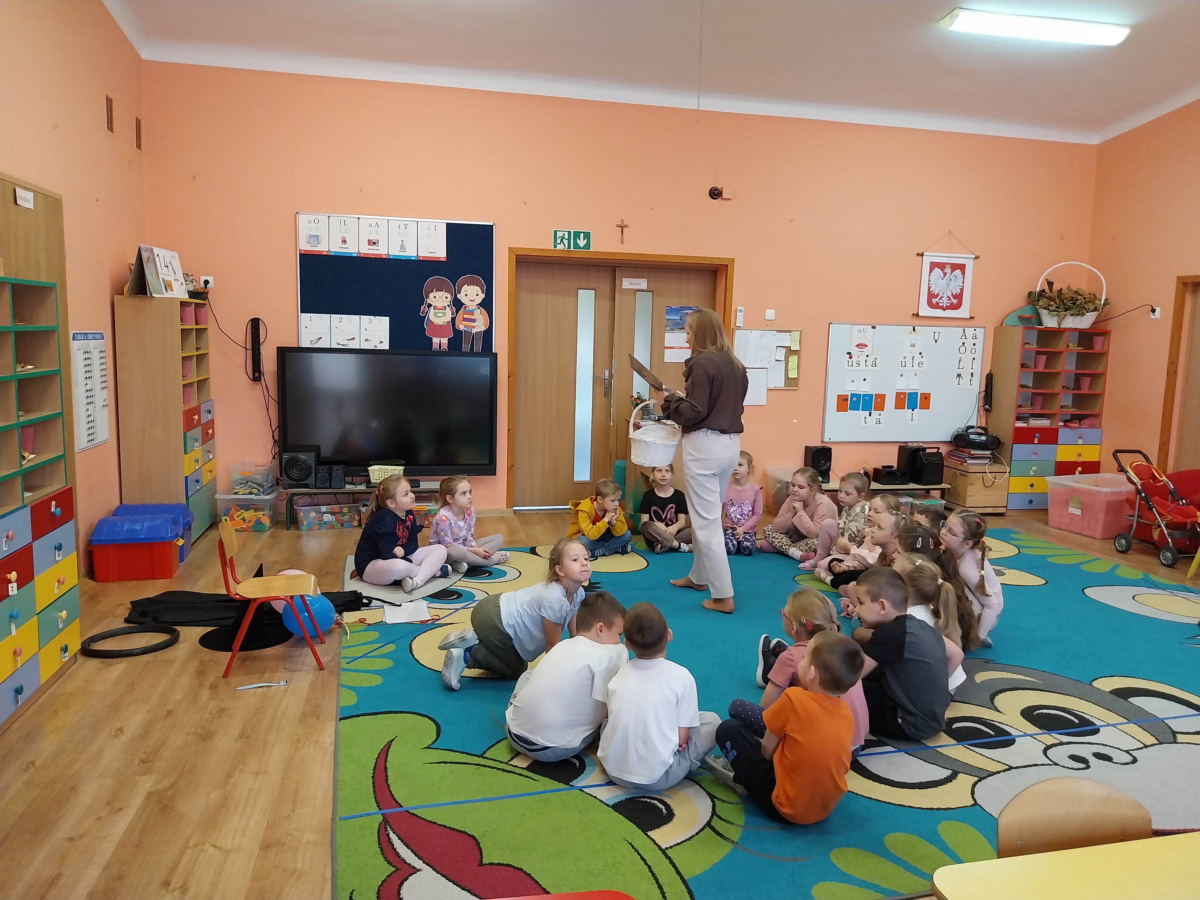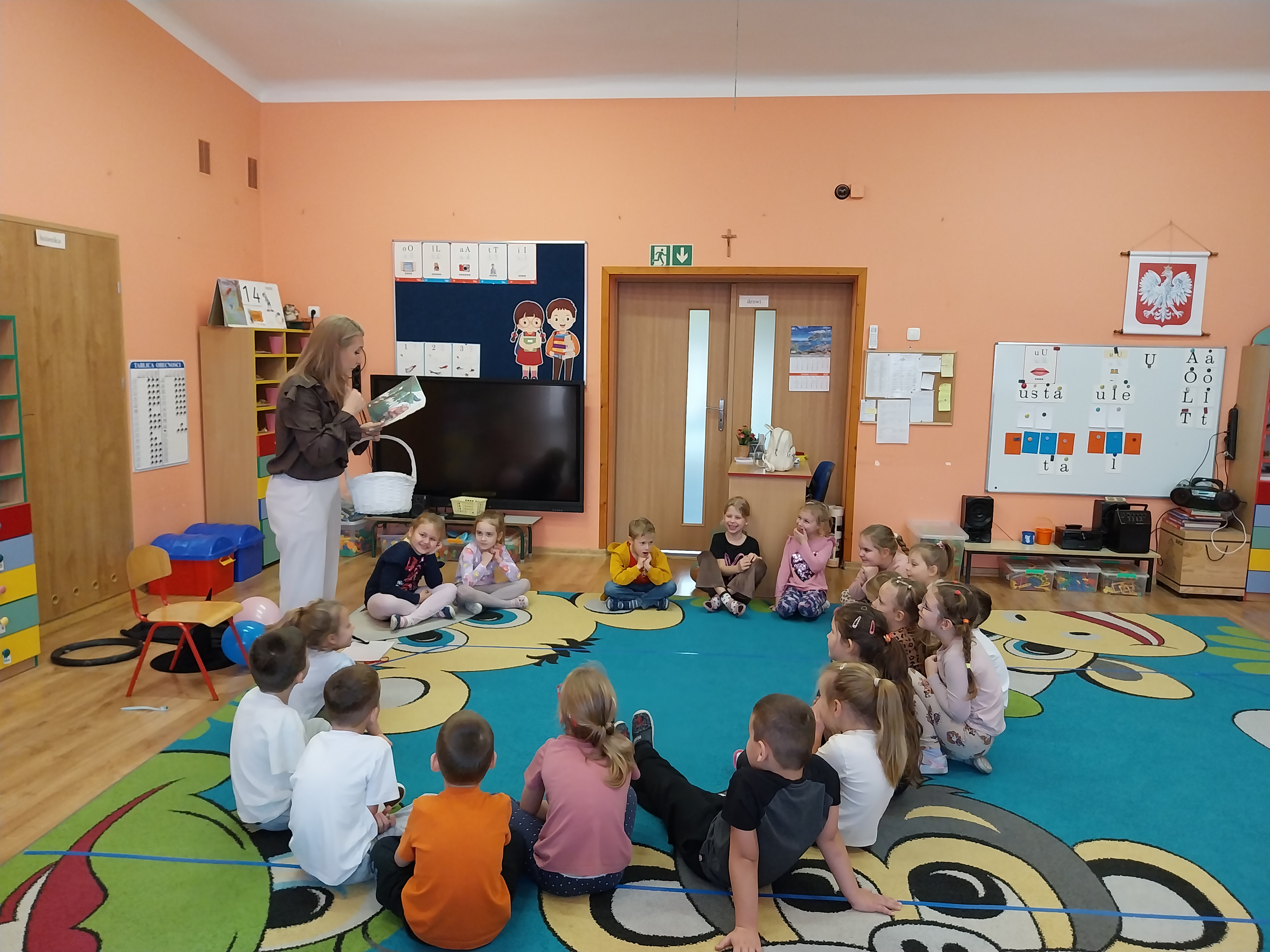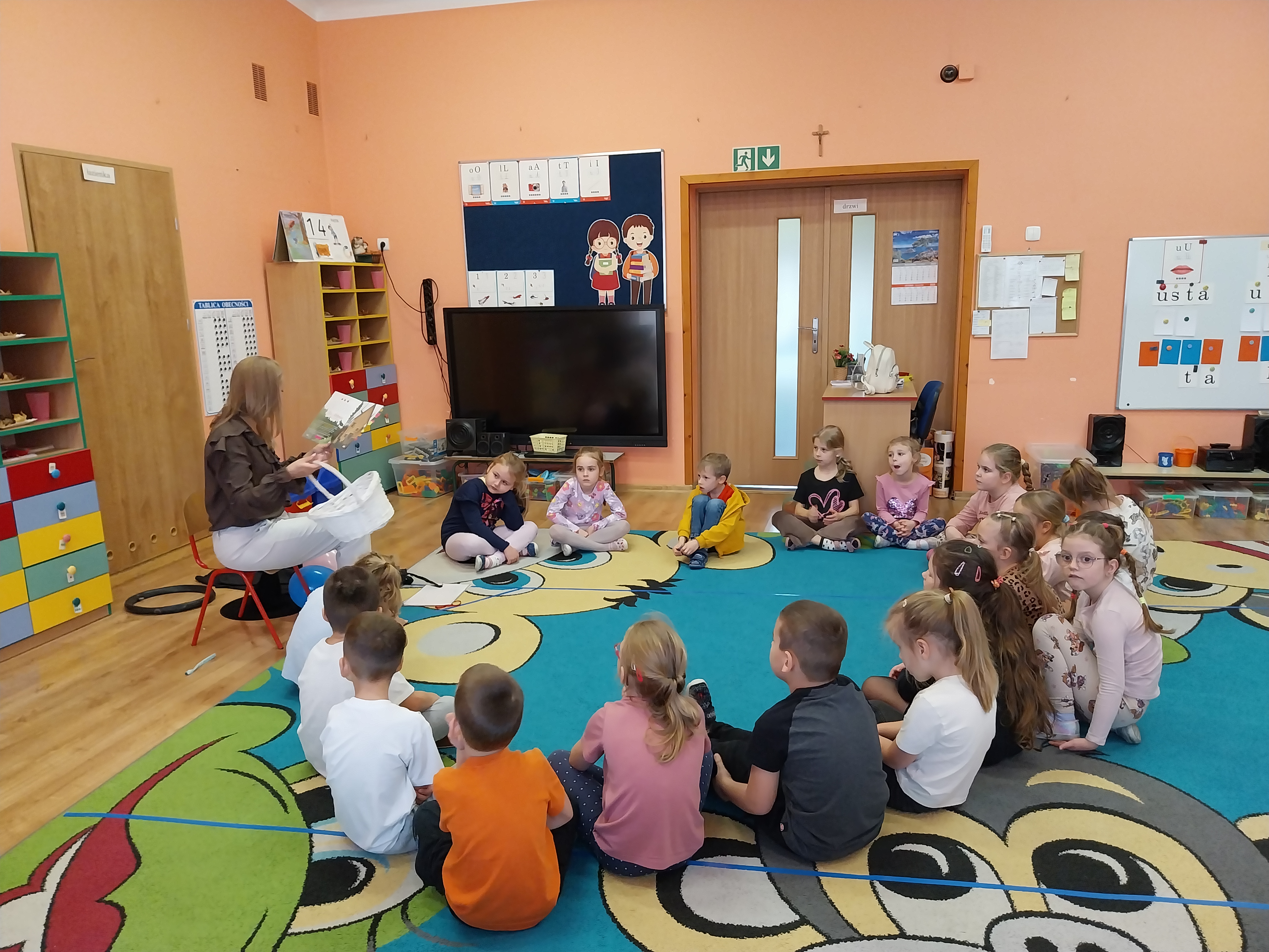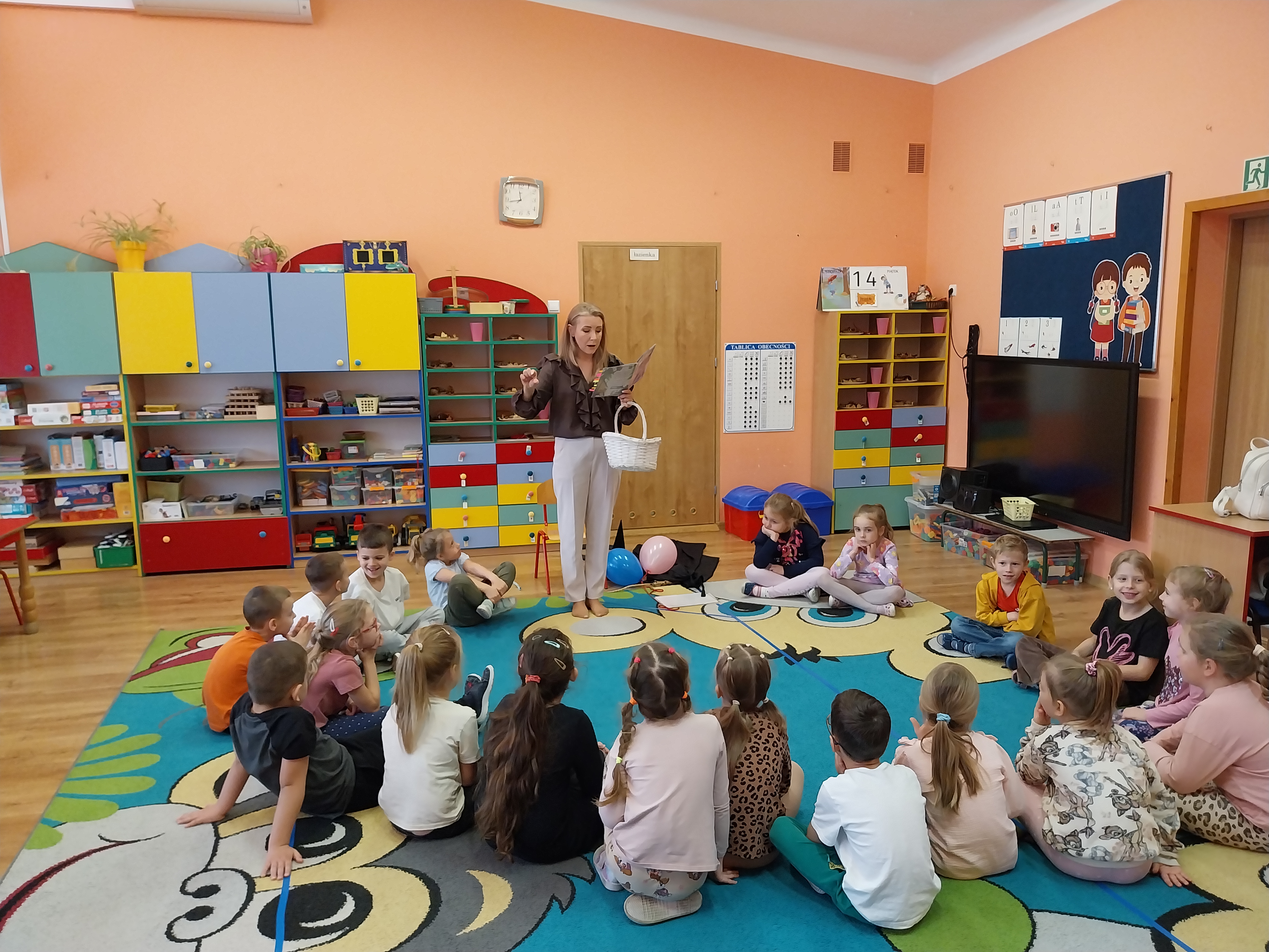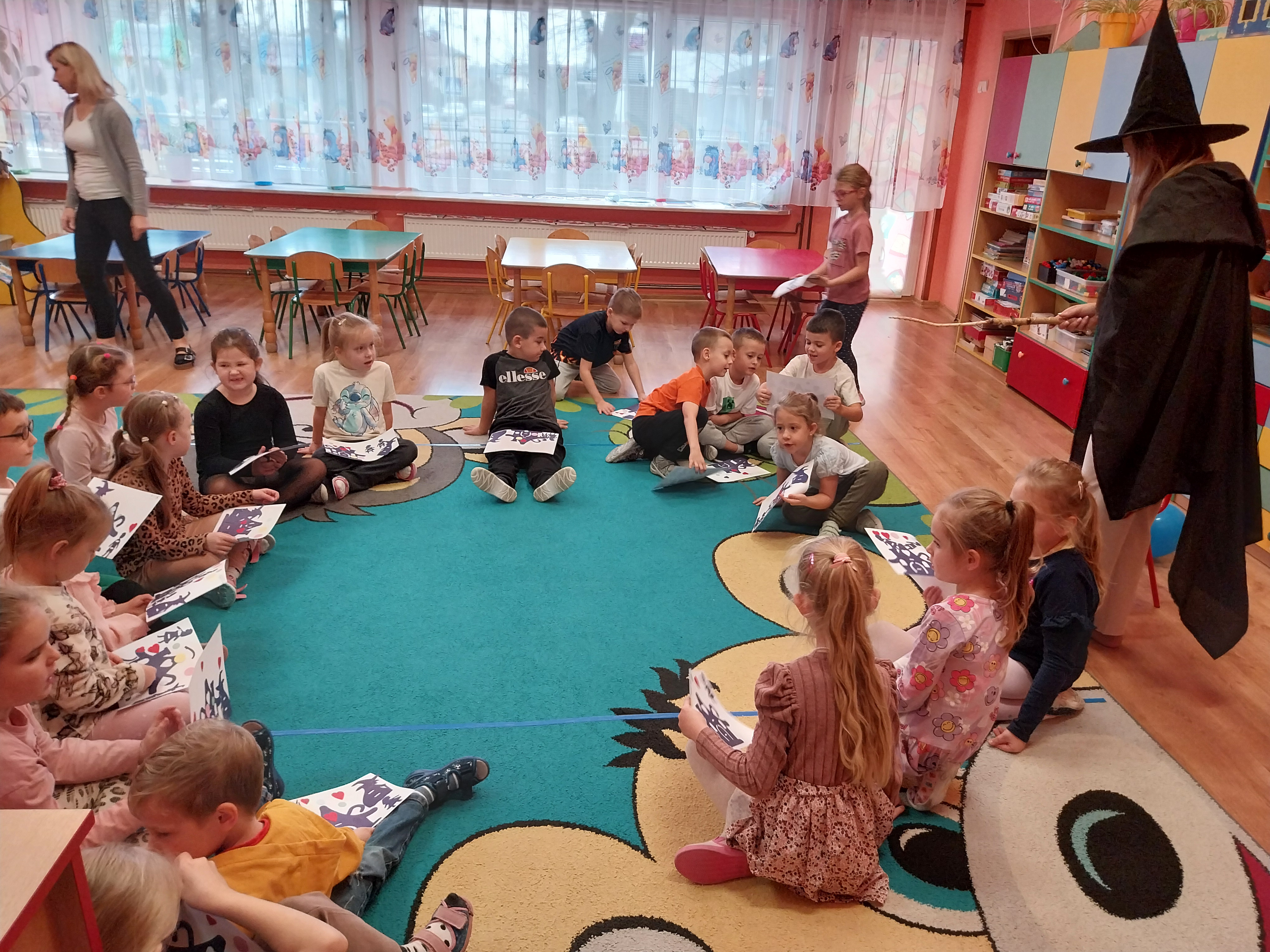 Dnia 14 listopada odbyło się kolejne spotkanie z literaturą dziecięcą. Tym razem gościliśmy Panią Martę Panufnik w naszym przedszkolu. Dzieci poznały klasyczną bajkę w niezwykłym wydaniu pt: Jaś, Małgosia i stara czarownica. Miały okazję dostrzec różnice między klasyczną wersją, którą niedawno poznały, a tą zaprezentowaną przez Panią Martę. Dziękujemy za czas spędzony z książką i wzruszające doznania. Prace plastyczne wykonane wczesniej, kiedy omawialiśmy temat kompleksowy: Baśnie, bajki i bajeczki nadały temu spotkaniu wyjątkowego charakteru.