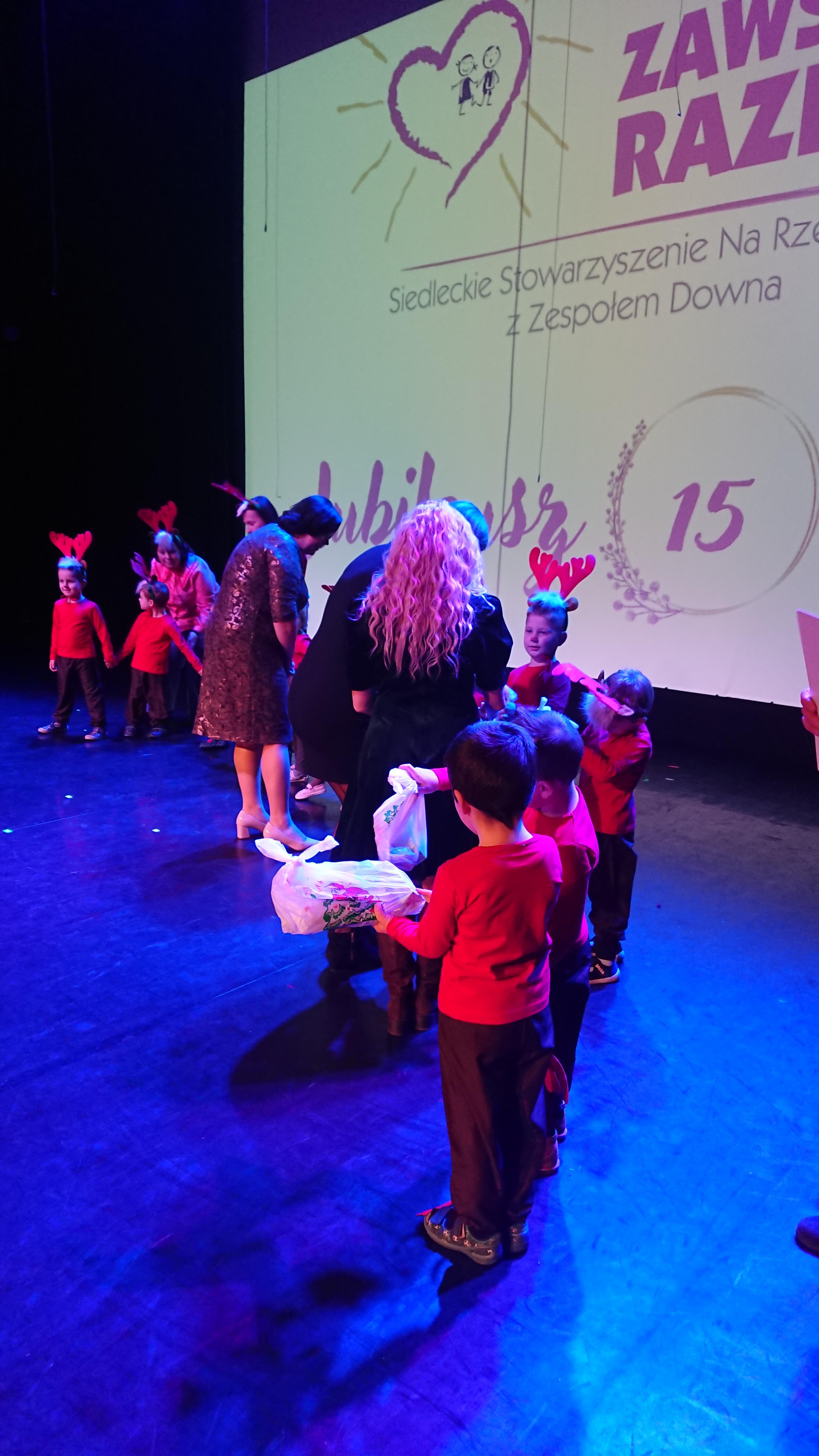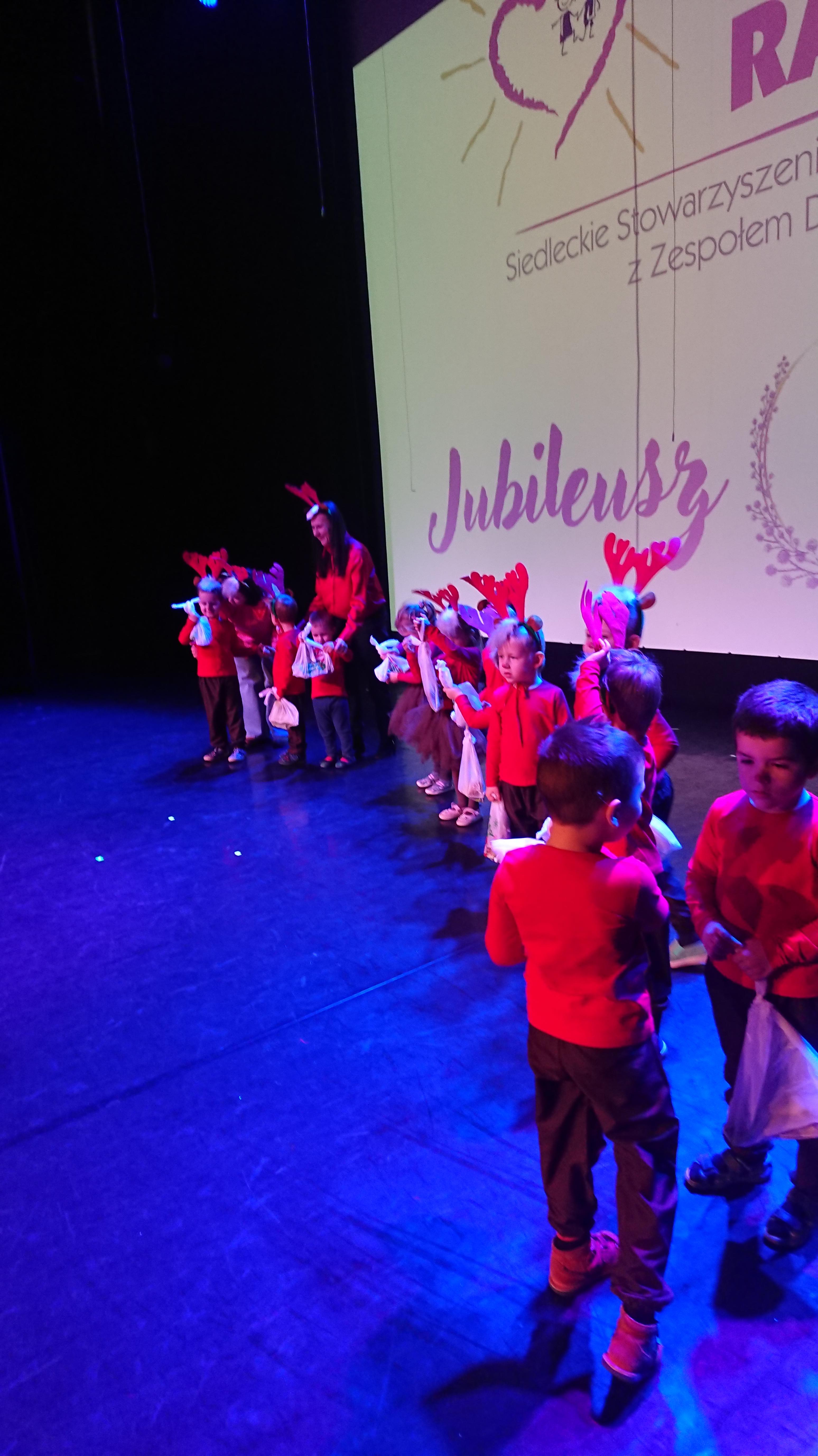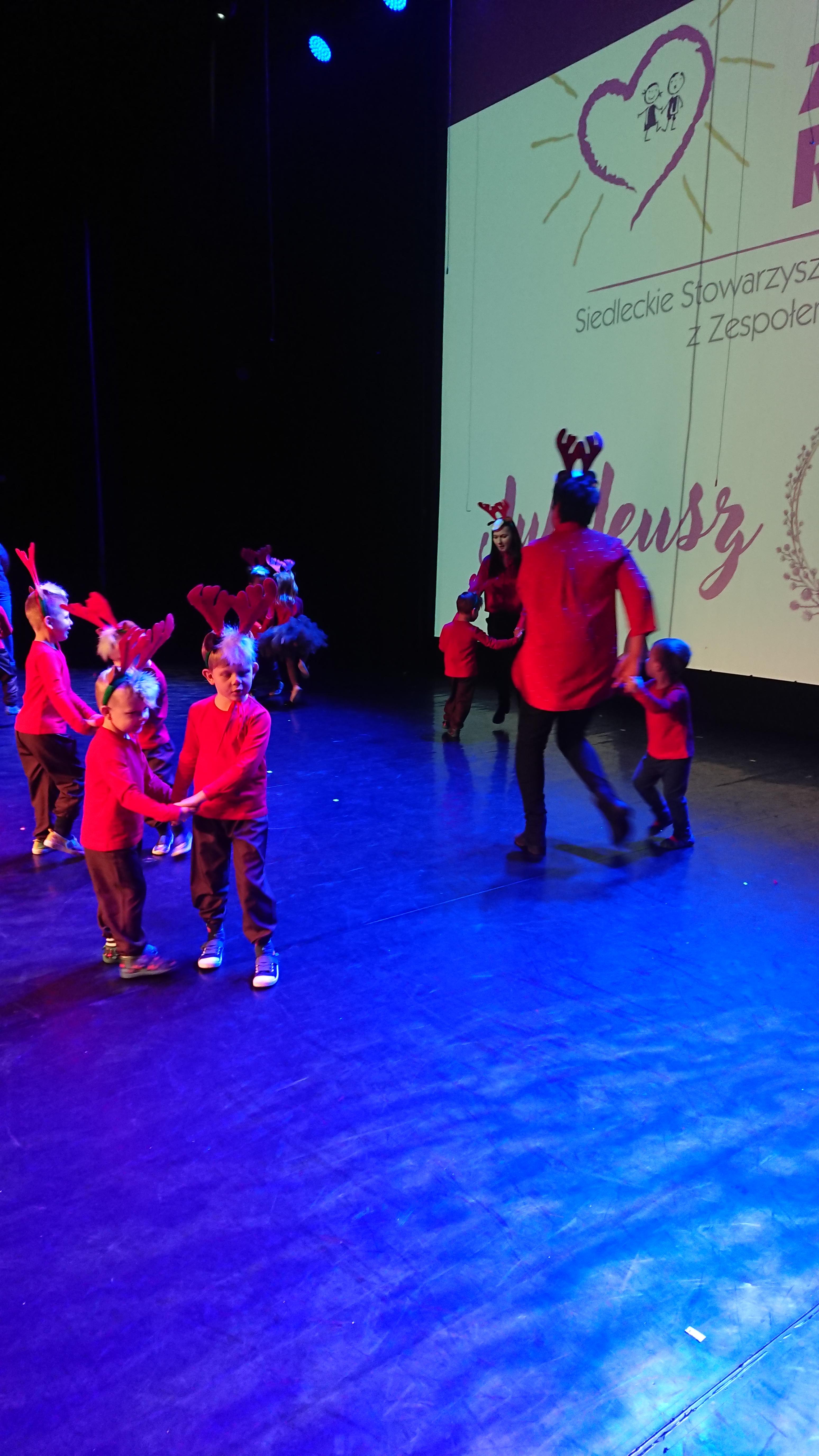 W niedzielę (07 grudnia), Elfy uczestniczyły w Jubileuszu 15 - lecia powstania Siedleckiego Stowarzyszenia Na Rzecz Osób z Zespołem Downa"Zawsze Razem", który odbywał się w Centrum Kultury i Sztuki w Siedlcach. Oglądaliśmy występy artystyczne podopiecznych Stowarzyszenia w różnym wieku, teatrzyk w wykonaniu Pań z Miejskiego Przedszkola nr 27 w Siedlcach pt. "Czerwony Kapturek" i sami zaprezentowaliśmy układ taneczny na scenie. Wszyscy zebrani Goście nie mogli się nachwalić jacy jesteśmy dzielni, grzeczni, jak pięknie wyglądamy i tańczymy a nasze ciasteczka znikły w oka mgnieniu po skończonej uroczystości (bardzo wszystkim smakowały, nam też).