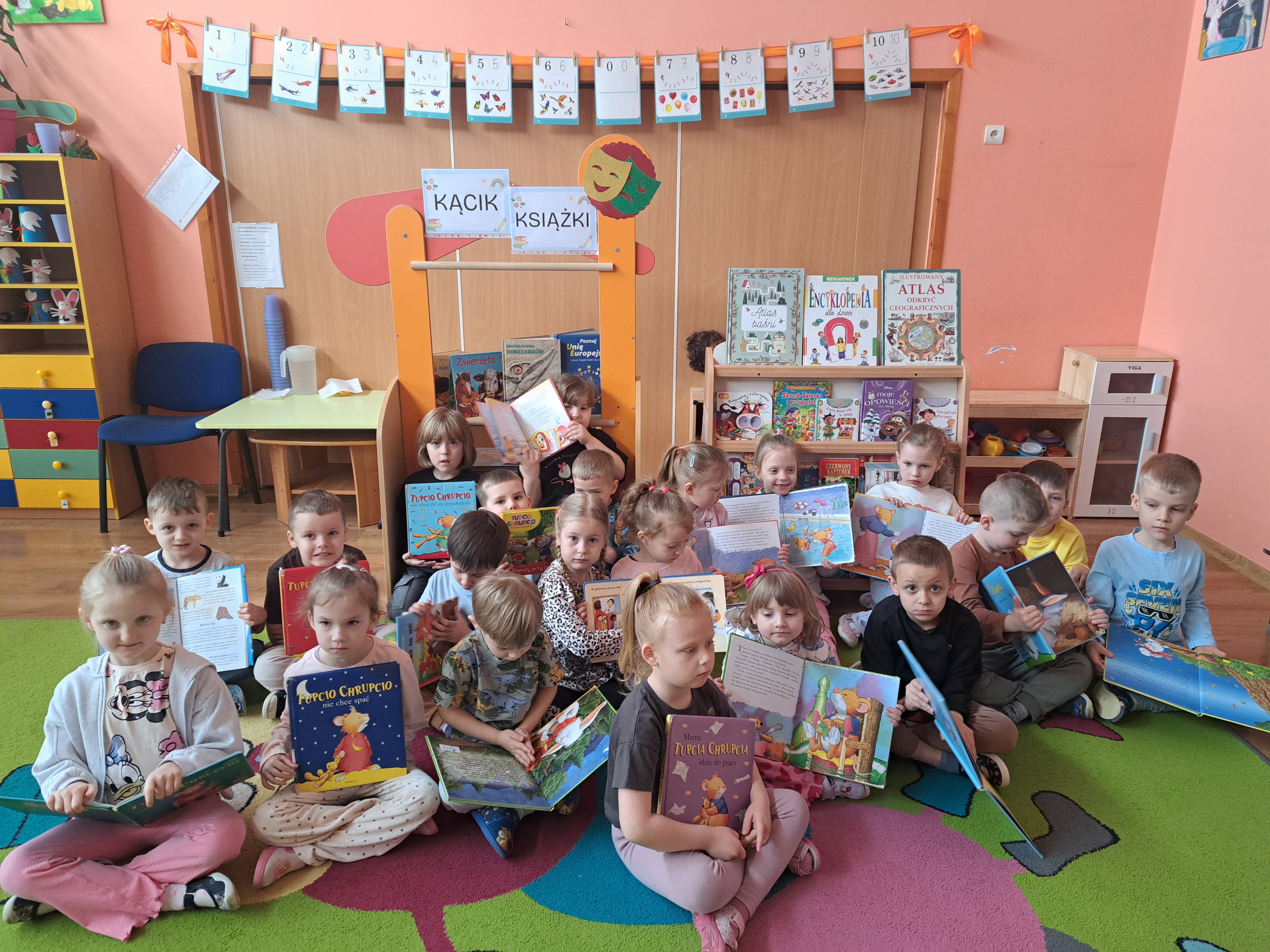 14 kwietnia (wtorek) w naszej sali powstaÅ‚ KÄ…cik Książki. Specjalne miejsce dla książek jest dla dzieci sygnaÅ‚em iż czytanie jest ważnÄ… dziedzinÄ… życia dziÄ™ki której poszerzamy swojÄ… wiedzÄ™ i kreujemy Å›wiatopoglÄ…d. KÄ…cik czytelniczy speÅ‚nia też istotnÄ… rolÄ™ w rozwijaniu umiejÄ™tnoÅ›ci czytania. Nasze przedszkolaki podejmujÄ… próby samodzielnego "przeczytania" tekstu w znanej książeczce, odszukujÄ… literki, rozpoznajÄ… wyrazy. Dzieci uczÄ… siÄ™ szacunku do książek, wiedzÄ…, że należy o nie dbać, aby sÅ‚użyÅ‚y wszystkim przez dÅ‚ugi czas oraz, że należy odkÅ‚adać je na odpowiednie miejsce. W tym dniu MISIE odwiedziÅ‚y również naszÄ… przedszkolnÄ… bibliotekÄ™ gdzie poznaÅ‚y i utrwaliÅ‚y zasady korzystania z niej,dowiedziaÅ‚y siÄ™ czym siÄ™ różni biblioteka od ksiÄ™garni oraz jak można odnaleźć interesujÄ…cÄ… książkÄ™ wÅ›ród wielu póÅ‚ek peÅ‚nych bajek, opowiadaÅ„ i encyklopedii.