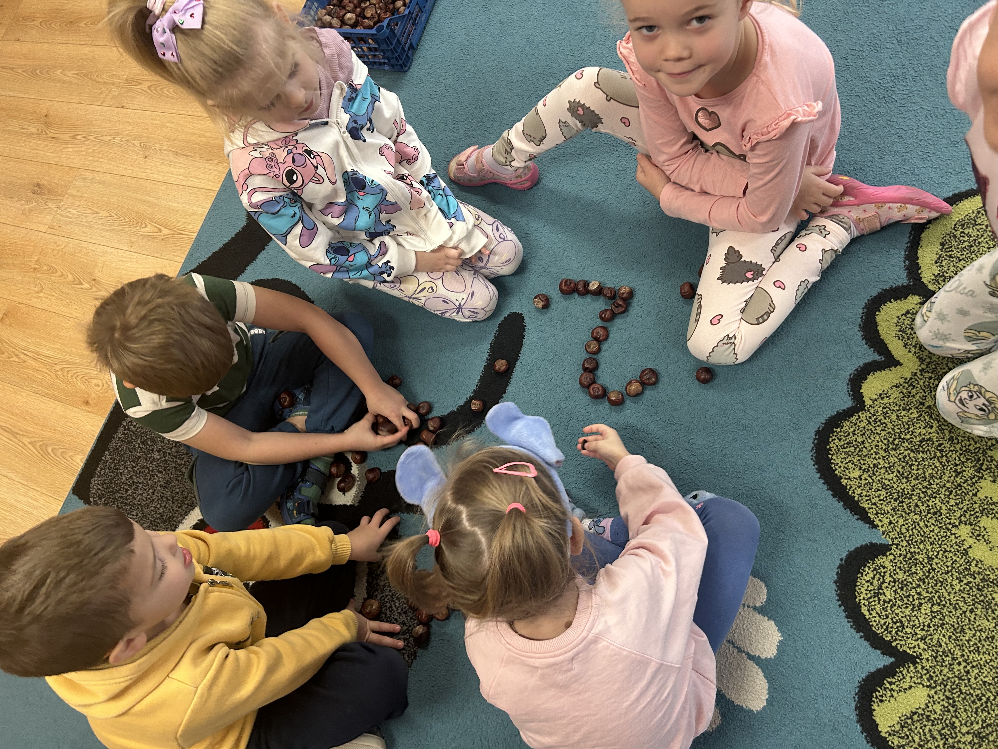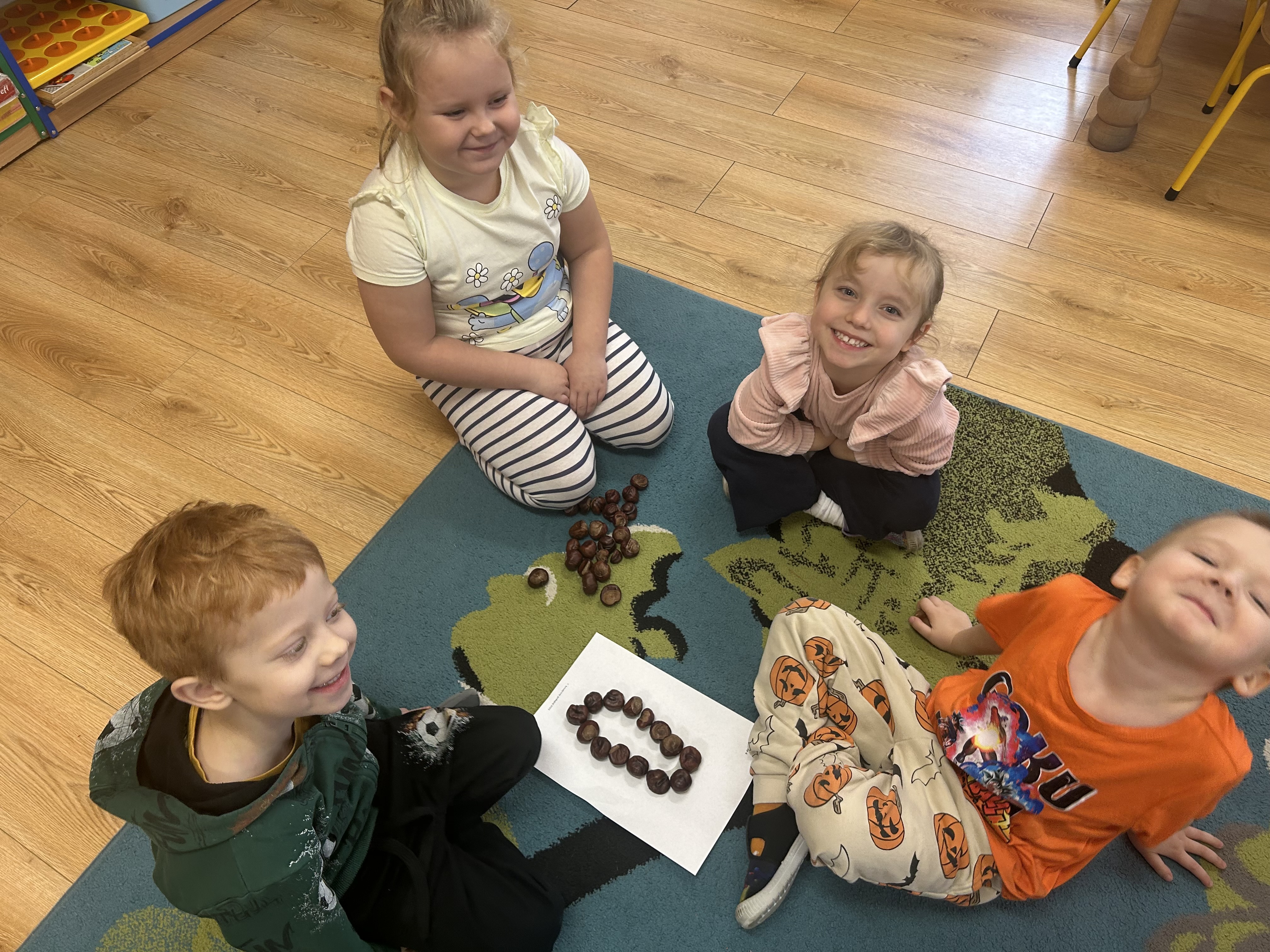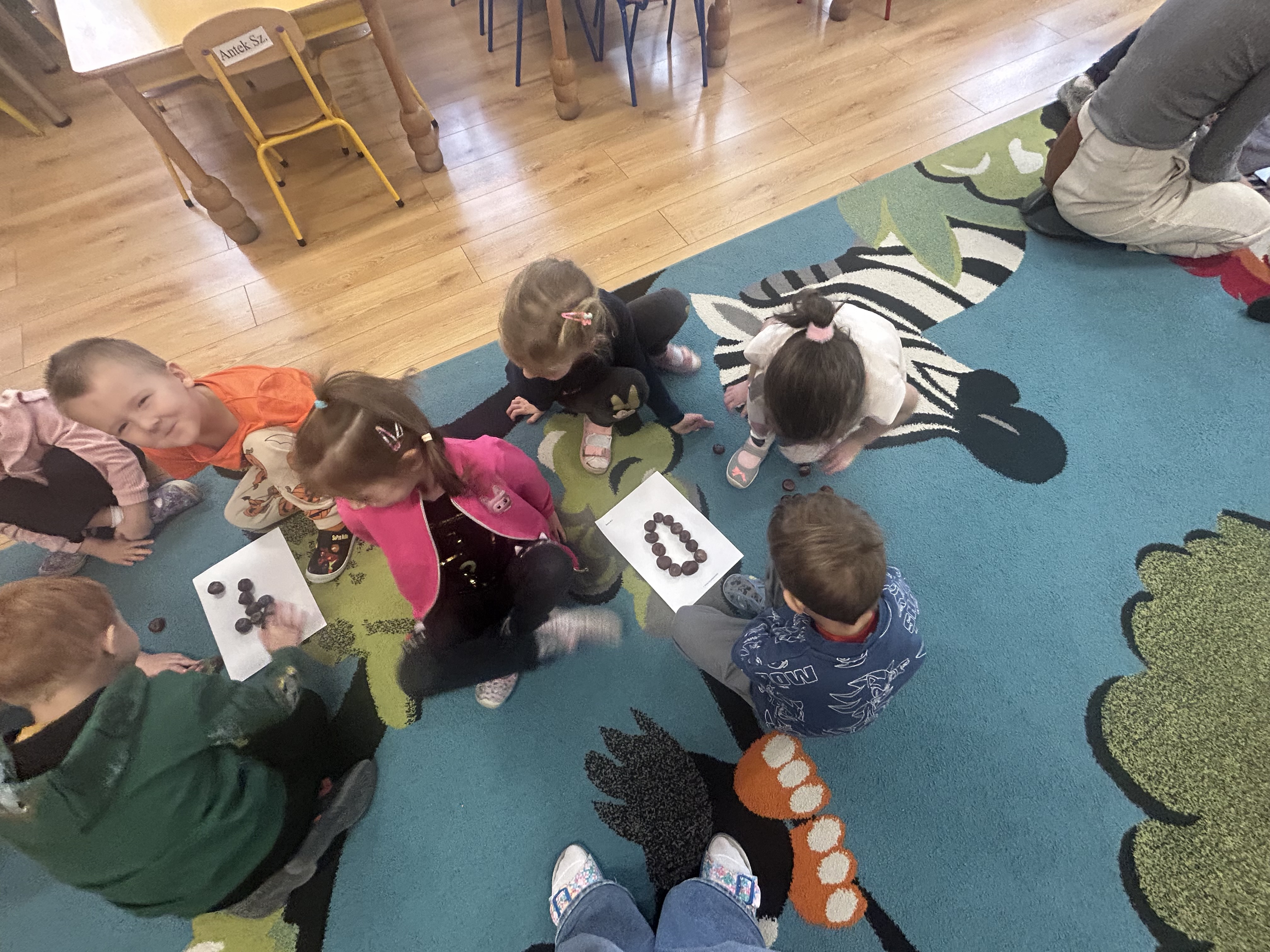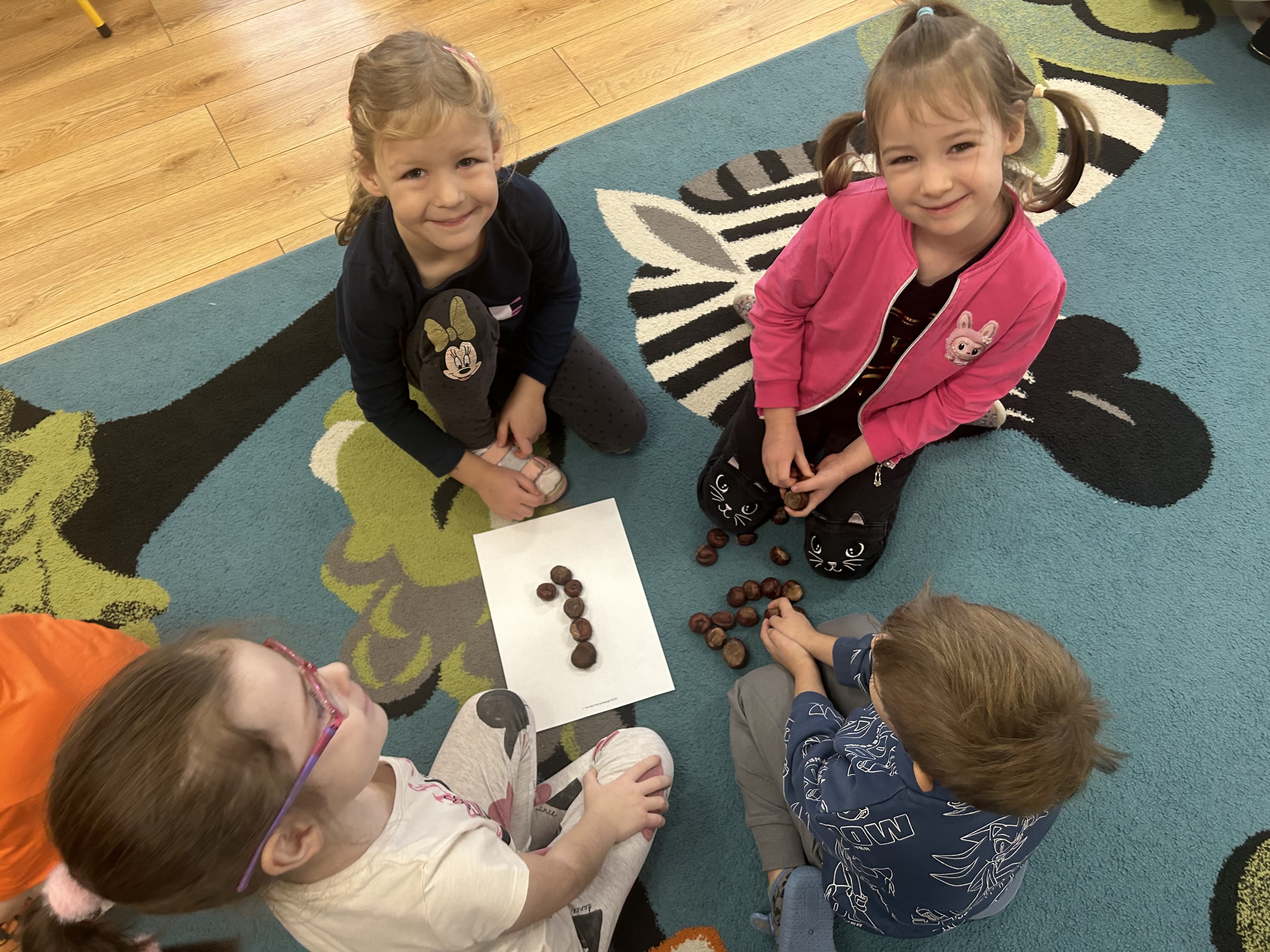 We wtorek ( 18 listopada) w ramach projektu edukacyjnego Matematyka W Darach Natury Ukryta Smerfy układały cyfry od 0 do 9 za pomocą szablonów. Poznane już cyfry układały samodzielnie.