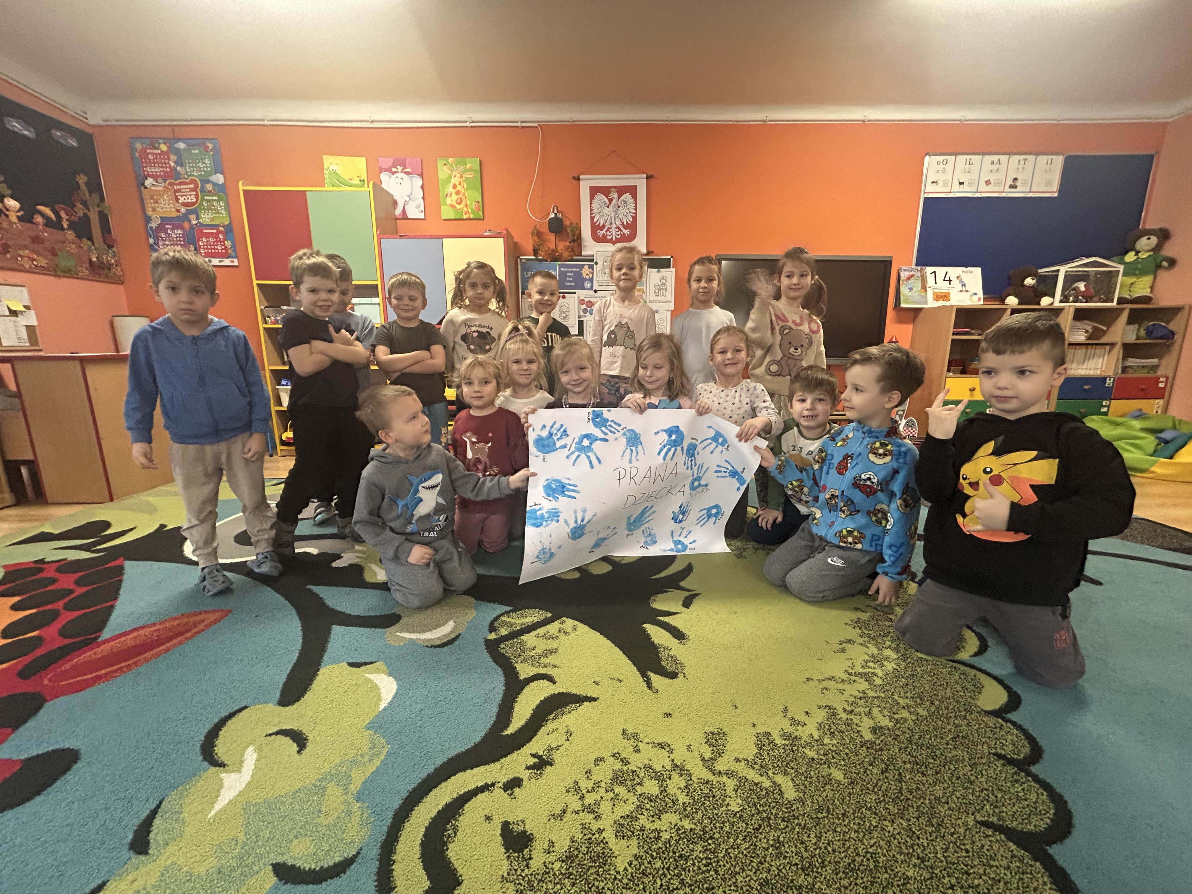 Jak co roku, 20 listopada obchodzona jest rocznica uchwalenia Konwencji o prawach dziecka, a w tym roku mija już 36 lat od tego wyjątkowego momentu. Smerfy Dzień Praw Dziecka obchodziły w piątek 21 listopada. To wyjątkowe święto, przypomina wszystkim, że każde dziecko, niezależnie od miejsca zamieszkania, koloru skóry czy wyznania, ma takie same prawa. Tego dnia Smerfy poznały najważniejsze prawa zapisane w Konwencji o Prawach Dziecka, takie jak prawo do miłości, nauki, zabawy, opieki, bezpieczeństwa czy wyrażania własnego zdania. Rozmawialiśmy również o tym, że dzieci mają swoje obowiązki, ale są one dostosowane do ich wieku i możliwości. Smerfy zapoznały się z pojęciem rzecznika praw dziecka. Dowiedziały się również, że rzecznikiem Praw Dziecka jest pani Monika Horna- Cieślak. Zapoznaliśmy się również z Funduszem Narodów Zjednoczonych na rzecz Dzieci, czyli UNICEF. na koniec każde dziecko odbiło swoją rączkę pomalowaną na niebiesko jako kolor właśnie UNICEF-u, aby pamiętać, o swoich prawach!