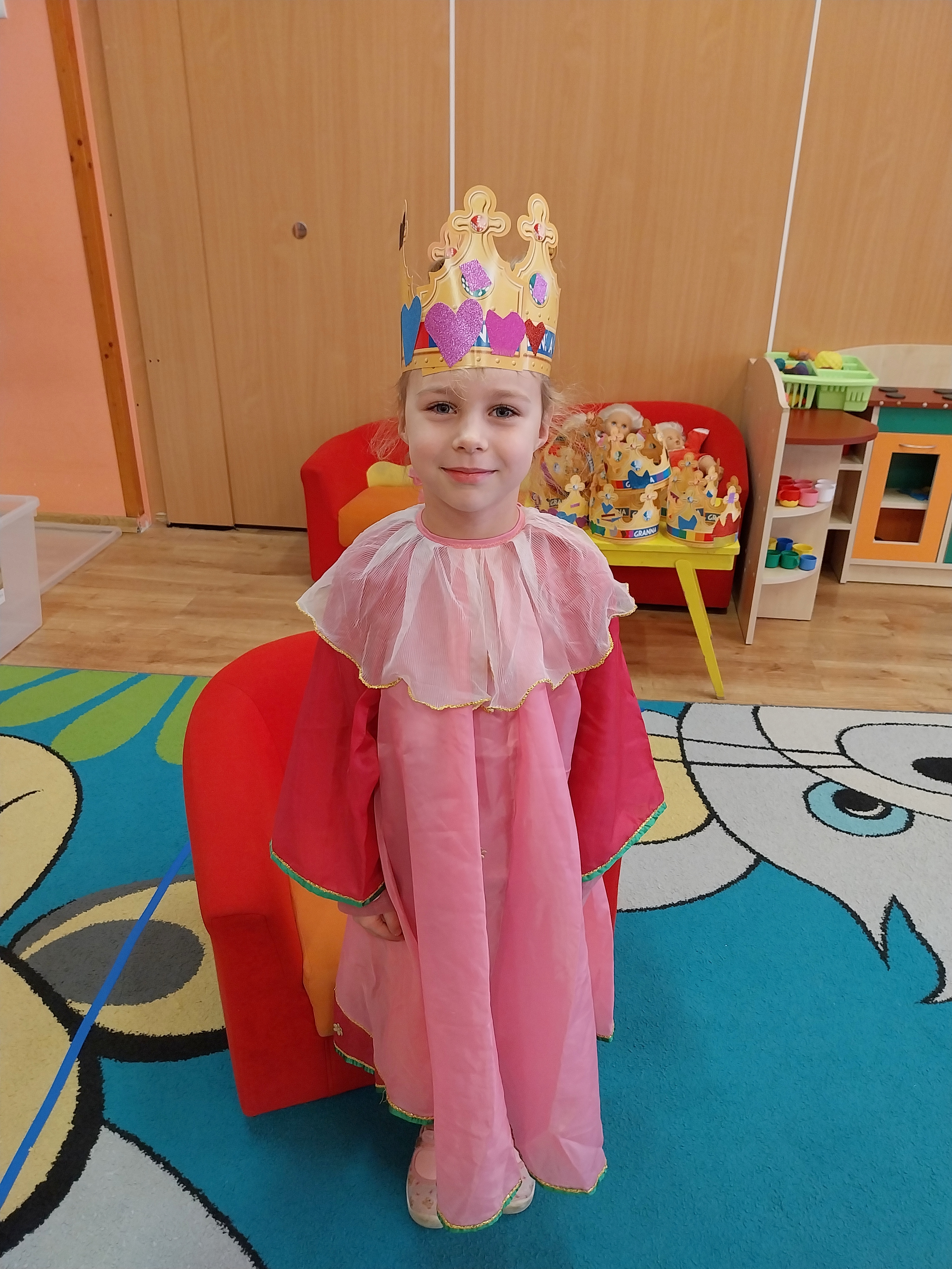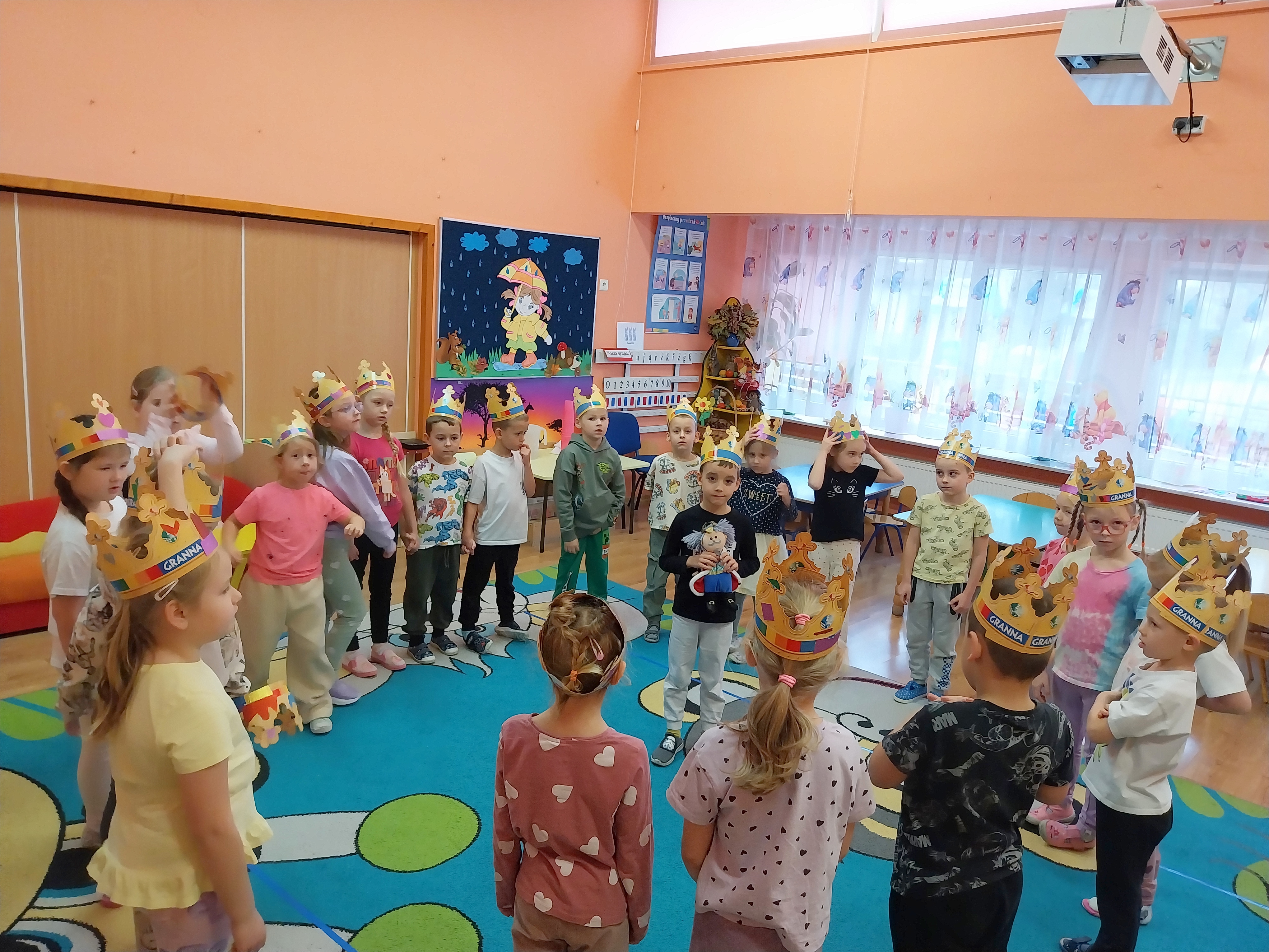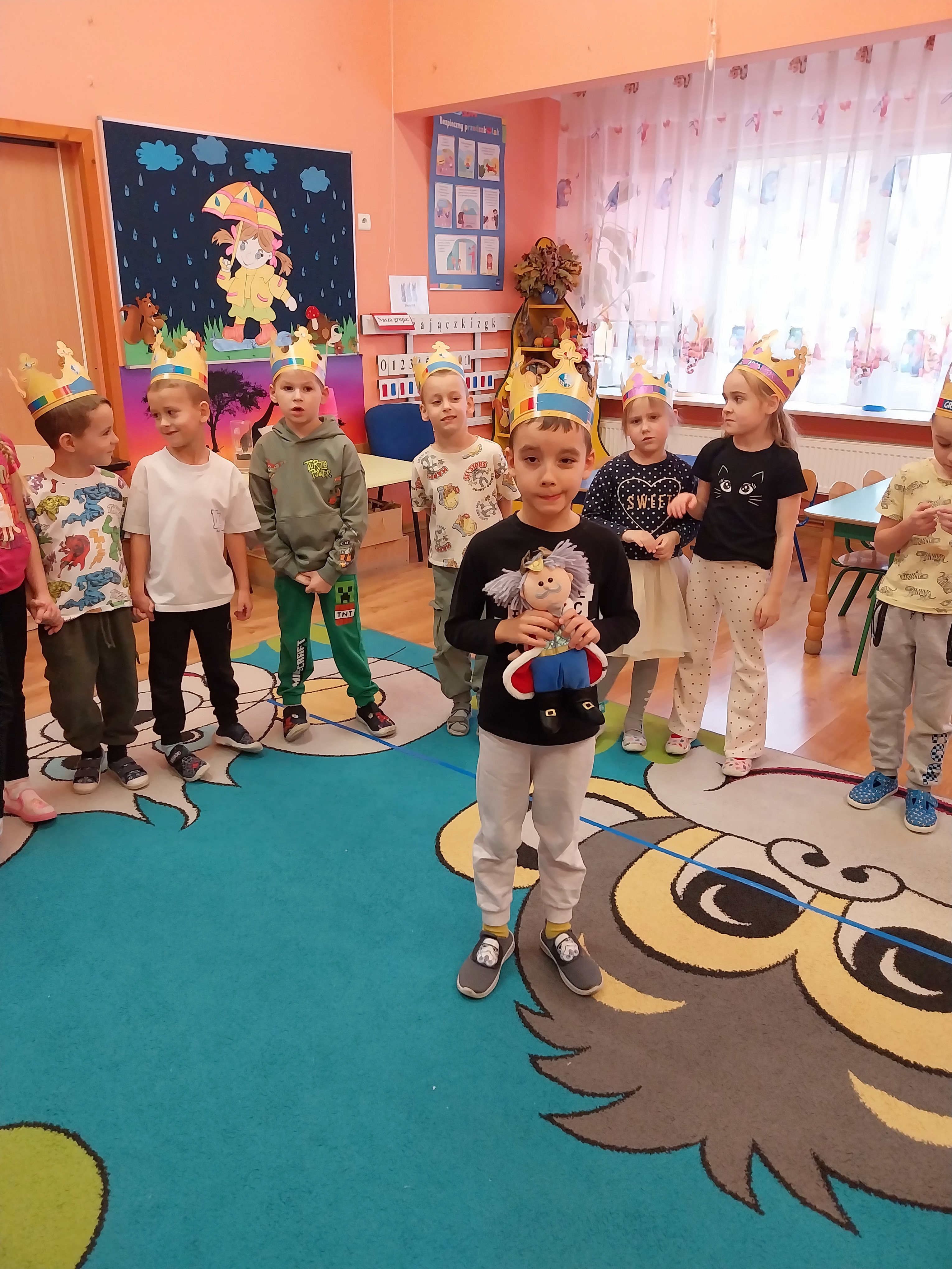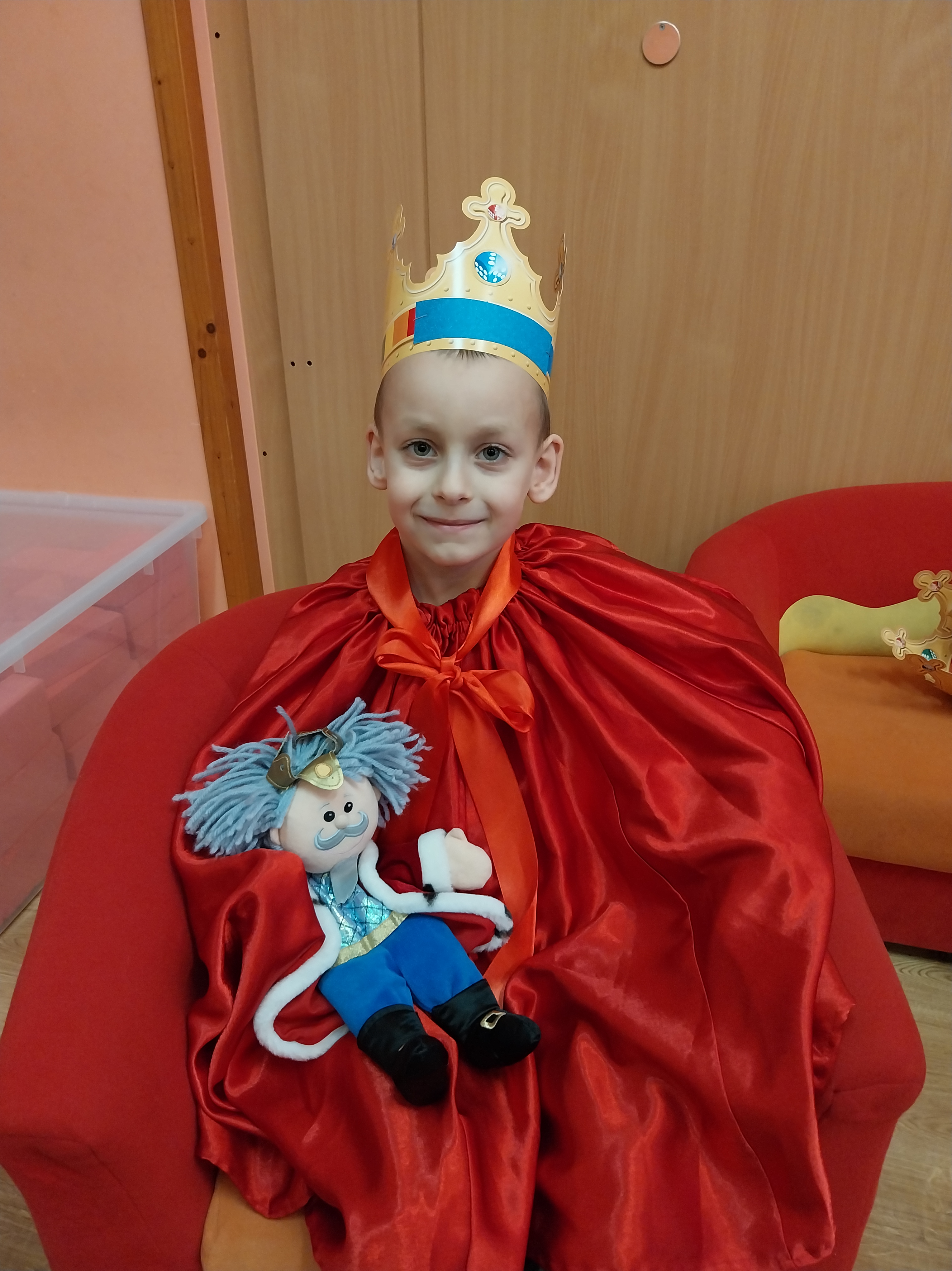 Dnia 20 listopada w Międzynarodowy Dzień Praw Dziecka w grupie Zajączki wiele się działo. Dzieci poznały swoje prawa i obowiązki, obejrzały film edukacyjny "Karolek oraz prawa i obowiązki dziecka". Następnie zainspirowane literaturą Janusza Korczaka "Król Maciuś Pierwszy" ozdabiały korony, aby za chwilę wcielić się i odegrać rolę króla lub królowej i zaproponować zmiany w naszym Zajączkowym Królestwie. Historia Maciusia, który zostaje królem przekonała dzieci, że bycie dorosłym nie zawsze jest łatwe, a podejmowanie decyzji wiąże się z ponoszeniem odpowiedzialności. Zabawa w króla i królową wywołała wiele radości i ukazała, że możliwość beztroskiego dzieciństwa jest bardzo ważna. Każdy z nas, choć tak różny od siebie jest ważny i wyjątkowy.
