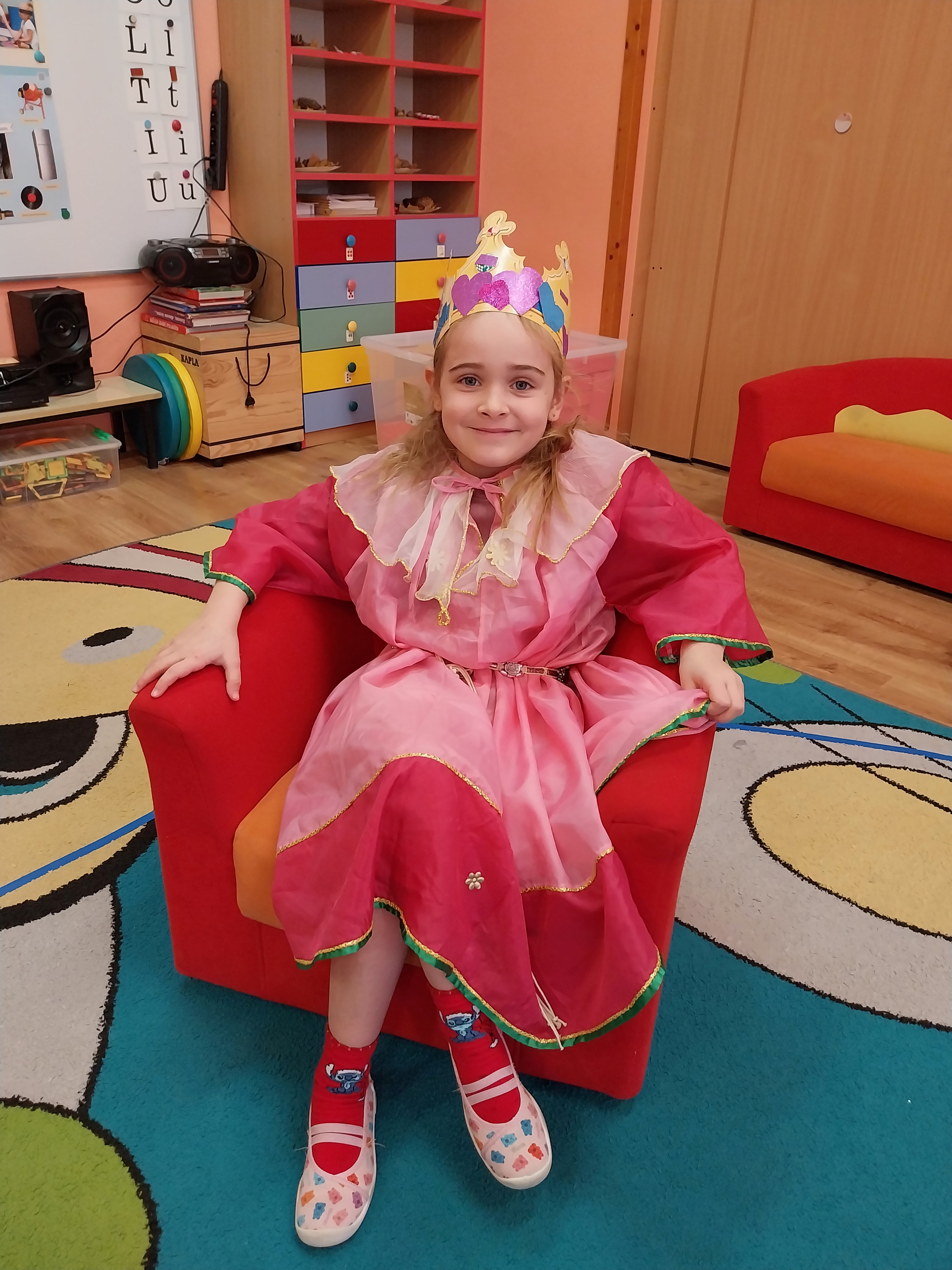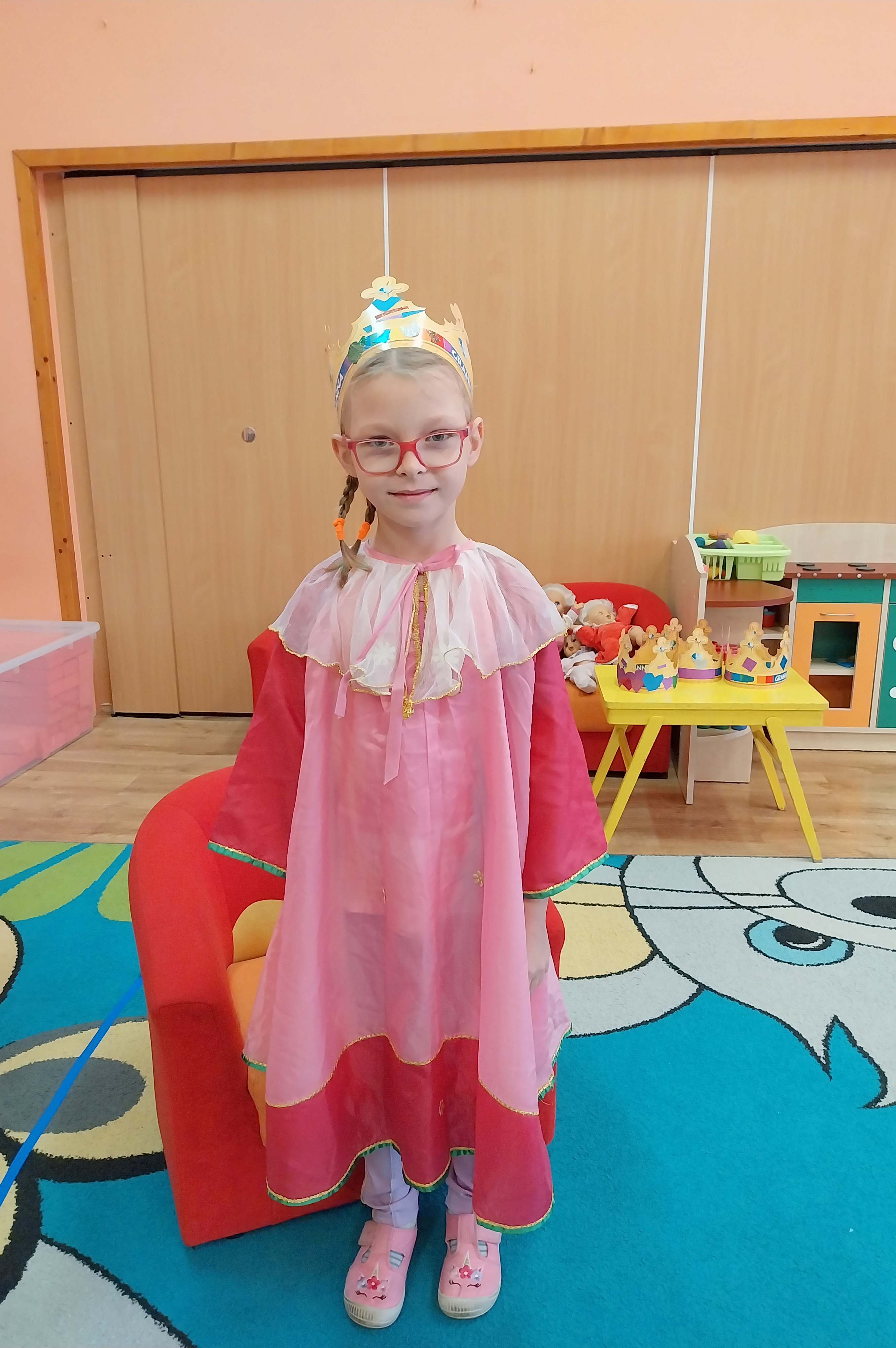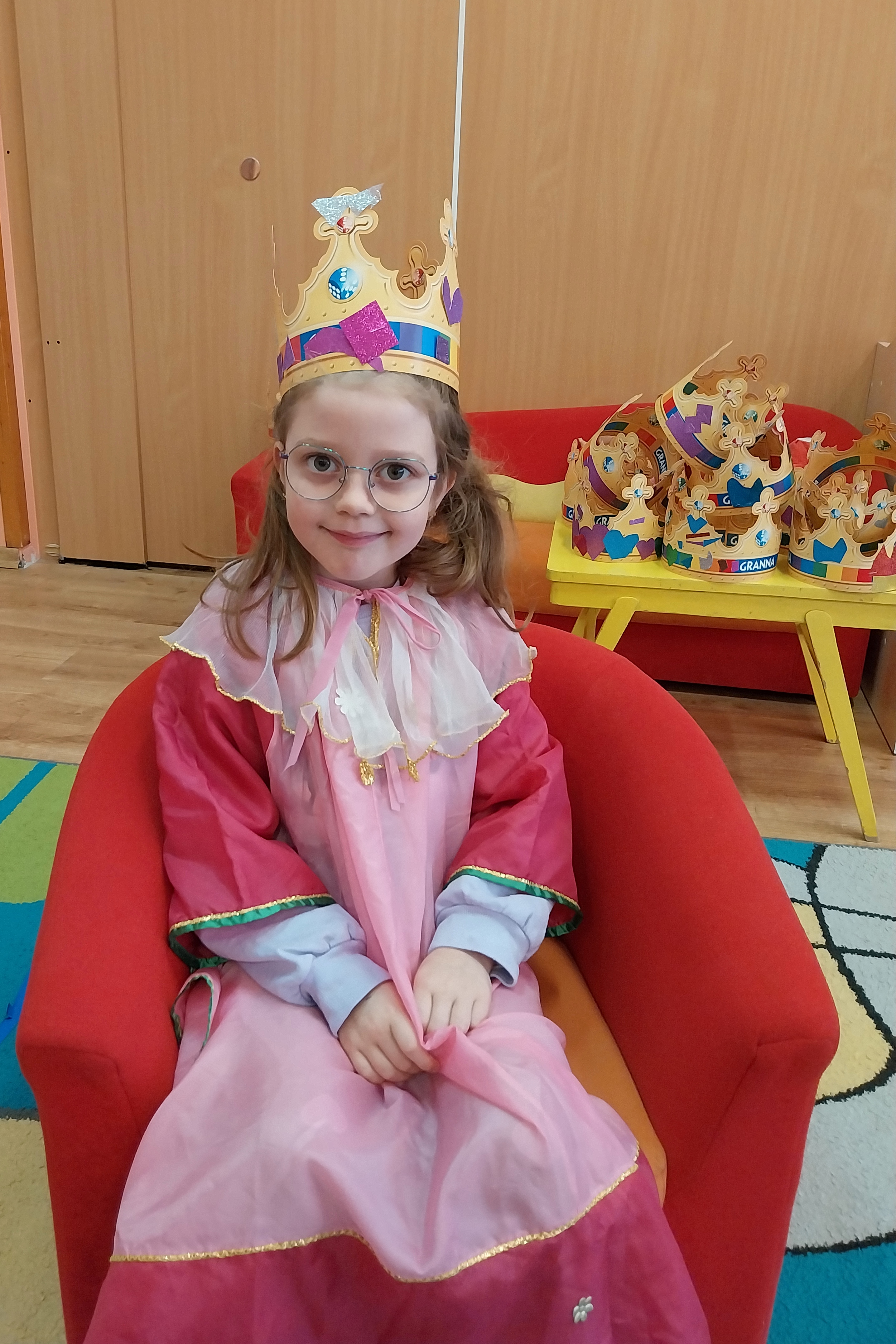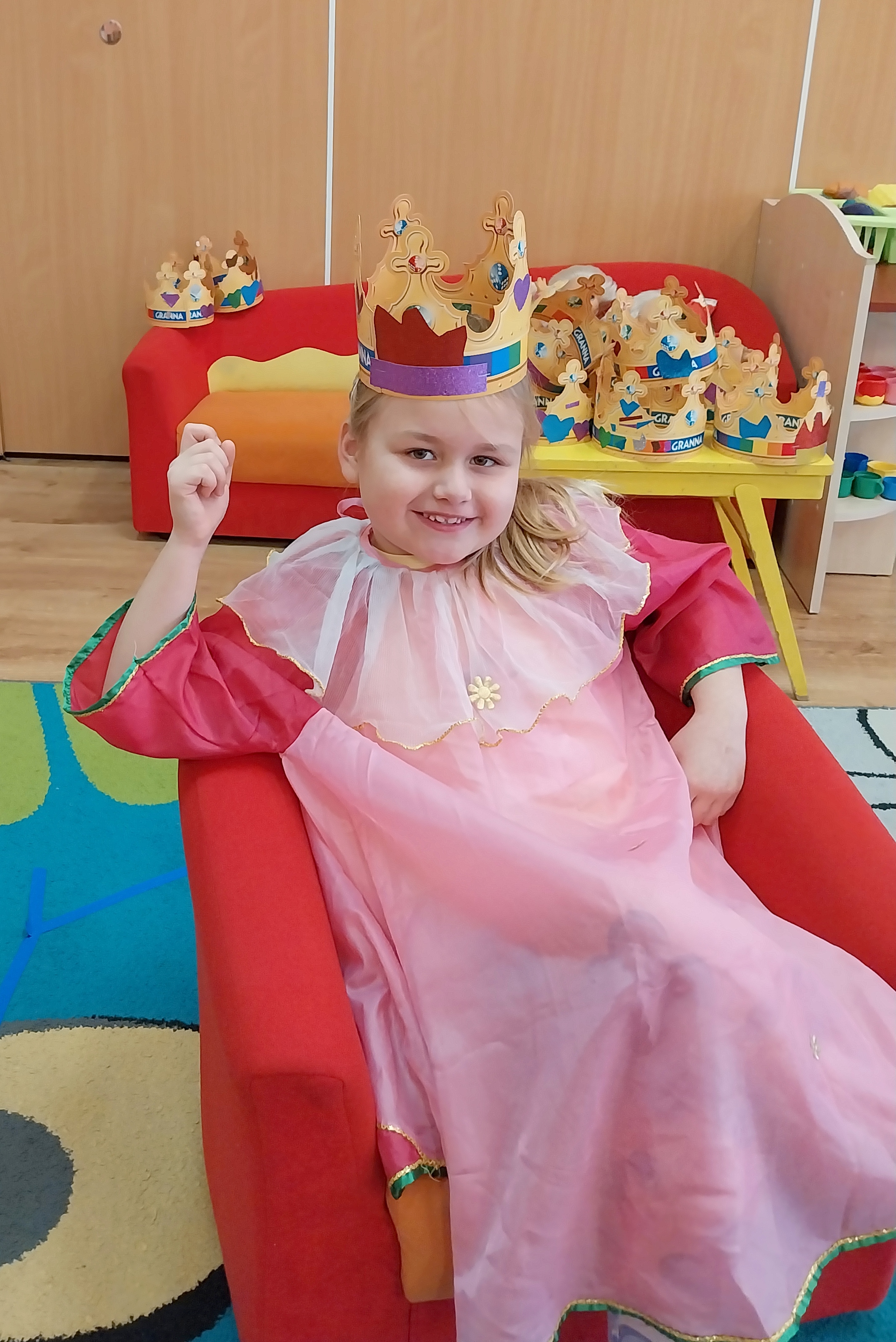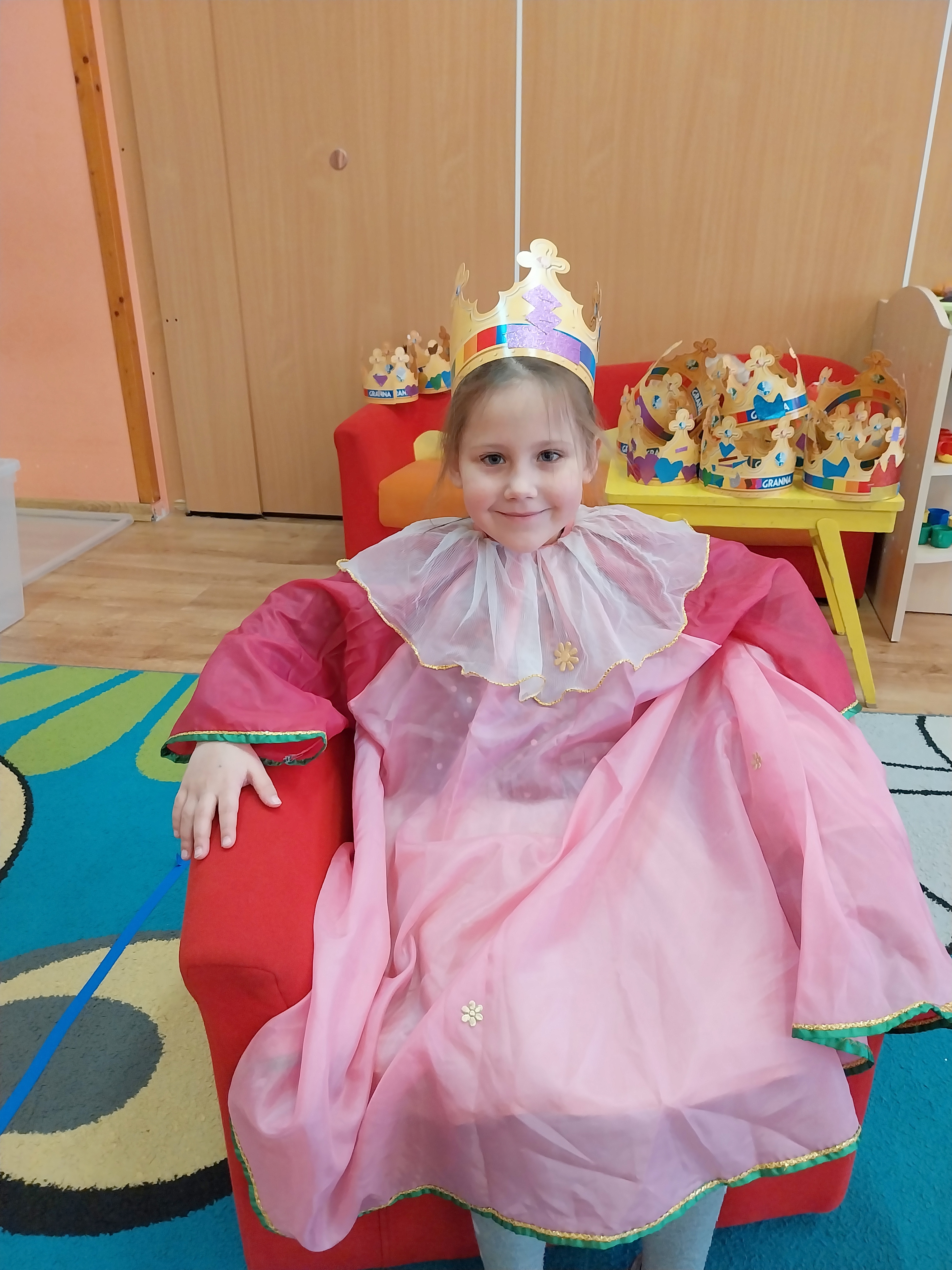 Dnia 20 listopada w Międzynarodowy Dzień Praw Dziecka w grupie Zajączki wiele się działo. Dzieci poznały swoje prawa i obowiązki, obejrzały film edukacyjny "Karolek oraz prawa i obowiązki dziecka". Następnie zainspirowane literaturą Janusza Korczaka "Król Maciuś Pierwszy" ozdabiały korony, aby za chwilę wcielić się i odegrać rolę króla lub królowej i zaproponować zmiany w naszym Zajączkowym Królestwie. Historia Maciusia, który zostaje królem przekonała dzieci, że bycie dorosłym nie zawsze jest łatwe, a podejmowanie decyzji wiąże się z ponoszeniem odpowiedzialności. Zabawa w króla i królową wywołała wiele radości i ukazała, że możliwość beztroskiego dzieciństwa jest bardzo ważna. Każdy z nas, choć tak różny od siebie jest ważny i wyjątkowy.