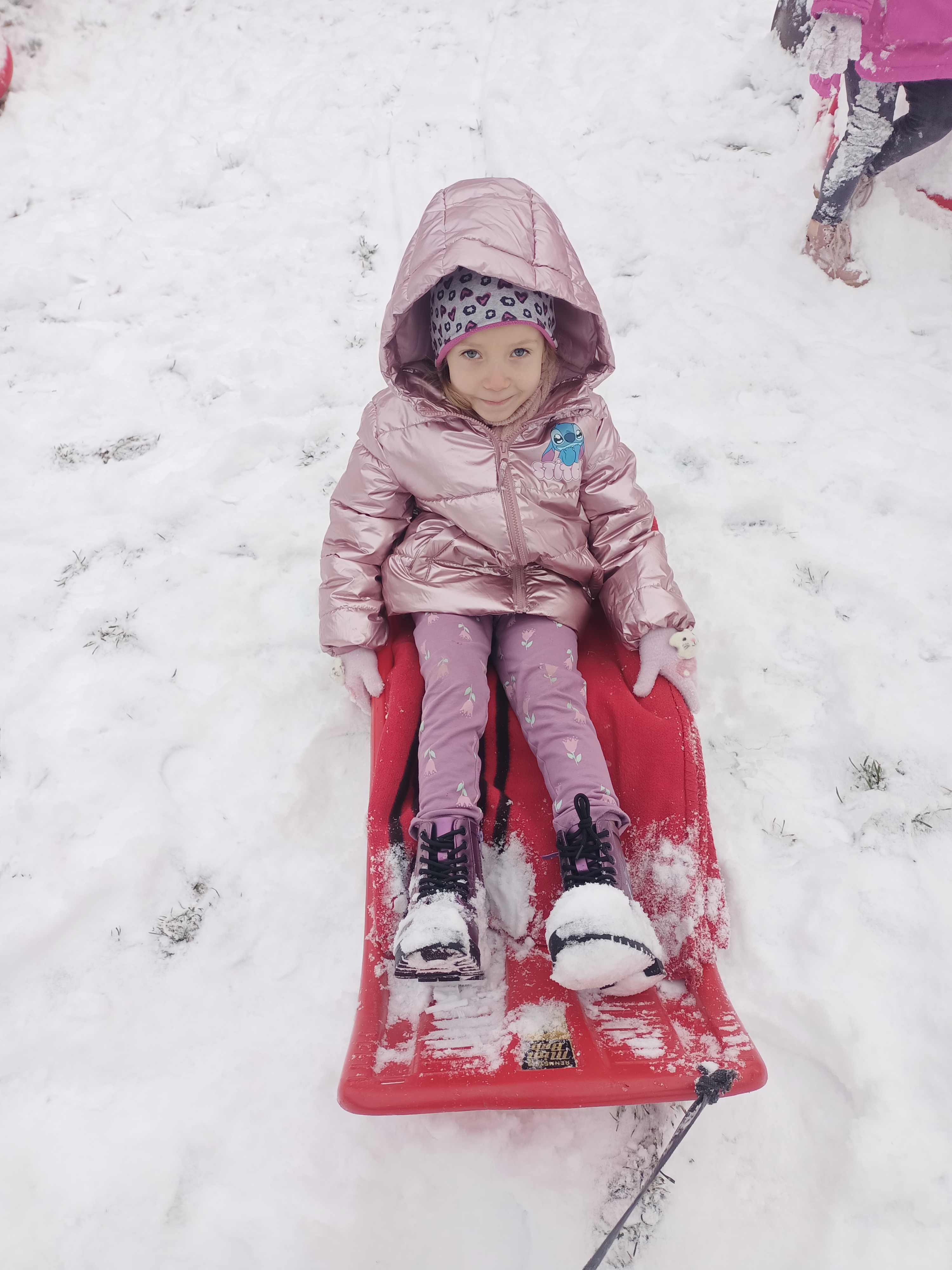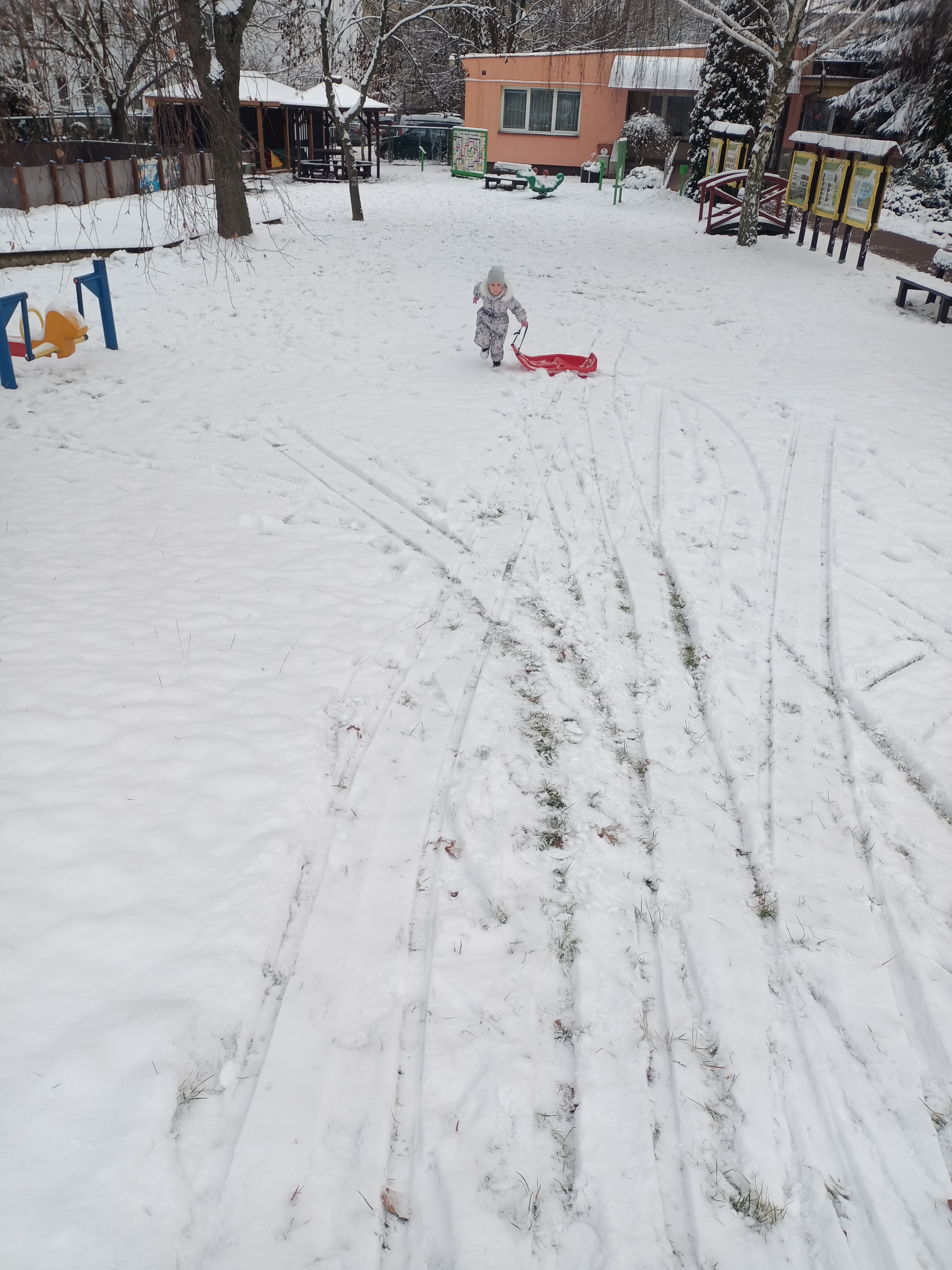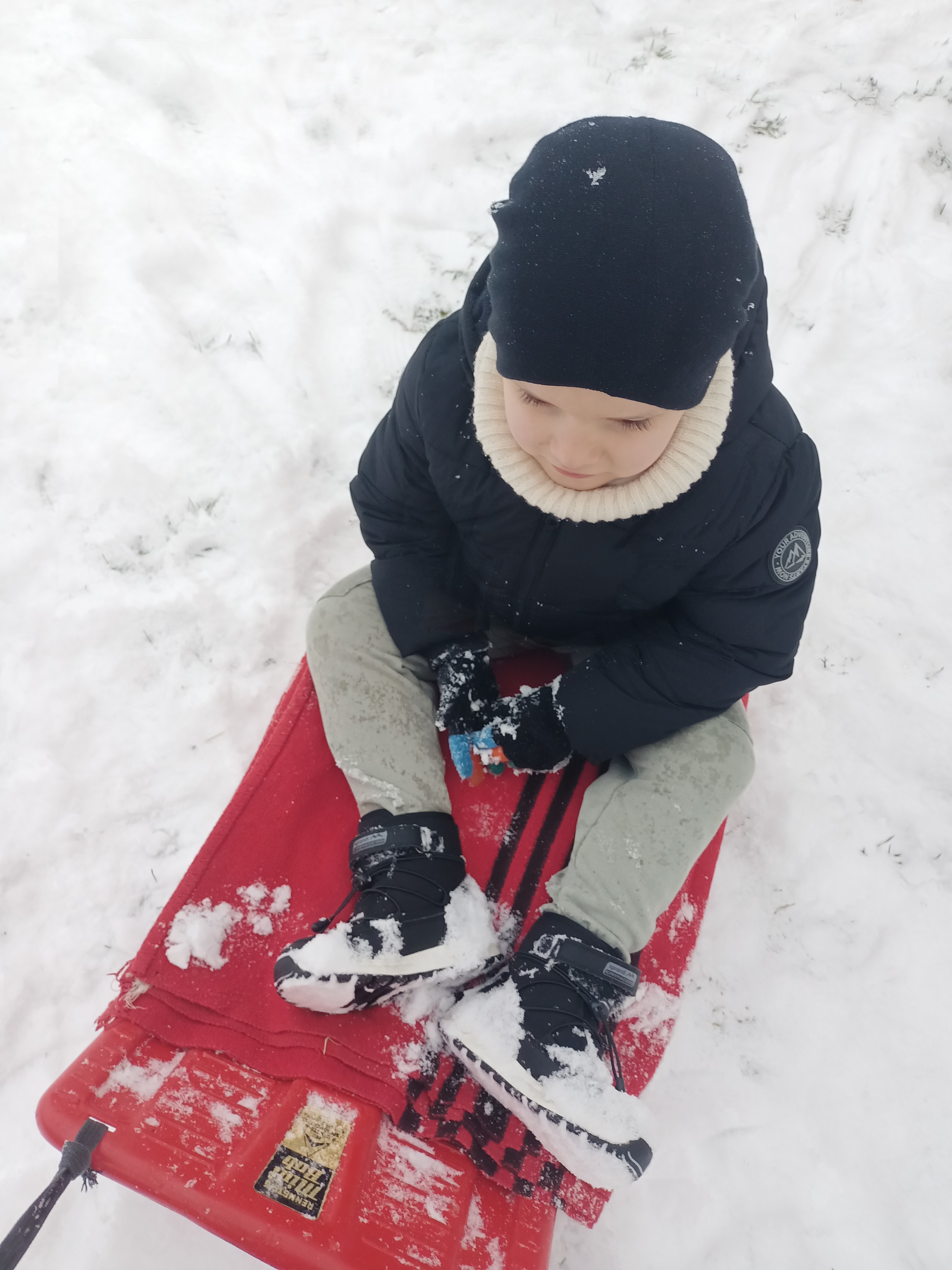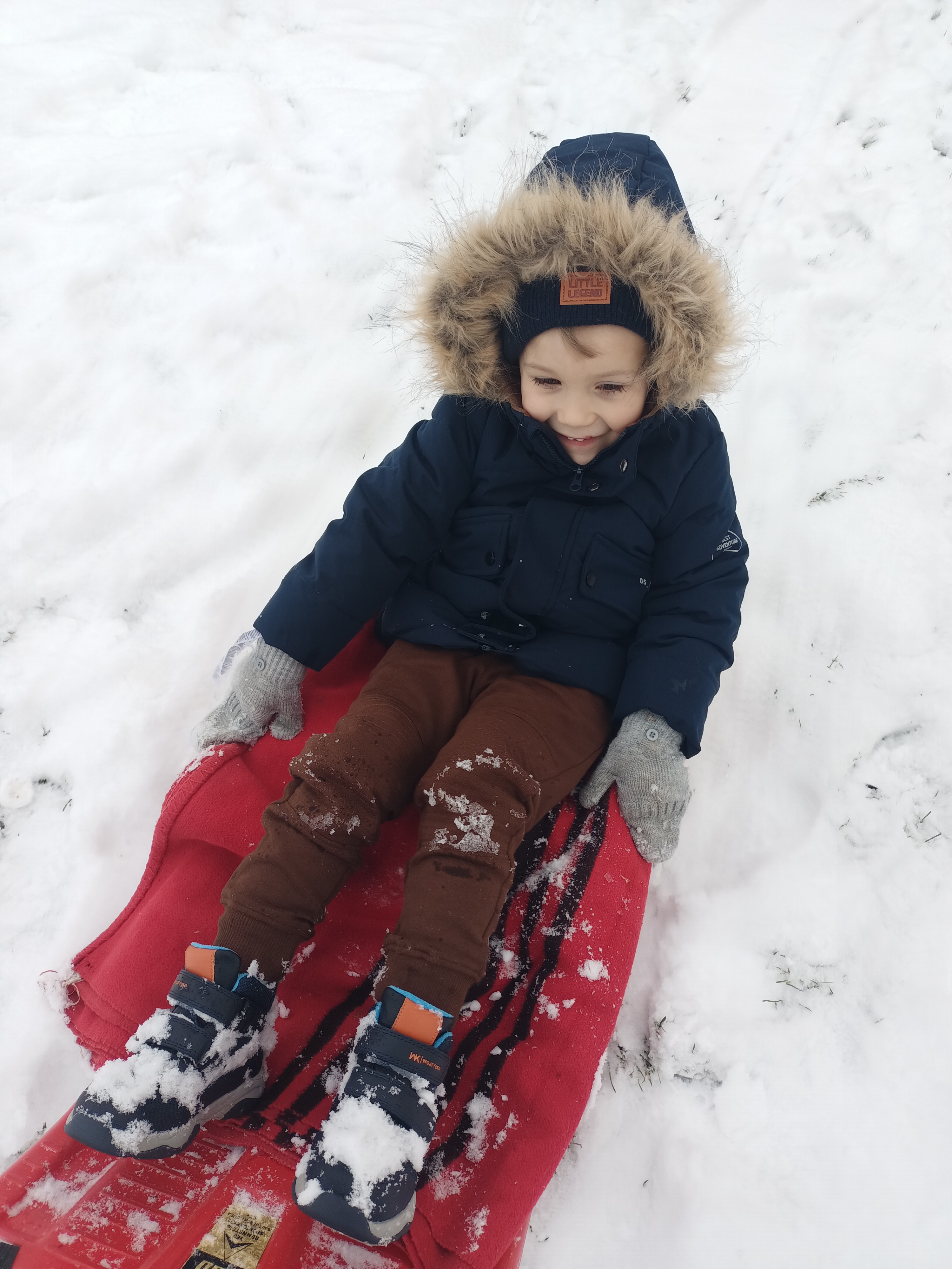 Spadł pierwszy śnieg, a dzieci od rana z wielką ekscytacją dopytywały, kiedy wyjdziemy na nasze przedszkolne podwórko. Wobec tak ogromnej radości nie można było pozostać obojętnym, dlatego wybraliśmy się na świeże powietrze. Dzieci z entuzjazmem wyciągnęły sanki i pełne energii ruszyły na górkę, ciesząc się pierwszym zimowym szaleństwem.