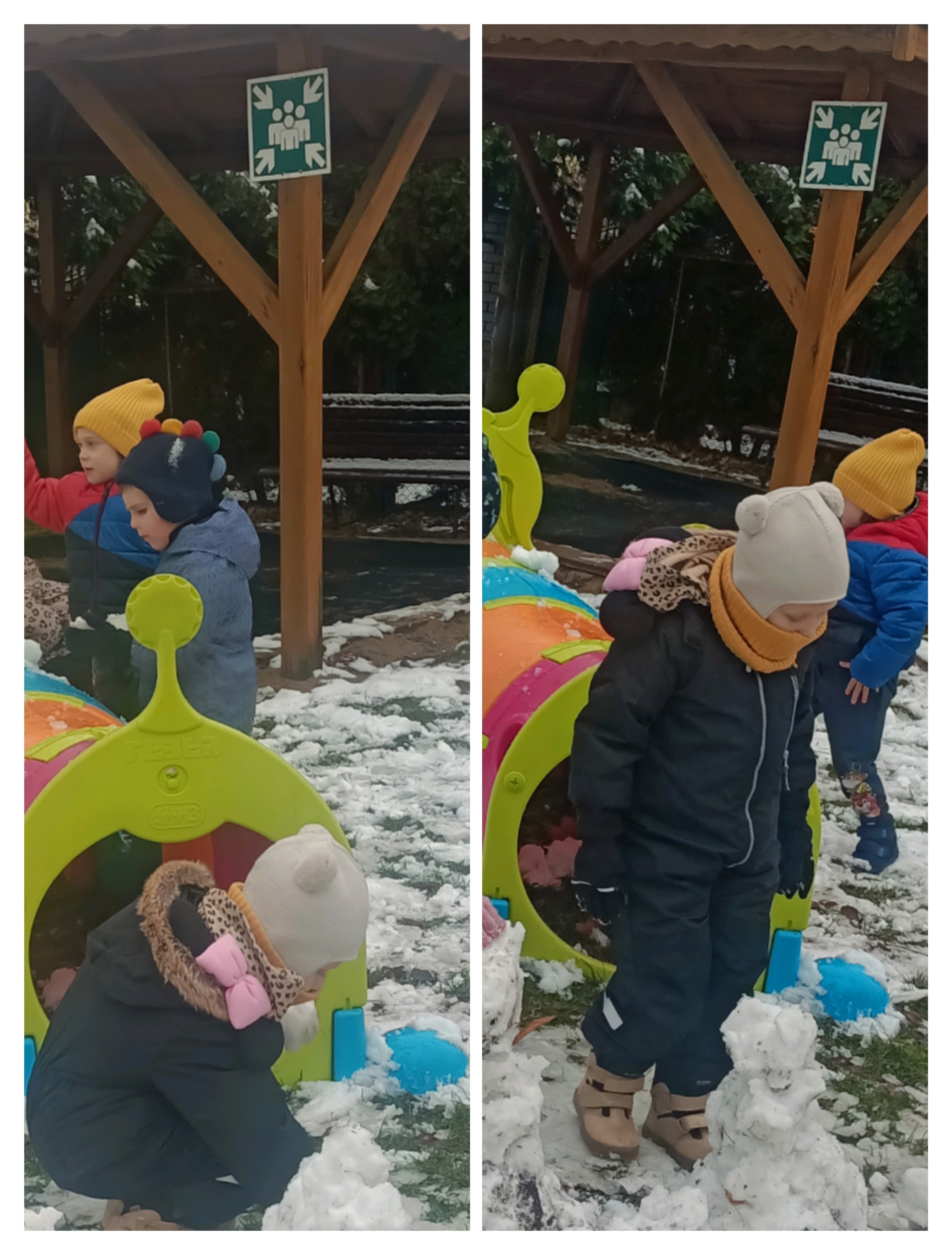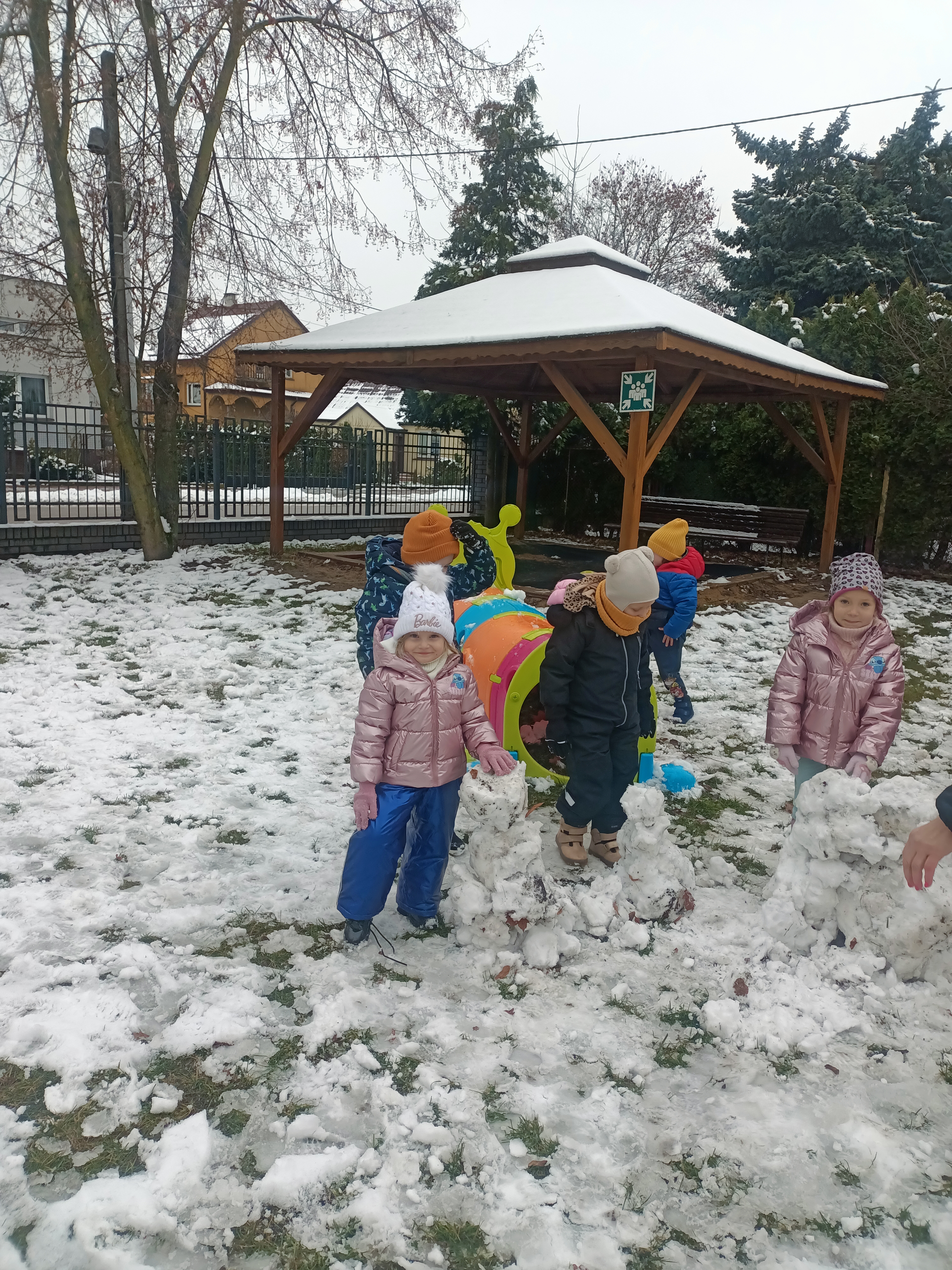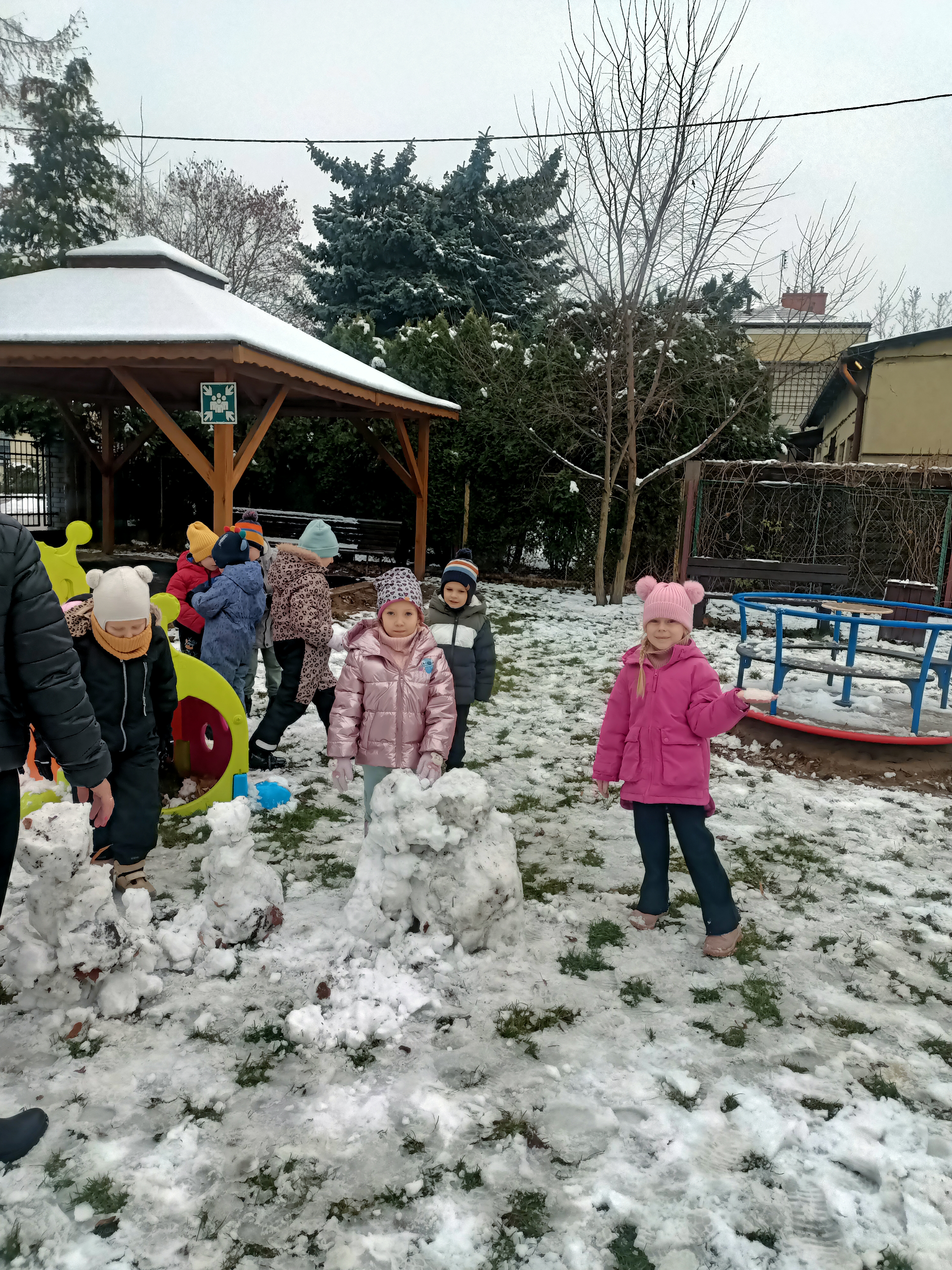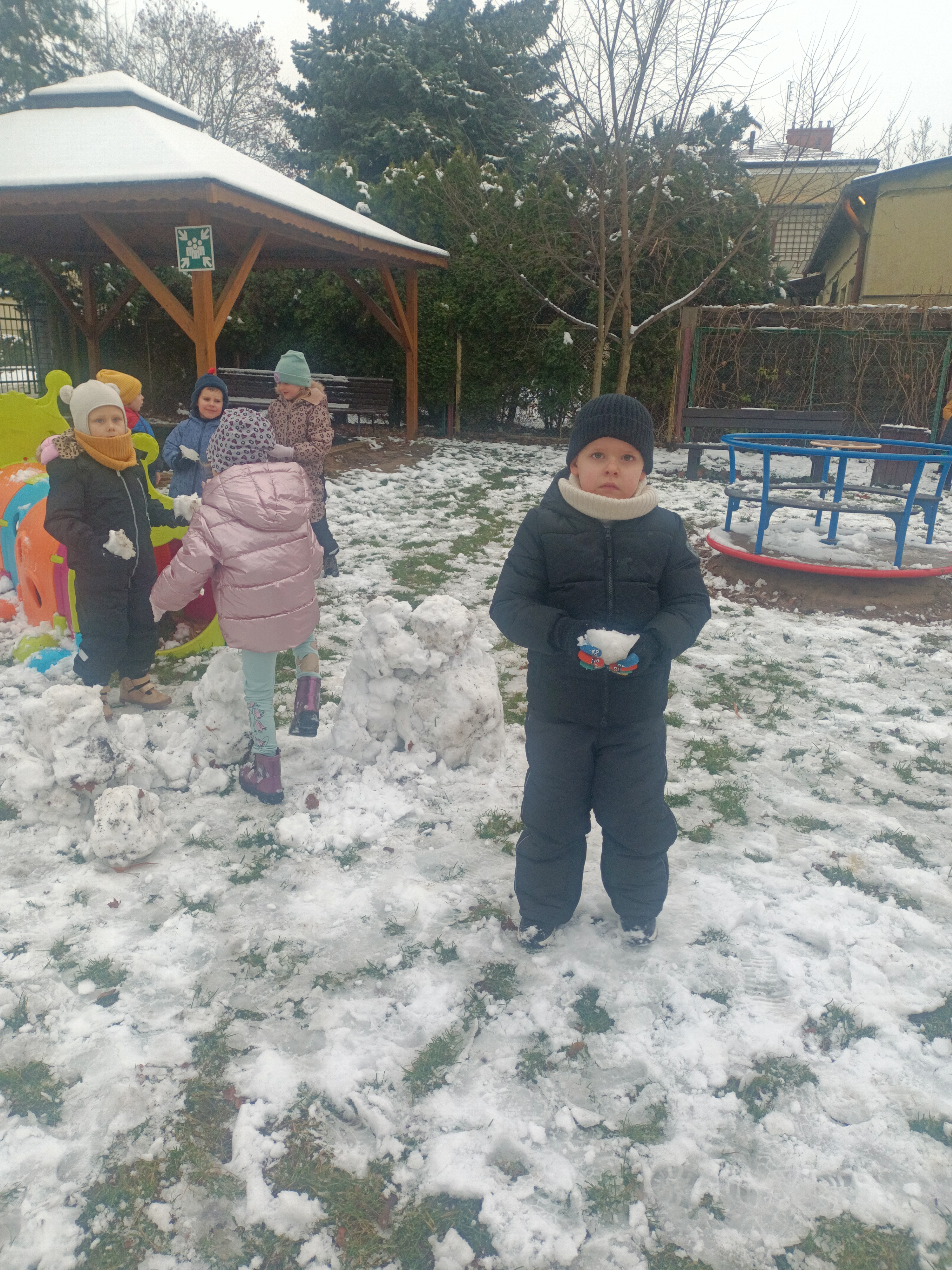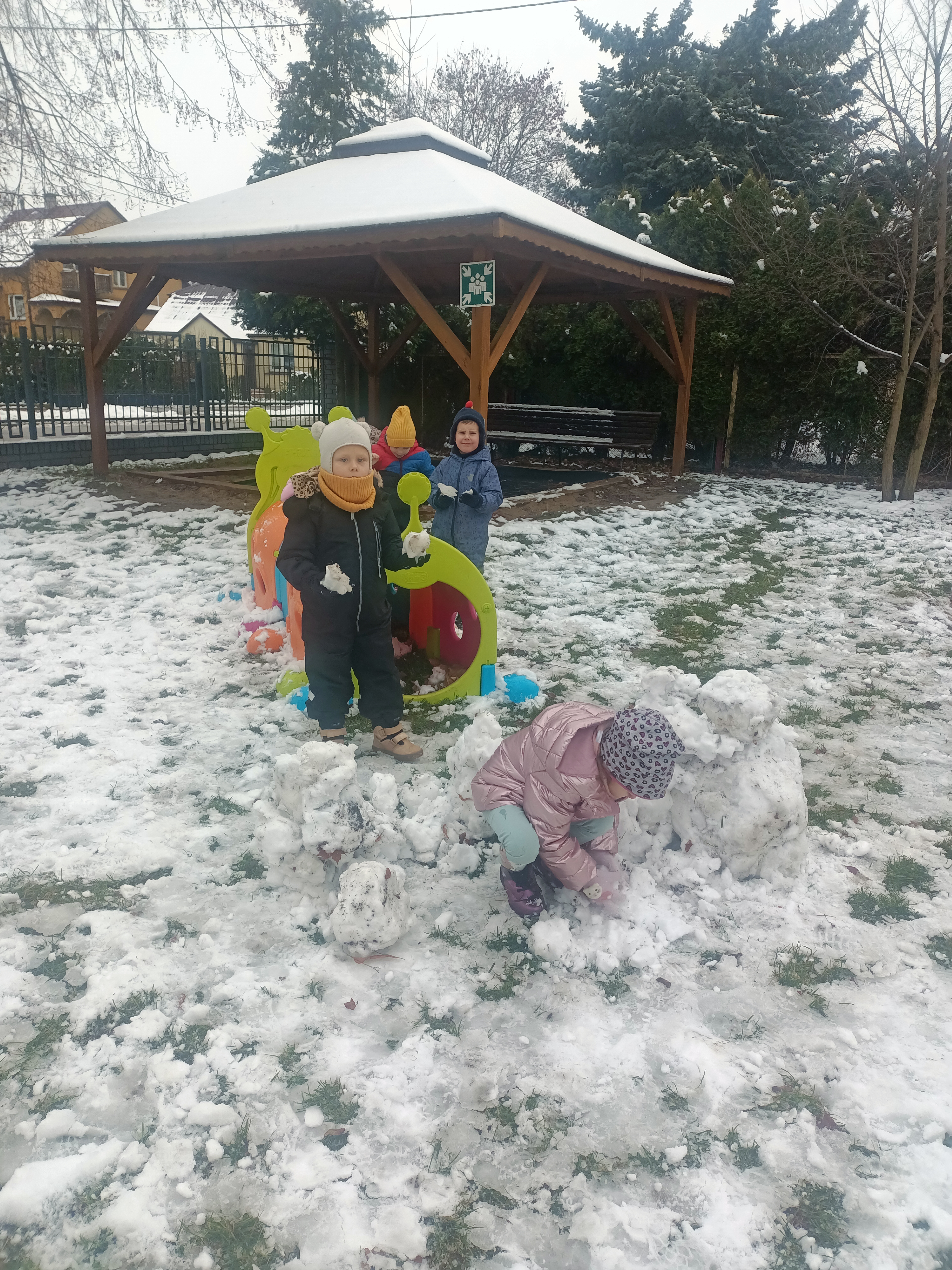 Pierwszy śnieg przyniósł dzieciom wiele radości i był doskonałą okazją do wspólnej aktywności na świeżym powietrzu.