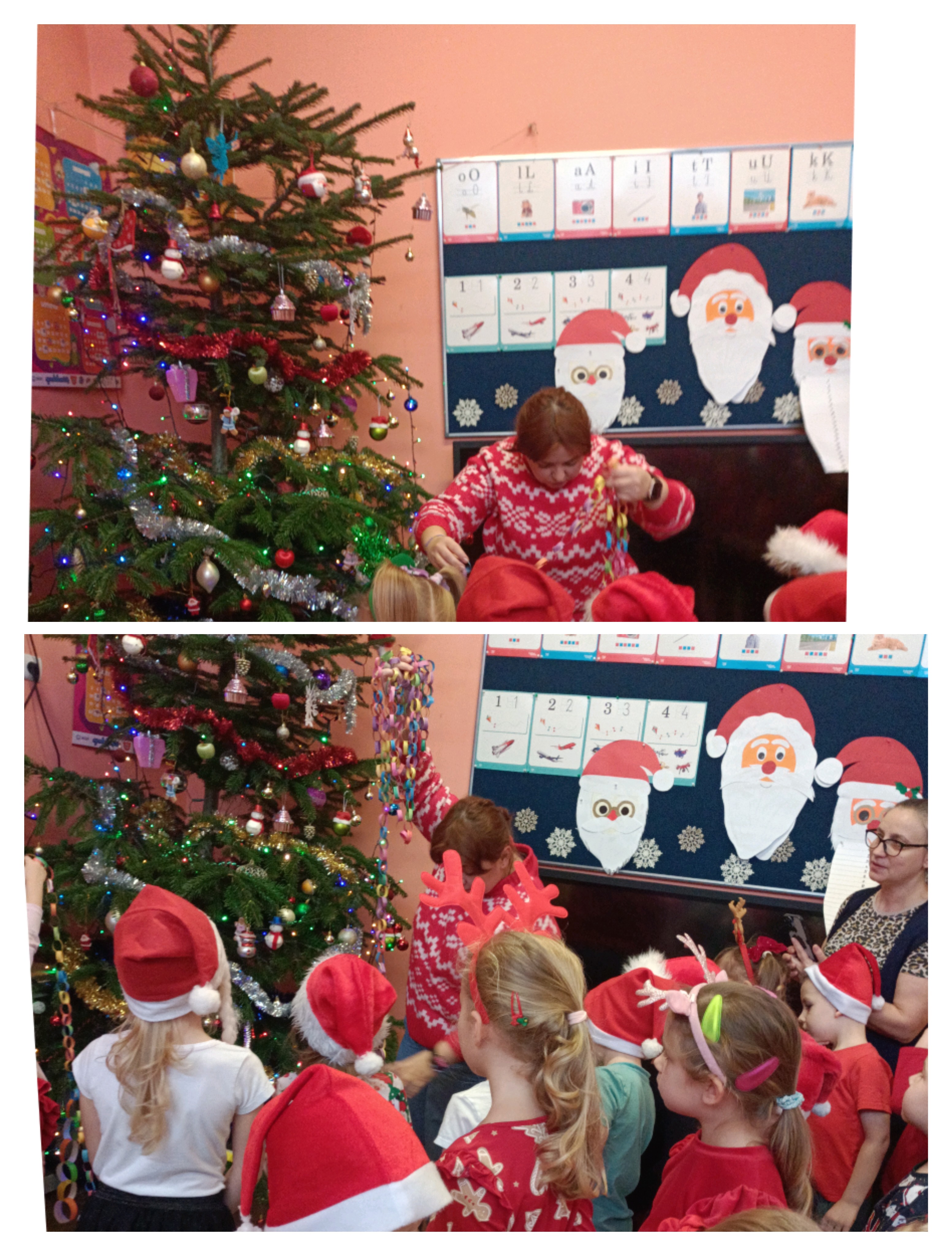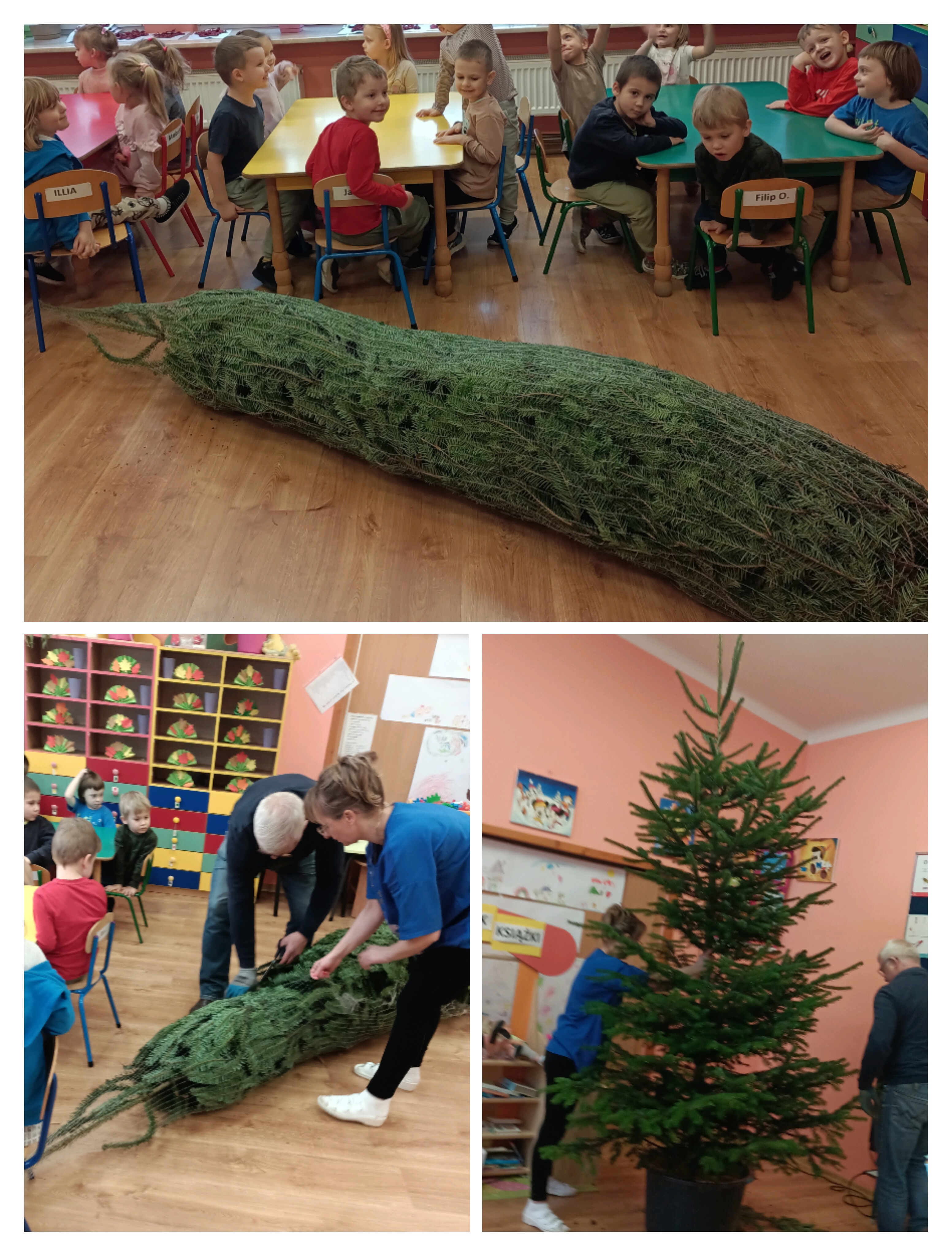 Choinkę, tak jak w ubiegłym roku, podarował nam Pan Maciej Kozieł. Serdecznie dziękujemy za tak piękny prezent. Choinka jest wyjątkowa – piękna i pachnąca, wprowadzająca do naszej sali prawdziwie świąteczny nastrój.