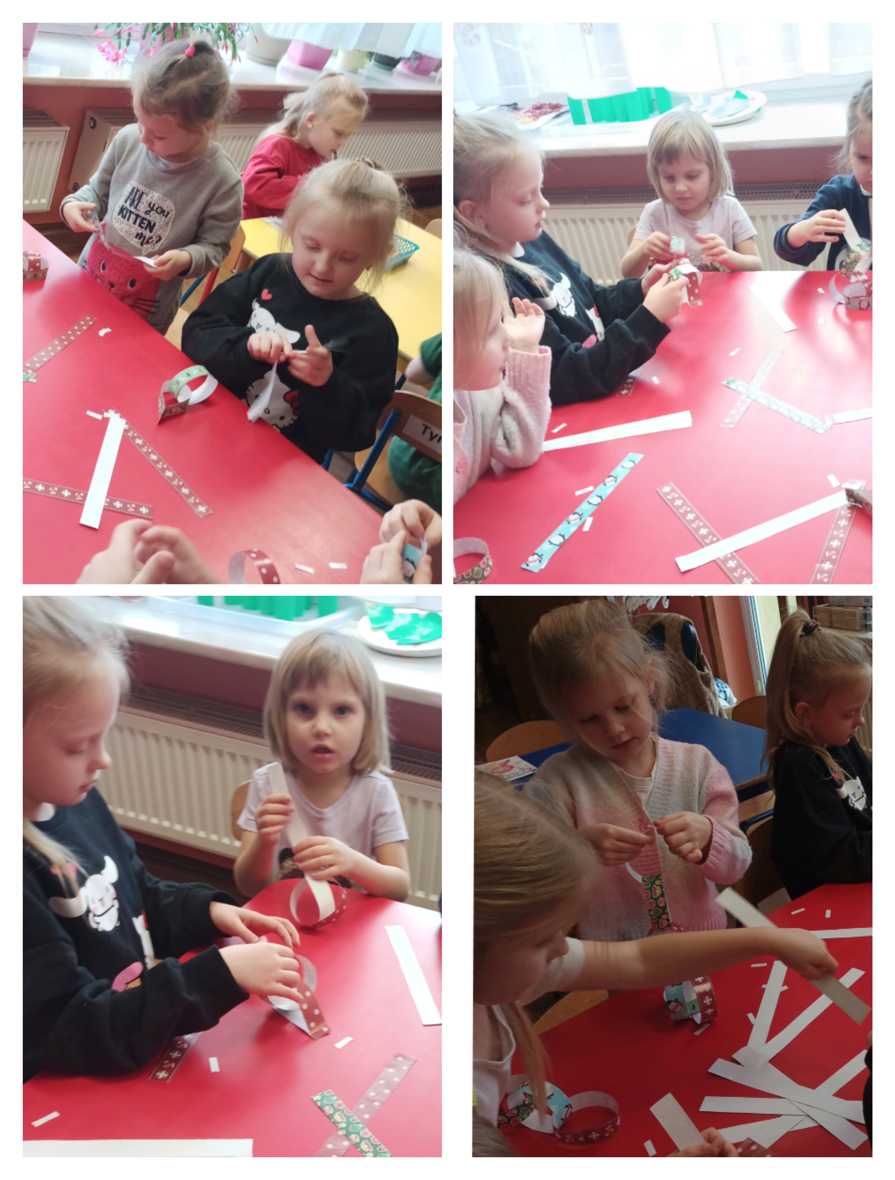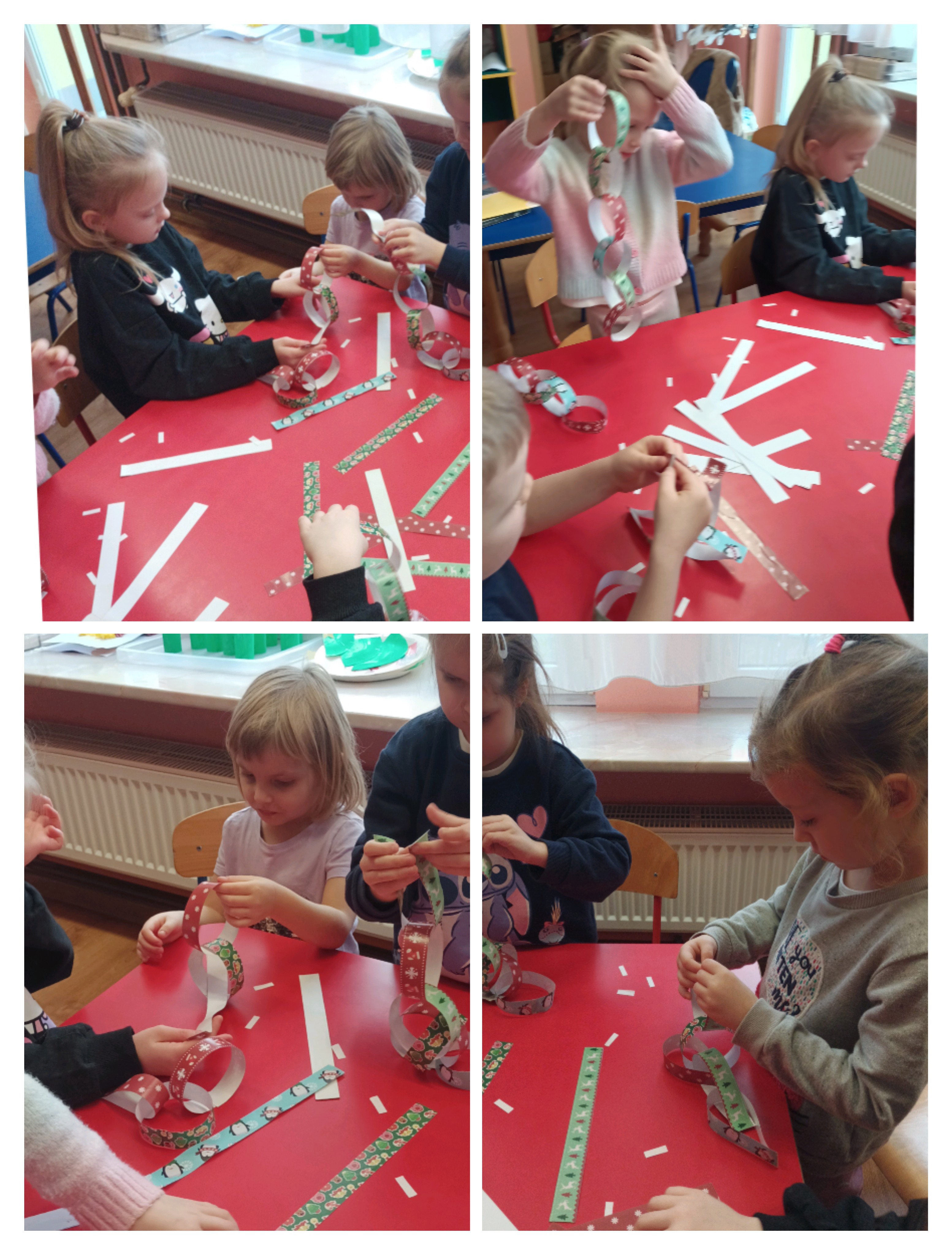 Misie intensywnie przygotowują się do Świąt Bożego Narodzenia. Świąteczne drzewko zostało już przez nas wspólnie udekorowane, a dzieci z zaangażowaniem wykonały bożonarodzeniowy łańcuch, przy którym chętnie pomagały koleżanki i koledzy z innych grup. Nasza sala oraz szatnia są już pięknie i świątecznie przystrojone. Misie przygotowały także Mikołaje z drewna oraz urocze choineczki z szyszek. Serdecznie dziękujemy Rodzicom za okazane wsparcie i zaangażowanie. Przekazane ozdoby choinkowe oraz pompony do prac plastycznych sprawiły dzieciom wiele radości i pomogły stworzyć wyjątkową, świąteczną atmosferę.