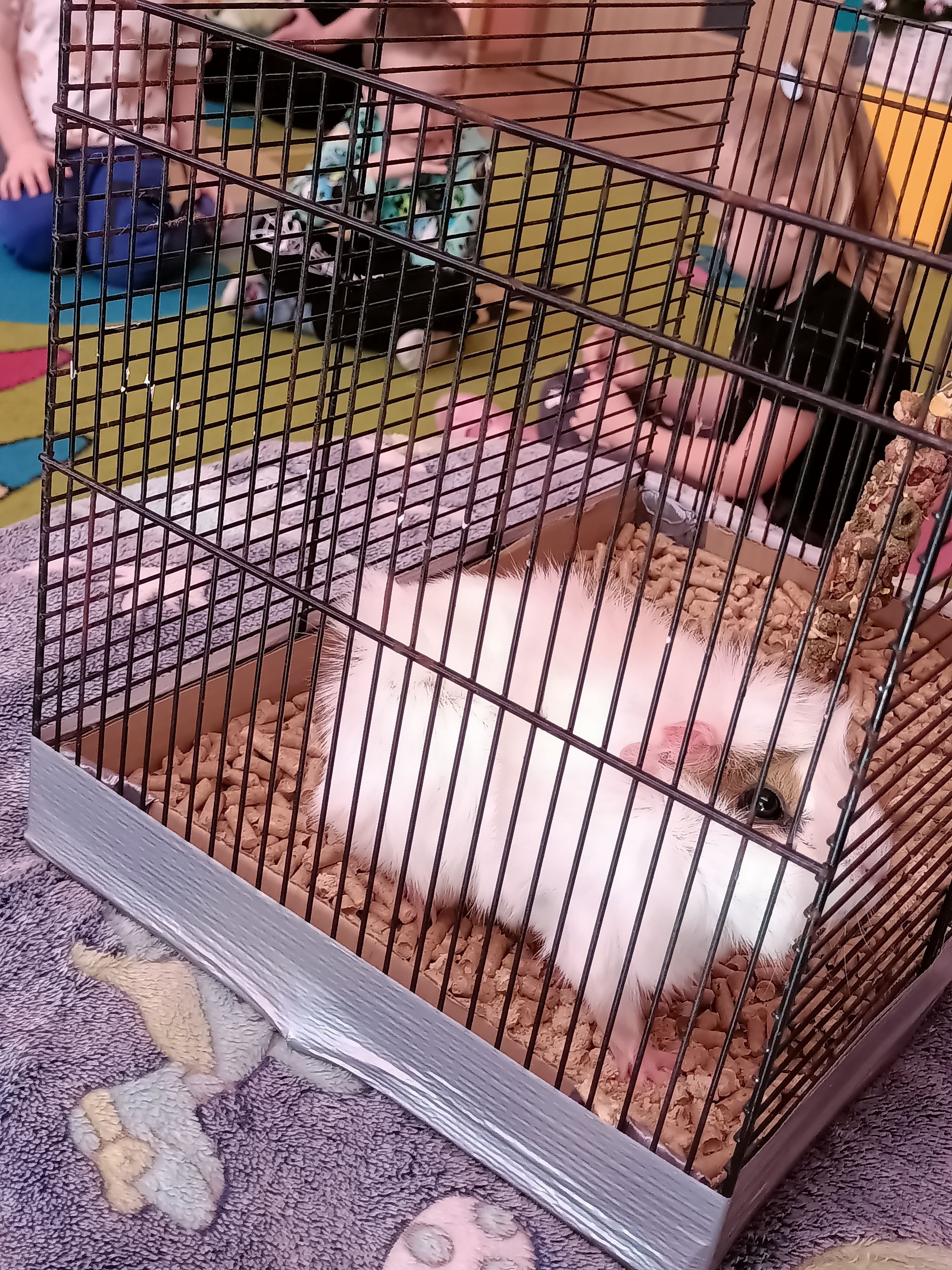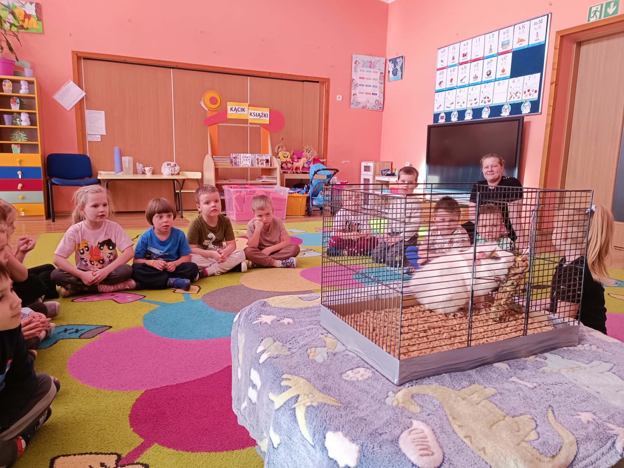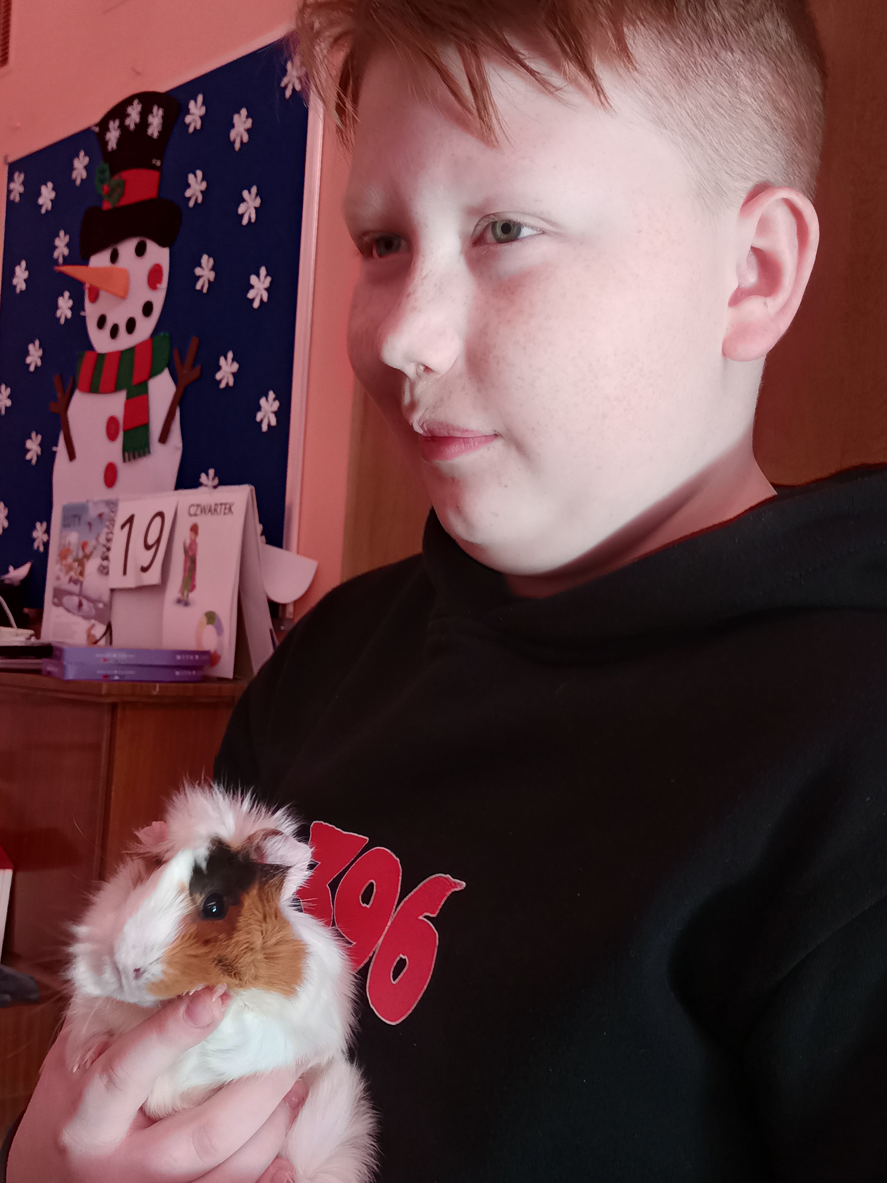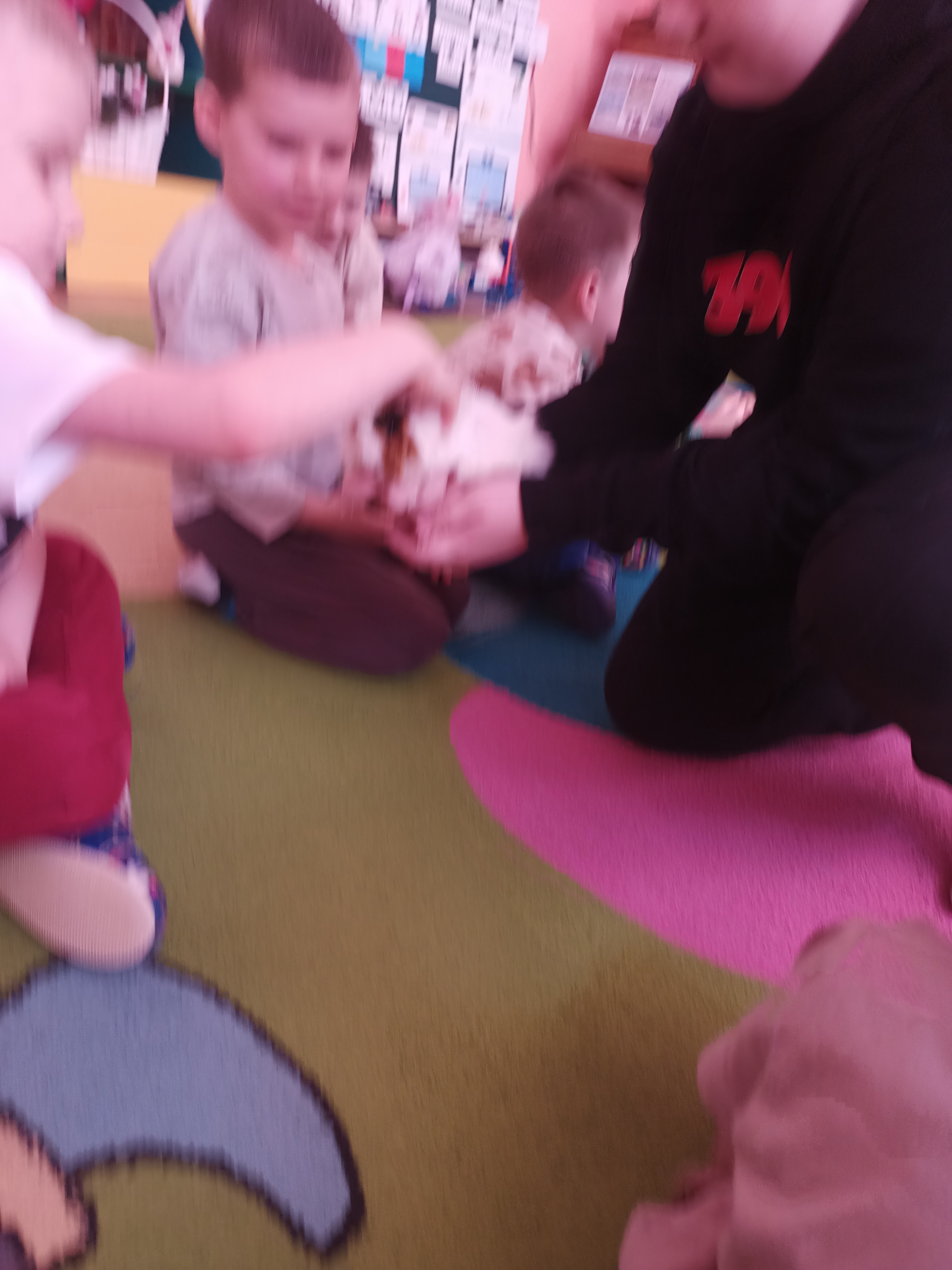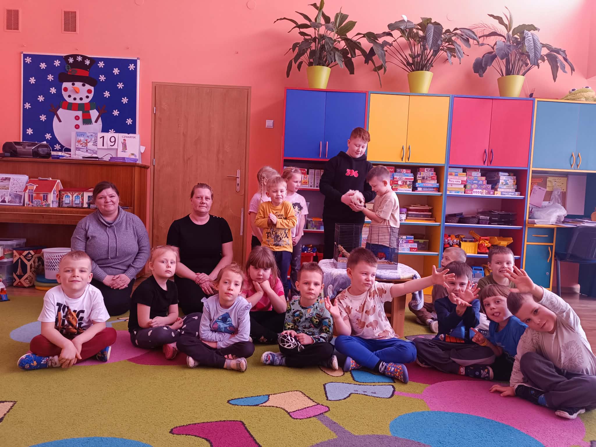 Tomek nie przyszedł sam, ponieważ towarzyszyła mu Pyza – świnka morska. Chłopcy opowiedzieli nam, co Pyza lubi robić i jeść oraz kiedy się kąpie. Dowiedzieliśmy się, jak należy opiekować się świnką morską i czego potrzebuje, aby być zdrową i szczęśliwą.