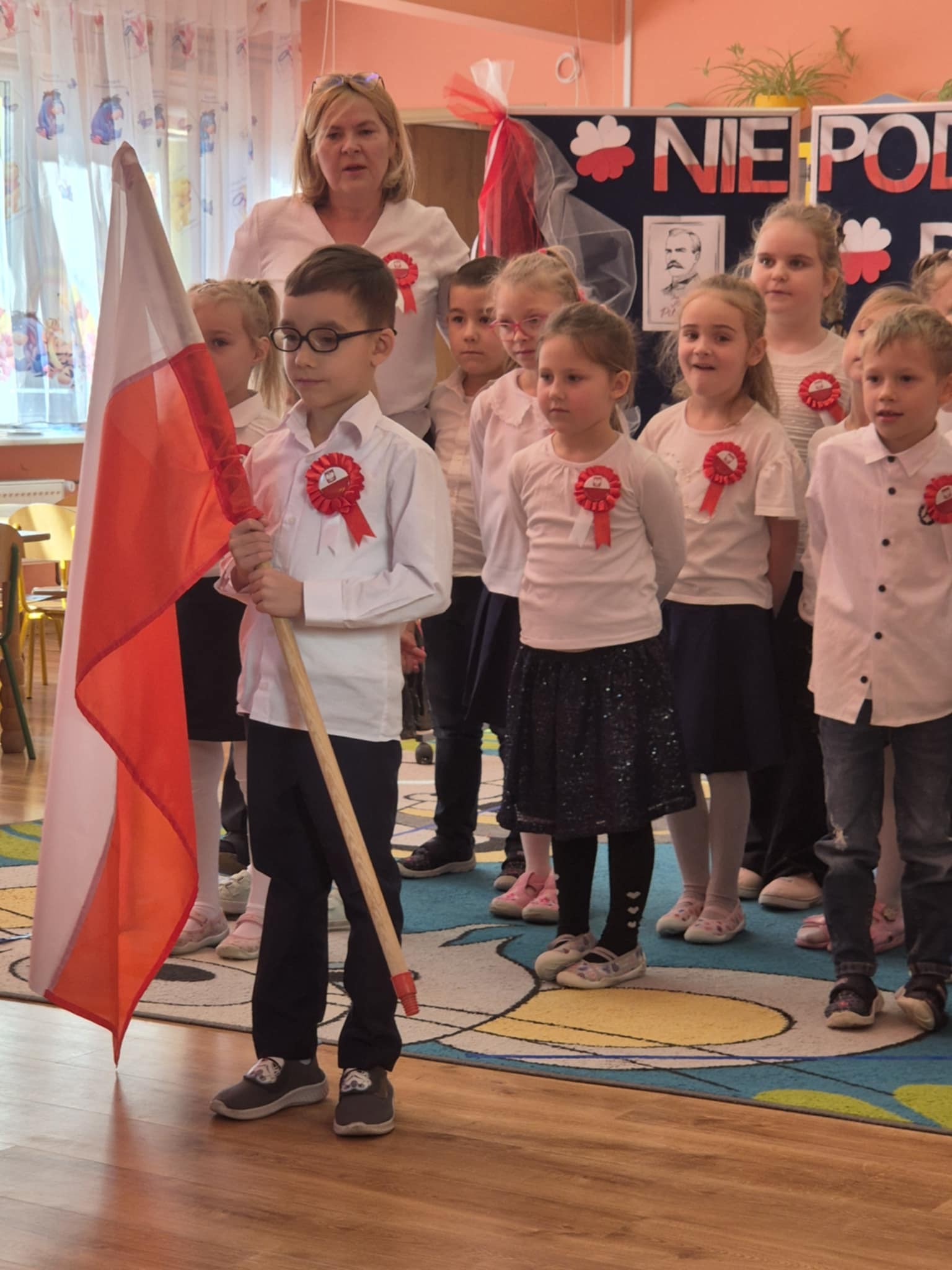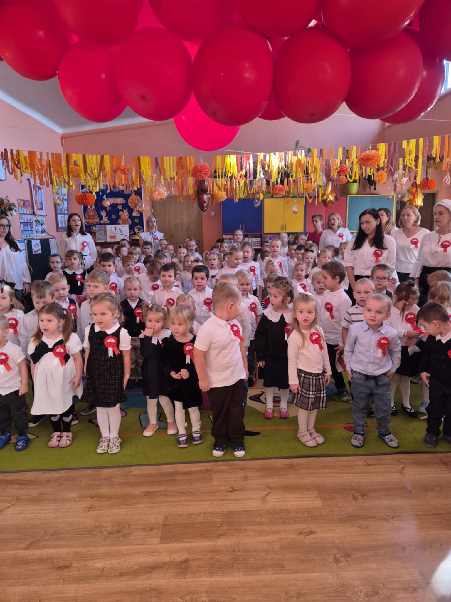 Mamy przyjemność podzielić się z Wami wyjątkowym wydarzeniem, które miało miejsce 7 listopada o godzinie 10:00 w naszej placówce. Wspólnie z dziećmi uczestniczyliśmy w ogólnopolskiej akcji Ministerstwa Edukacji Narodowej "Szkoła do hymnu". Nasze przedszkolaki z zaangażowaniem i dumą odśpiewały Mazurka Dąbrowskiego, tworząc atmosferę prawdziwej wspólnoty i dumy narodowej.