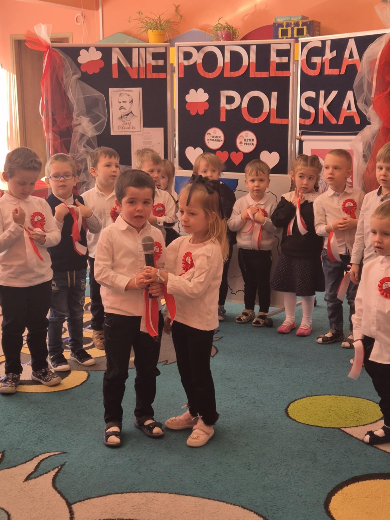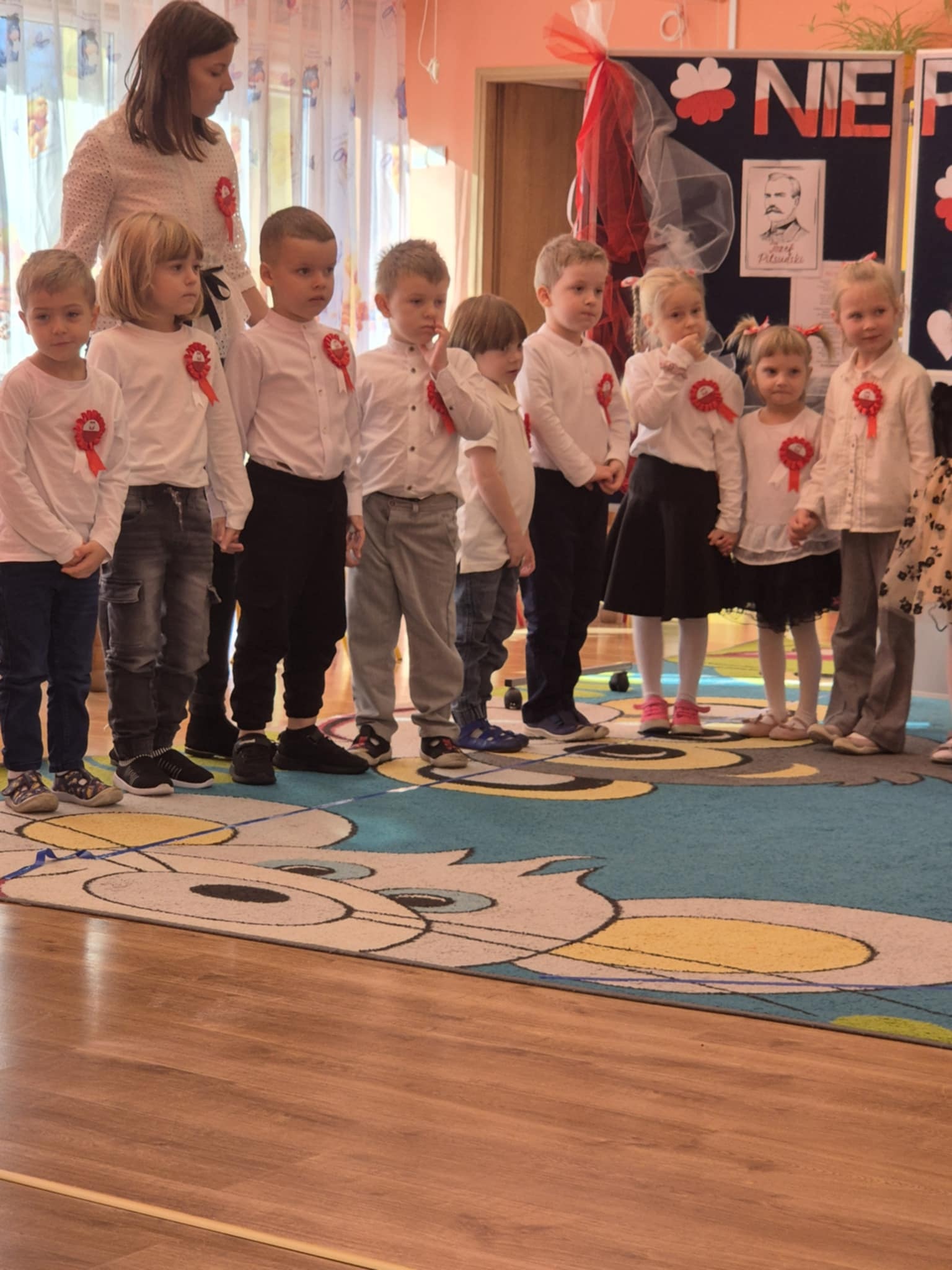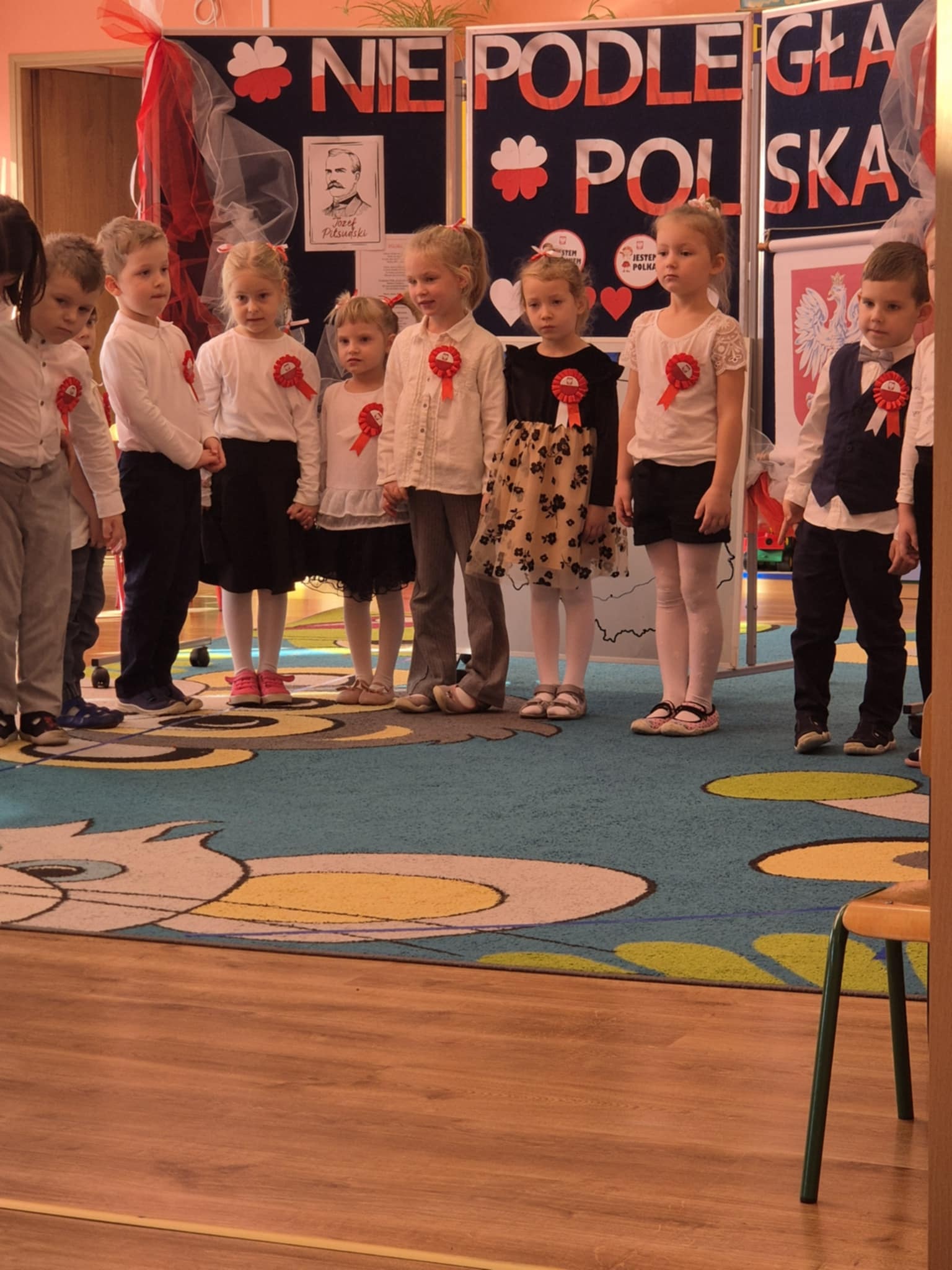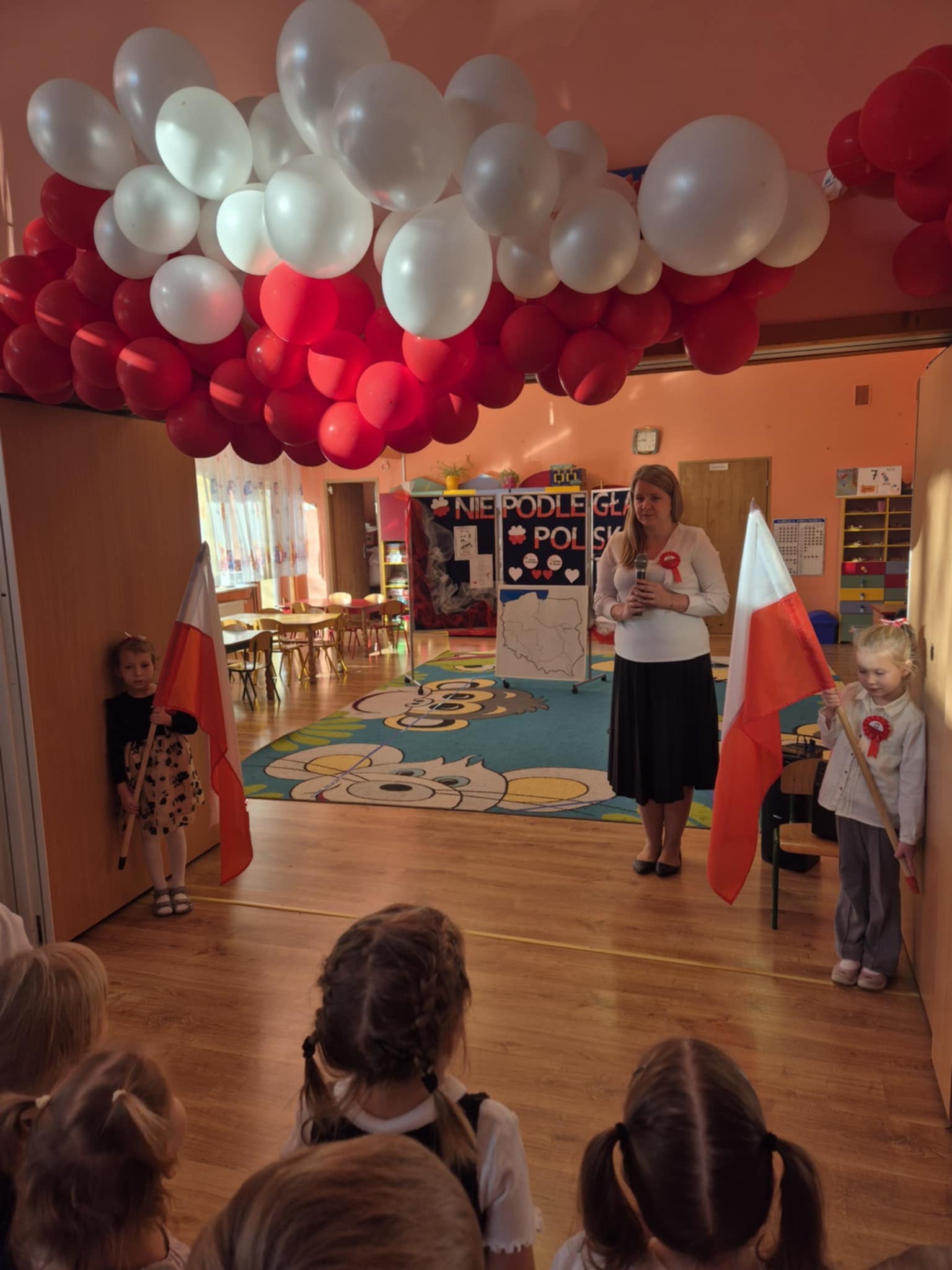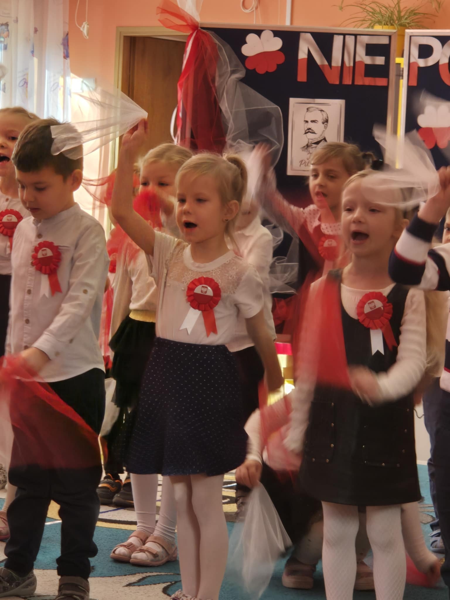Każda z grup przygotowała patriotyczne wystąpienia, które poruszały serca i wzbudzały podziw wśród całej społeczności przedszkolnej. Dzieci, niczym mali aktorzy na wielkiej scenie, prezentowały swój talent, oddanie oraz uśmiech, a przede wszystkim miłość do Ojczyzny.