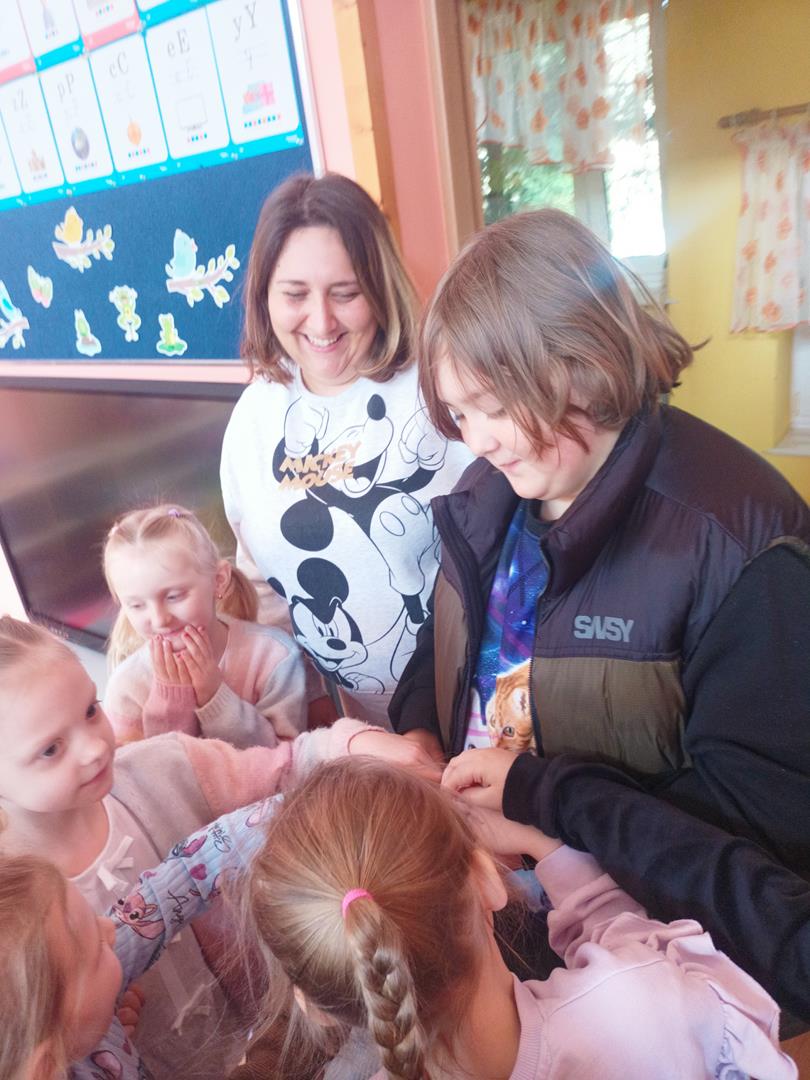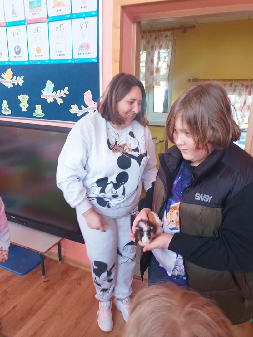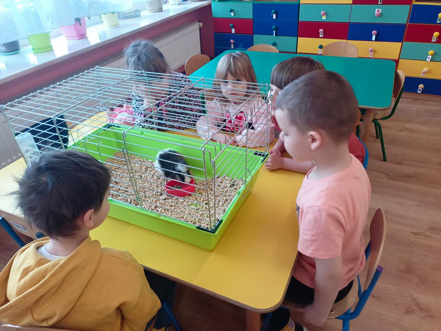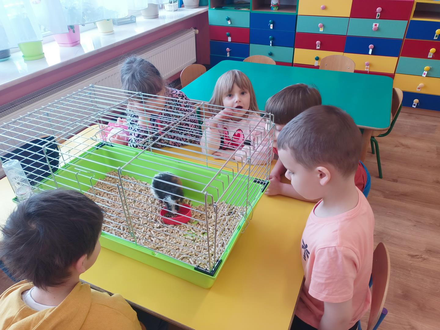 Nowy przyjaciel od razu wzbudził ogromne zainteresowanie i radość wśród dzieci. Przedszkolaki z ciekawością obserwują jego zachowanie, uczą się delikatności oraz zasad właściwej opieki nad zwierzęciem.
