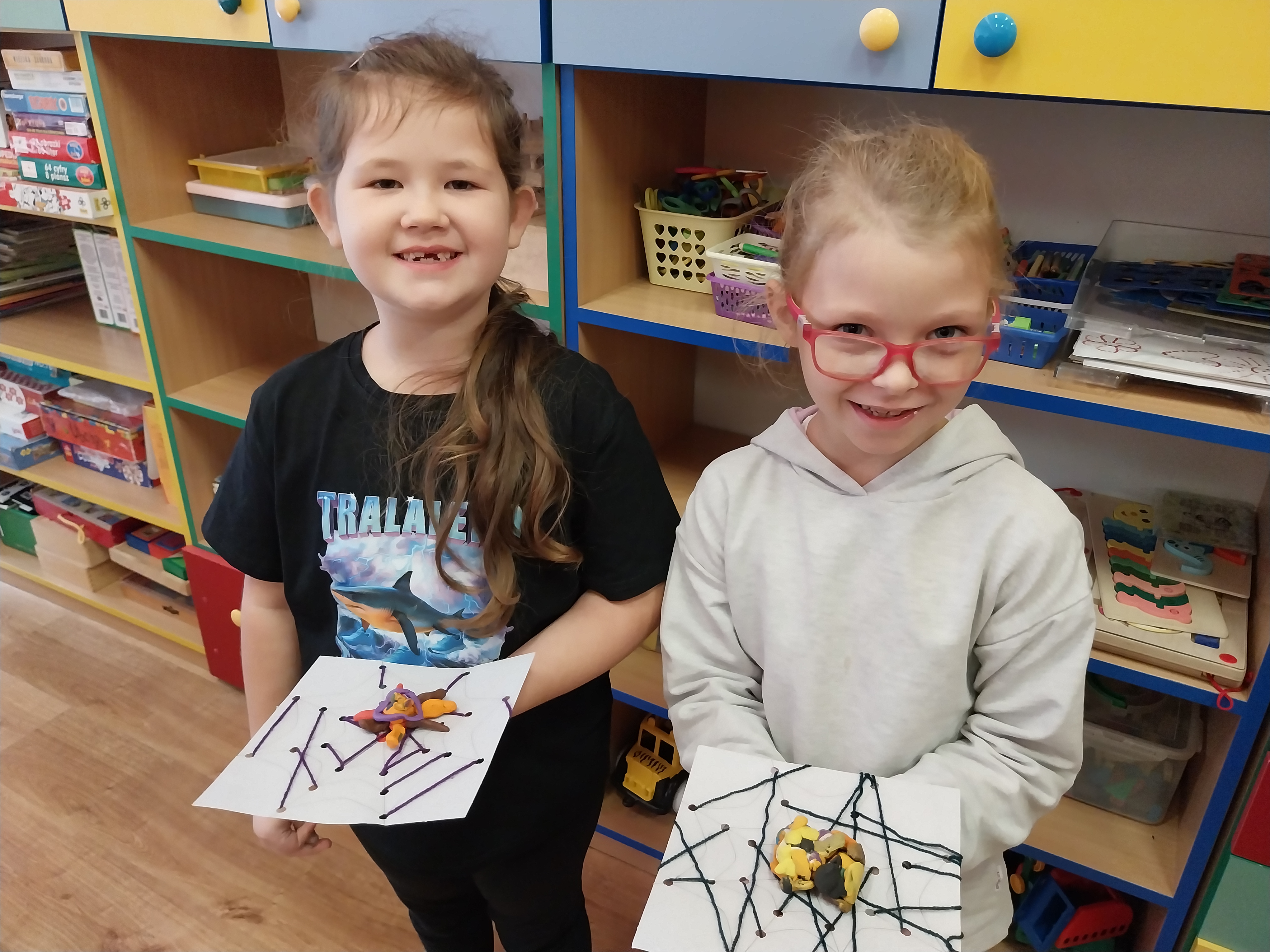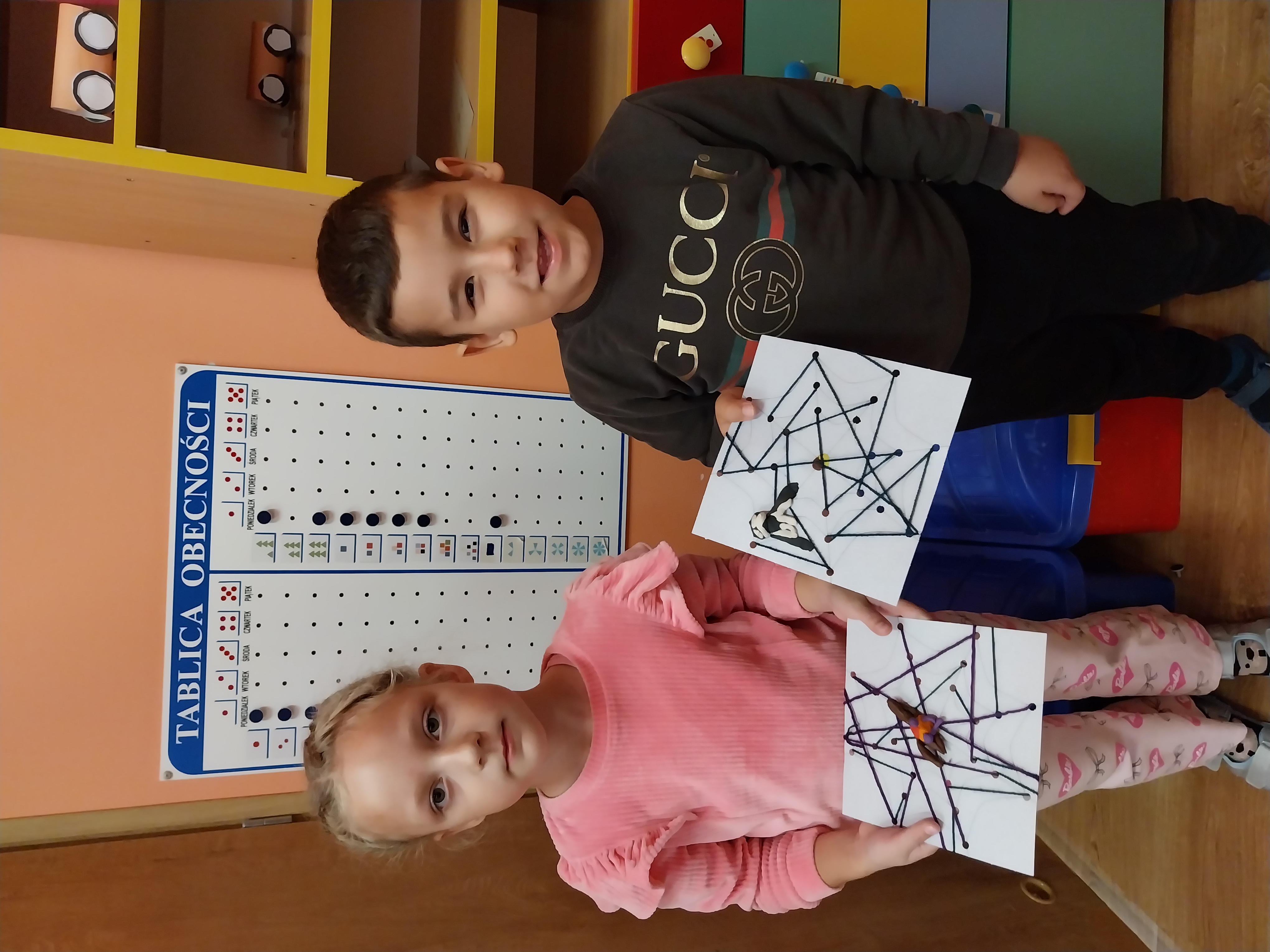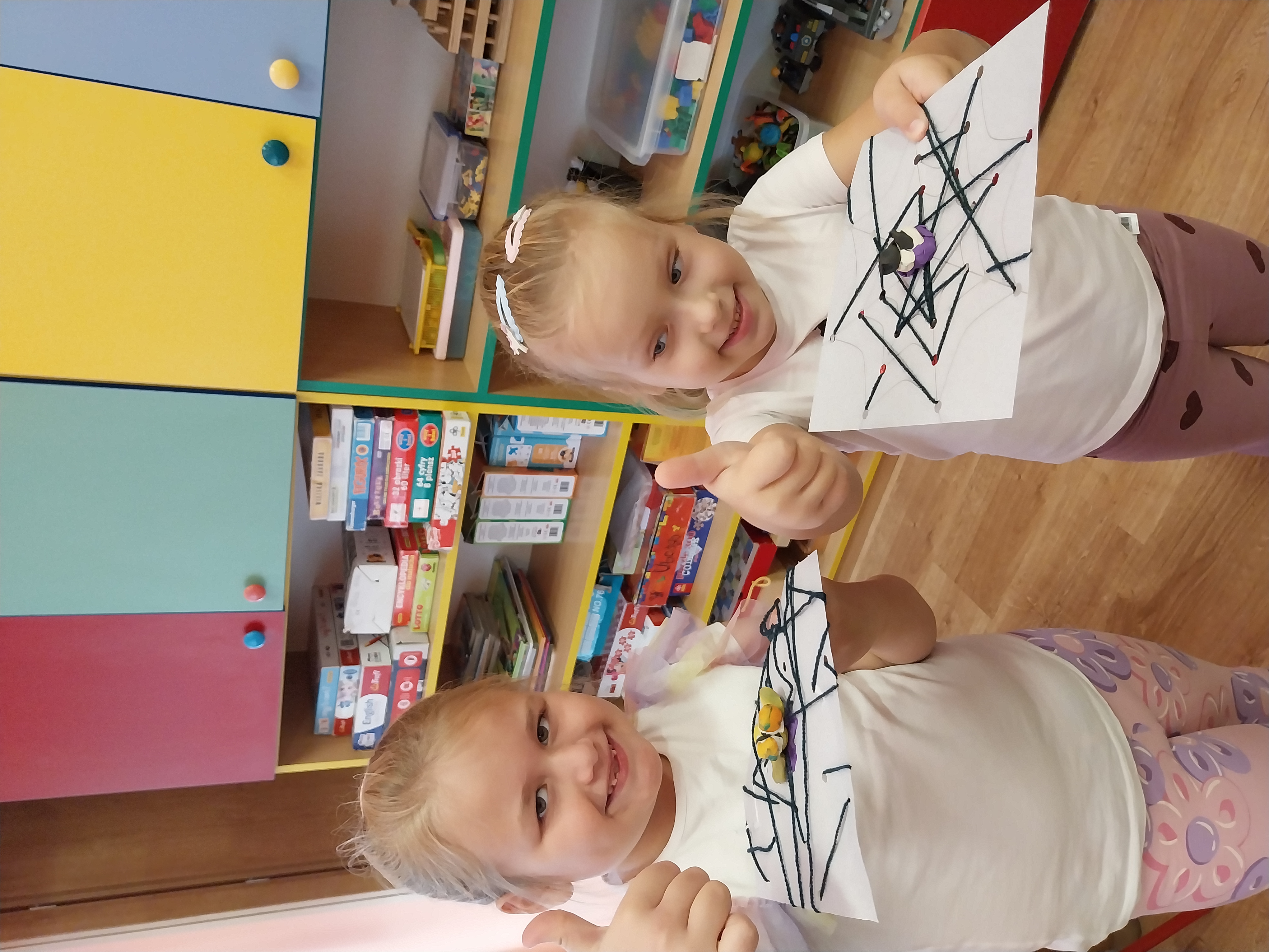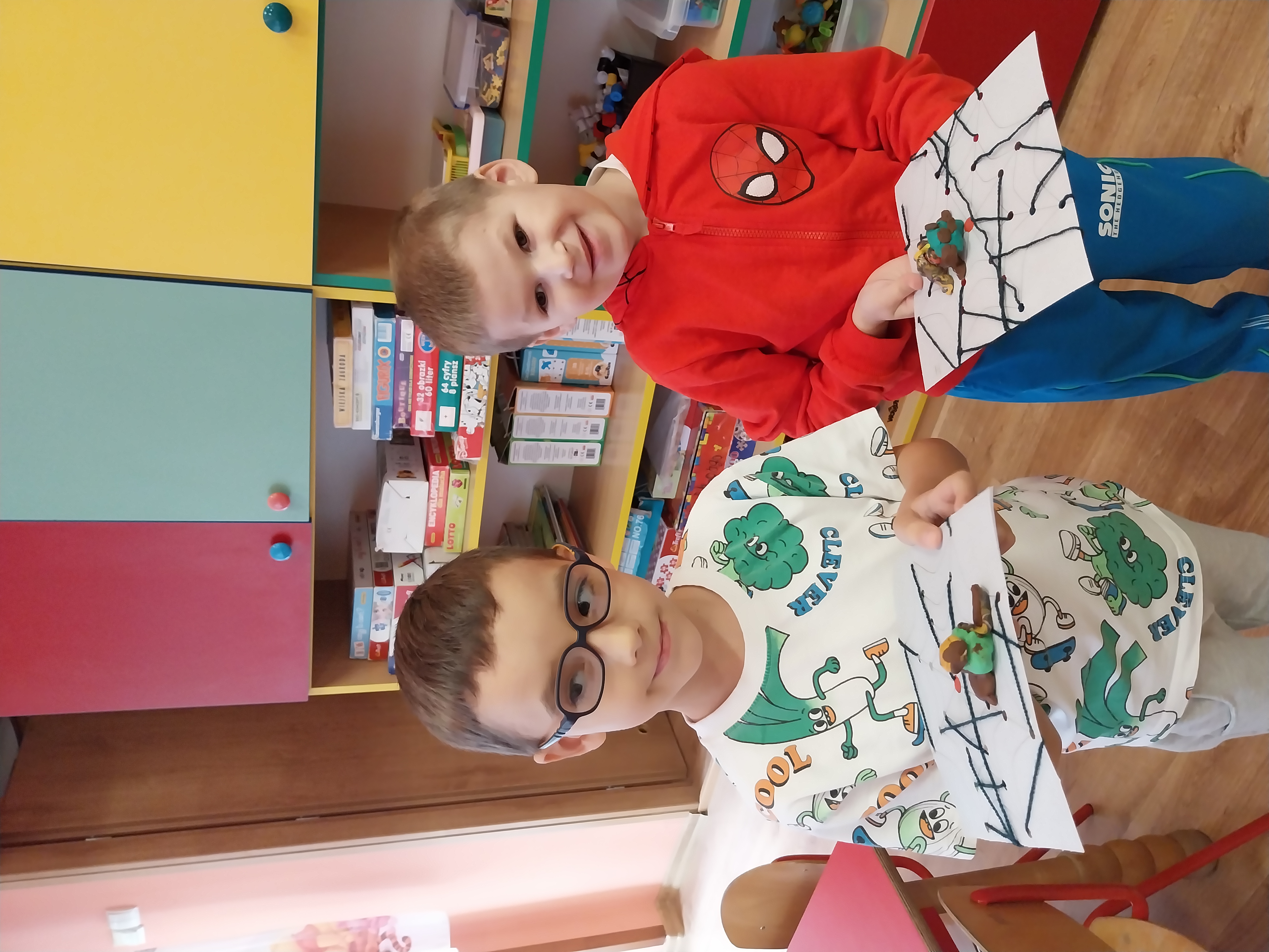 Zajączki i ich prace plastyczno- techniczne zainspirowane obserwacją przyrody i piosenką pt.: "Babie lato"