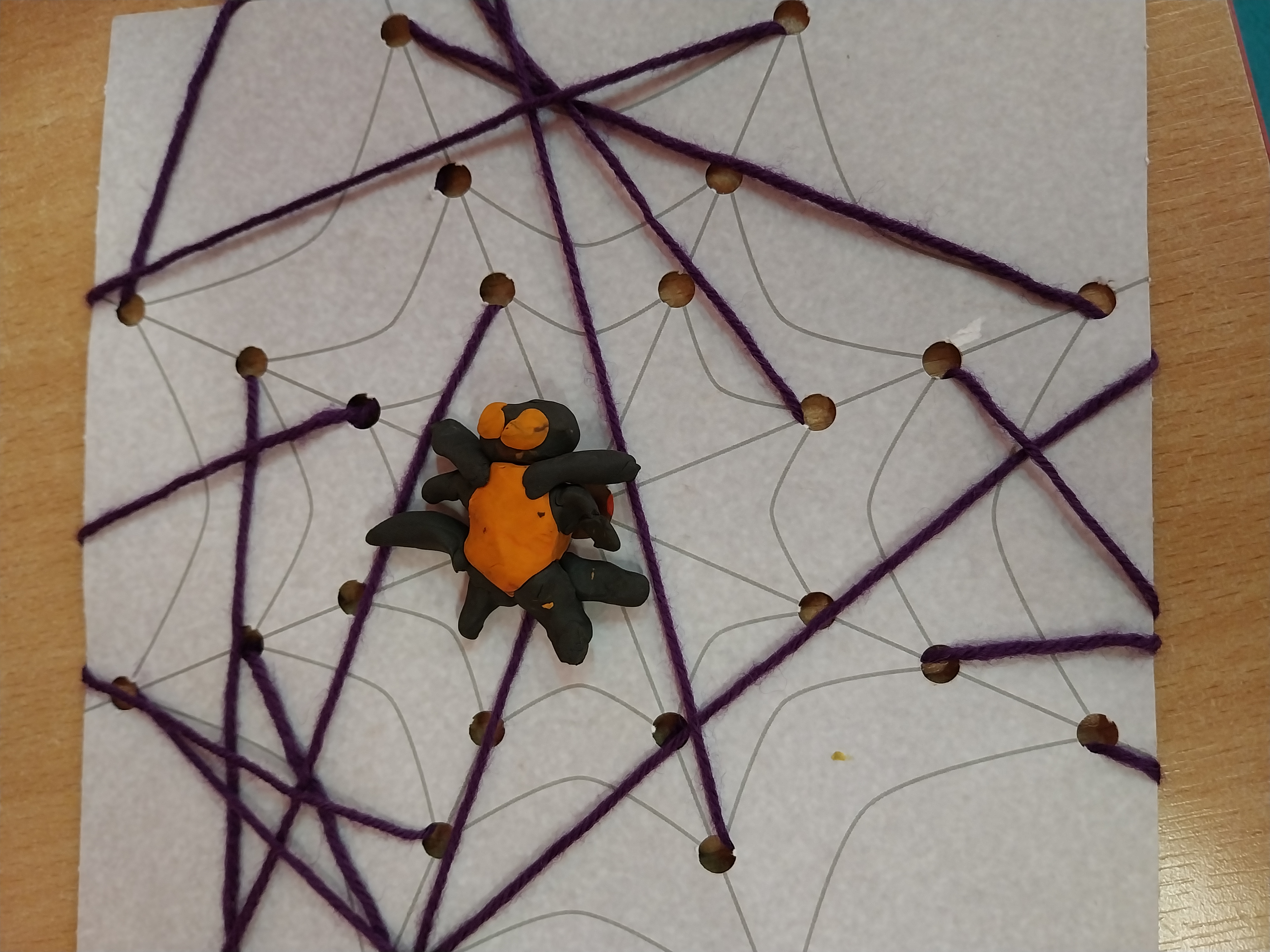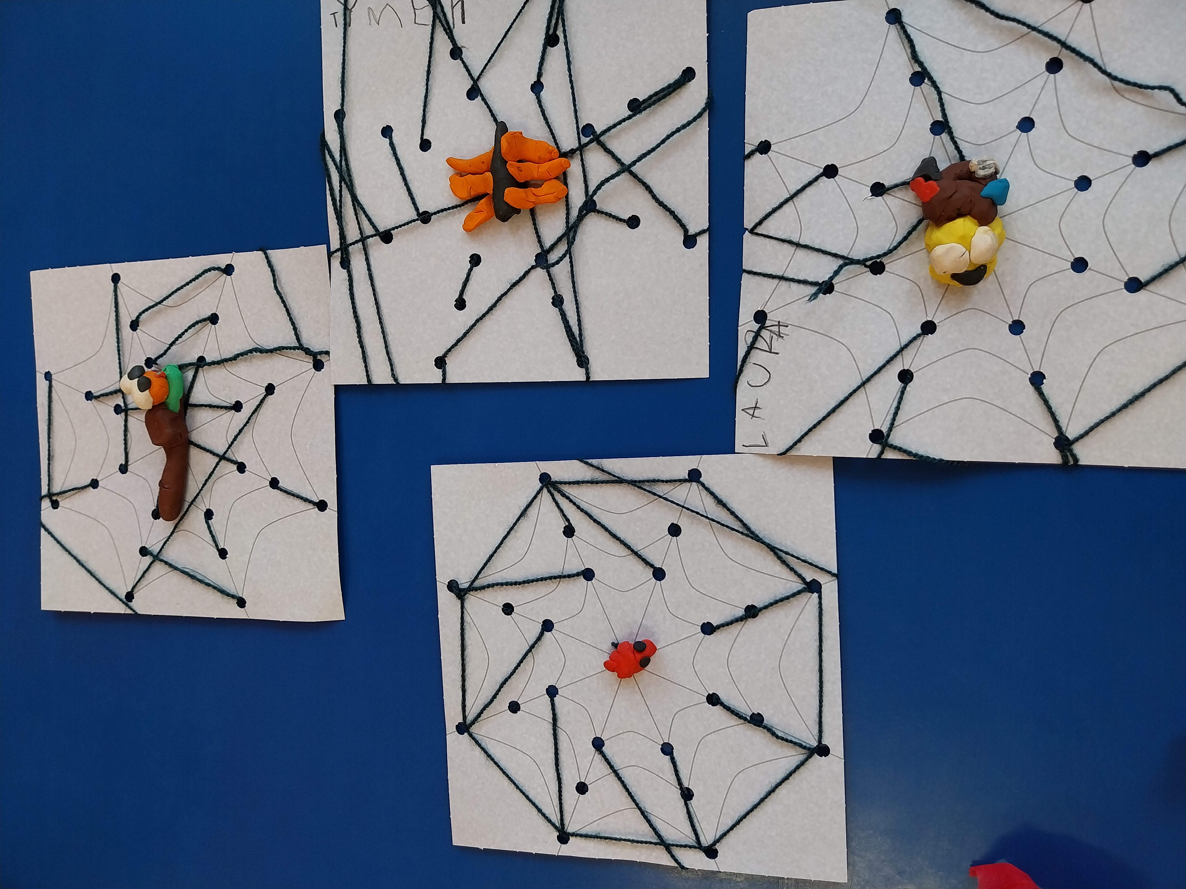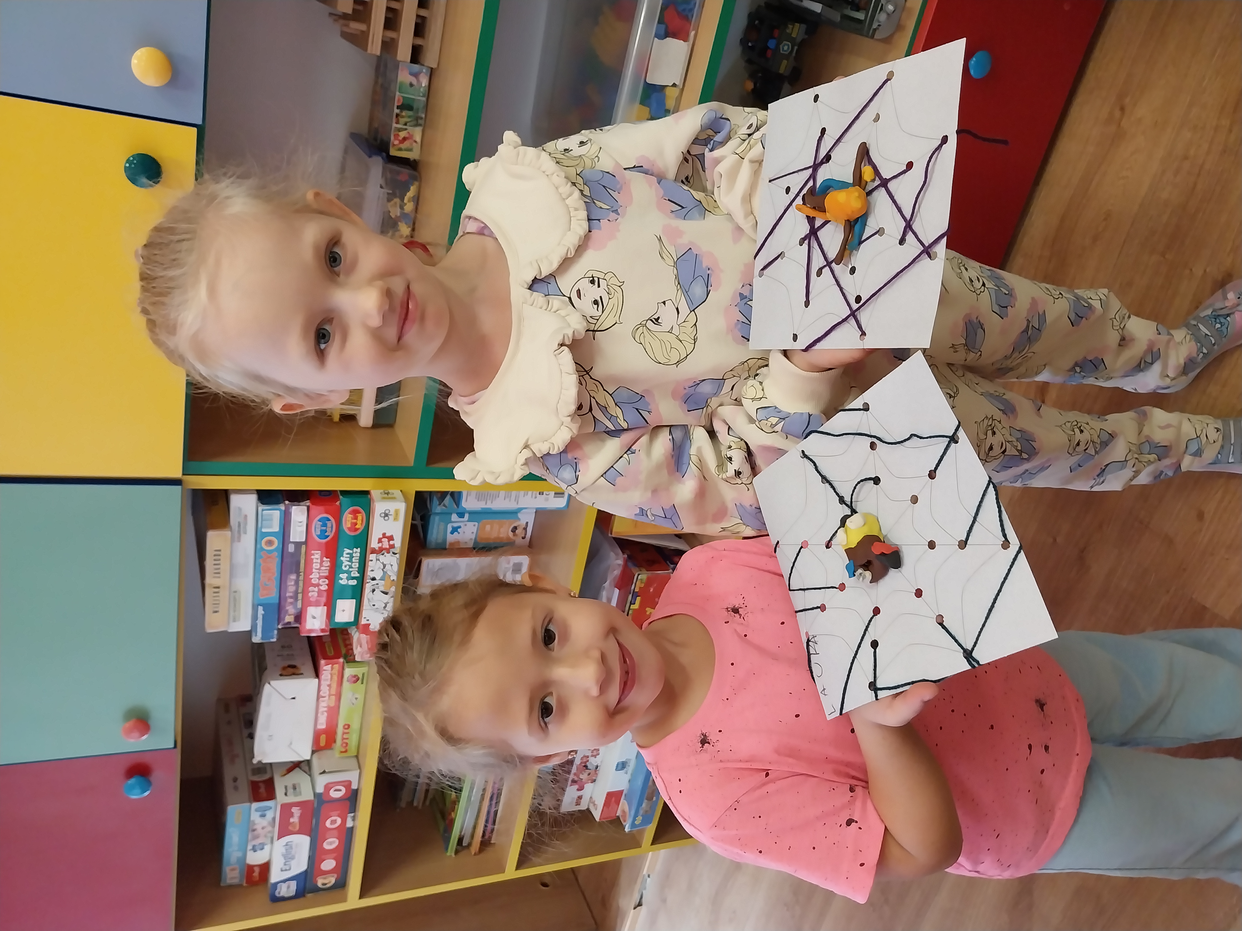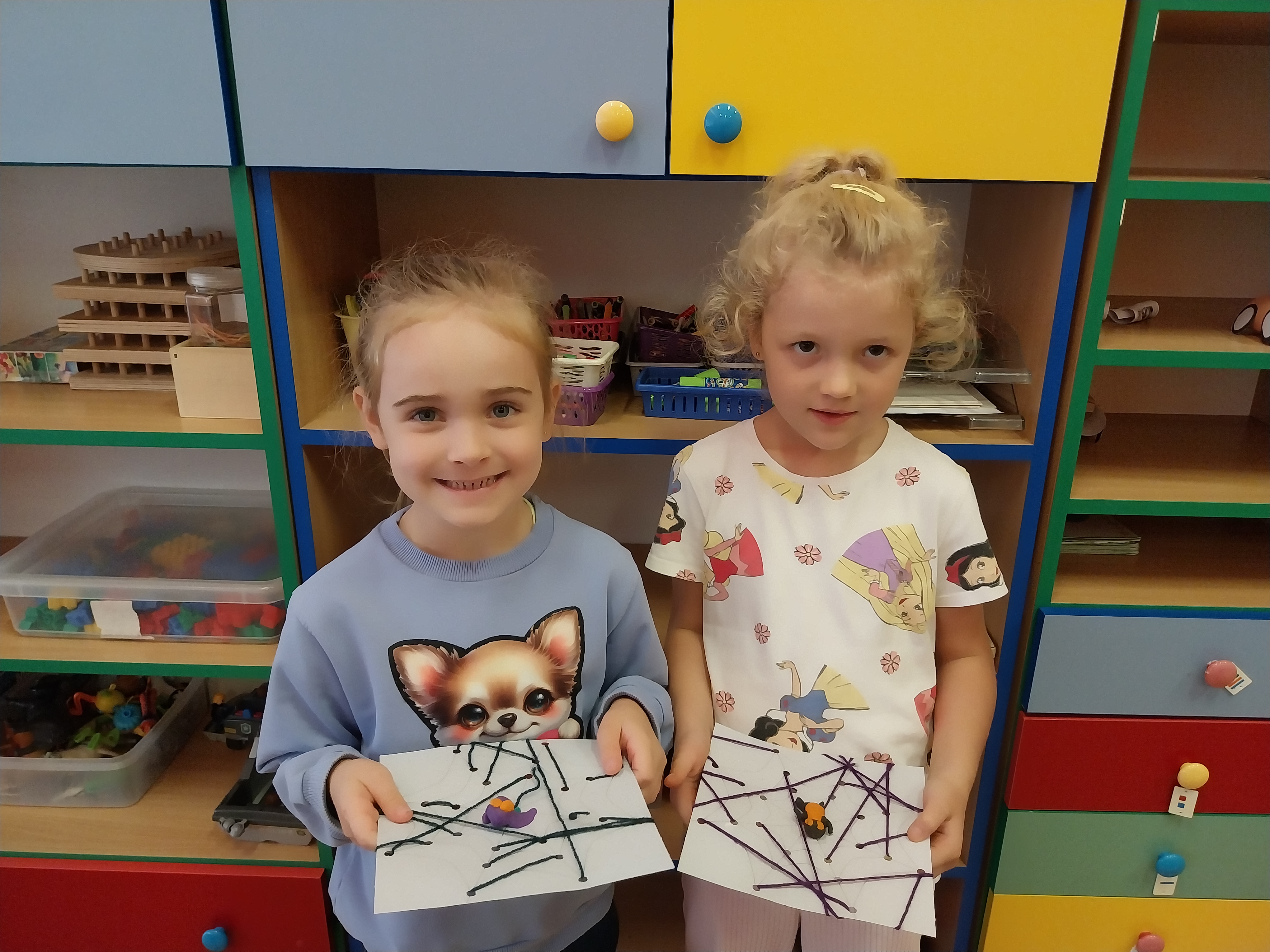Zajączki i ich prace plastyczno- techniczne zainspirowane obserwacją przyrody i piosenką pt.: "Babie lato"