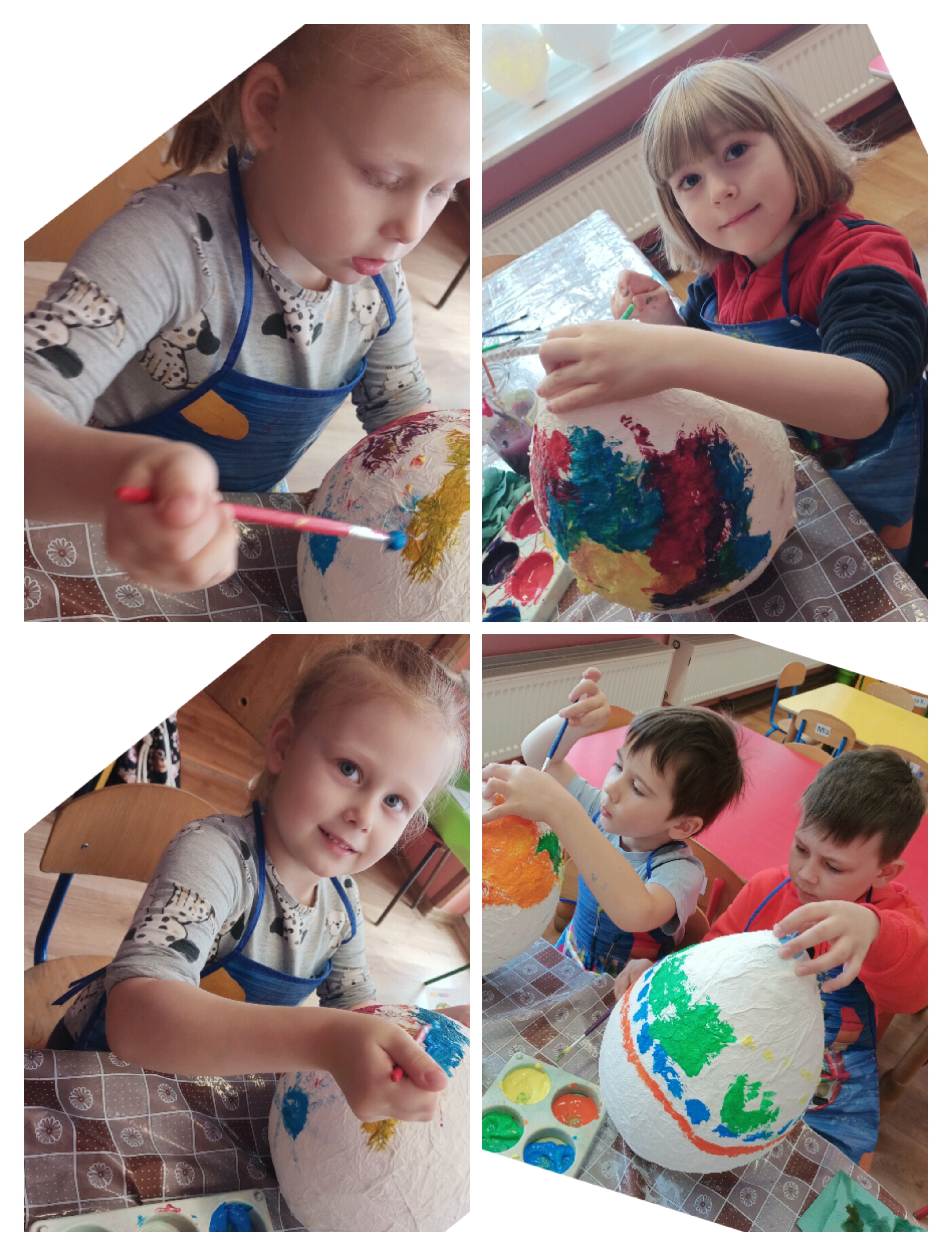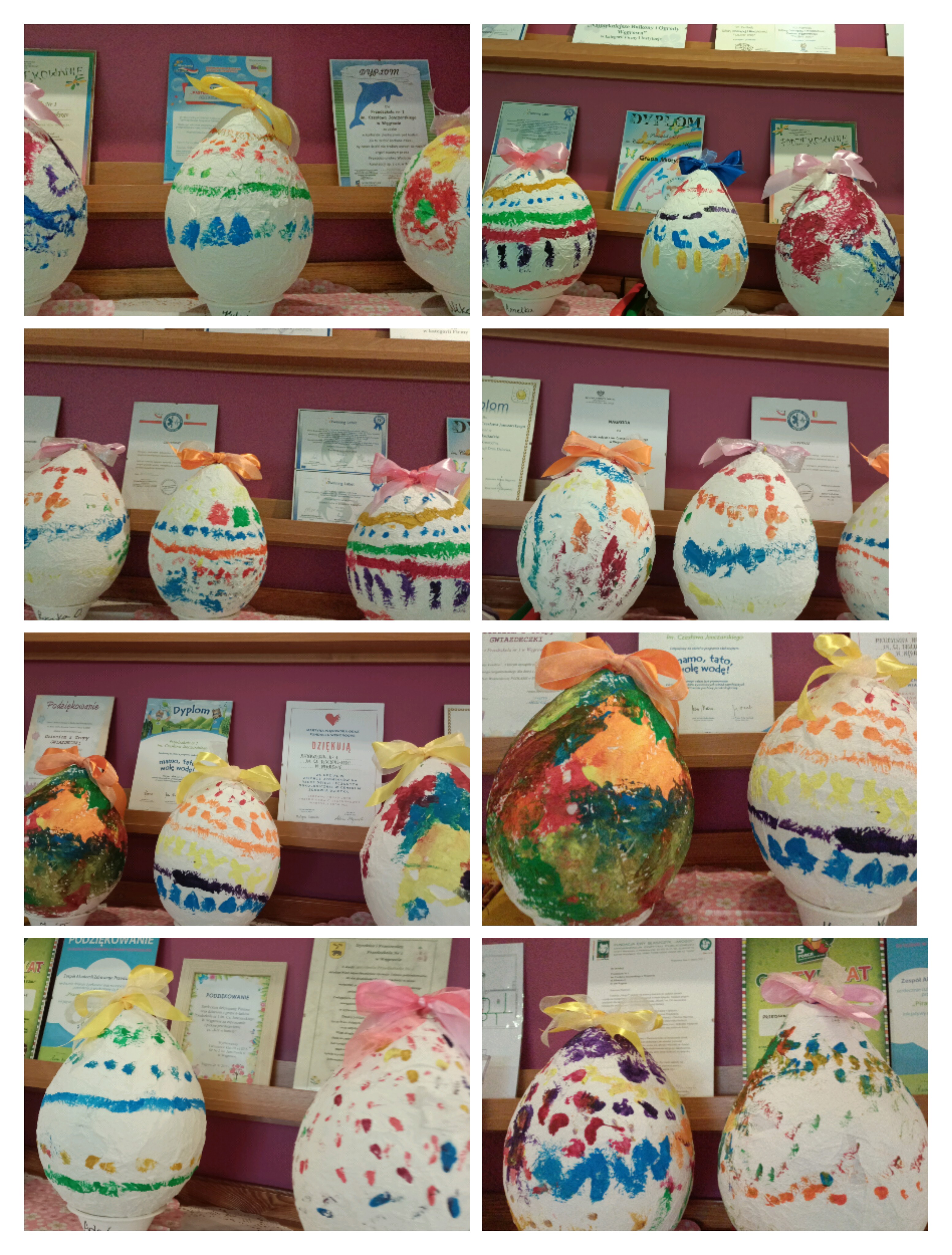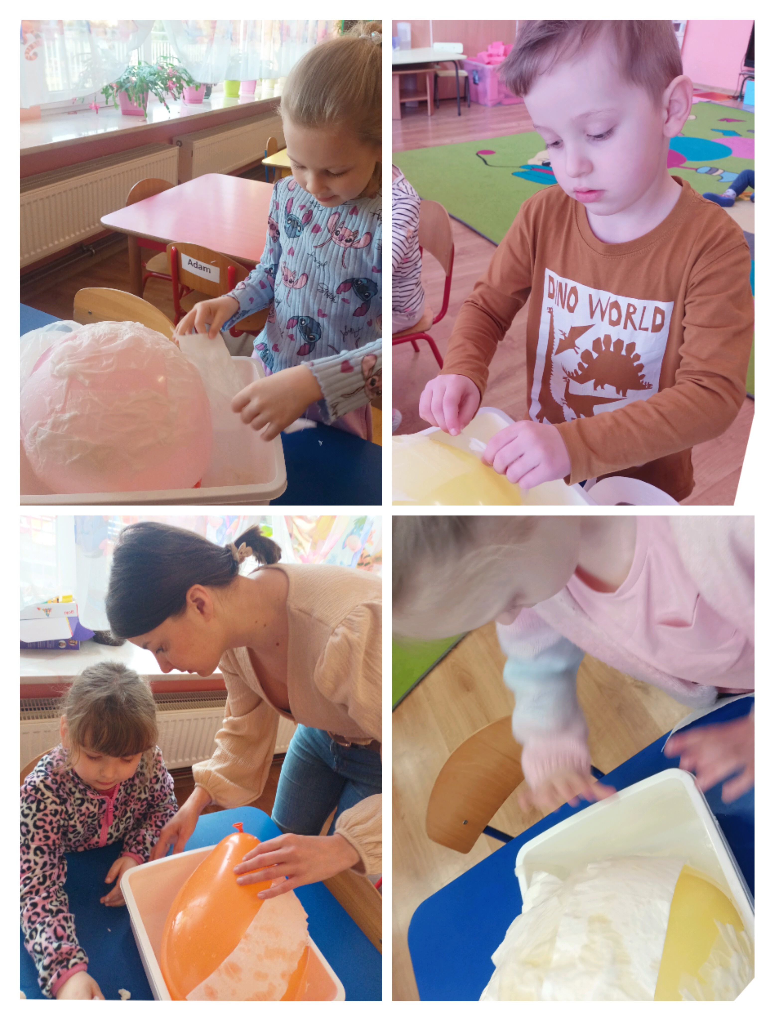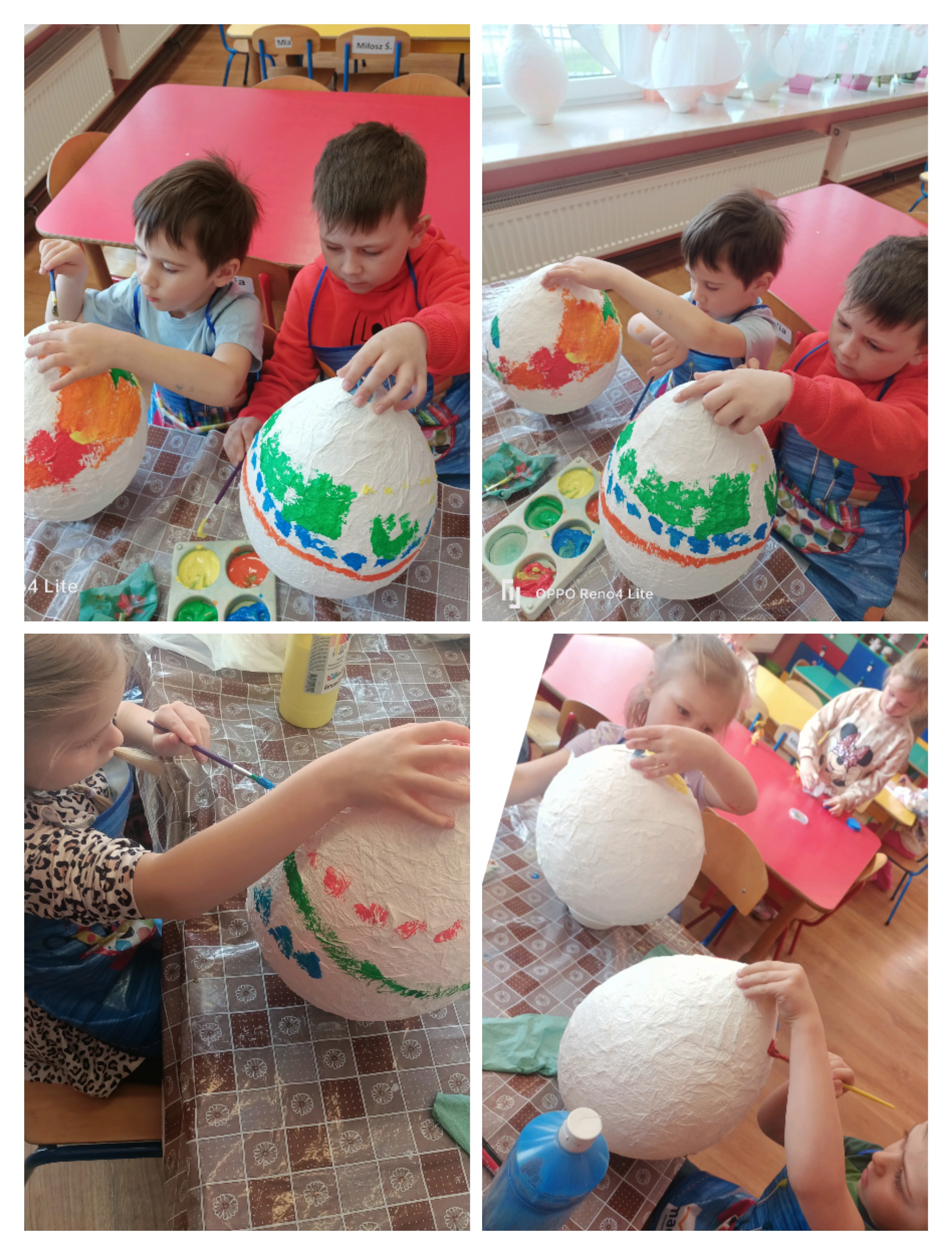 Do wykonania pracy wykorzystano balon jako bazę. Został on oklejony kawałkami papieru toaletowego nasączonego wodą, co pozwoliło uzyskać kształt jajka. Po wyschnięciu balon pozostał wewnątrz pracy, nadając jej trwałość i objętość. Całość została pomalowana farbami według pomysłów dzieci. Na zakończenie pisanka została ozdobiona kolorową wstążką, co nadało jej świąteczny i dekoracyjny charakter. Misiom bardzo podobała się ta praca plastyczna i chętnie angażowały się w jej wykonanie. Zapraszamy do fotorelacji.