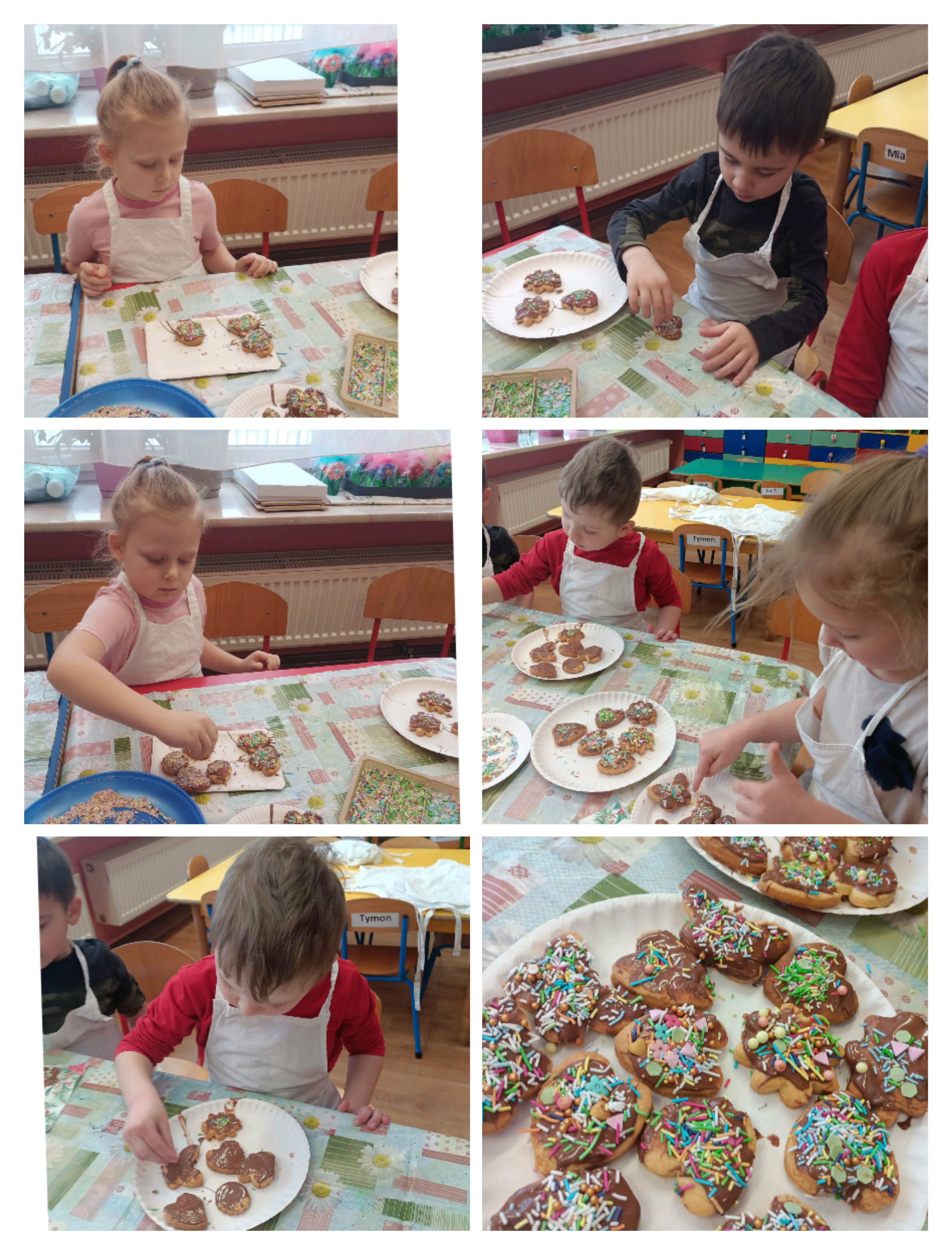 Przygotowania do uroczystości Dnia Babci i Dziadka upłynęły nam bardzo pracowicie. Dzieci z grupy Misie pięknie pomalowały kwiaty z gipsu. Aby dodatkowo osłodzić ten wyjątkowy dzień, upiekły ciasteczka, które następnie z wielkim zaangażowaniem ozdabiały.