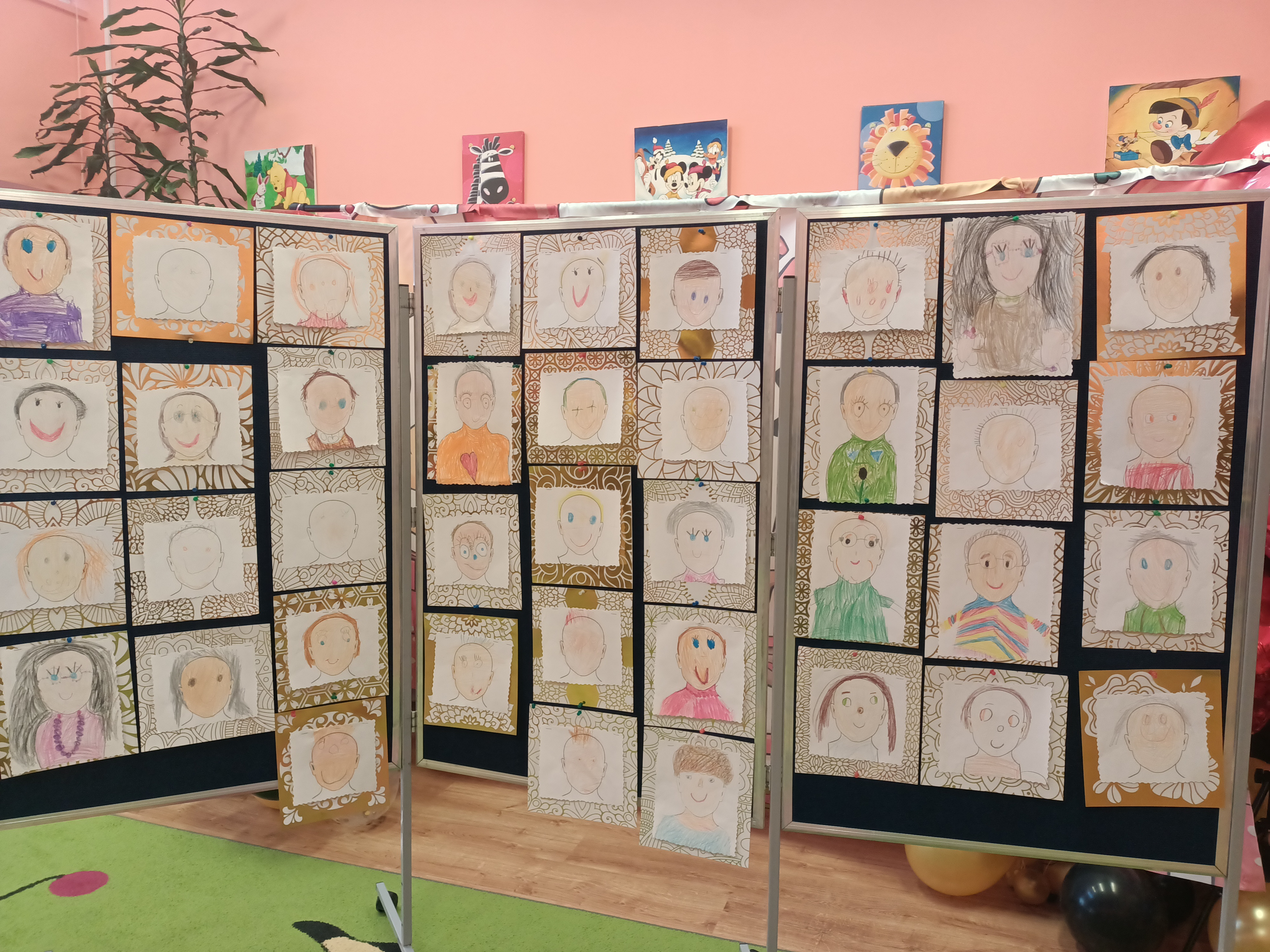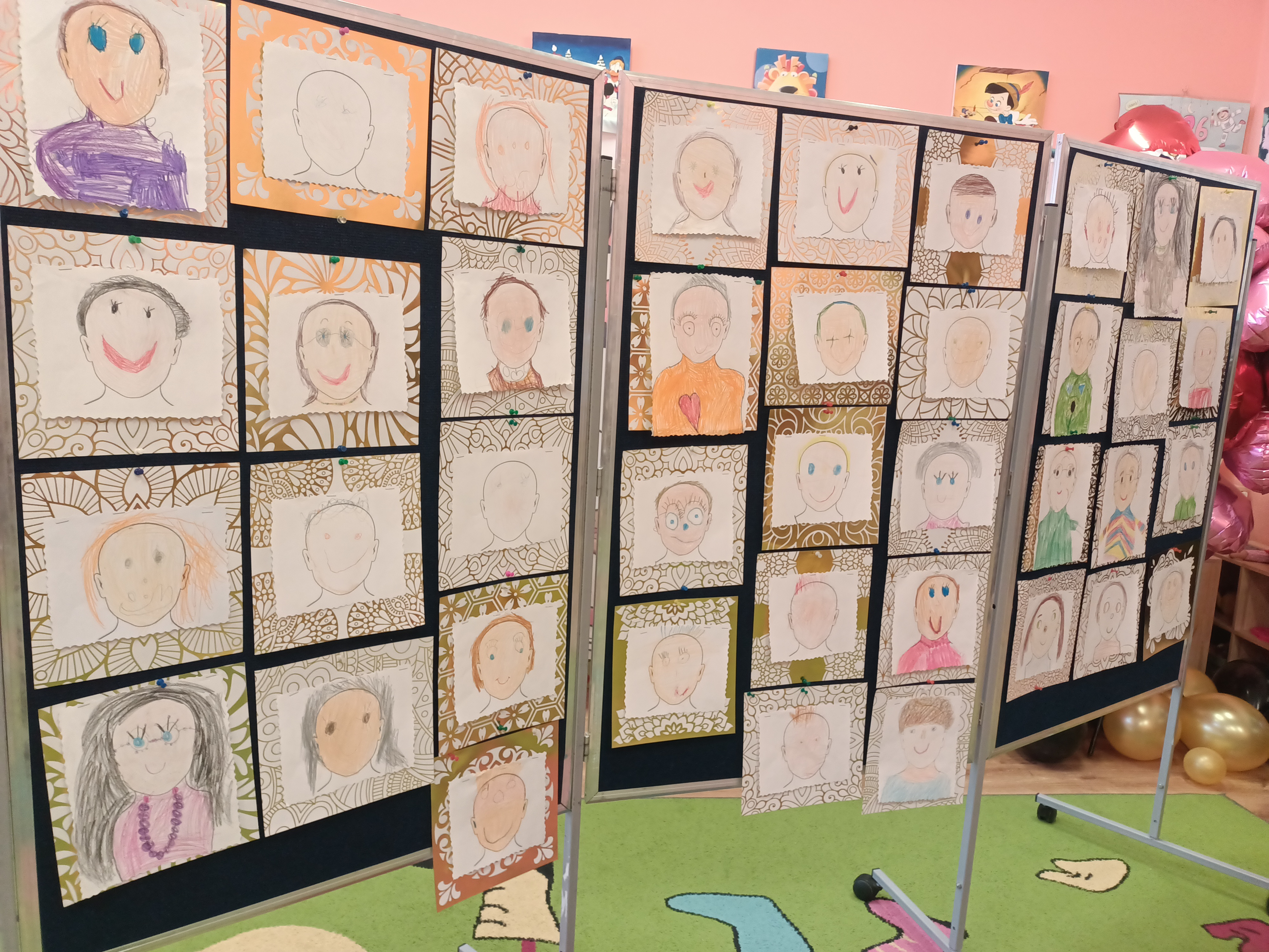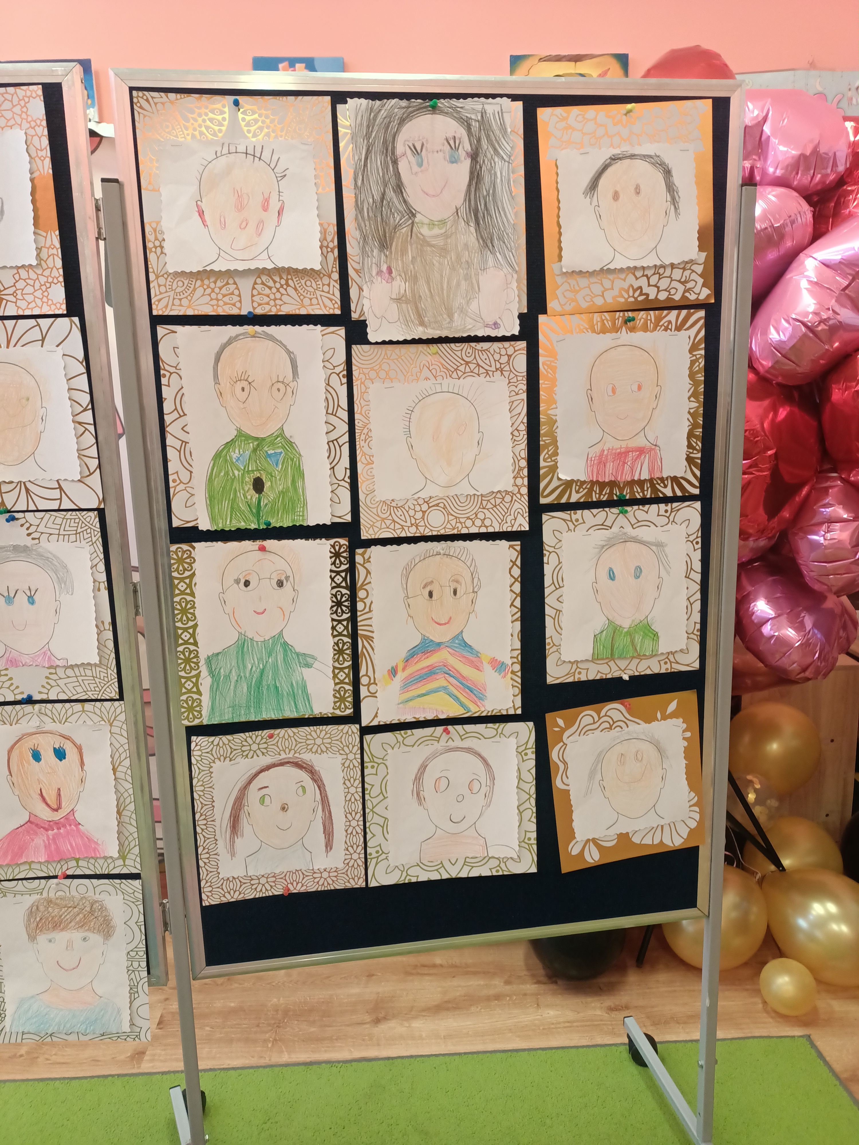 Wykonały także portrety ukochanych Babć i Dziadków. Dziadkowie bez większego problemu odnaleźli swoje portrety, jak się później okazało.