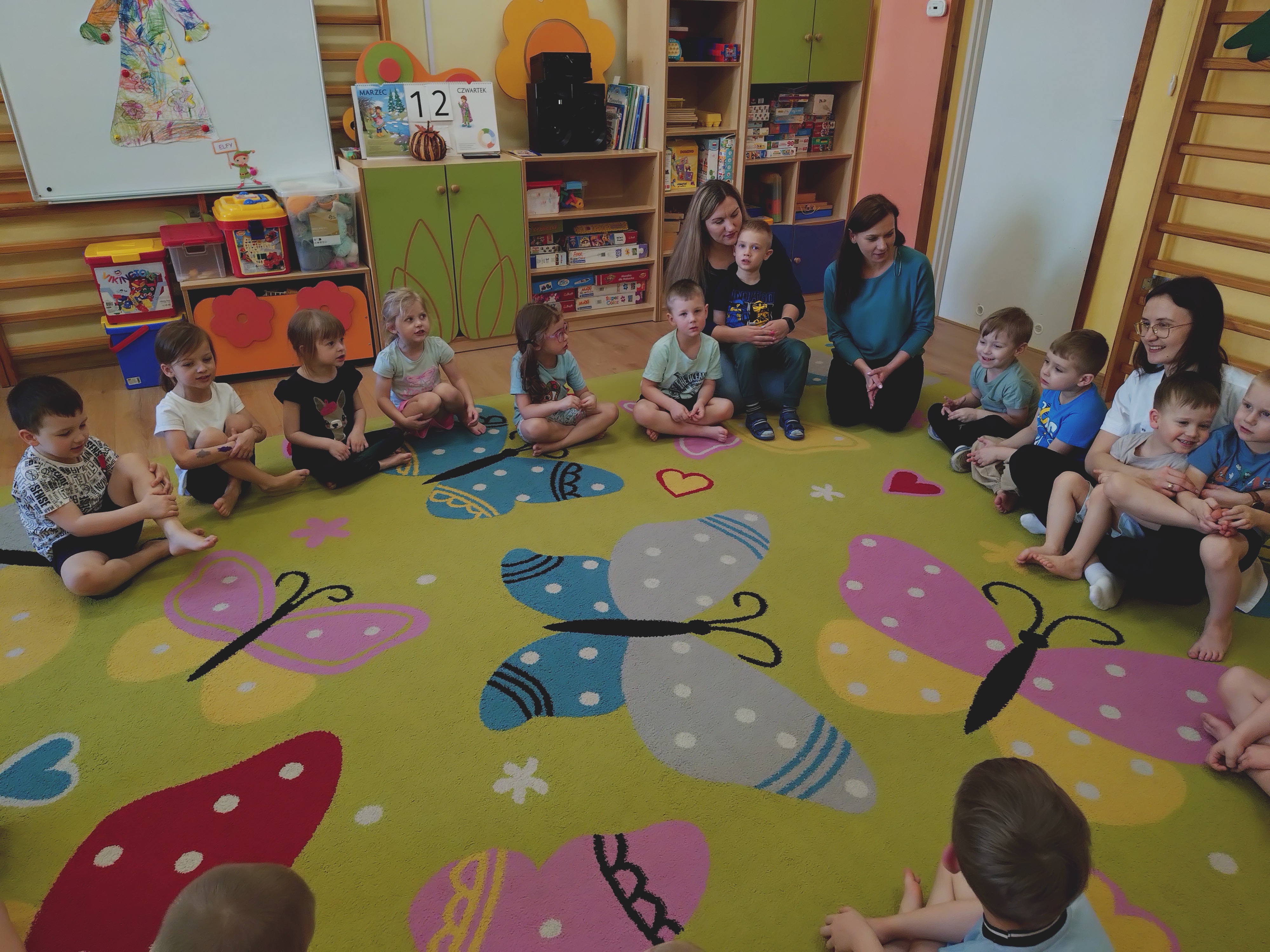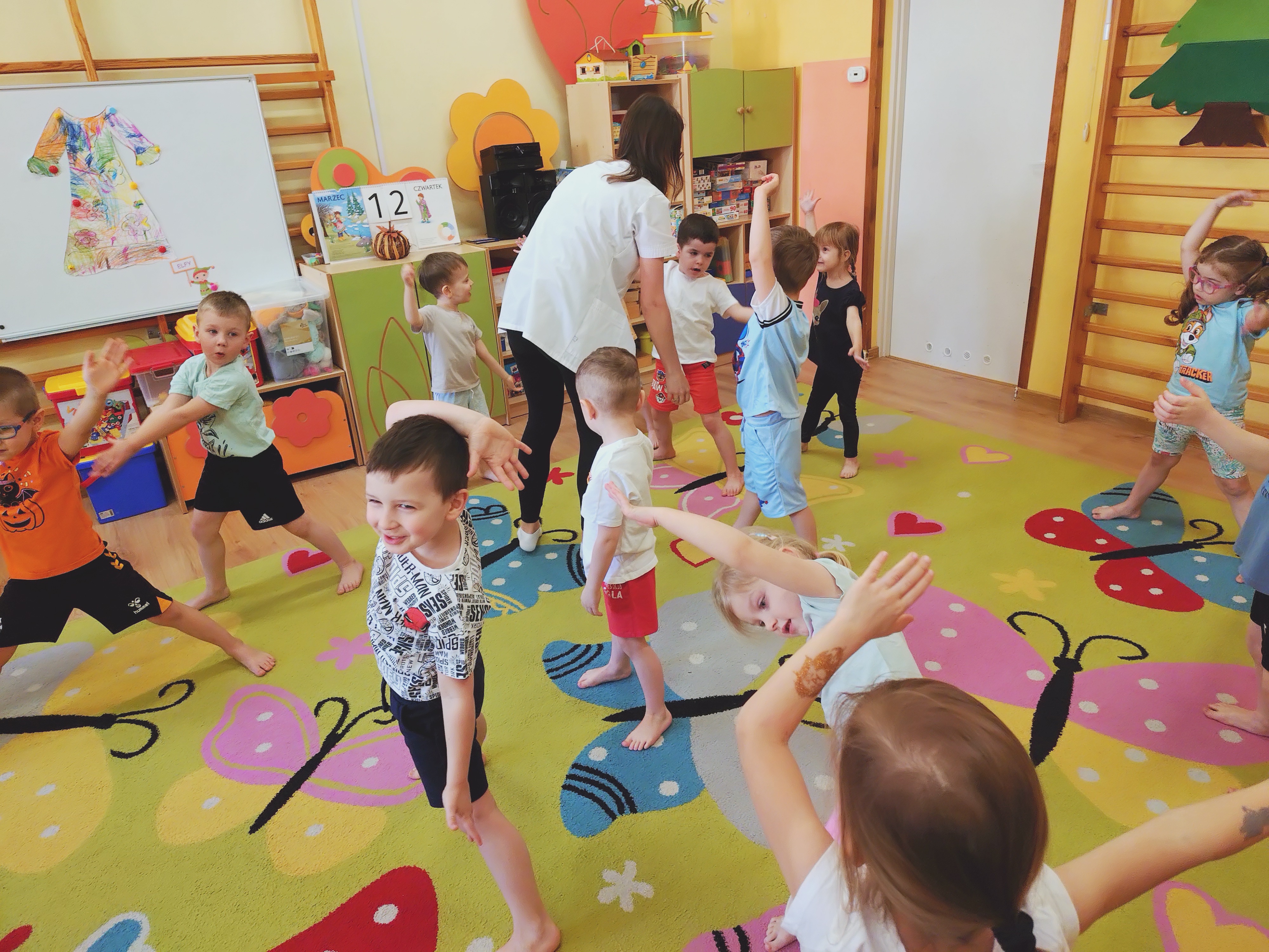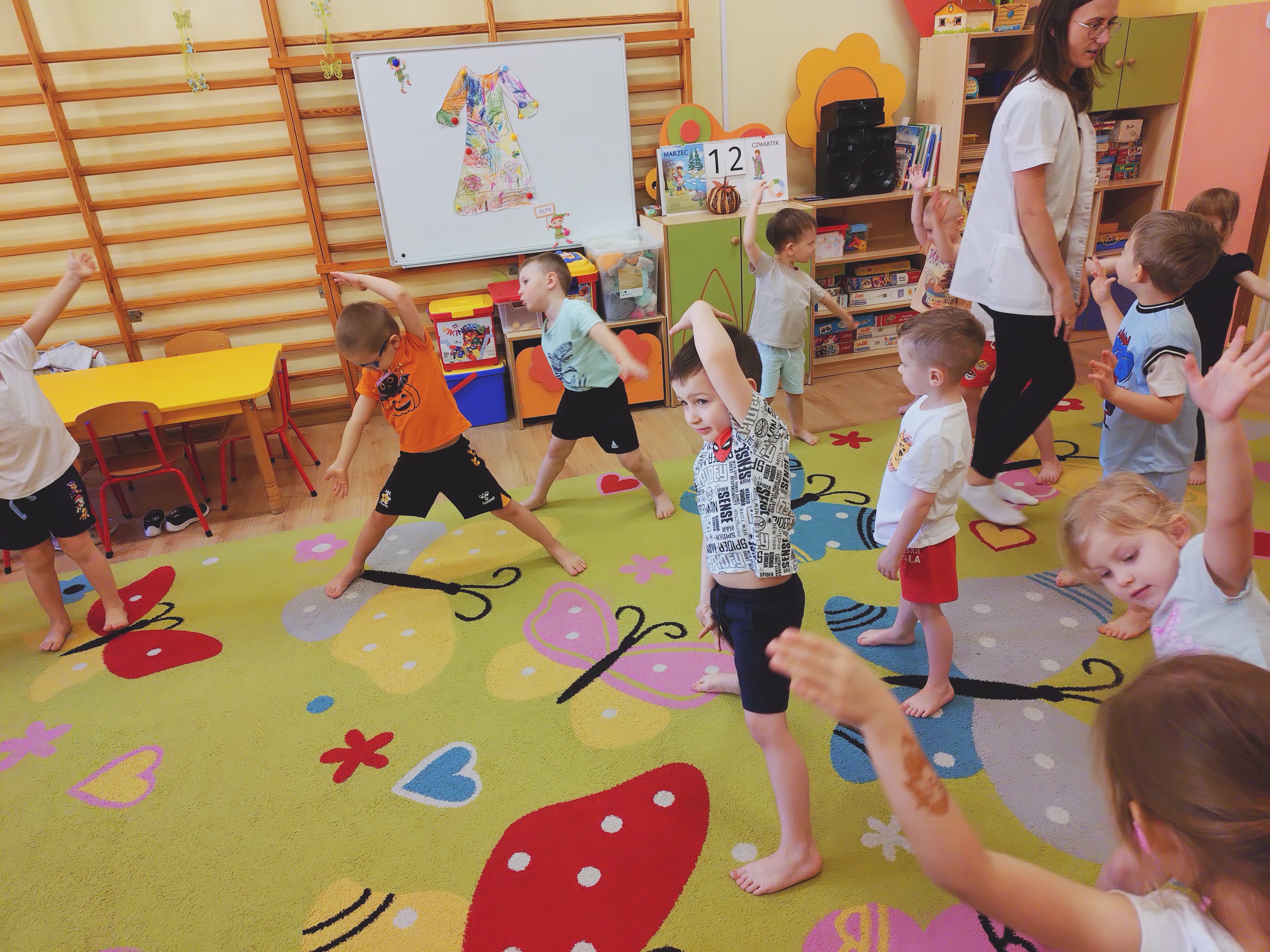 12 marca (czwatrek) Elfy gościły mamę naszego kolegi Antosia, p. Magdę, która jest fizjoterapeutą. Głownym celem spotkania było zapoznanie z zawodem fizjoterapeuty oraz udział w ćwiczeniach gimnastycznych pod bacznym okiem p. Magdy.